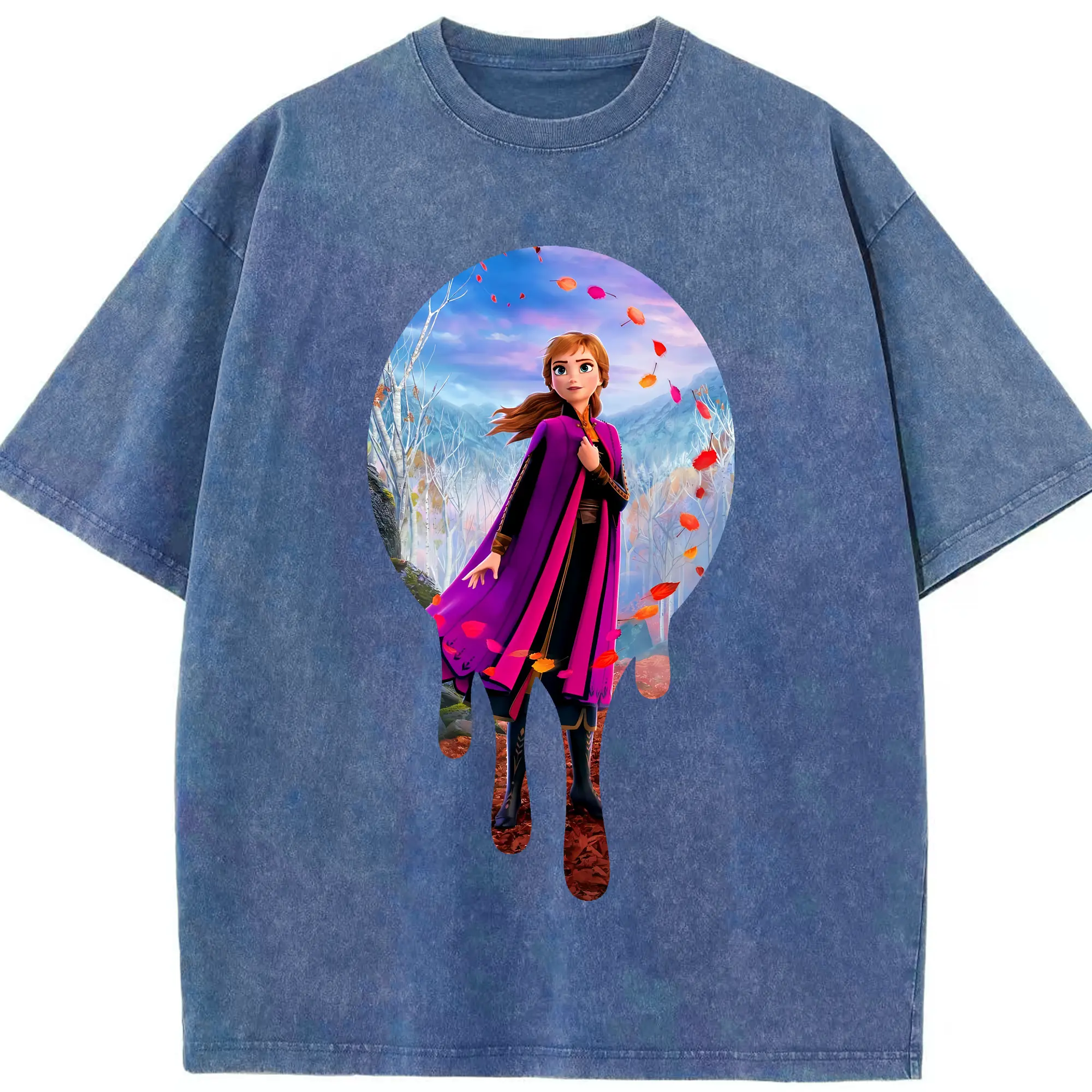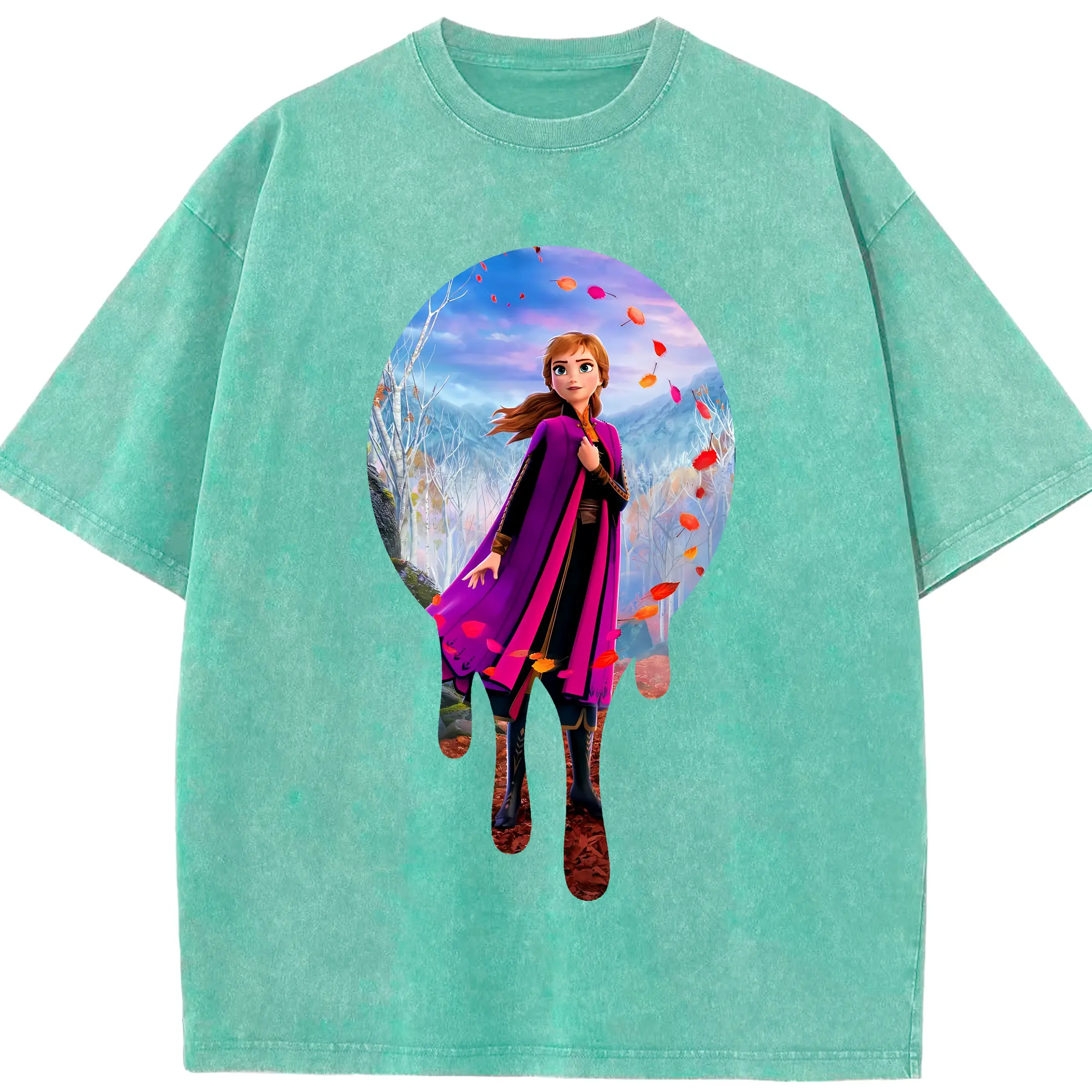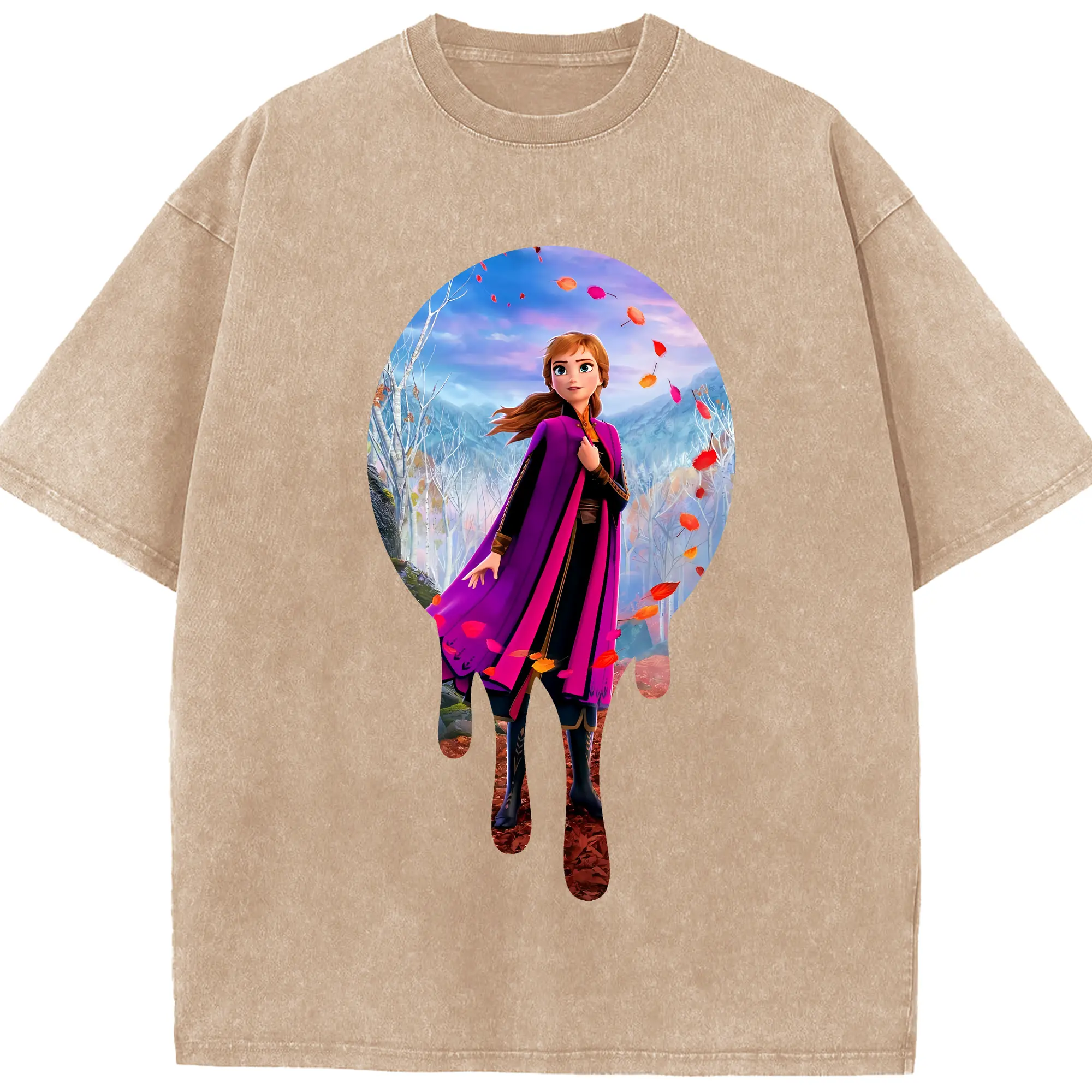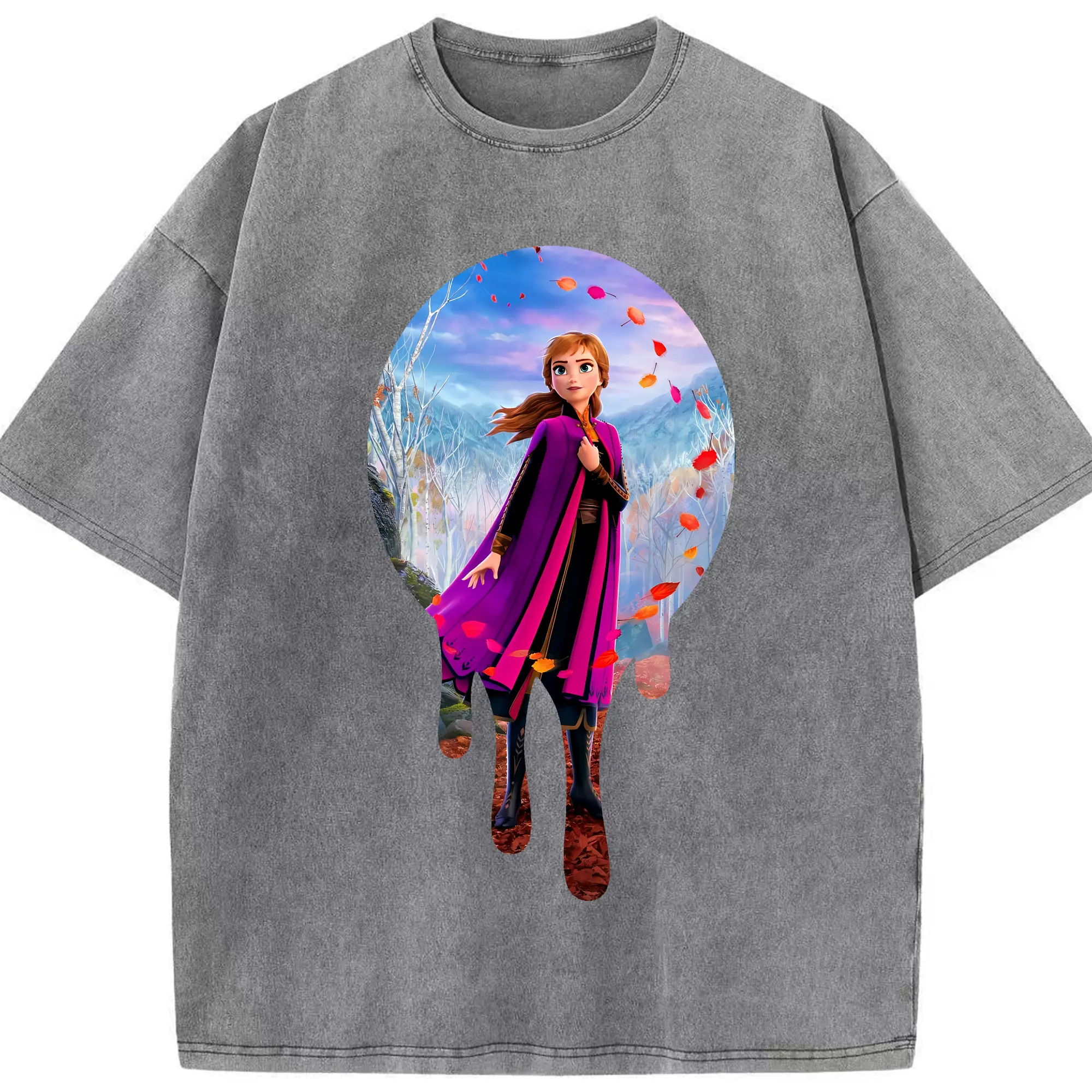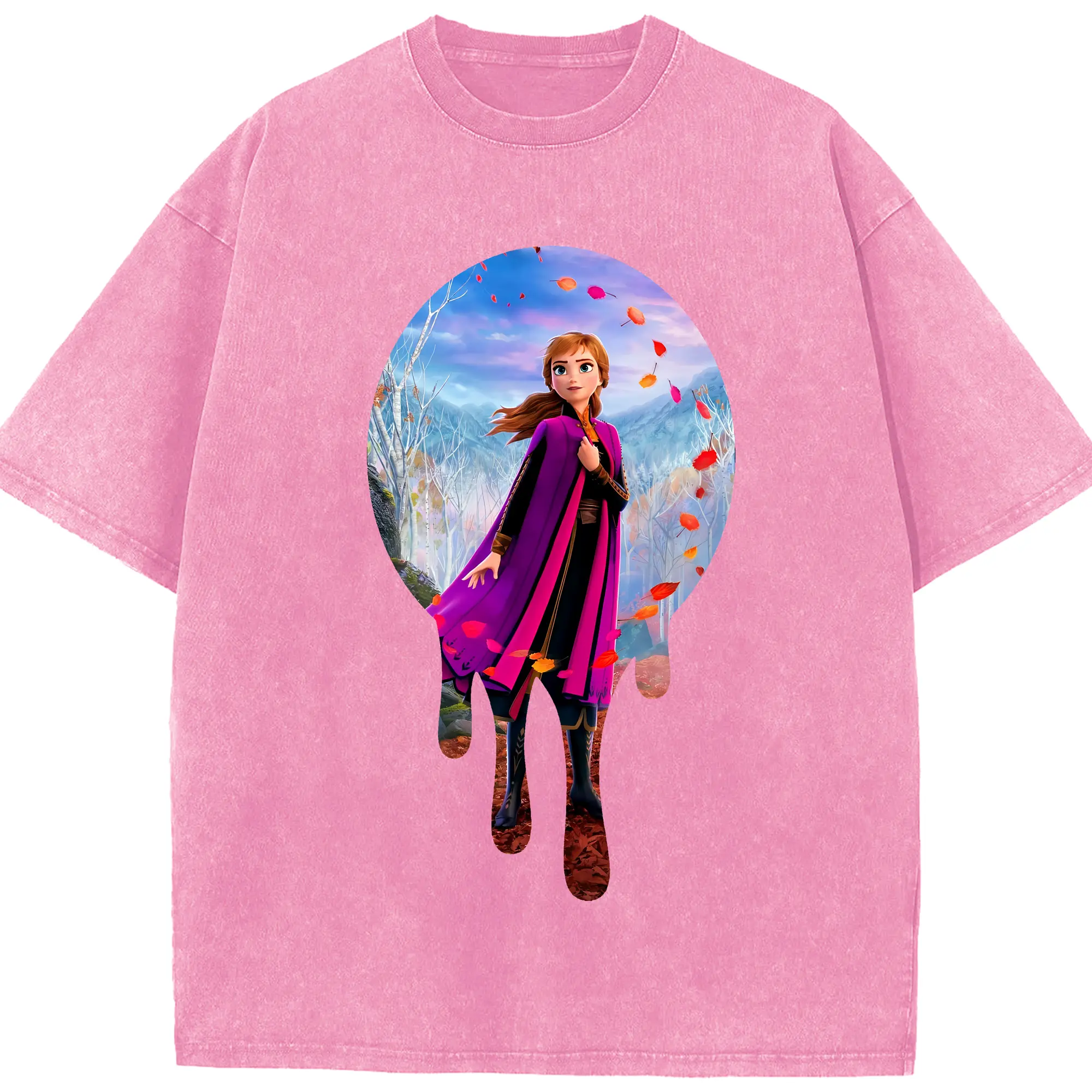 アナと雪の女王(Frozen) グッズ アナ(Anna) - 綿100% ヴィンテージ風 半袖Tシャツ ・ 背面プリント ・ 柔らか肌触り ・ 通気性 快適 ・ スポーツ カジュアル 外出用