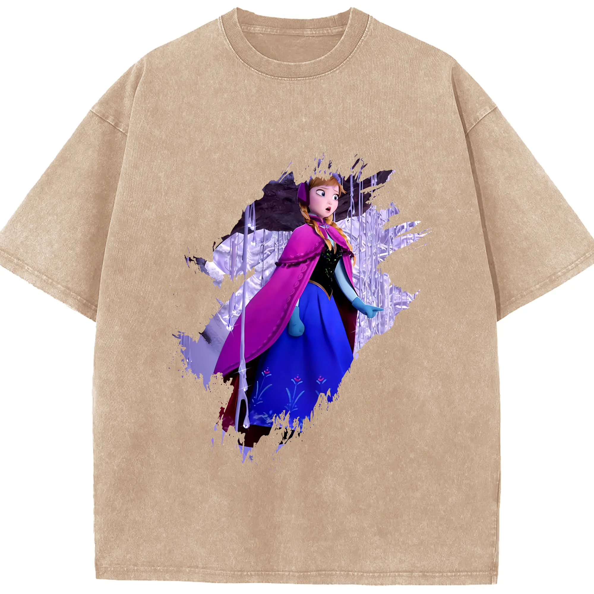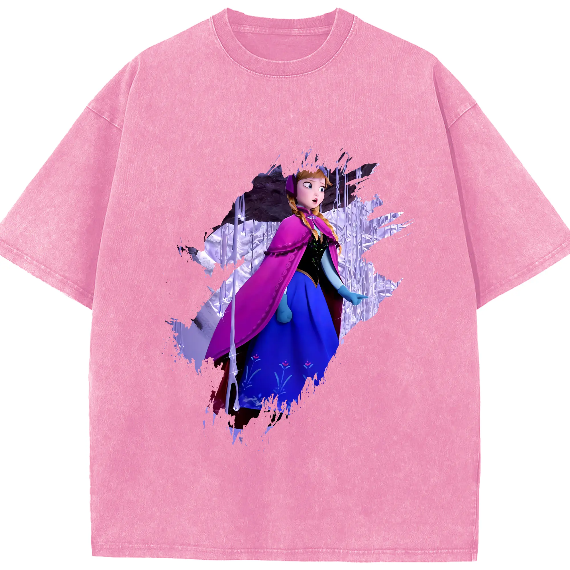 アナと雪の女王(Frozen) グッズ アナ(Anna) - 綿100% ヴィンテージ風 半袖Tシャツ ・ 背面プリント ・ 柔らか肌触り ・ 通気性 快適 ・ スポーツ カジュアル 外出用