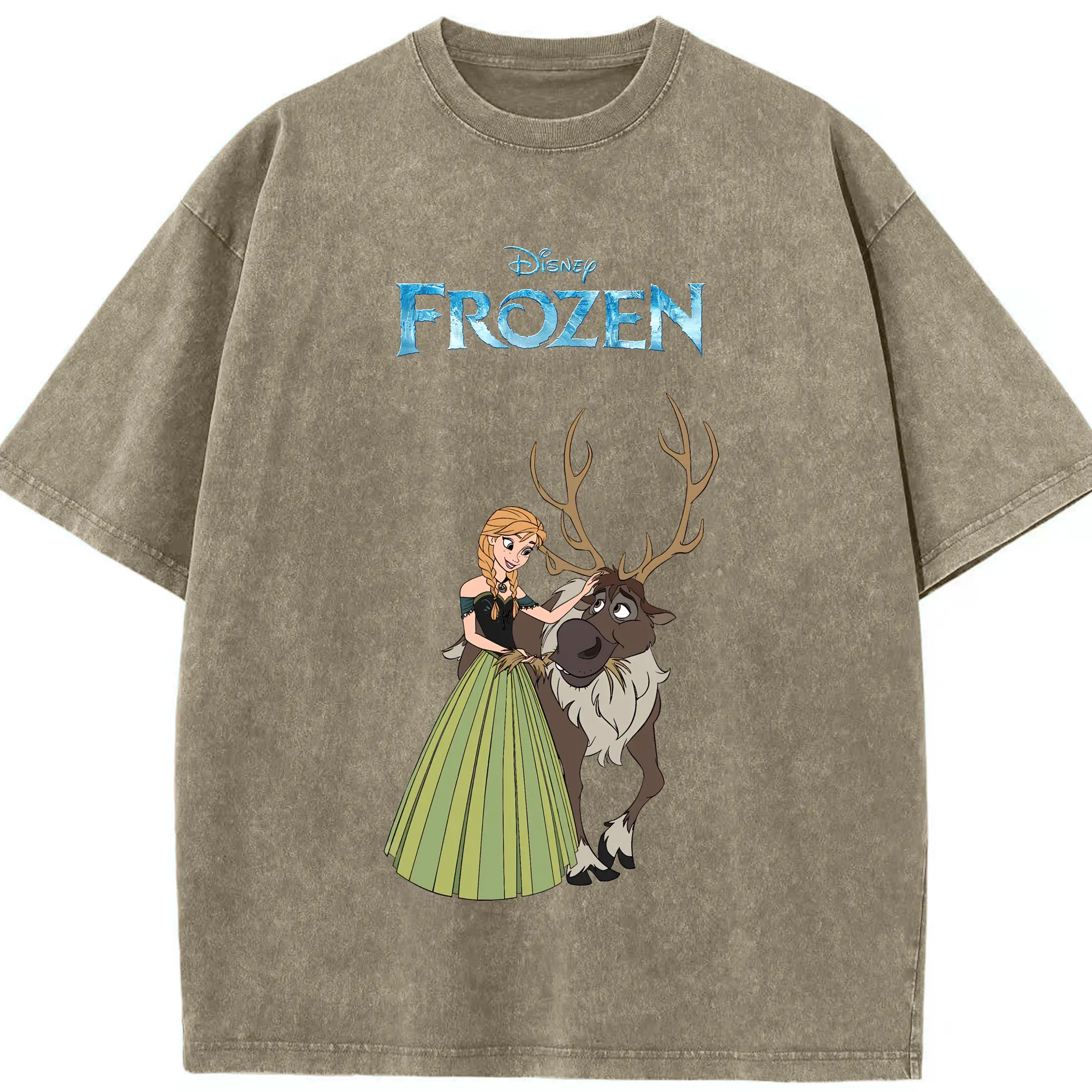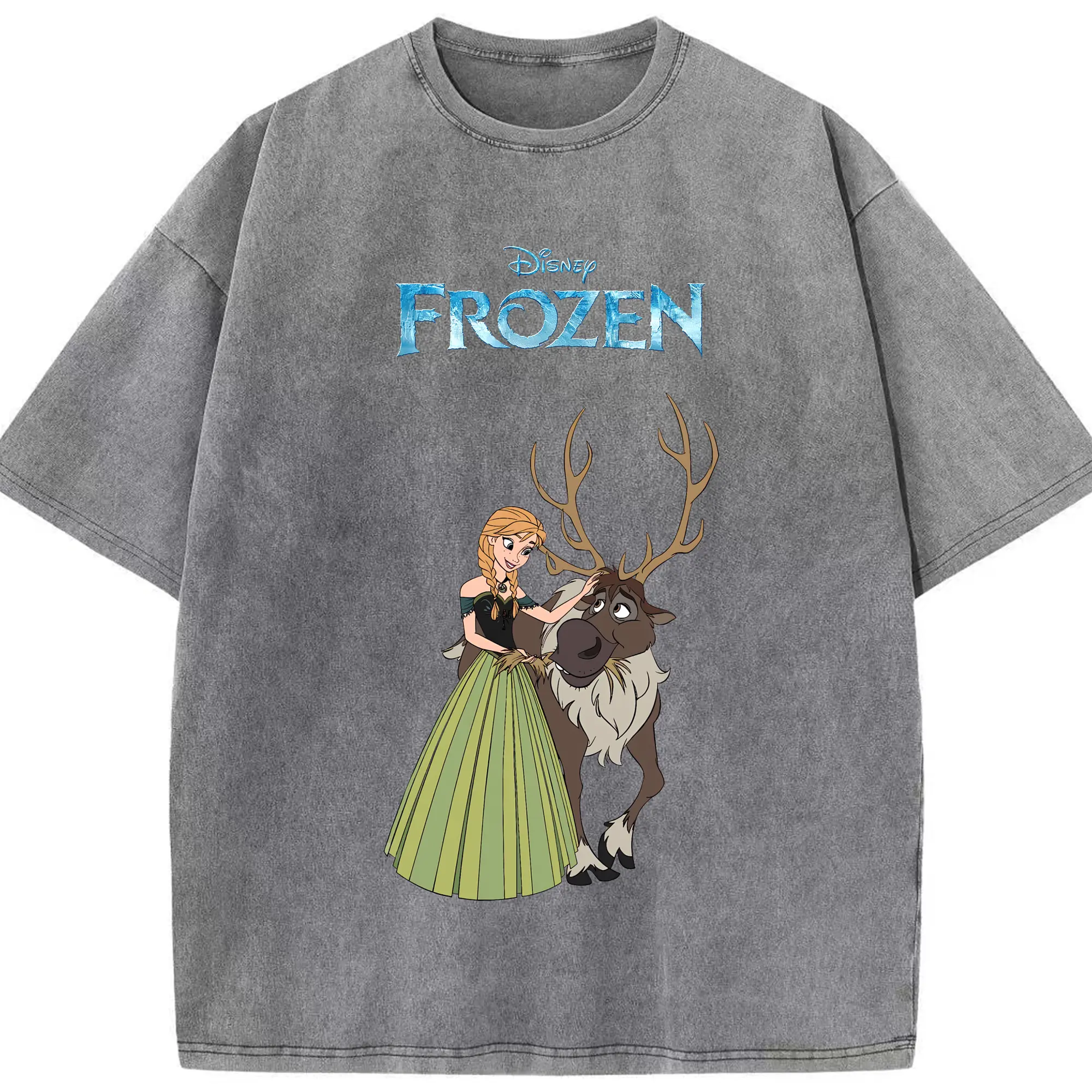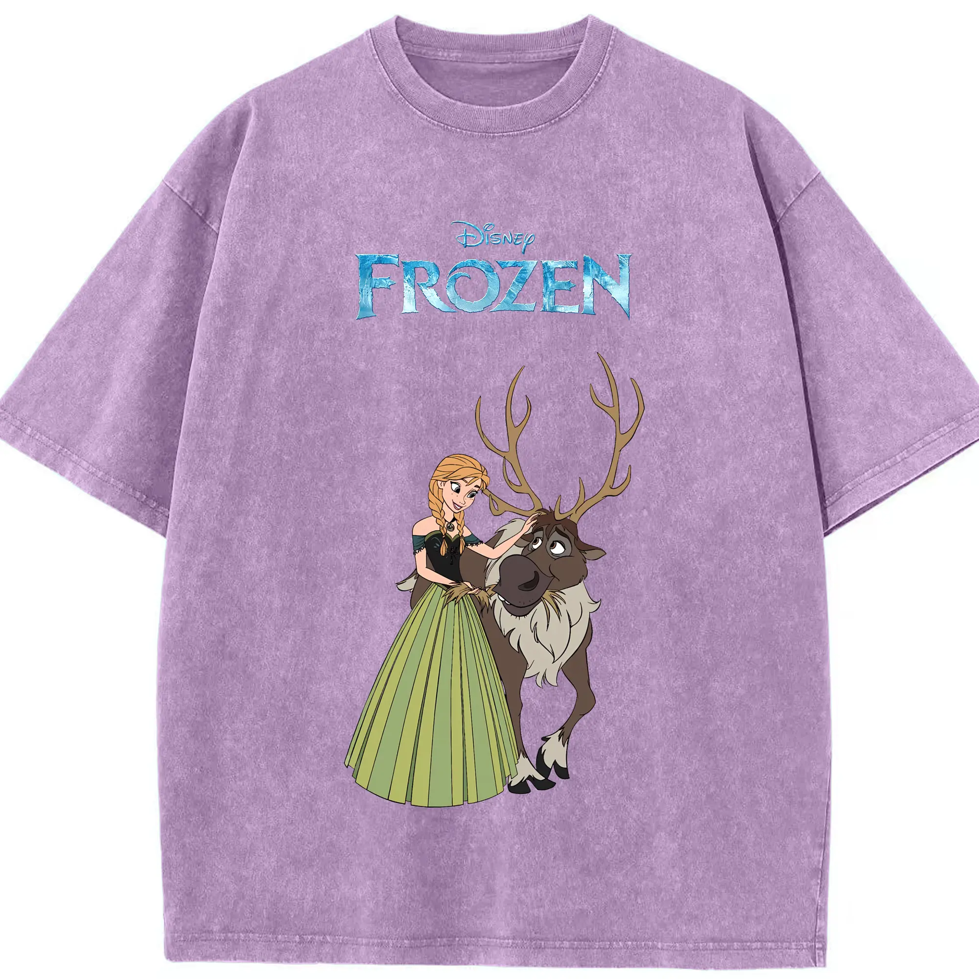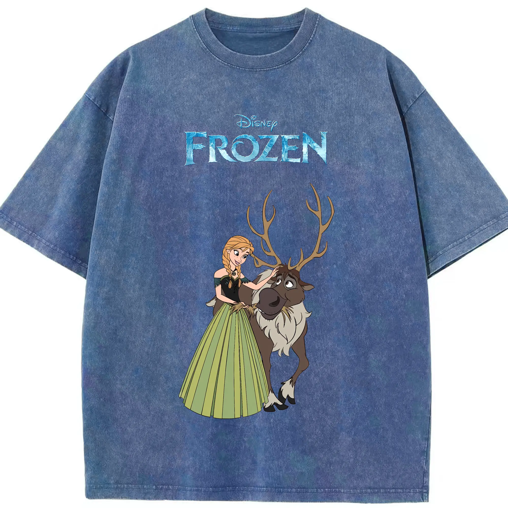 アナと雪の女王(Frozen) グッズ アナ(Anna) - 綿100% ヴィンテージ風 半袖Tシャツ ・ 背面プリント ・ 柔らか肌触り ・ 通気性 快適 ・ スポーツ カジュアル 外出用