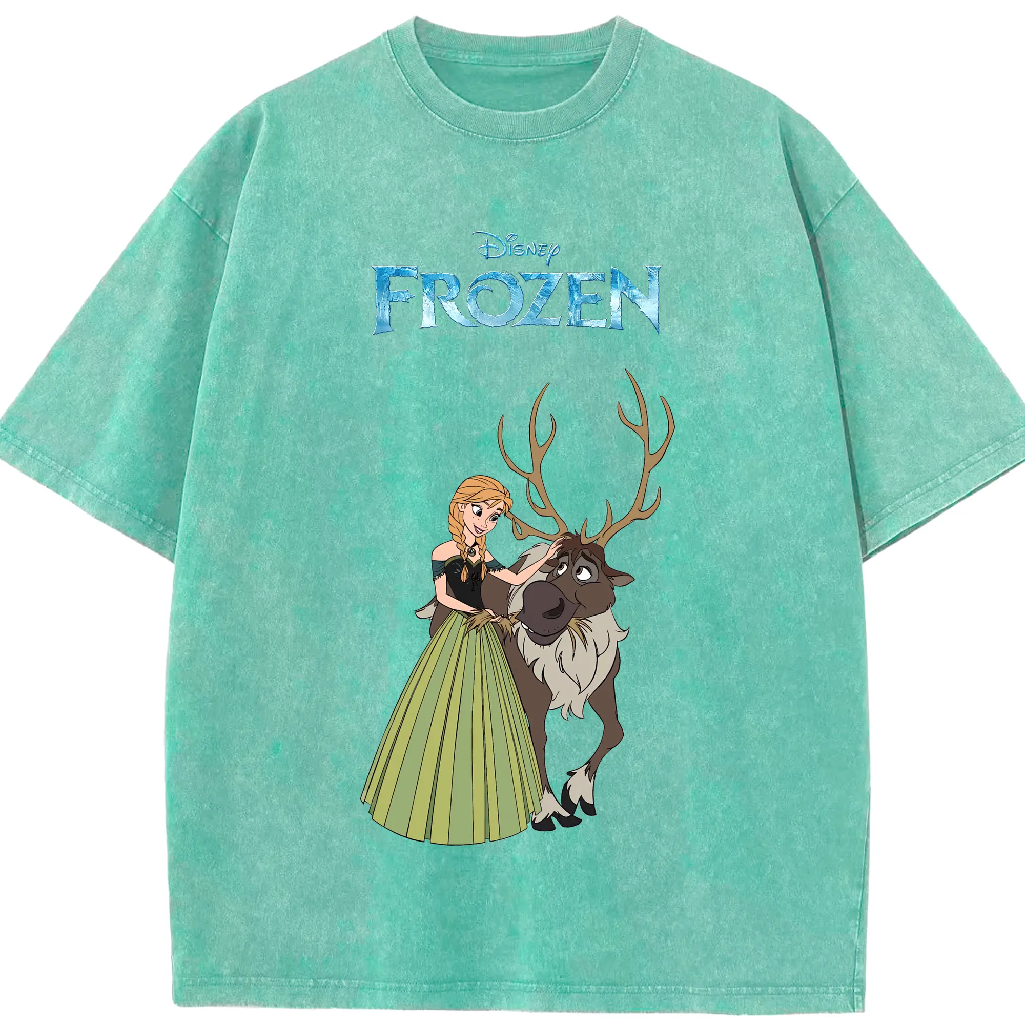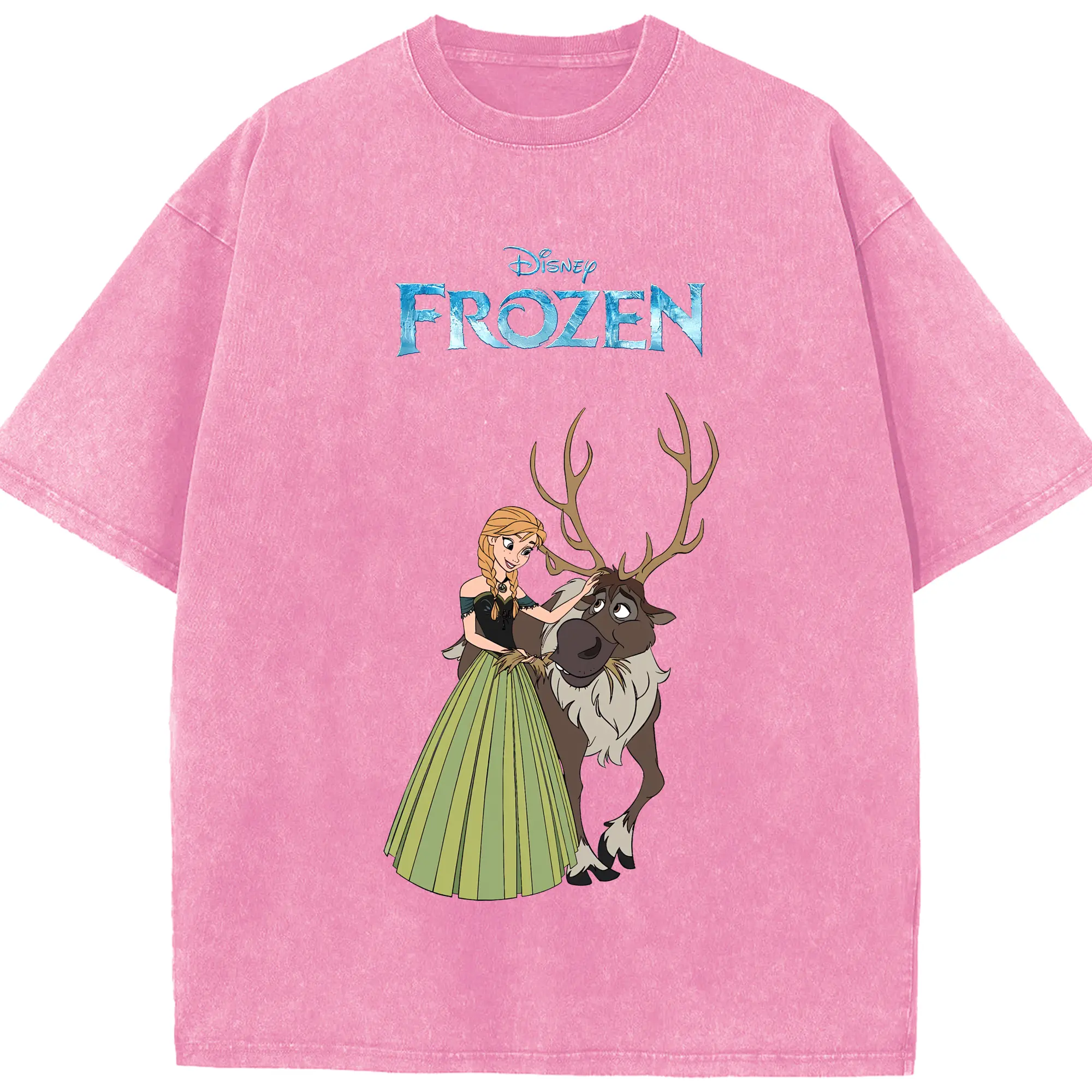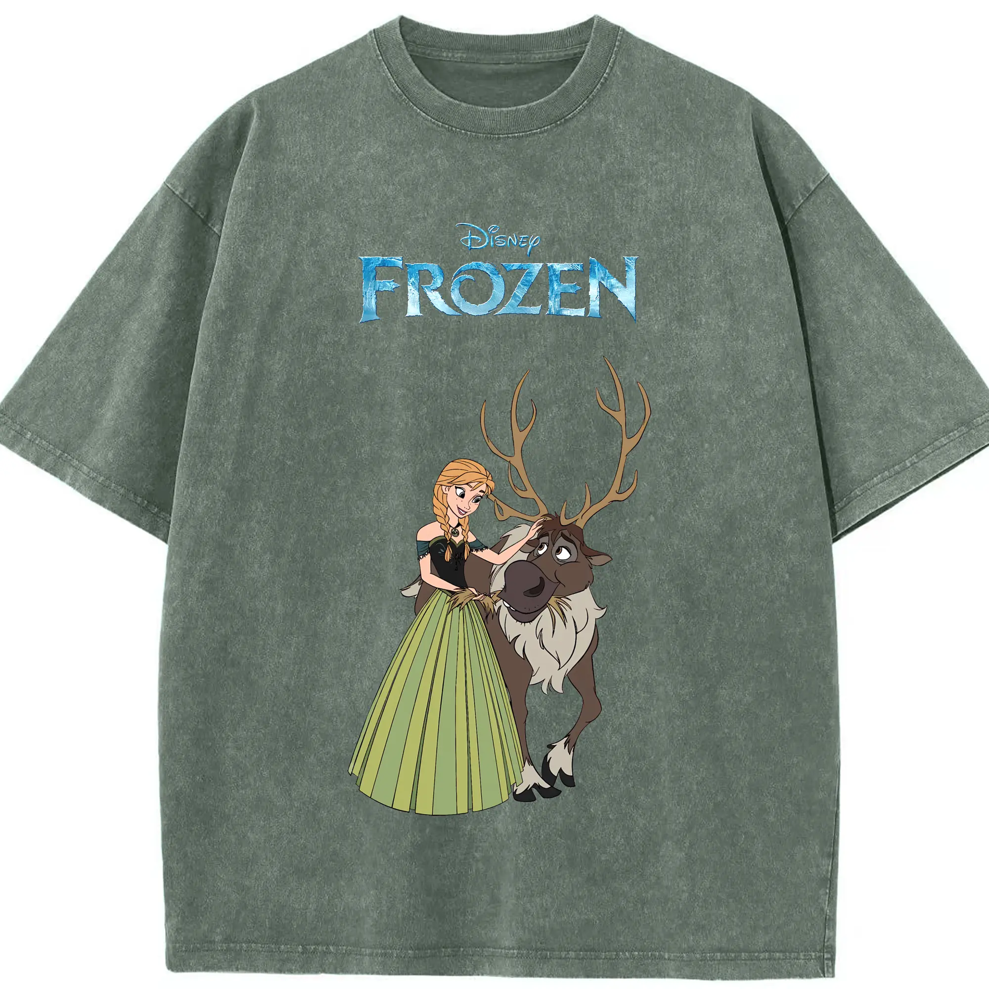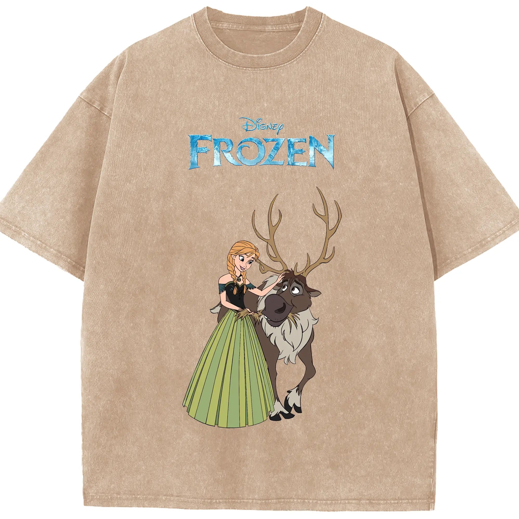 アナと雪の女王(Frozen) グッズ アナ(Anna) - 綿100% ヴィンテージ風 半袖Tシャツ ・ 背面プリント ・ 柔らか肌触り ・ 通気性 快適 ・ スポーツ カジュアル 外出用
