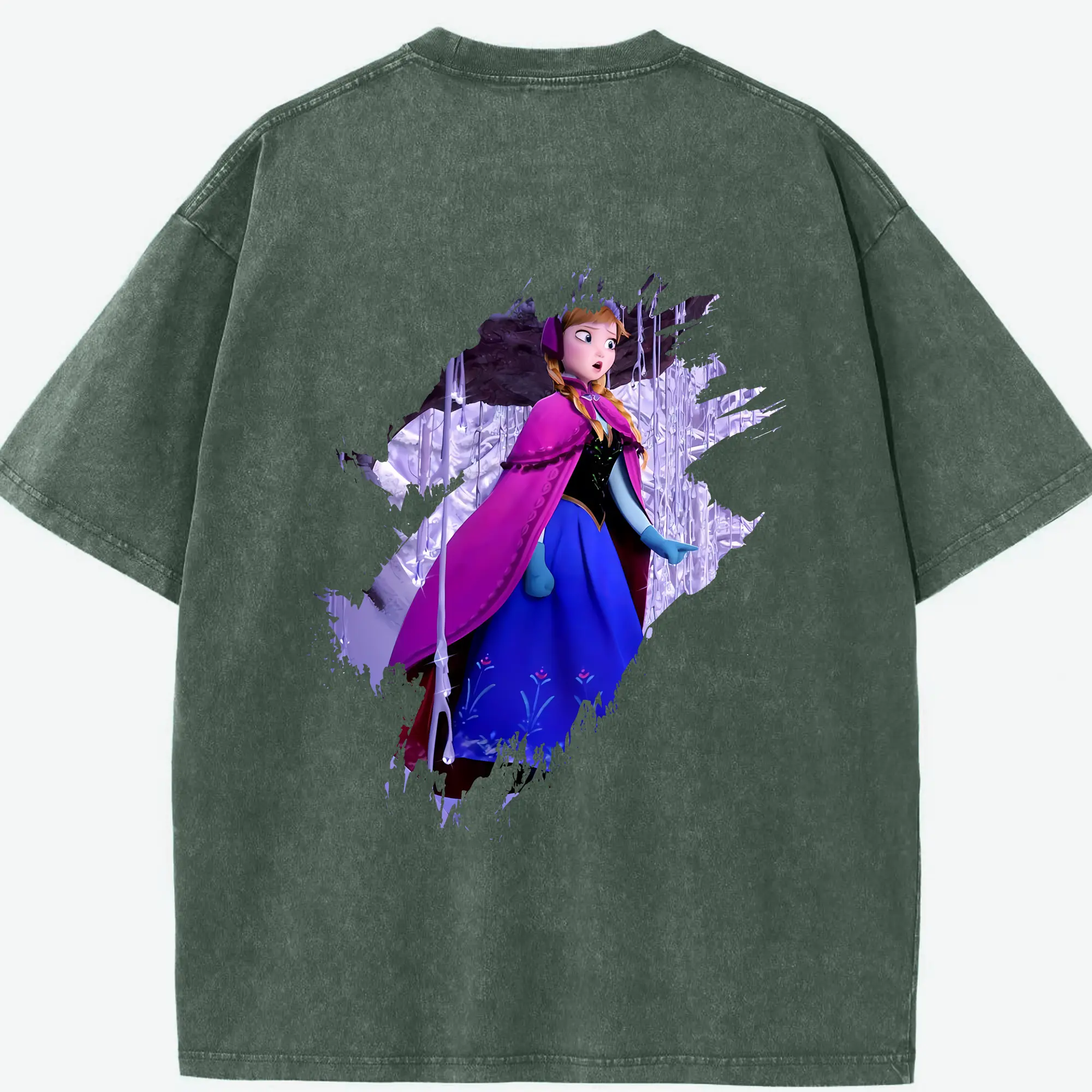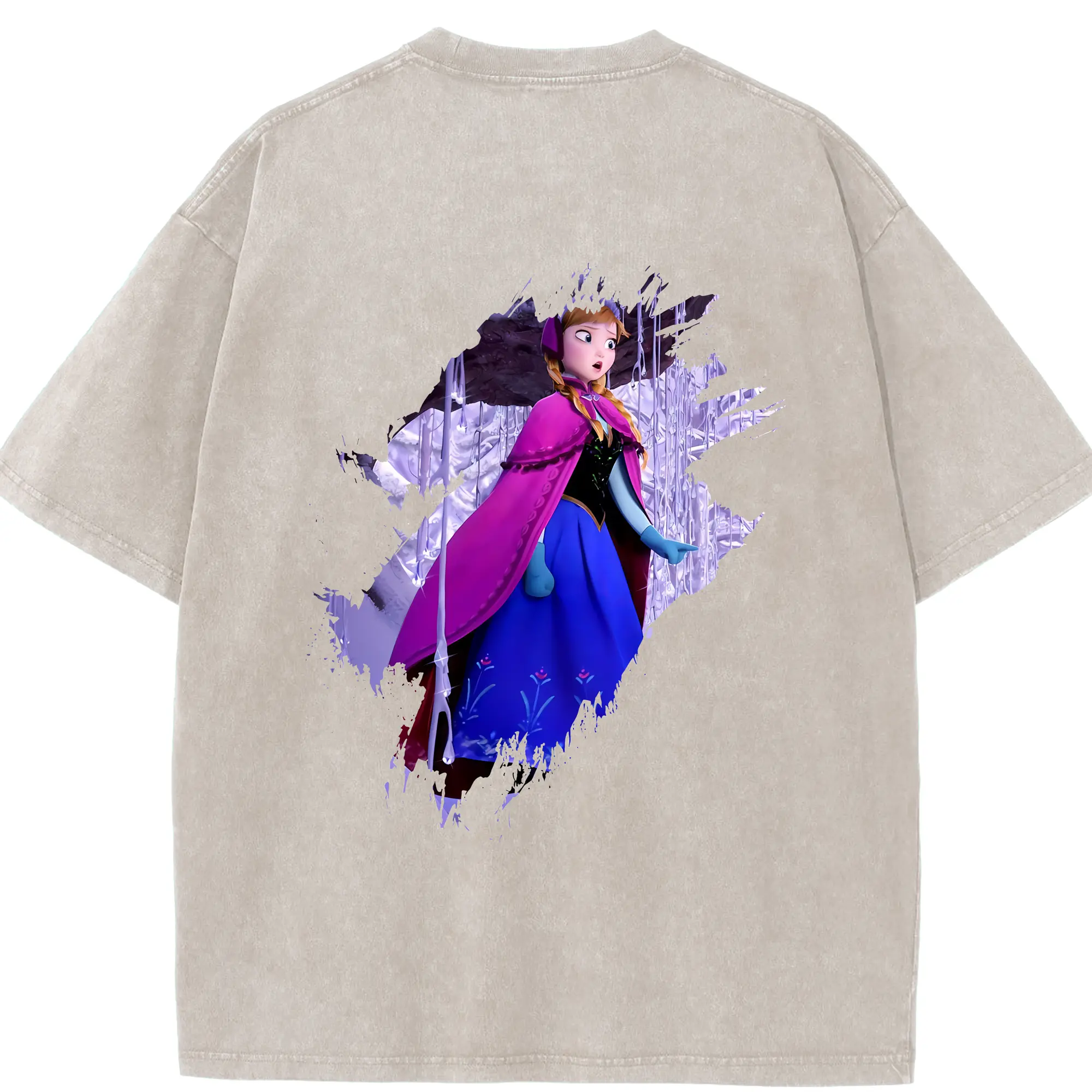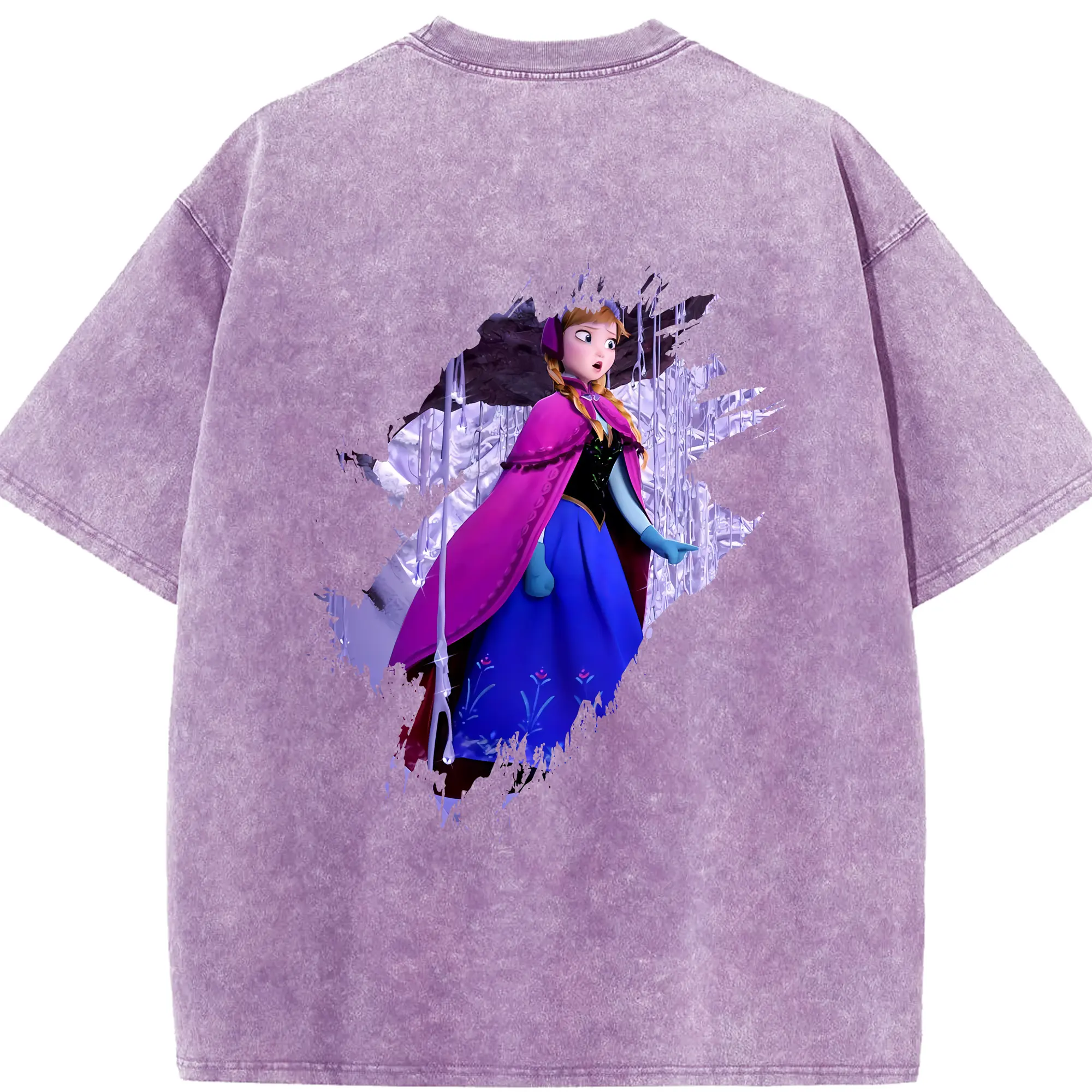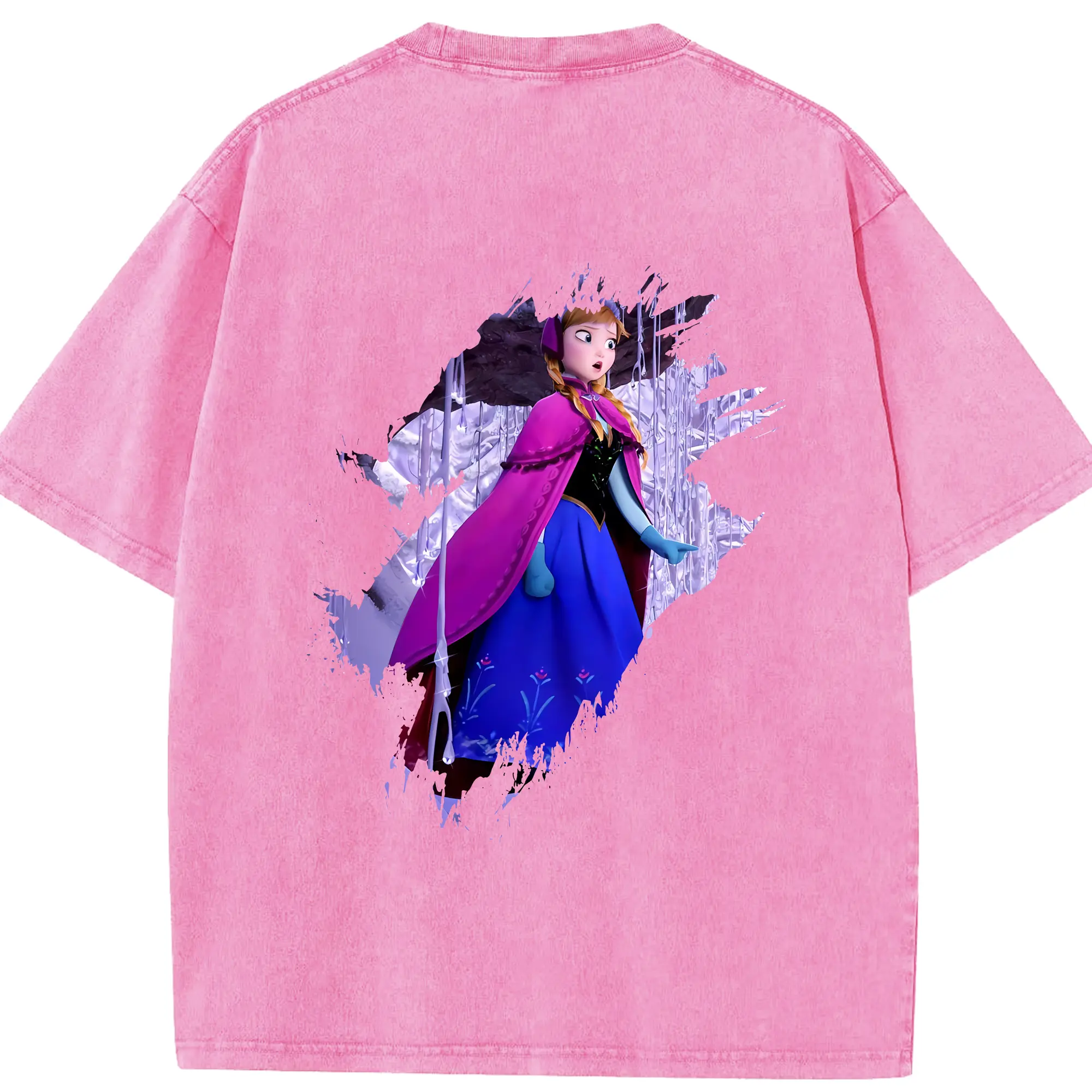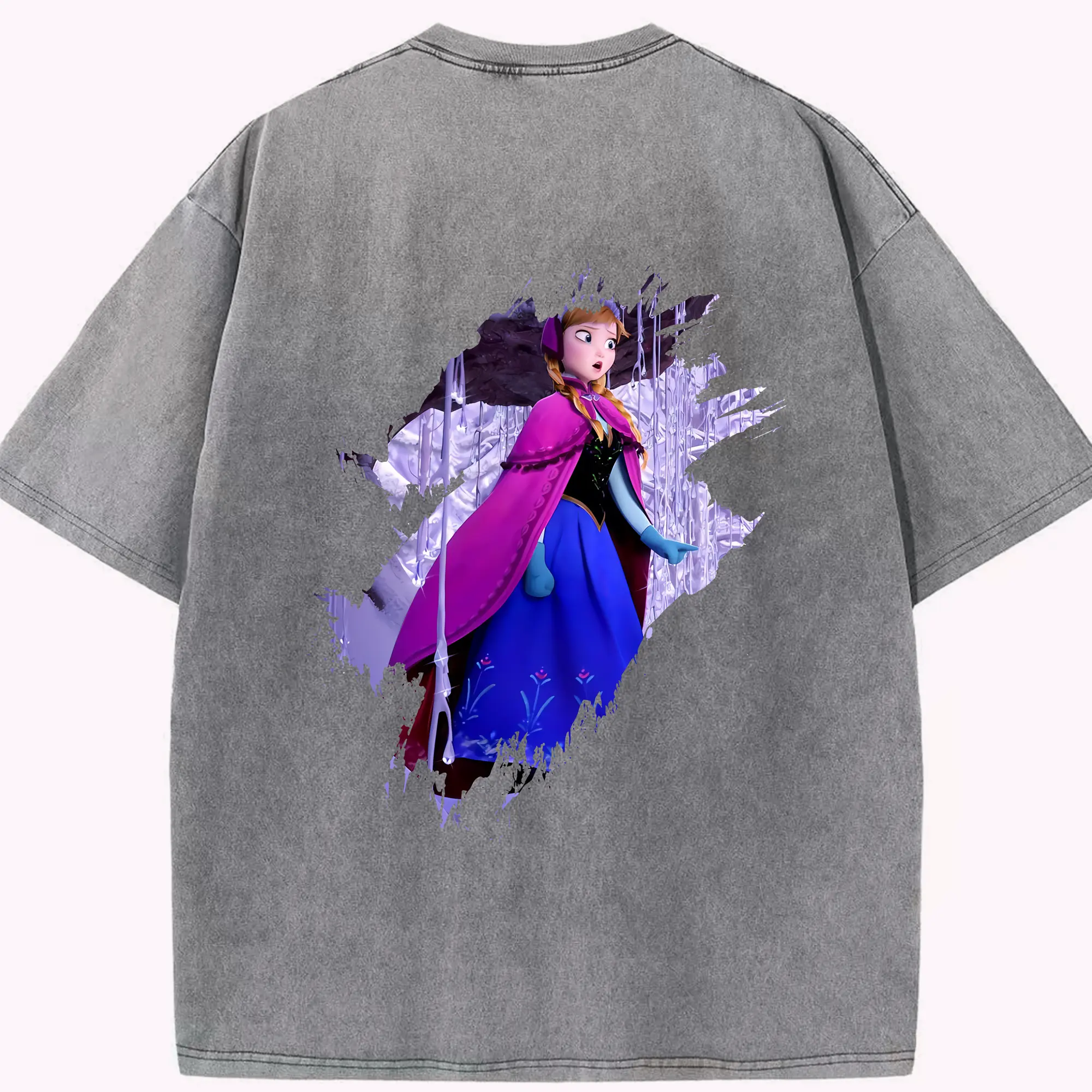 アナと雪の女王(Frozen) グッズ アナ(Anna) - 綿100% ヴィンテージ風 半袖Tシャツ ・ 背面プリント ・ 柔らか肌触り ・ 通気性 快適 ・ スポーツ カジュアル 外出用