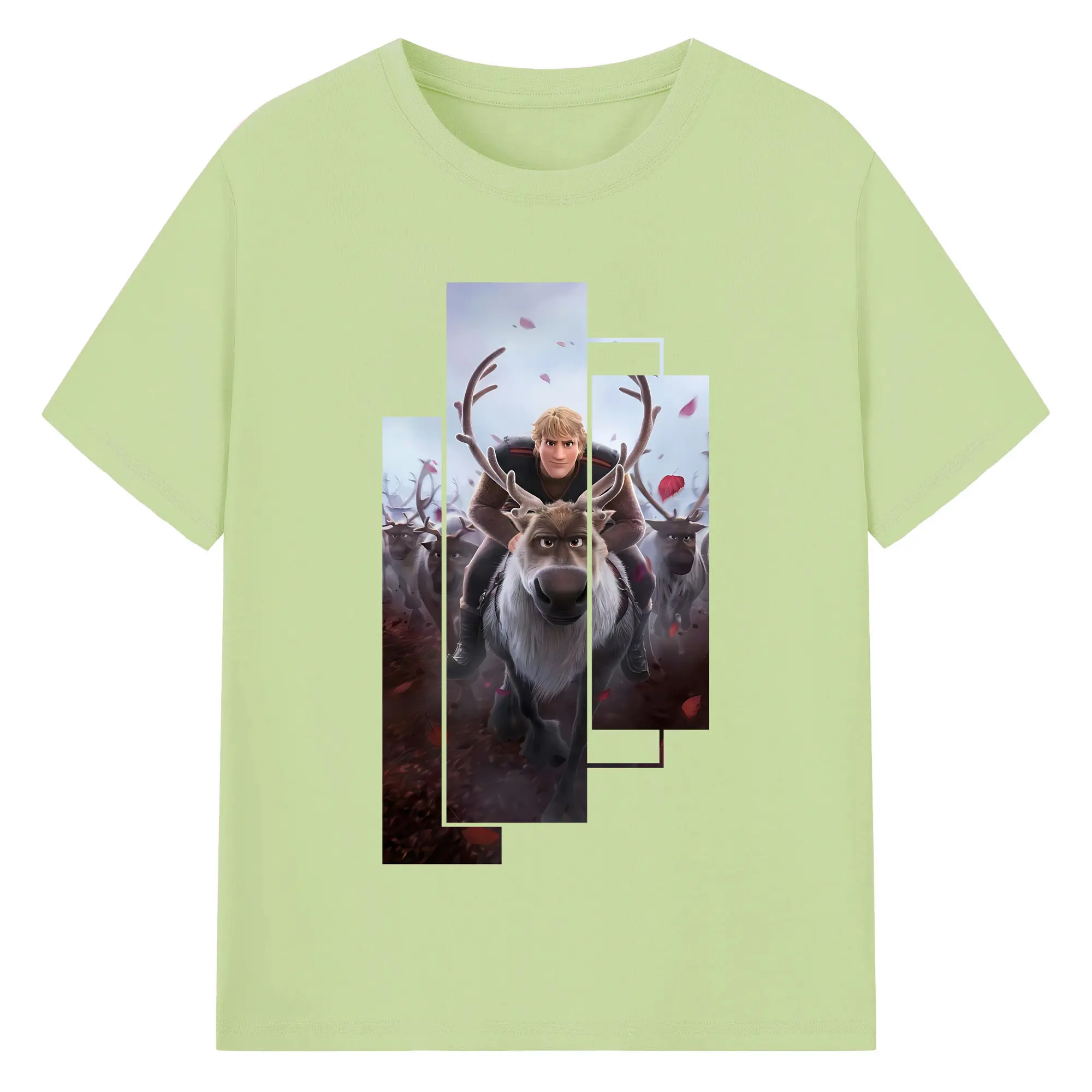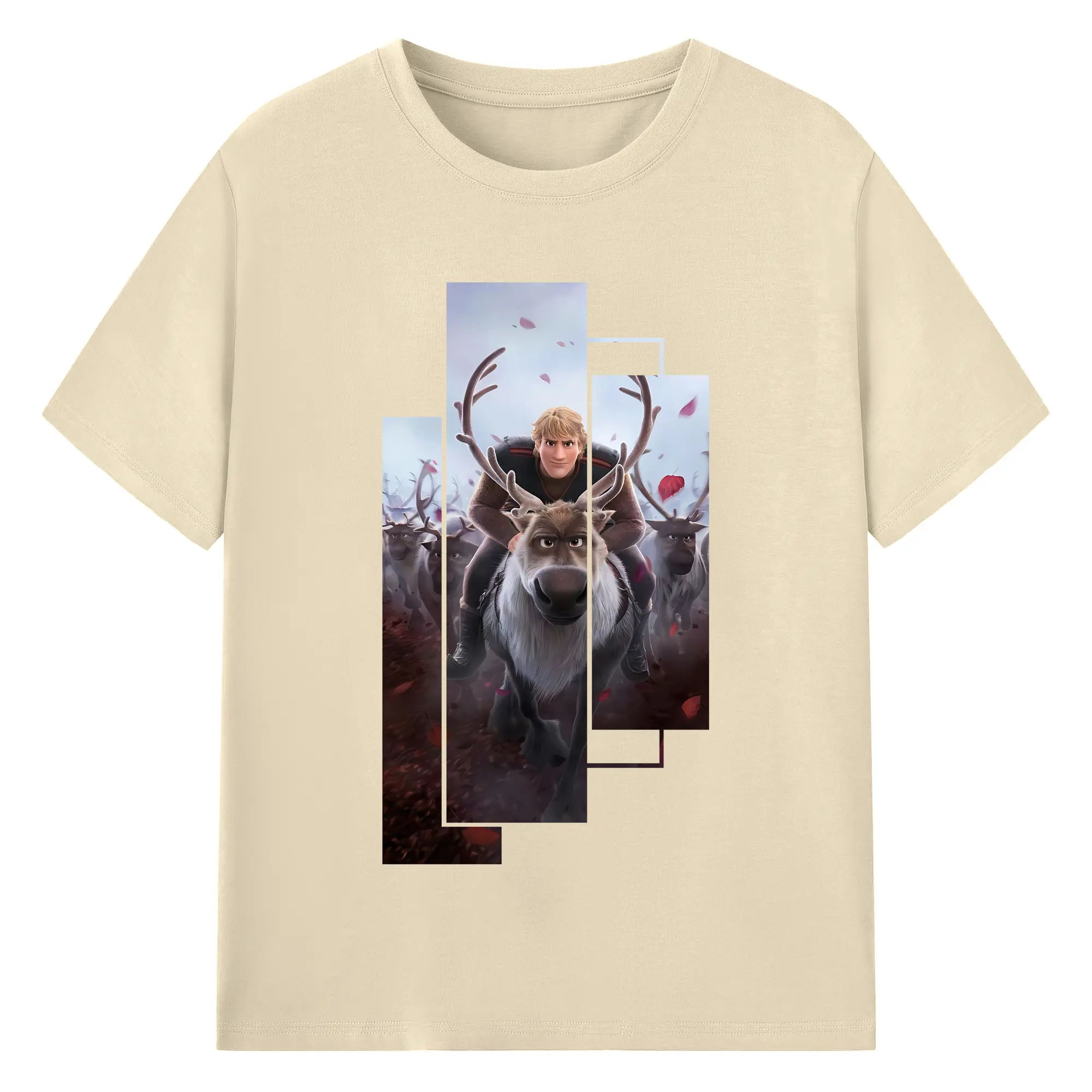 アナと雪の女王(Frozen) グッズ クリストフ(Kristoff) - 綿100% 半袖Tシャツ ・ バックプリント ・ 快適 通気性 ・ 日常使い 散歩 スポーツ用