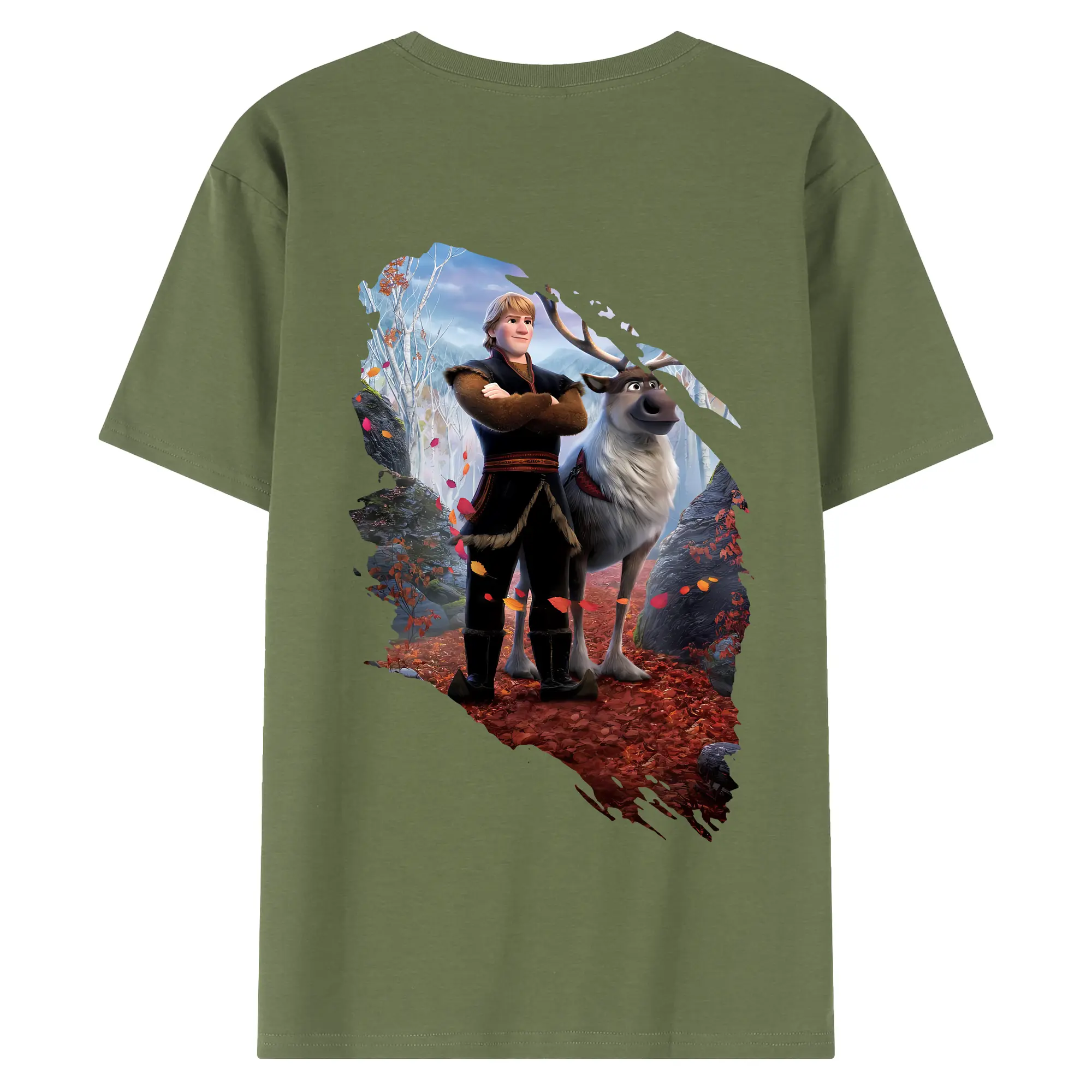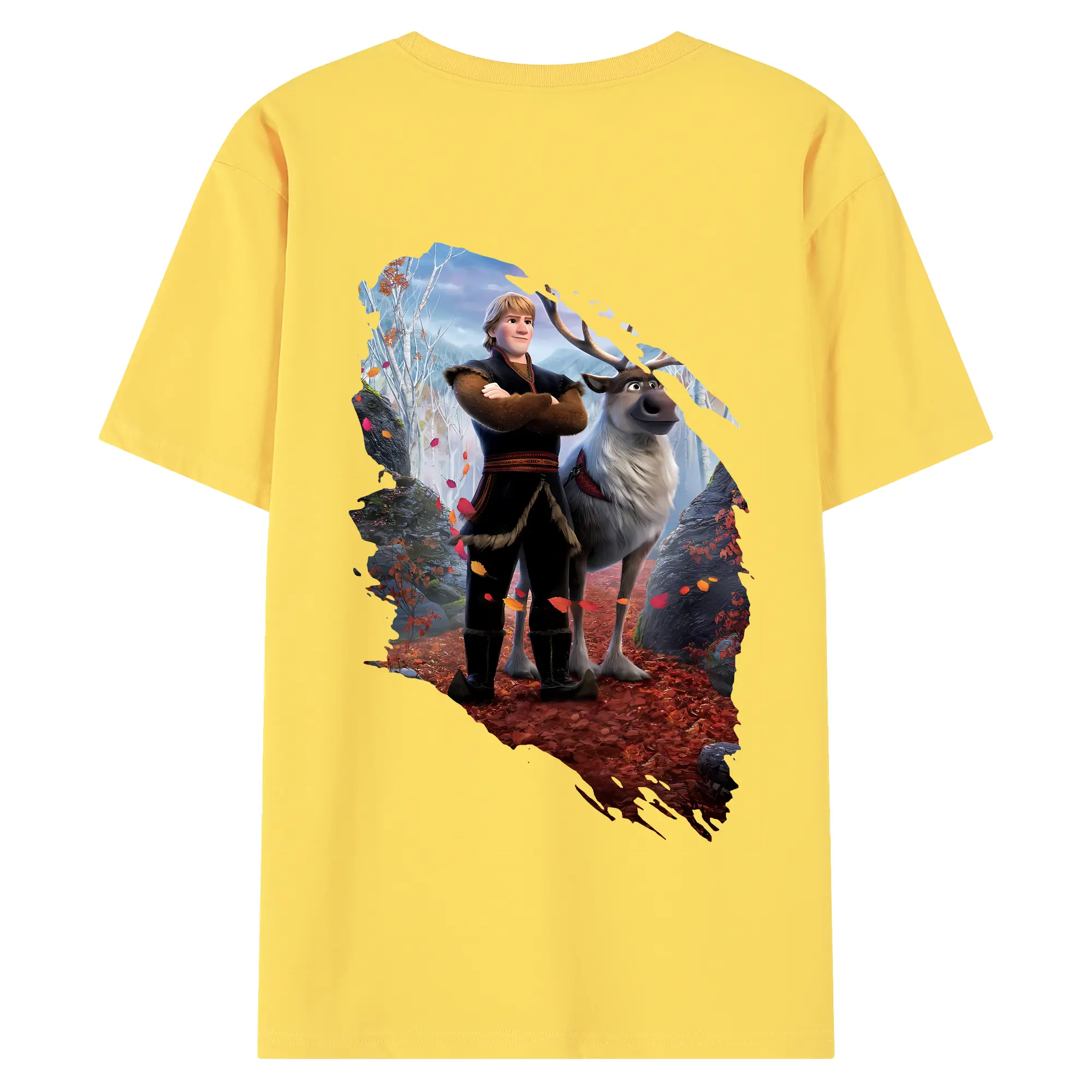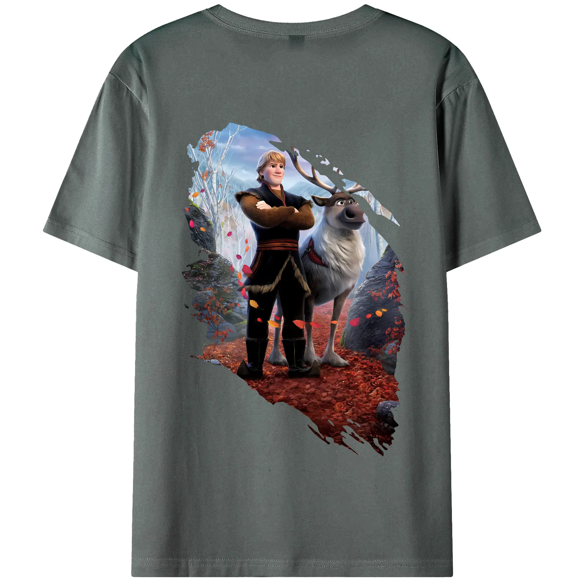 アナと雪の女王(Frozen) グッズ クリストフ(Kristoff) - 綿100% ヴィンテージ風 半袖Tシャツ ・ 背面プリント ・ 柔らか肌触り ・ 通気性 快適 ・ スポーツ カジュアル 外出用