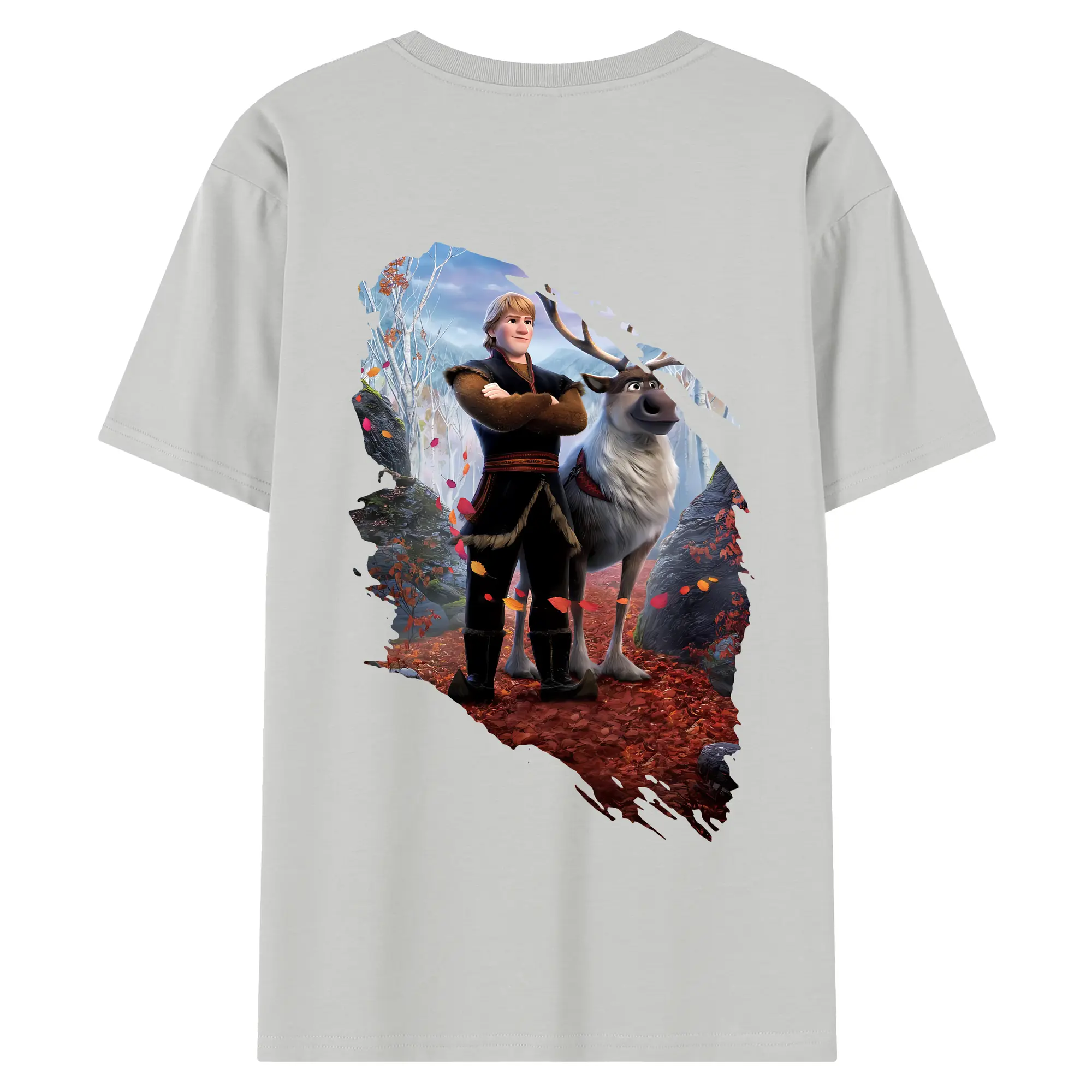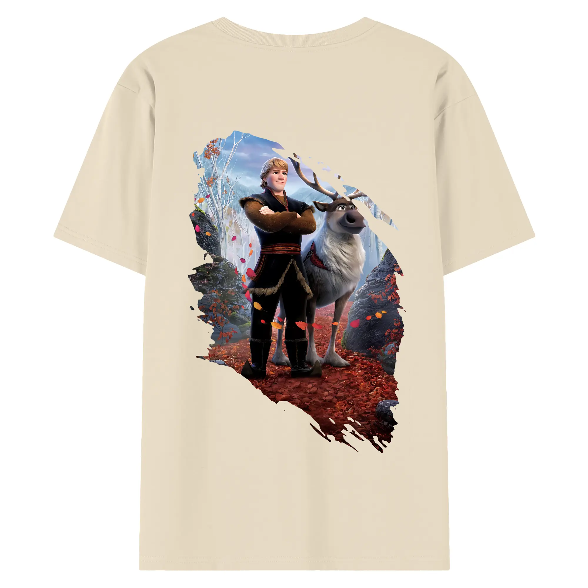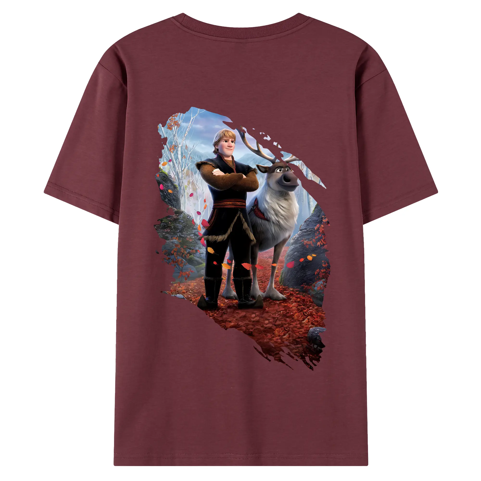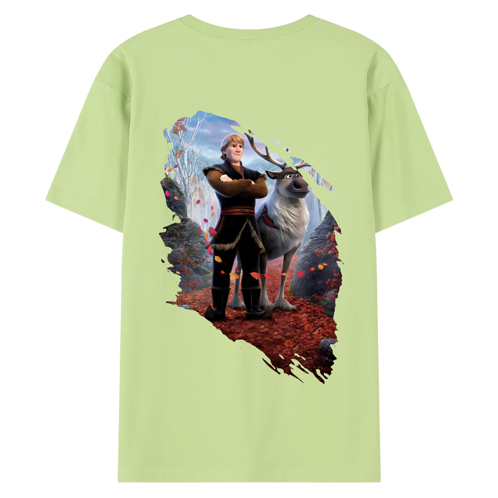 アナと雪の女王(Frozen) グッズ クリストフ(Kristoff) - 綿100% ヴィンテージ風 半袖Tシャツ ・ 背面プリント ・ 柔らか肌触り ・ 通気性 快適 ・ スポーツ カジュアル 外出用