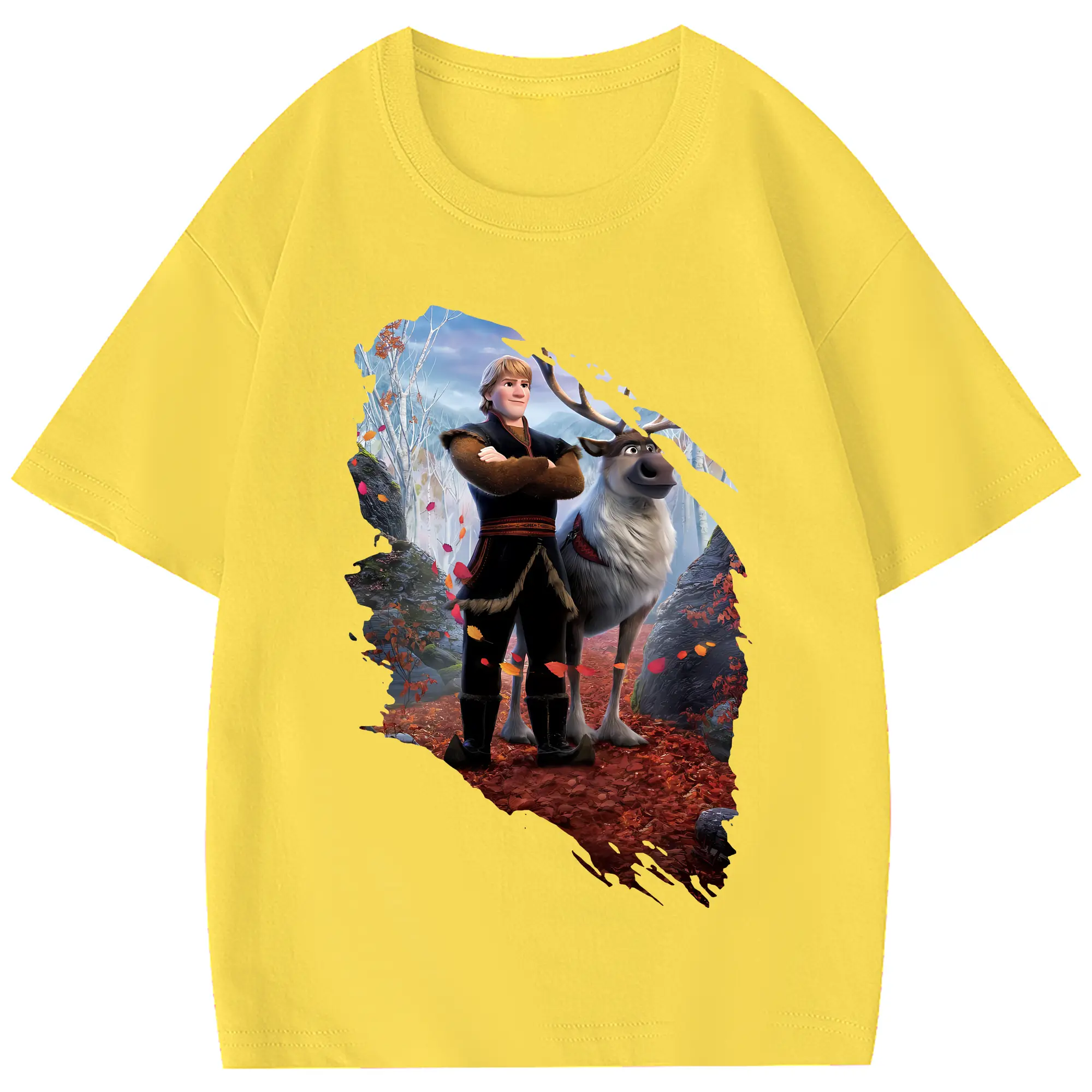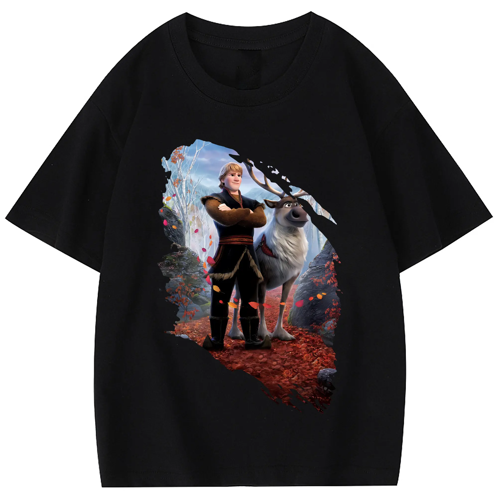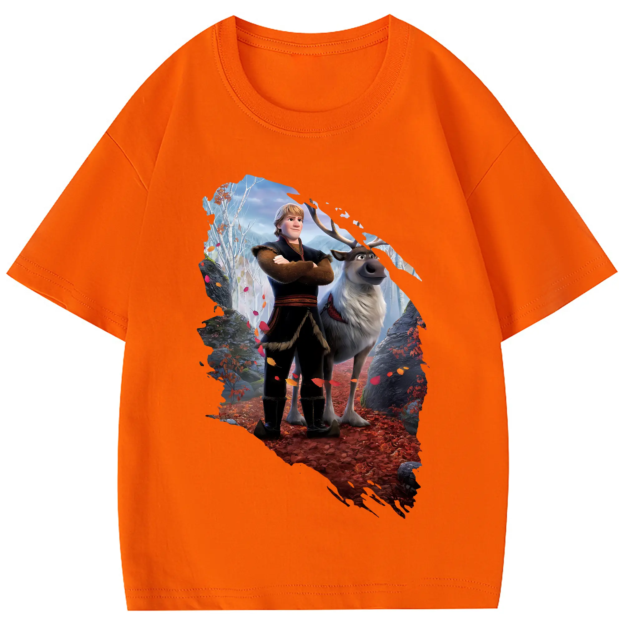 アナと雪の女王(Frozen) グッズ クリストフ(Kristoff) - 綿100% 半袖Tシャツ ・ フロントプリント ・ 快適 通気性 ・ 日常使い 散歩 スポーツ用