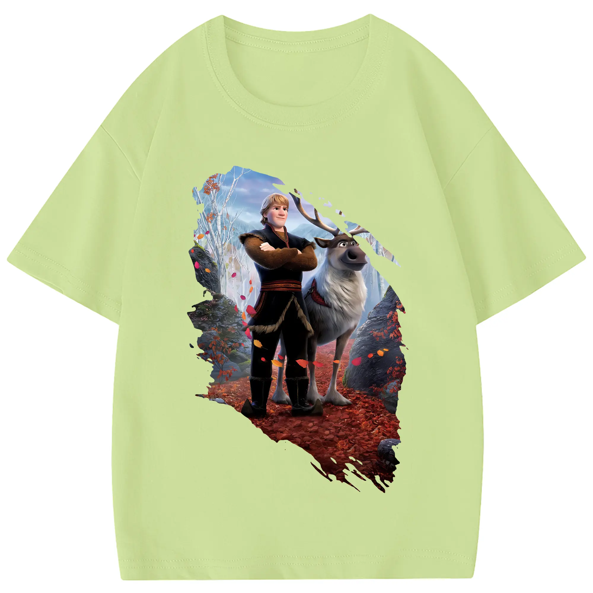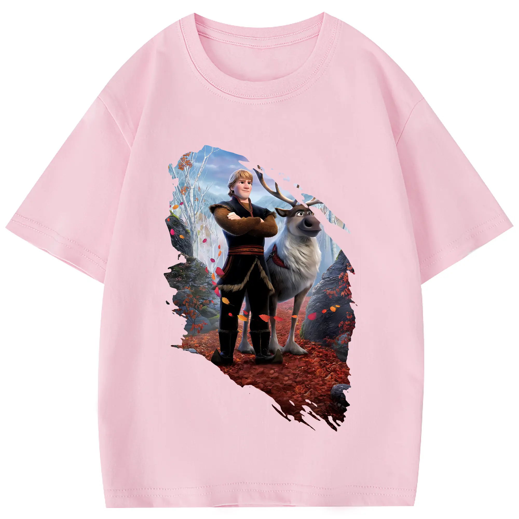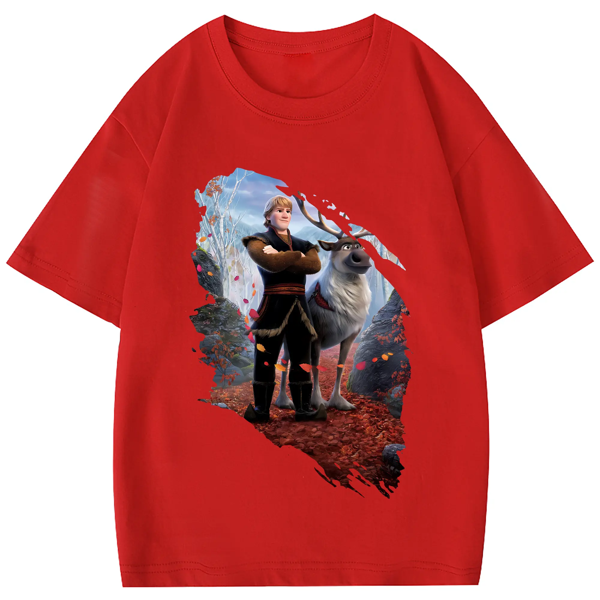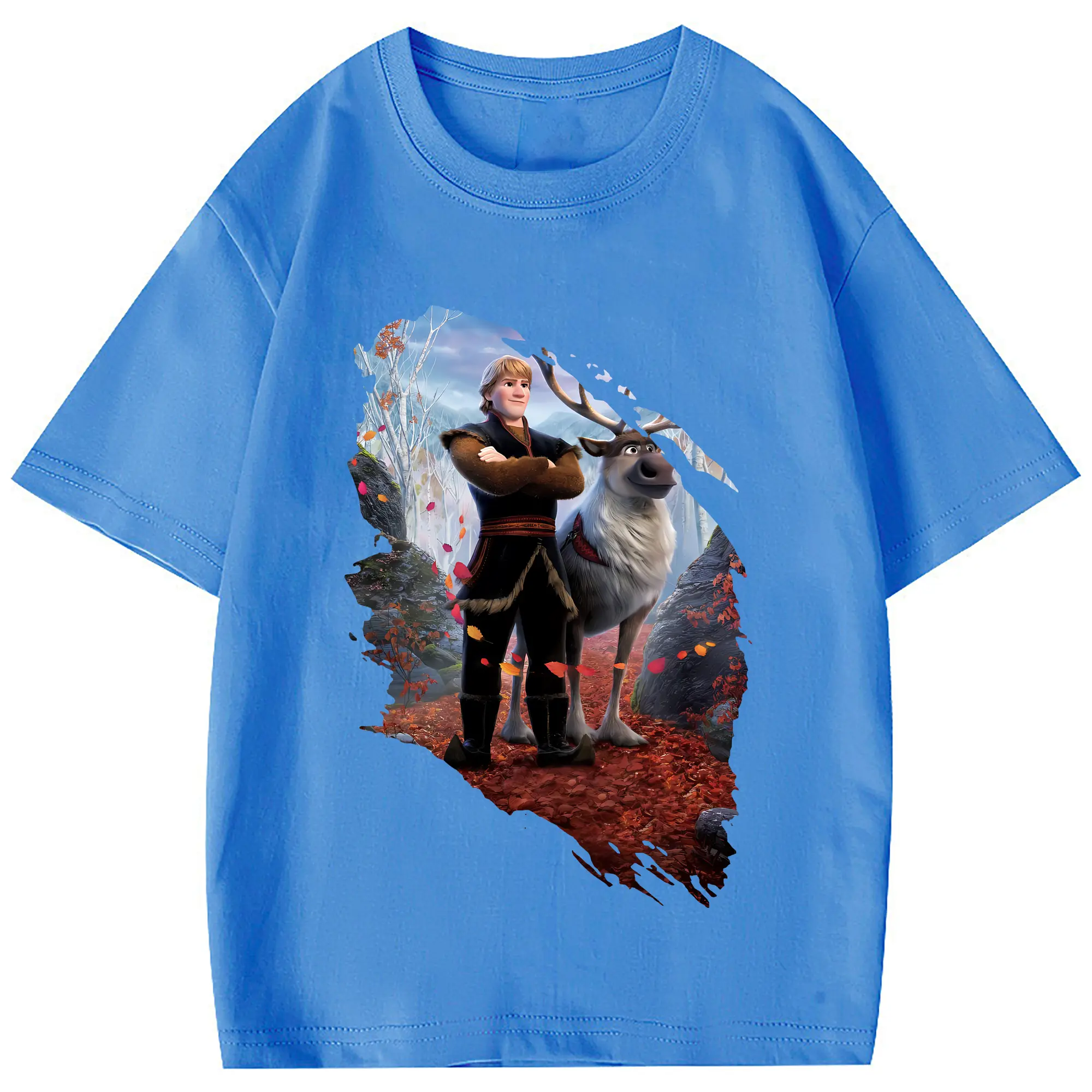 アナと雪の女王(Frozen) グッズ クリストフ(Kristoff) - 綿100% 半袖Tシャツ ・ フロントプリント ・ 快適 通気性 ・ 日常使い 散歩 スポーツ用