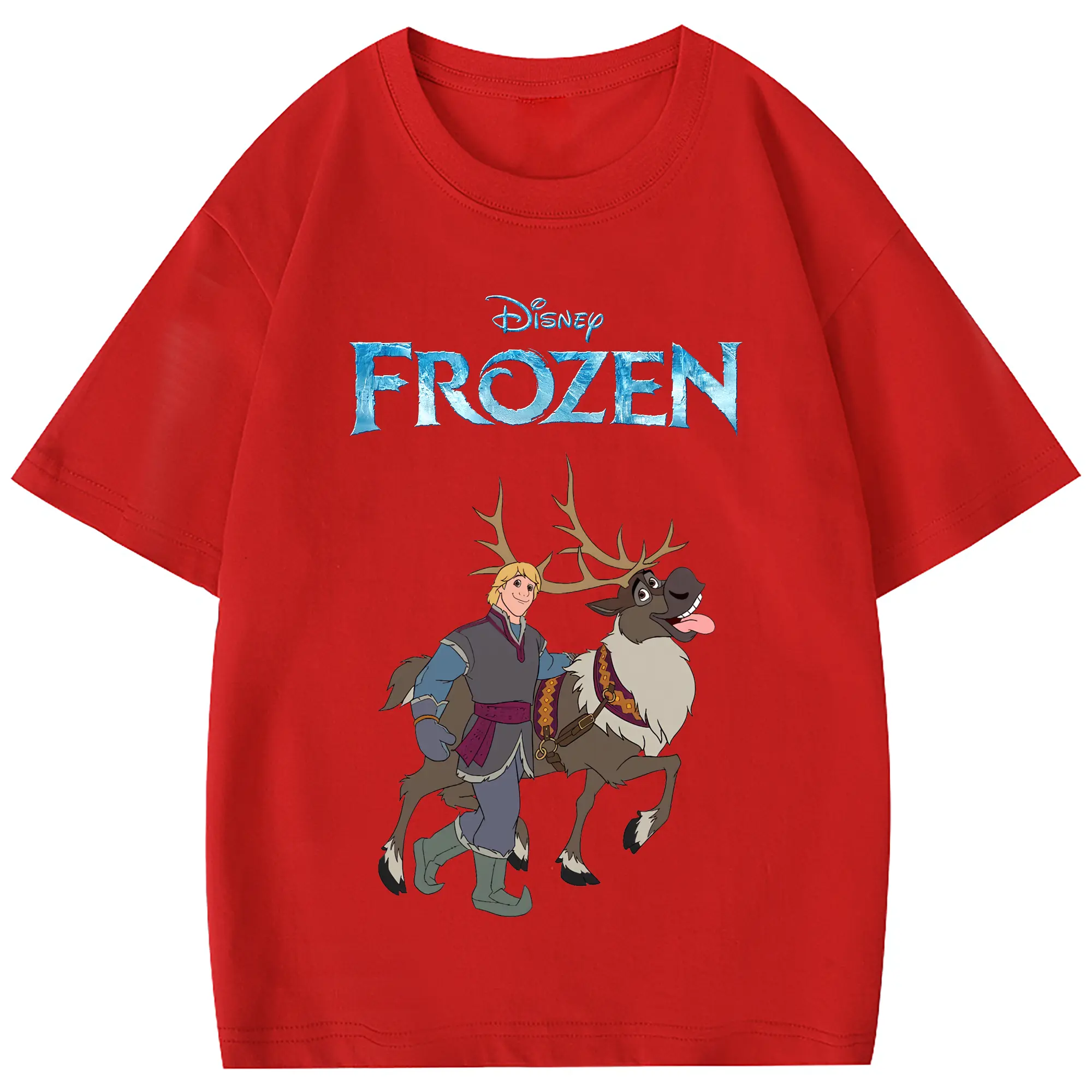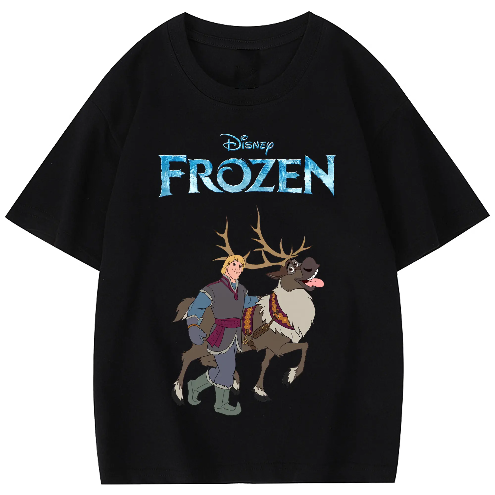 アナと雪の女王(Frozen) グッズ クリストフ(Kristoff) - 綿100% 半袖Tシャツ ・ フロントプリント ・ 快適 通気性 ・ 日常使い 散歩 スポーツ用
