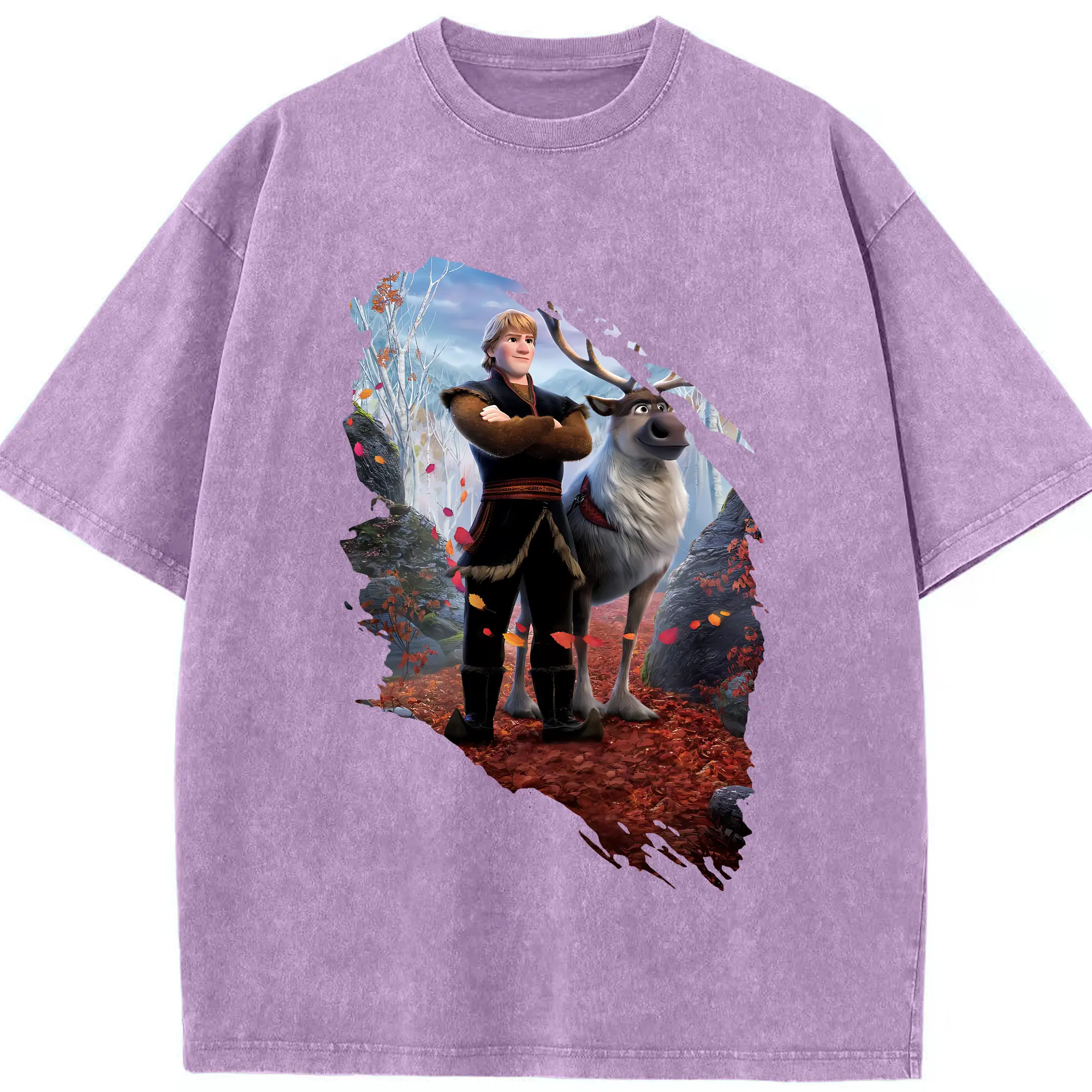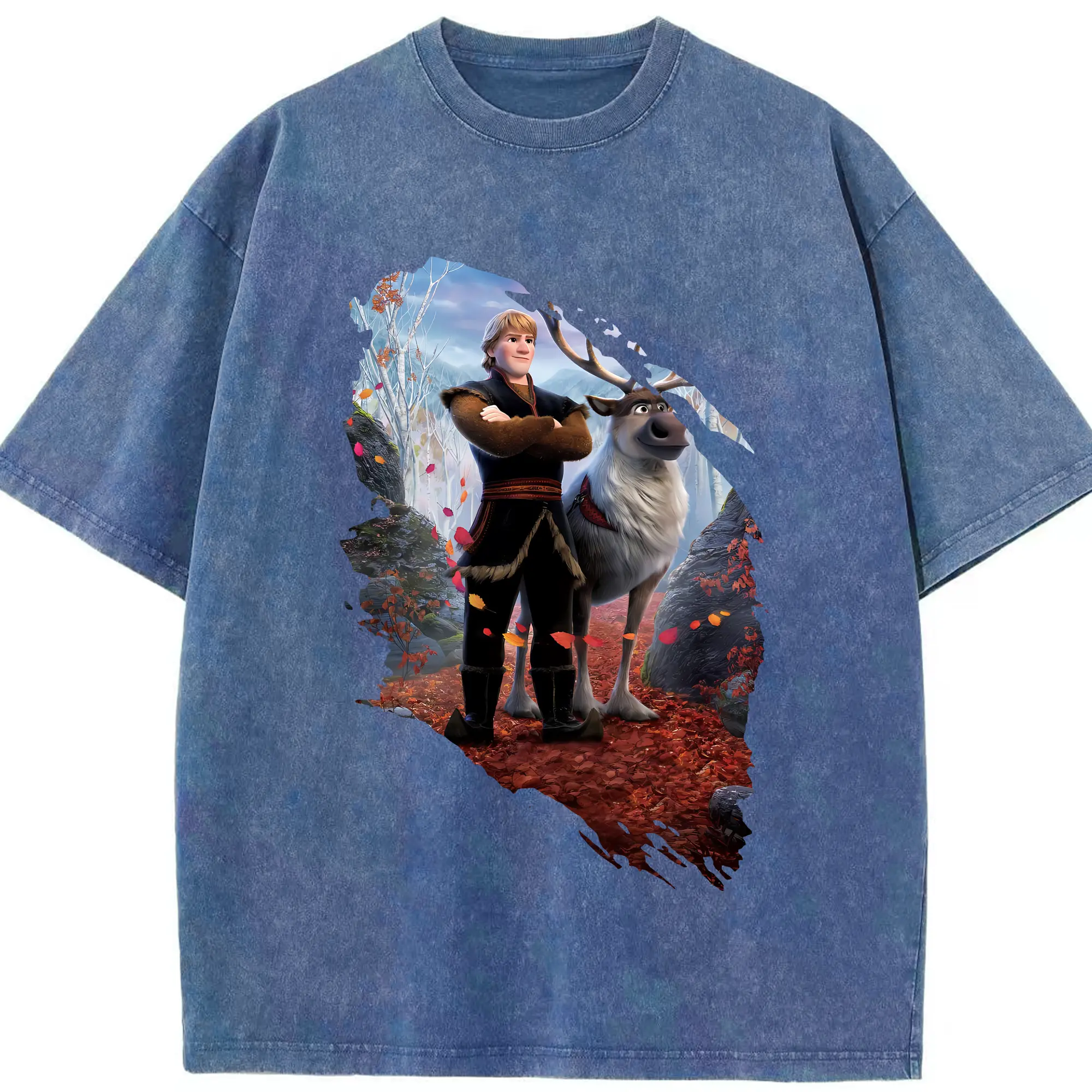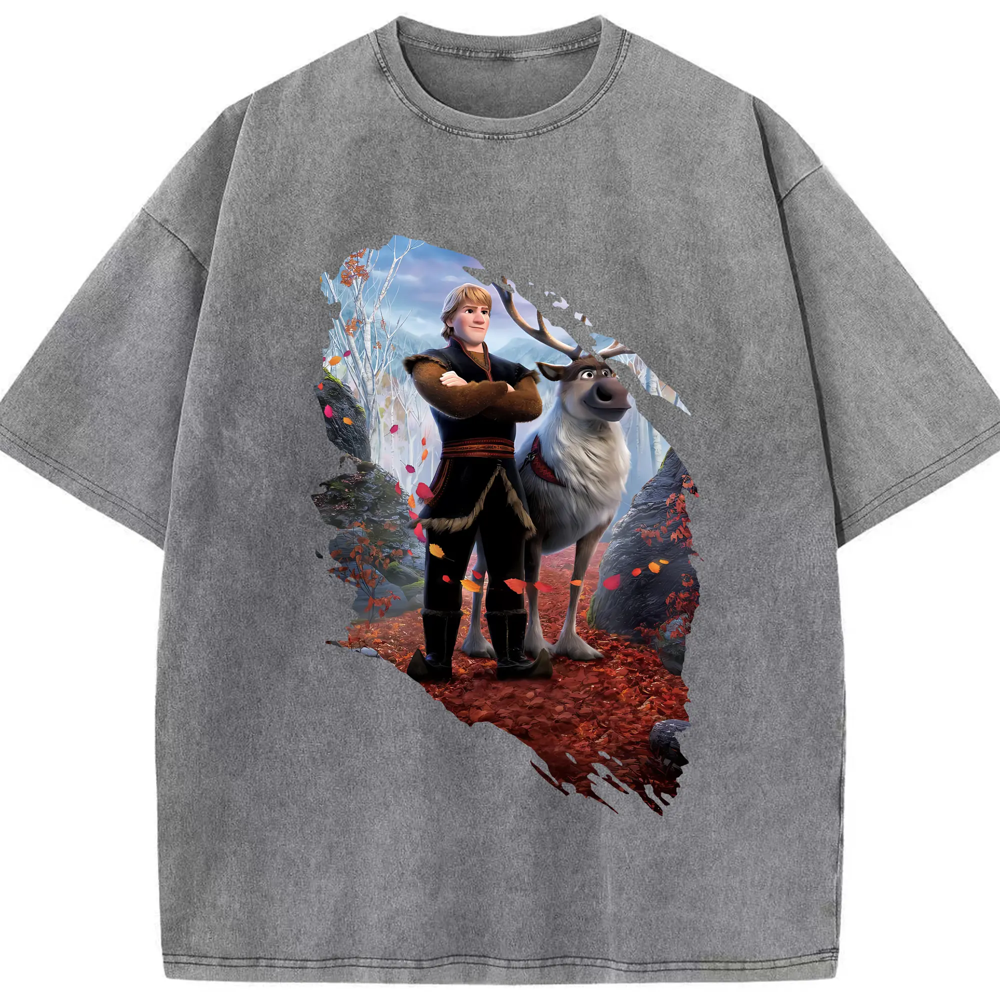 アナと雪の女王(Frozen) グッズ クリストフ(Kristoff) - 綿100% ヴィンテージ風 半袖Tシャツ ・ 背面プリント ・ 柔らか肌触り ・ 通気性 快適 ・ スポーツ カジュアル 外出用