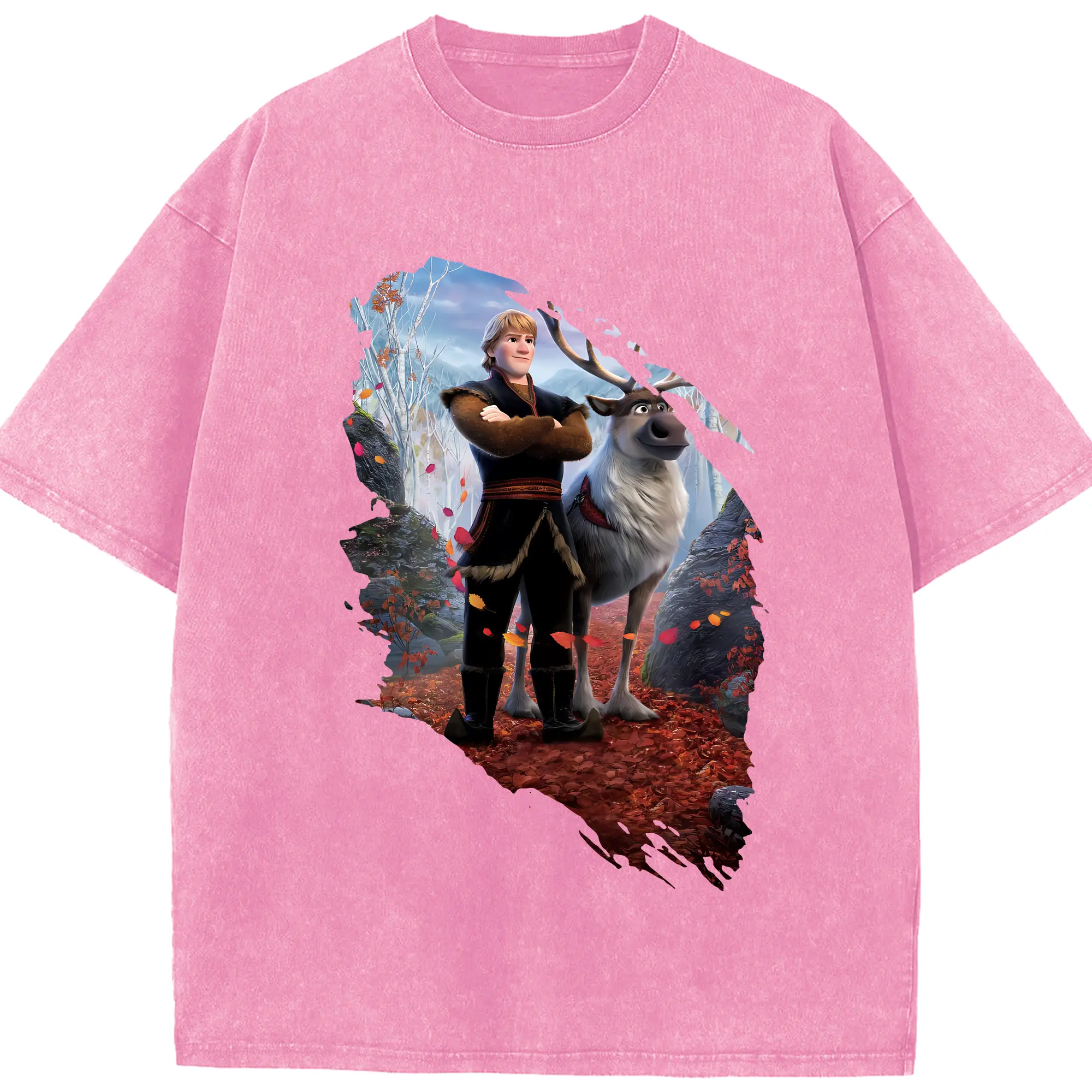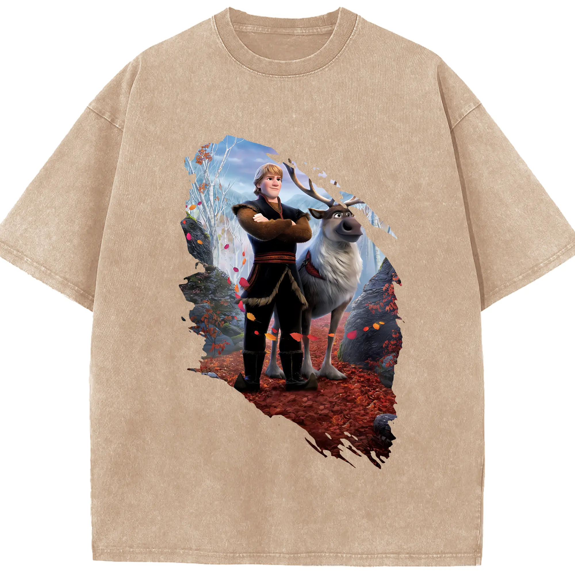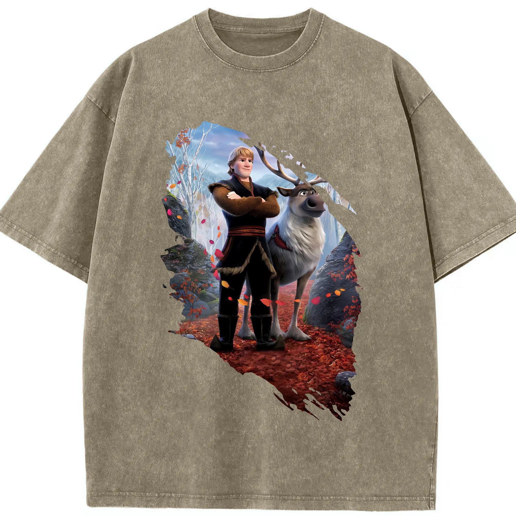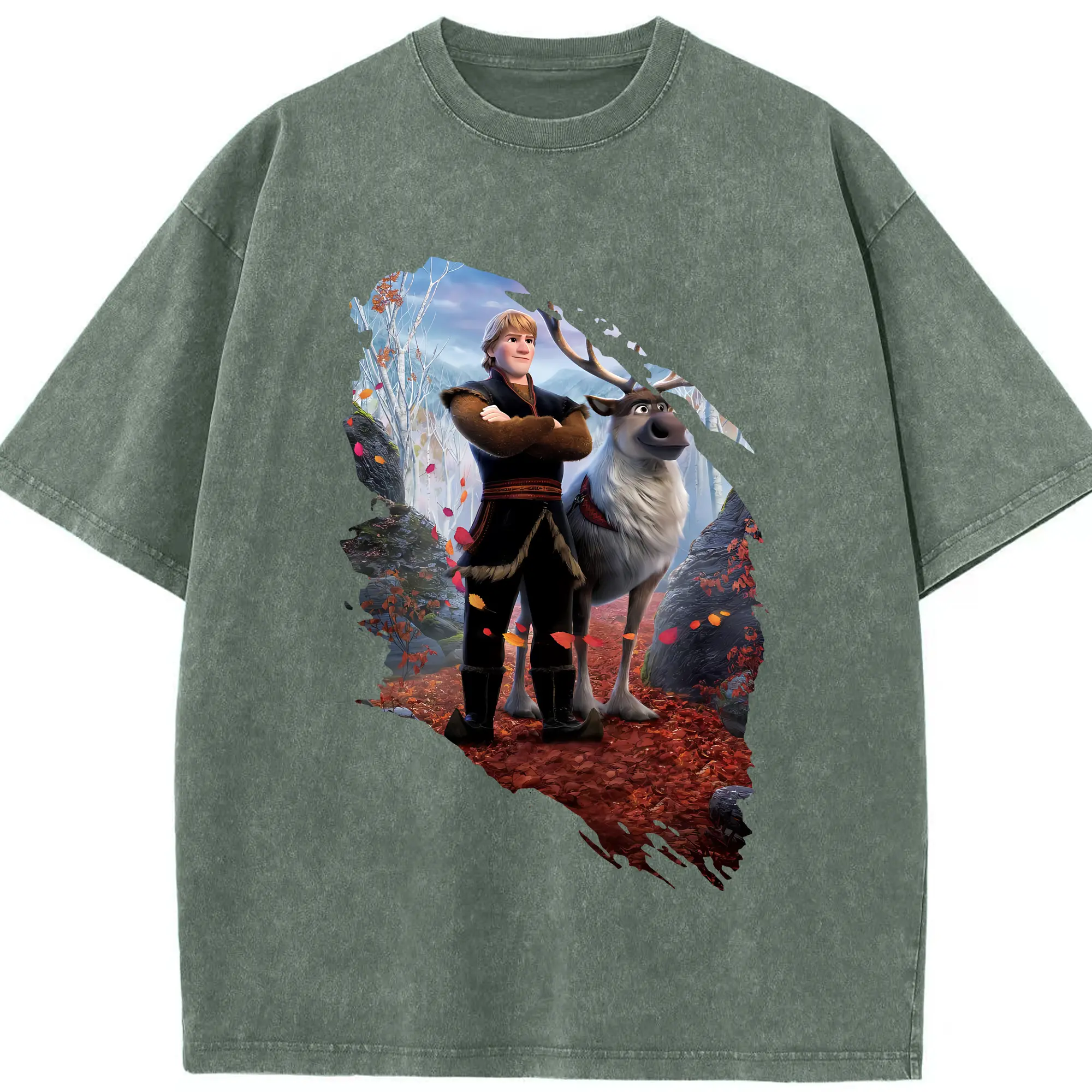 アナと雪の女王(Frozen) グッズ クリストフ(Kristoff) - 綿100% ヴィンテージ風 半袖Tシャツ ・ 背面プリント ・ 柔らか肌触り ・ 通気性 快適 ・ スポーツ カジュアル 外出用