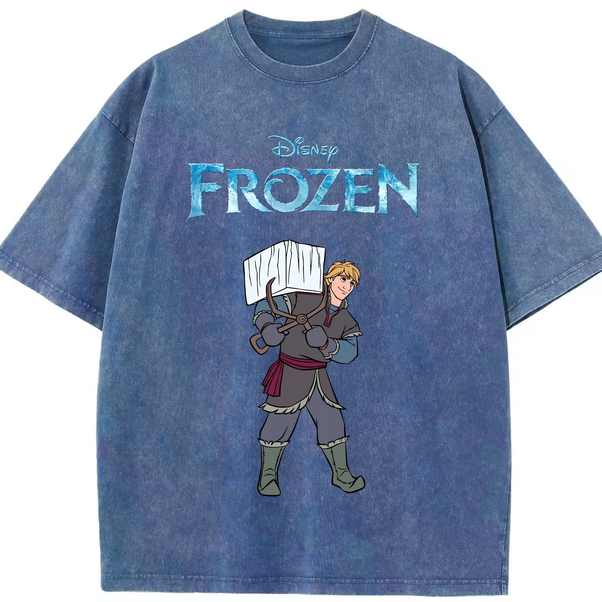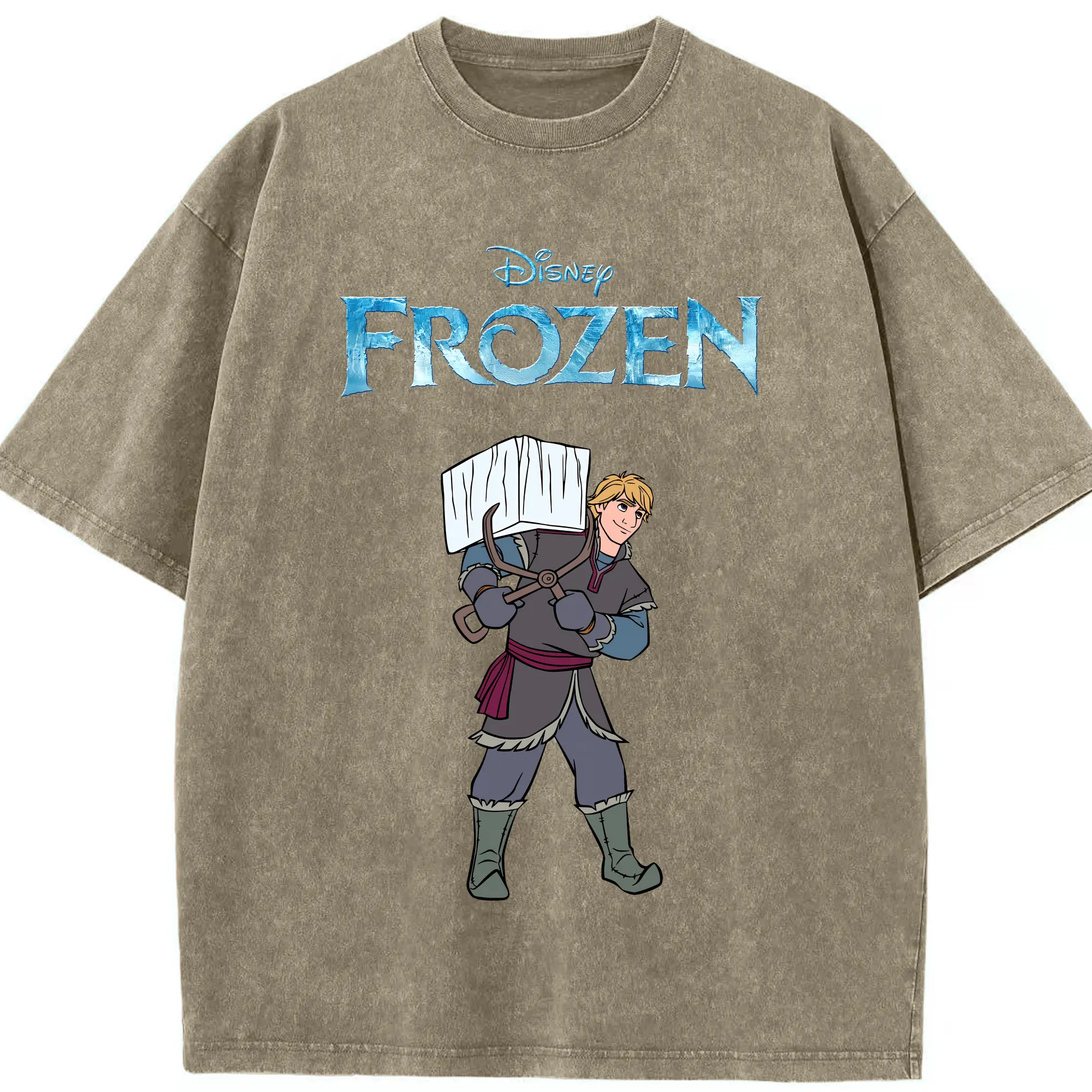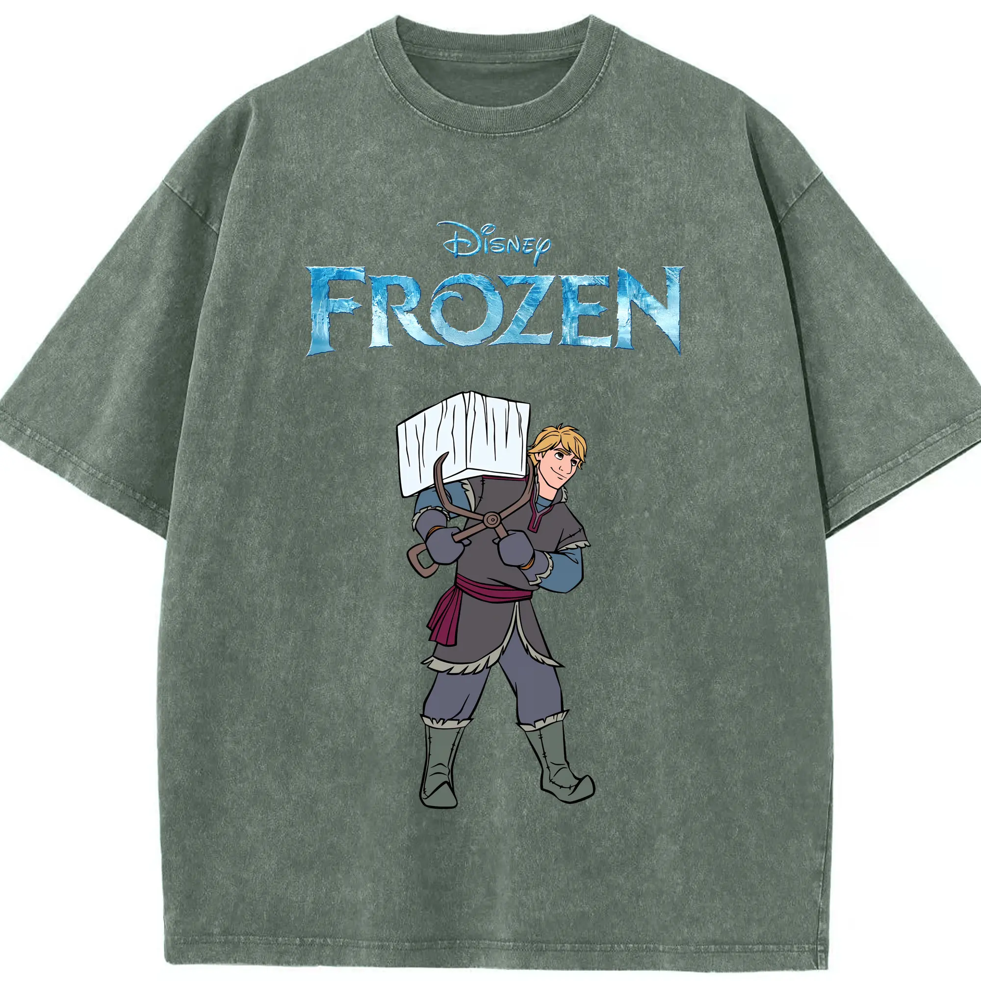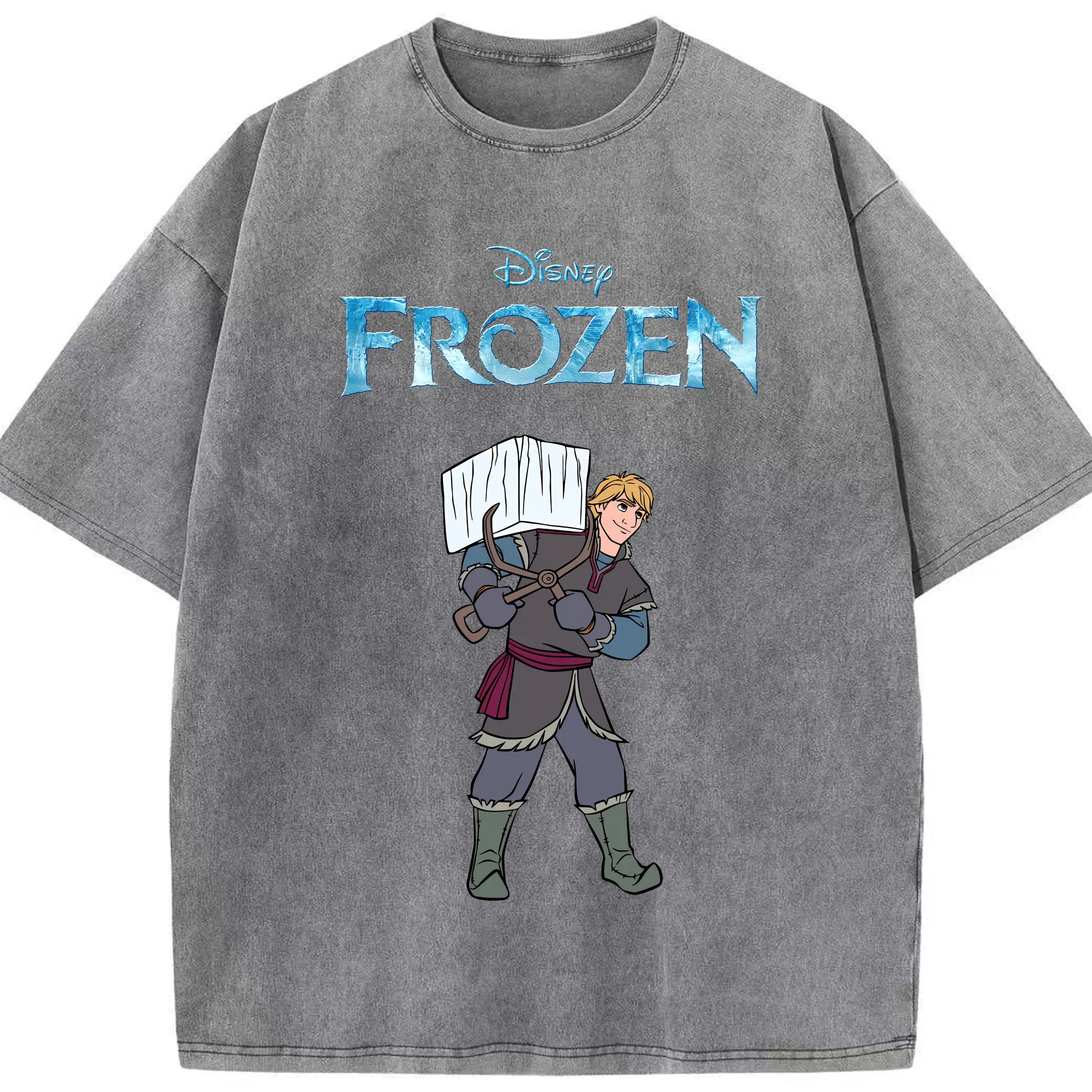 アナと雪の女王(Frozen) グッズ クリストフ(Kristoff) - 綿100% ヴィンテージ風 半袖Tシャツ ・ 背面プリント ・ 柔らか肌触り ・ 通気性 快適 ・ スポーツ カジュアル 外出用
