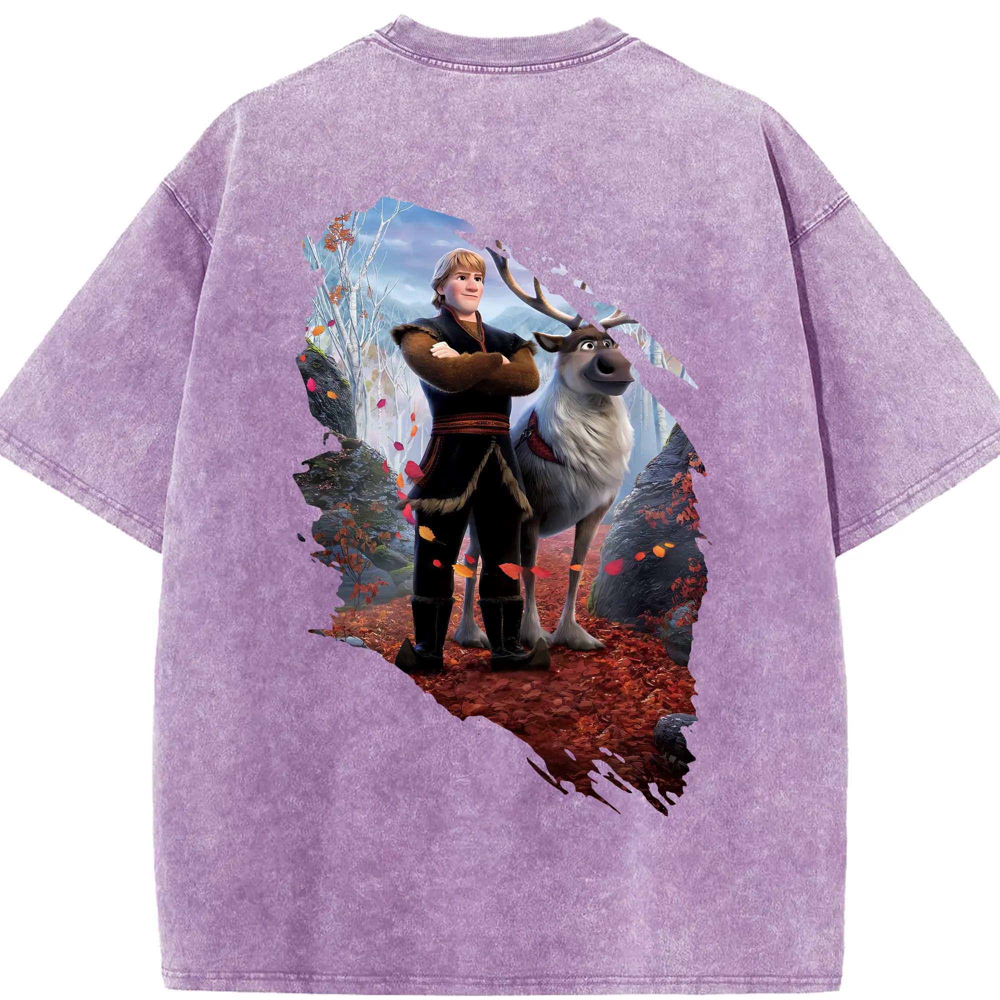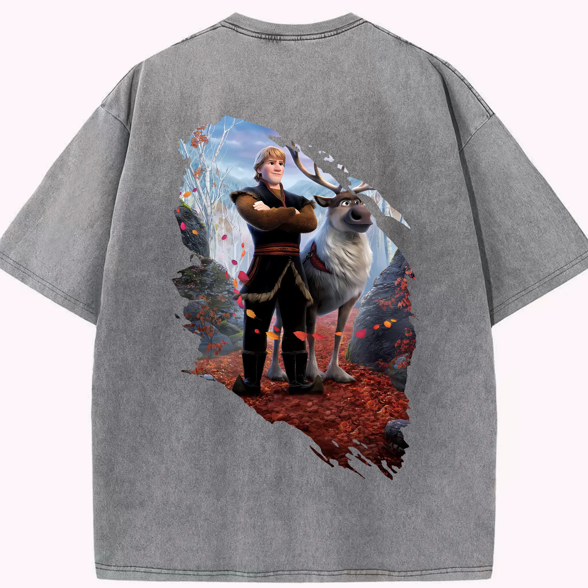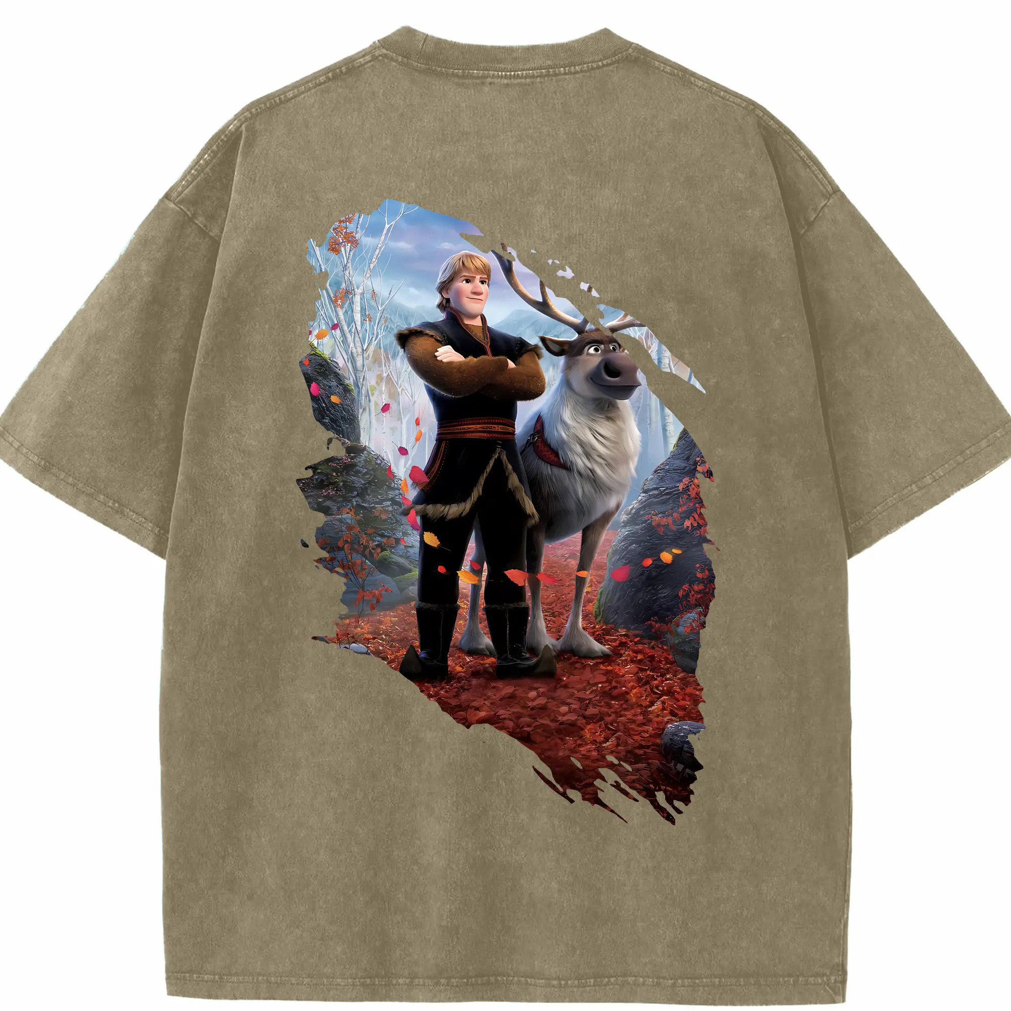 アナと雪の女王(Frozen) グッズ クリストフ(Kristoff) - 綿100% ヴィンテージ風 半袖Tシャツ ・ フロントプリント ・ 柔らか肌触り ・ 通気性 快適 ・ スポーツ カジュアル 外出用