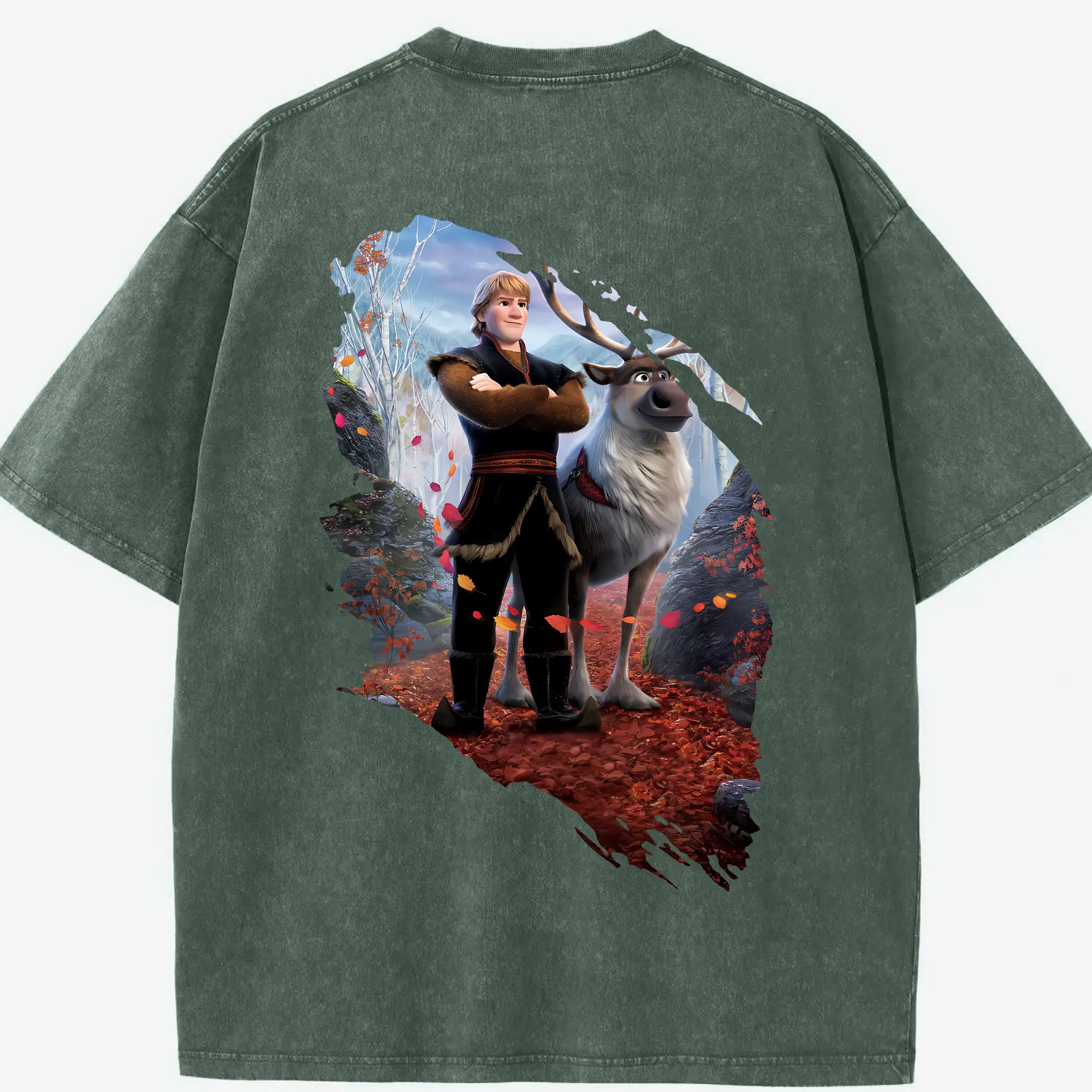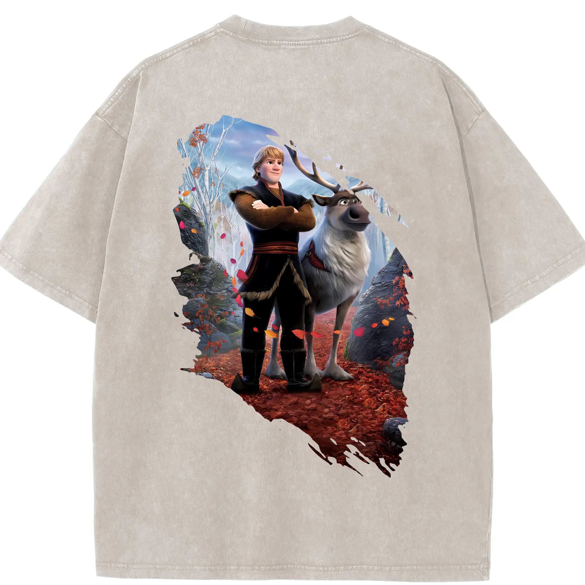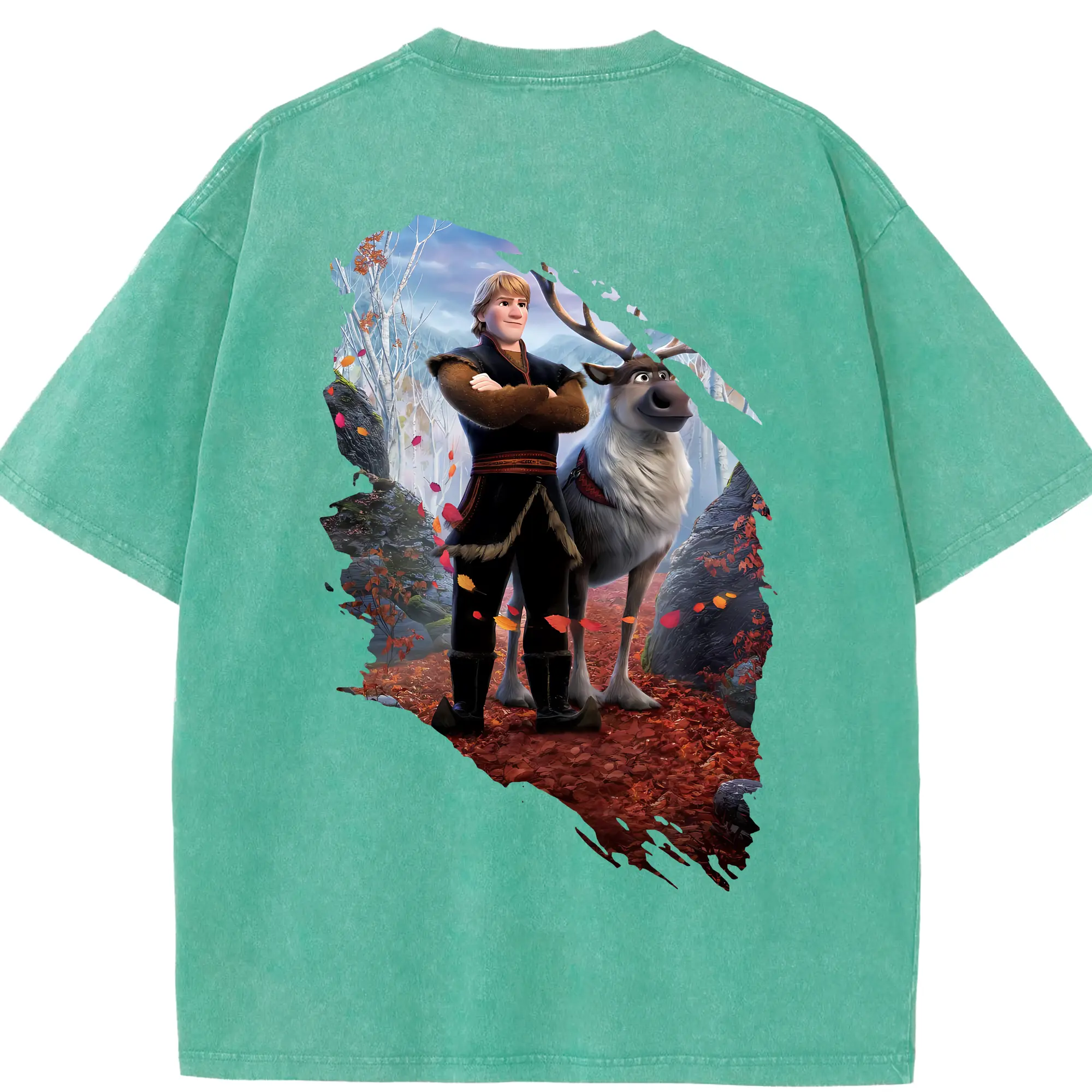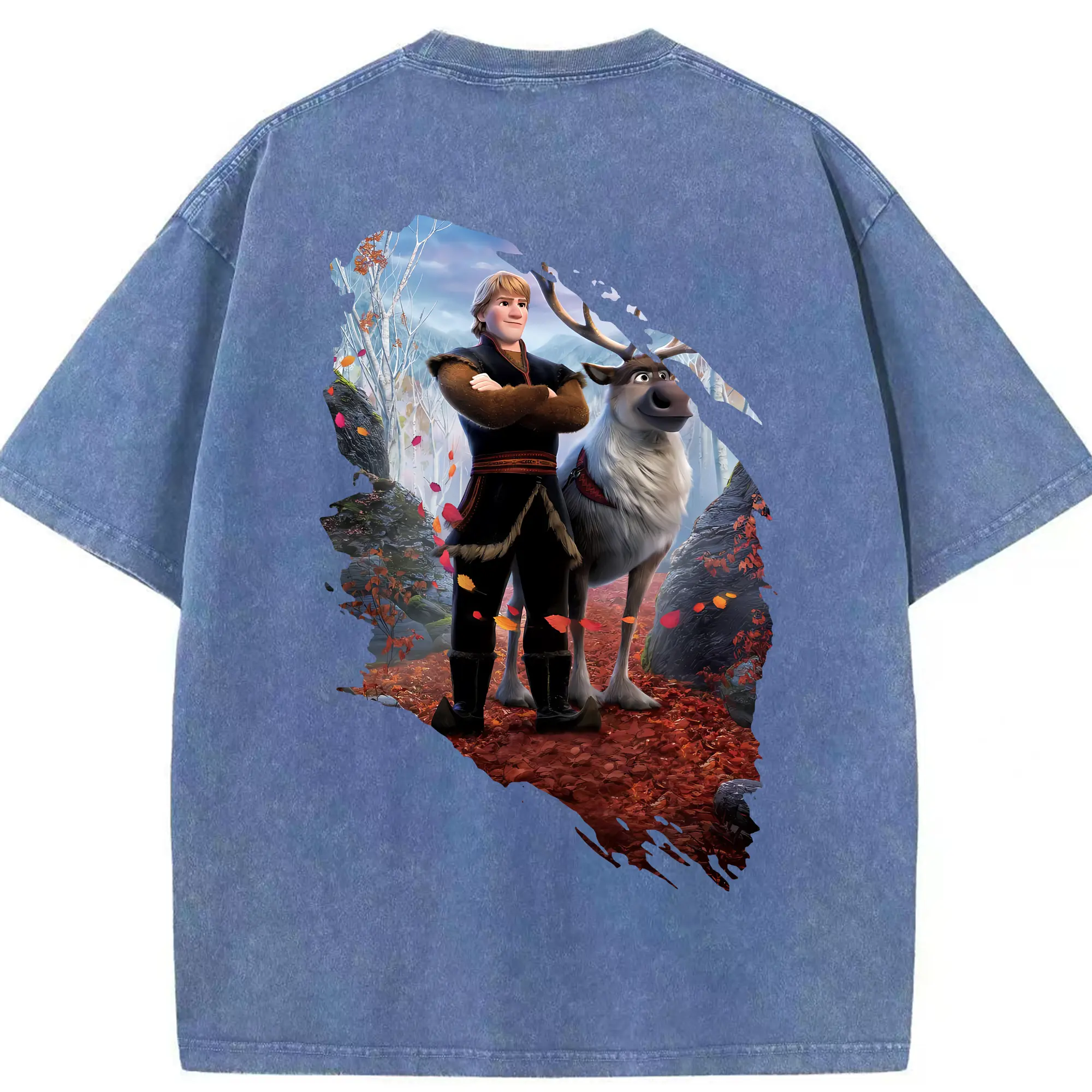 アナと雪の女王(Frozen) グッズ クリストフ(Kristoff) - 綿100% ヴィンテージ風 半袖Tシャツ ・ フロントプリント ・ 柔らか肌触り ・ 通気性 快適 ・ スポーツ カジュアル 外出用