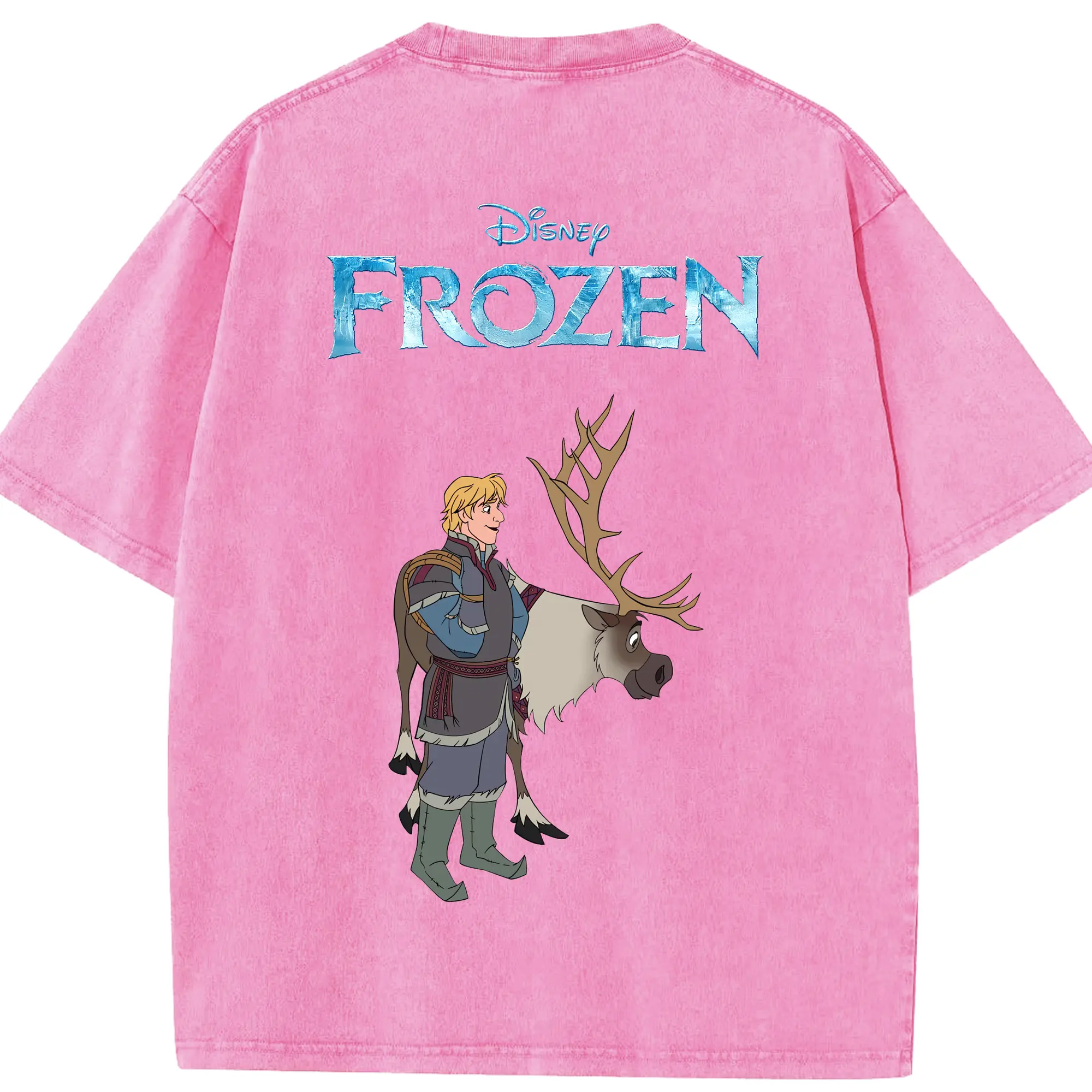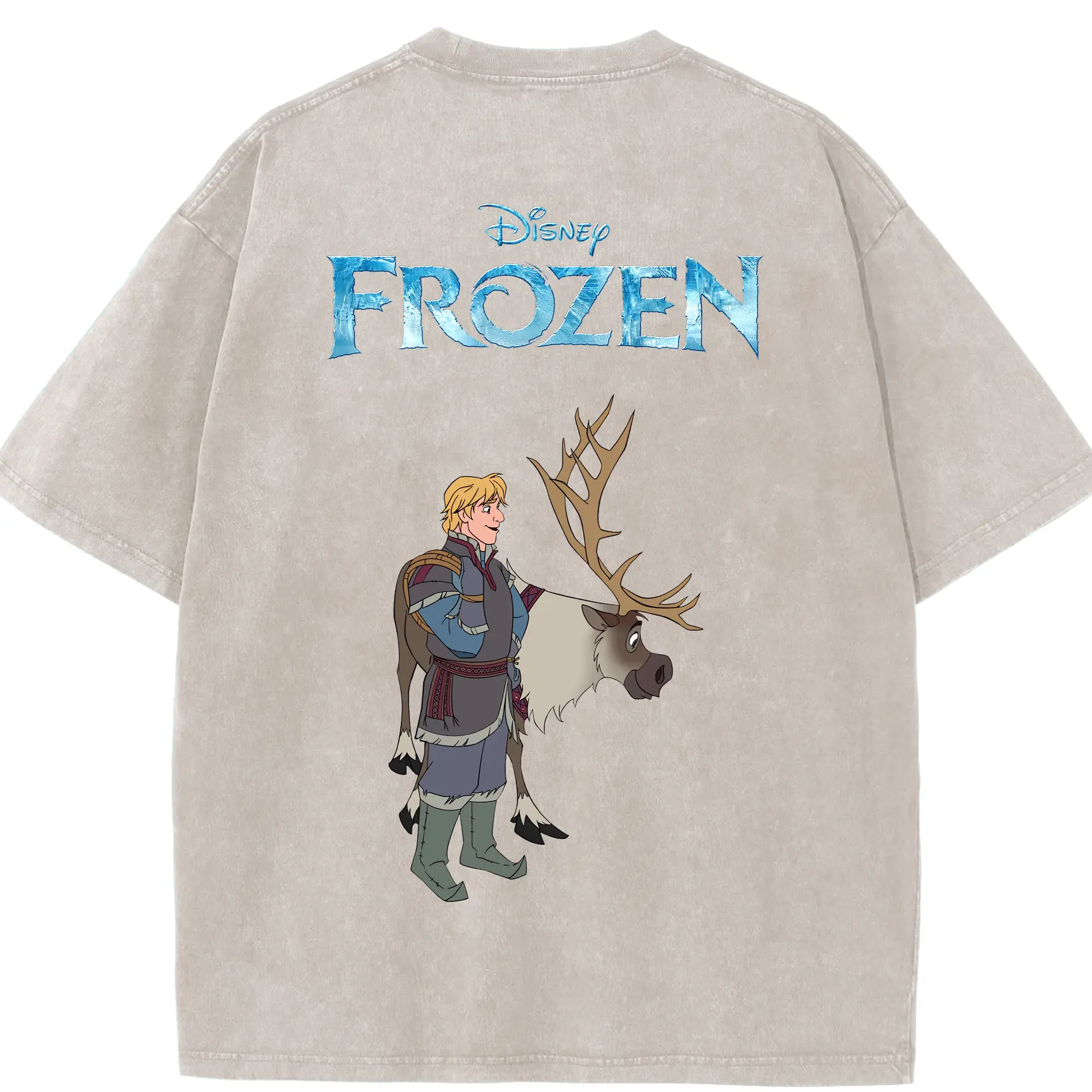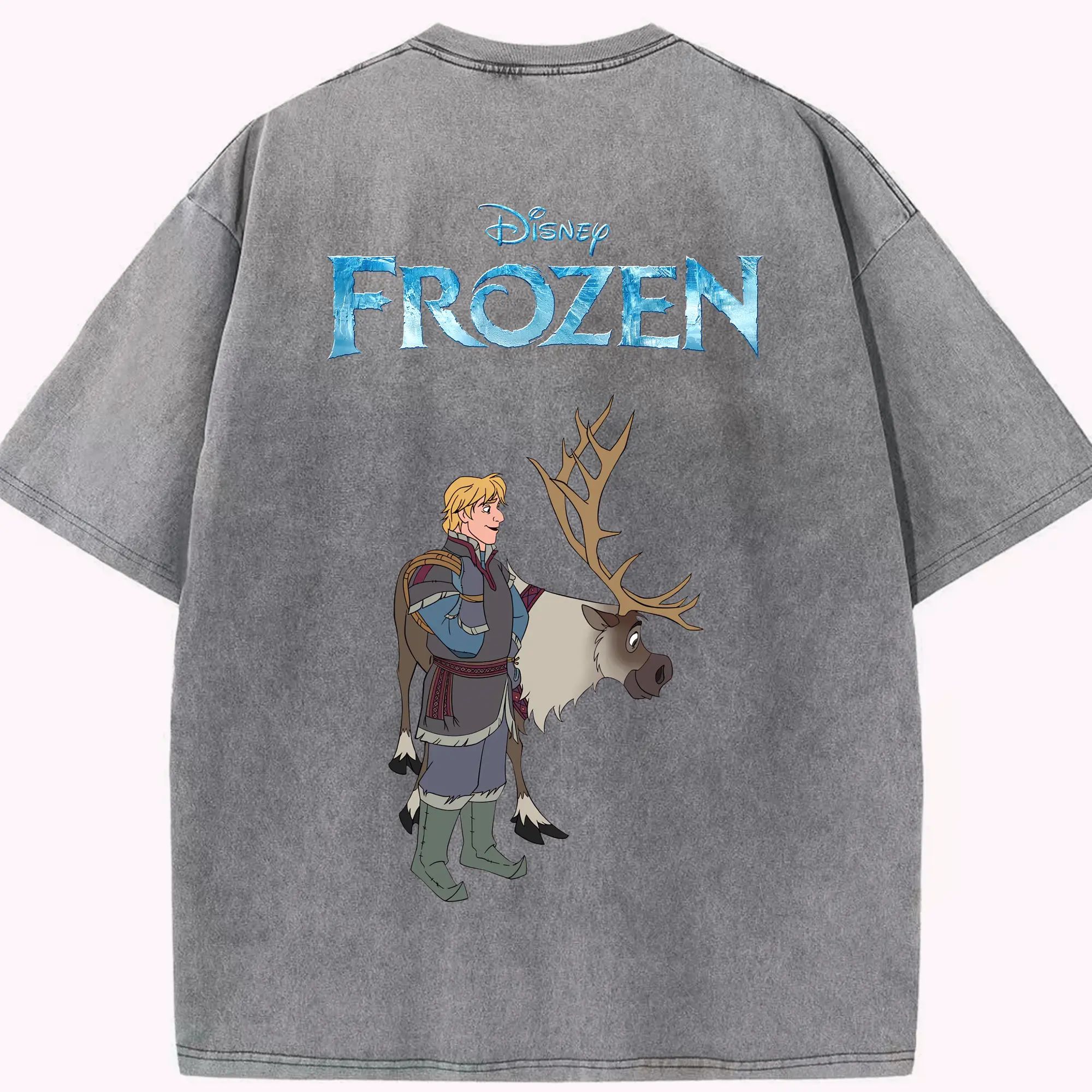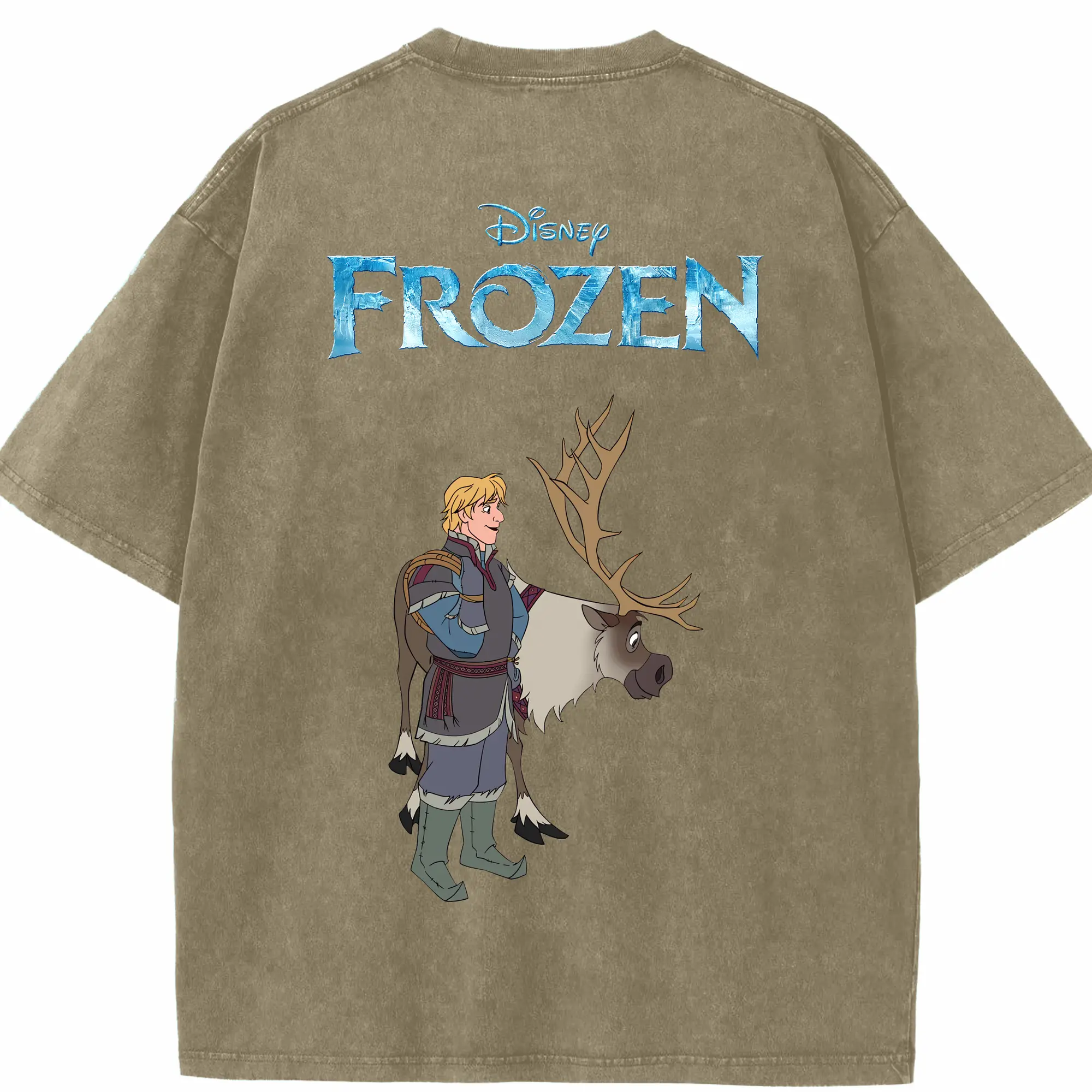 アナと雪の女王(Frozen) グッズ クリストフ(Kristoff) - 綿100% ヴィンテージ風 半袖Tシャツ ・ フロントプリント ・ 柔らか肌触り ・ 通気性 快適 ・ スポーツ カジュアル 外出用