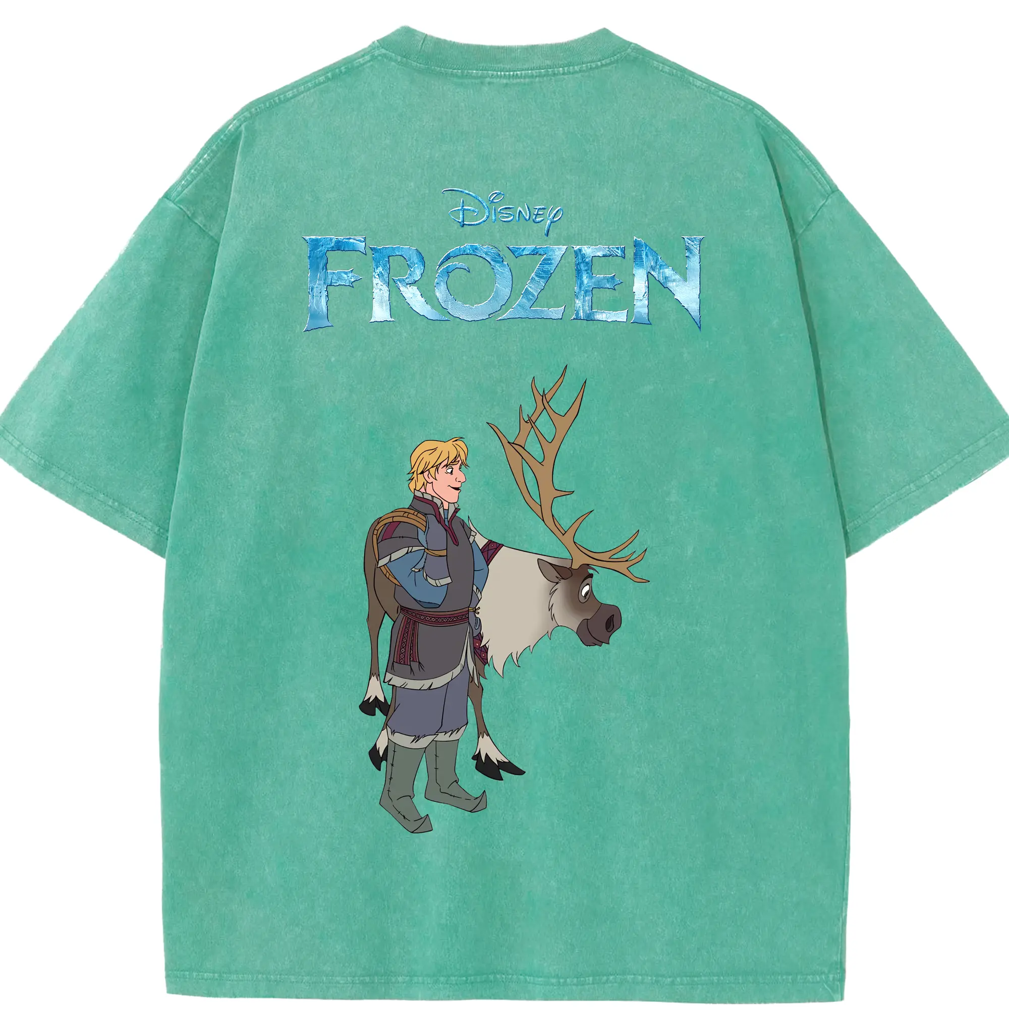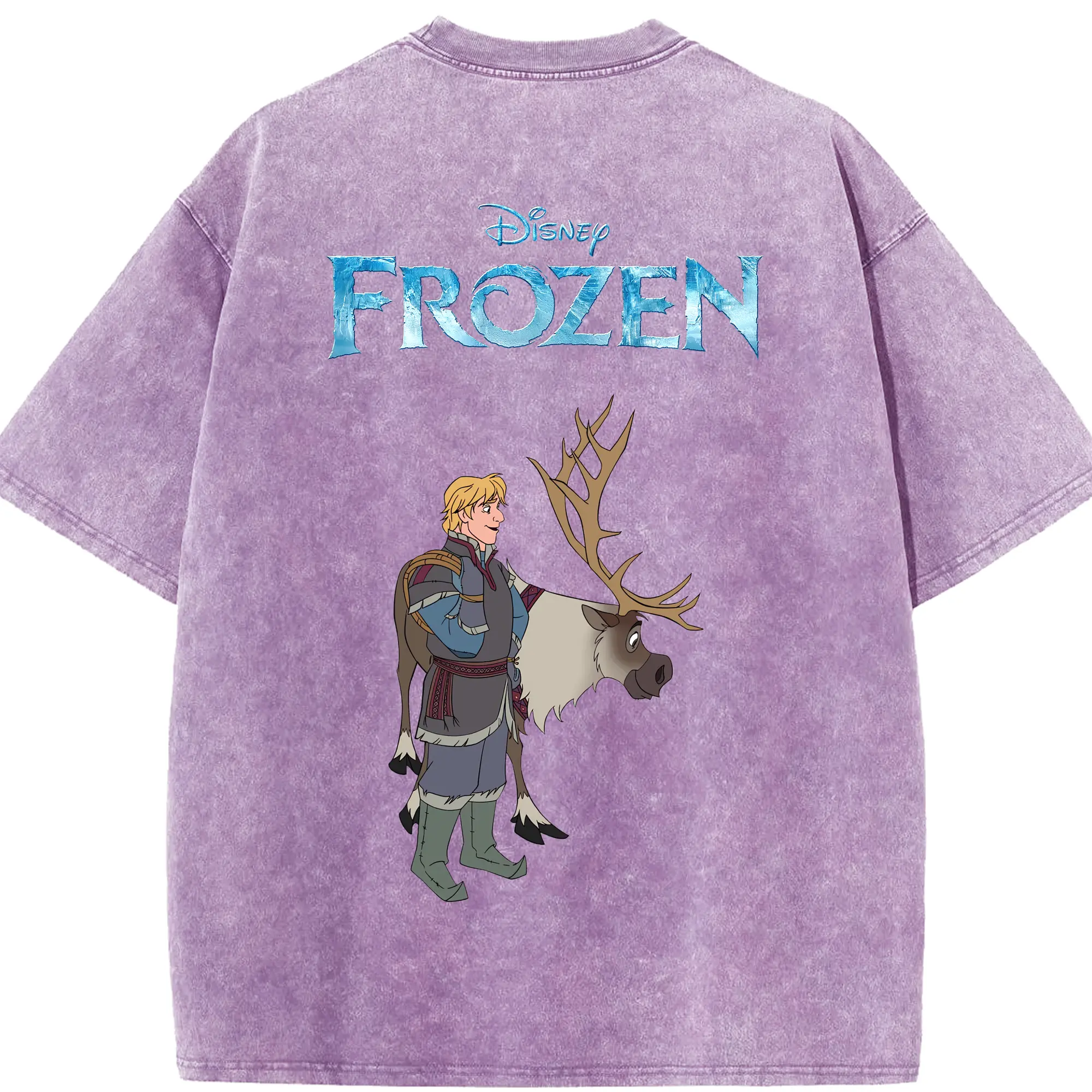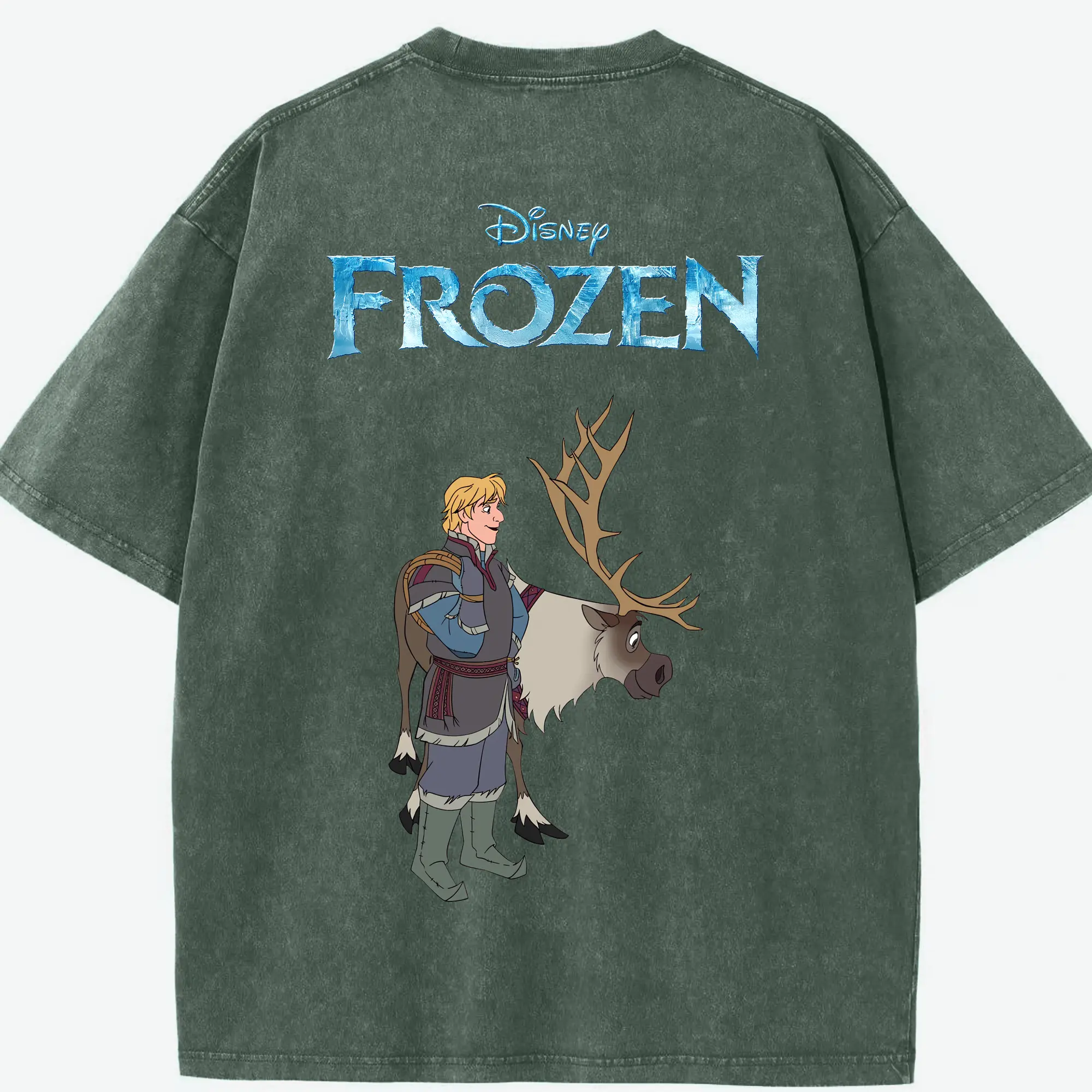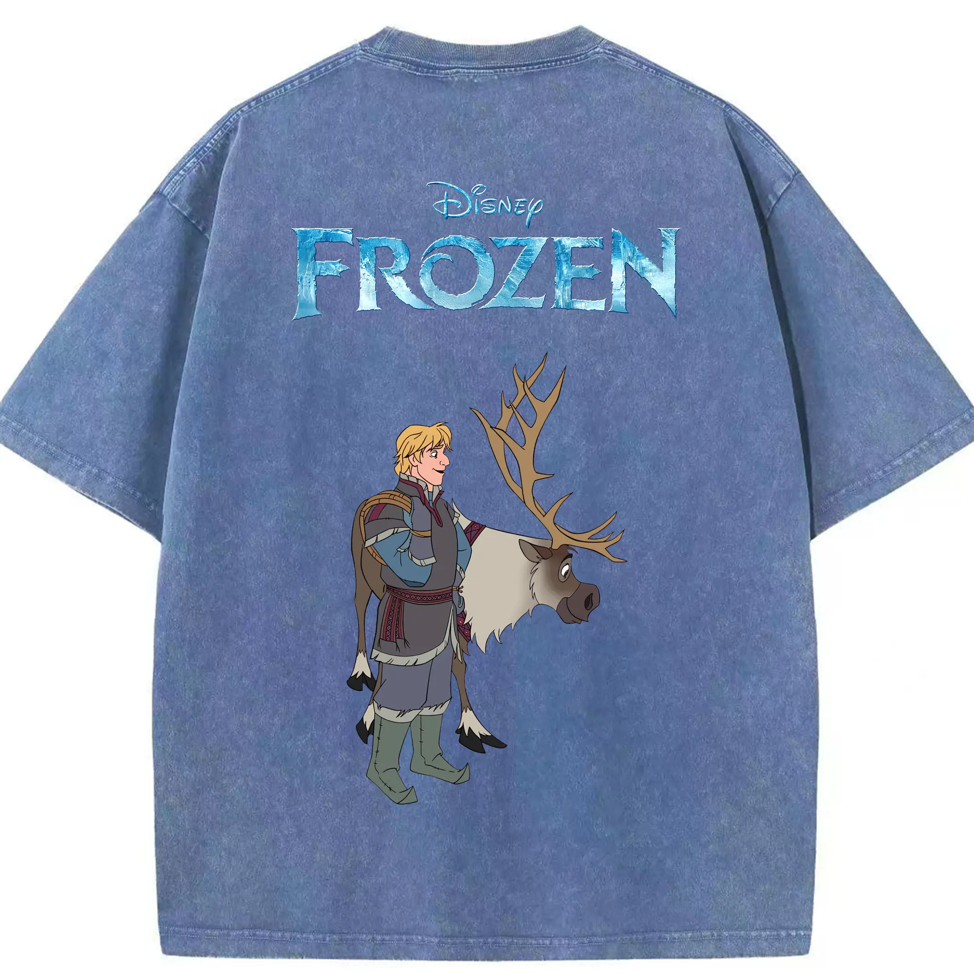 アナと雪の女王(Frozen) グッズ クリストフ(Kristoff) - 綿100% ヴィンテージ風 半袖Tシャツ ・ フロントプリント ・ 柔らか肌触り ・ 通気性 快適 ・ スポーツ カジュアル 外出用