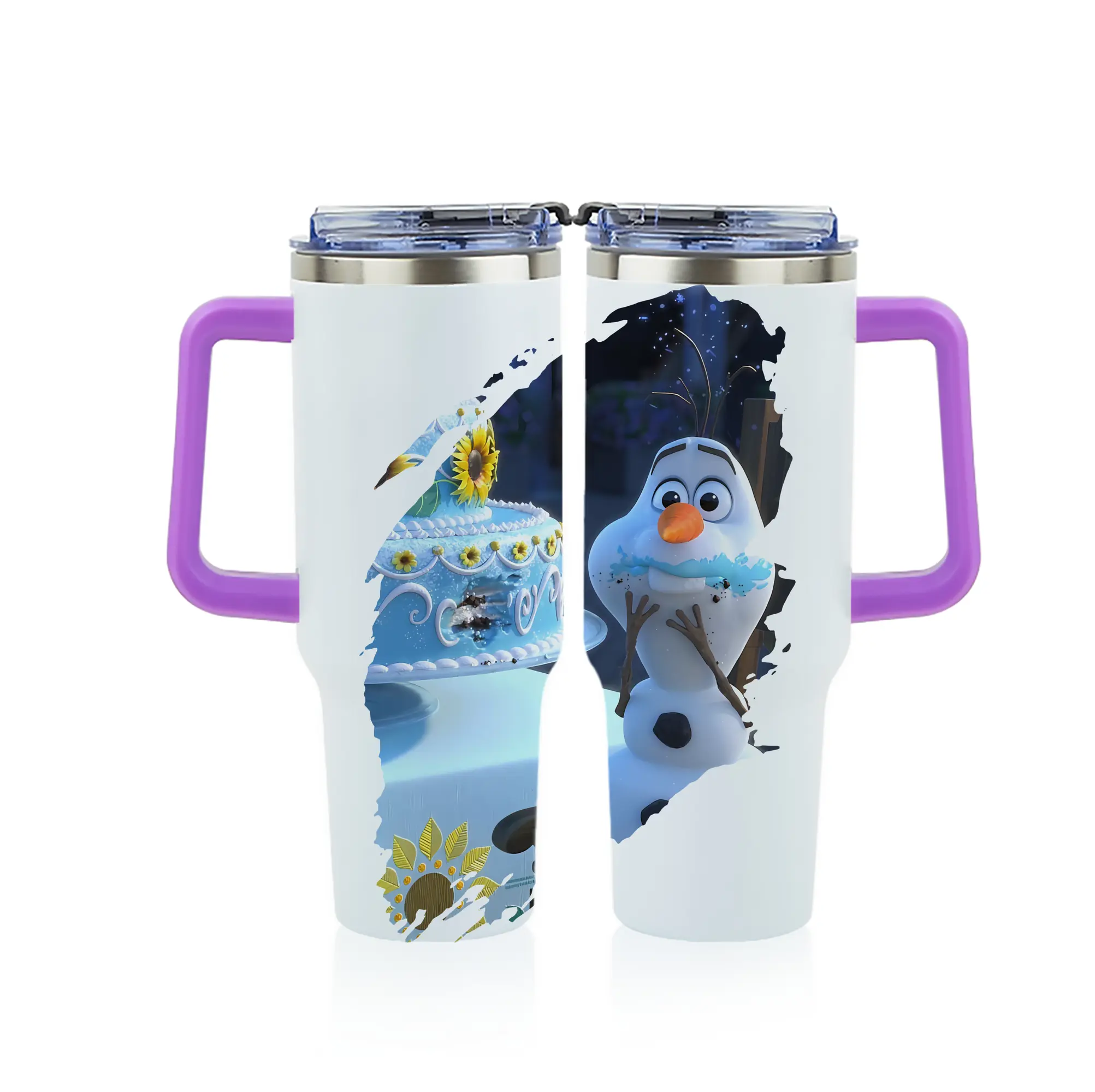 アナと雪の女王(Frozen) グッズ オラフ(Olaf) - 1200mL フルプリント車用タンブラー ・ 304ステンレス 内側 ・ 201ステンレス 外側 ・ 保温 保冷 ・ 通勤 ドライブ アウトドア用