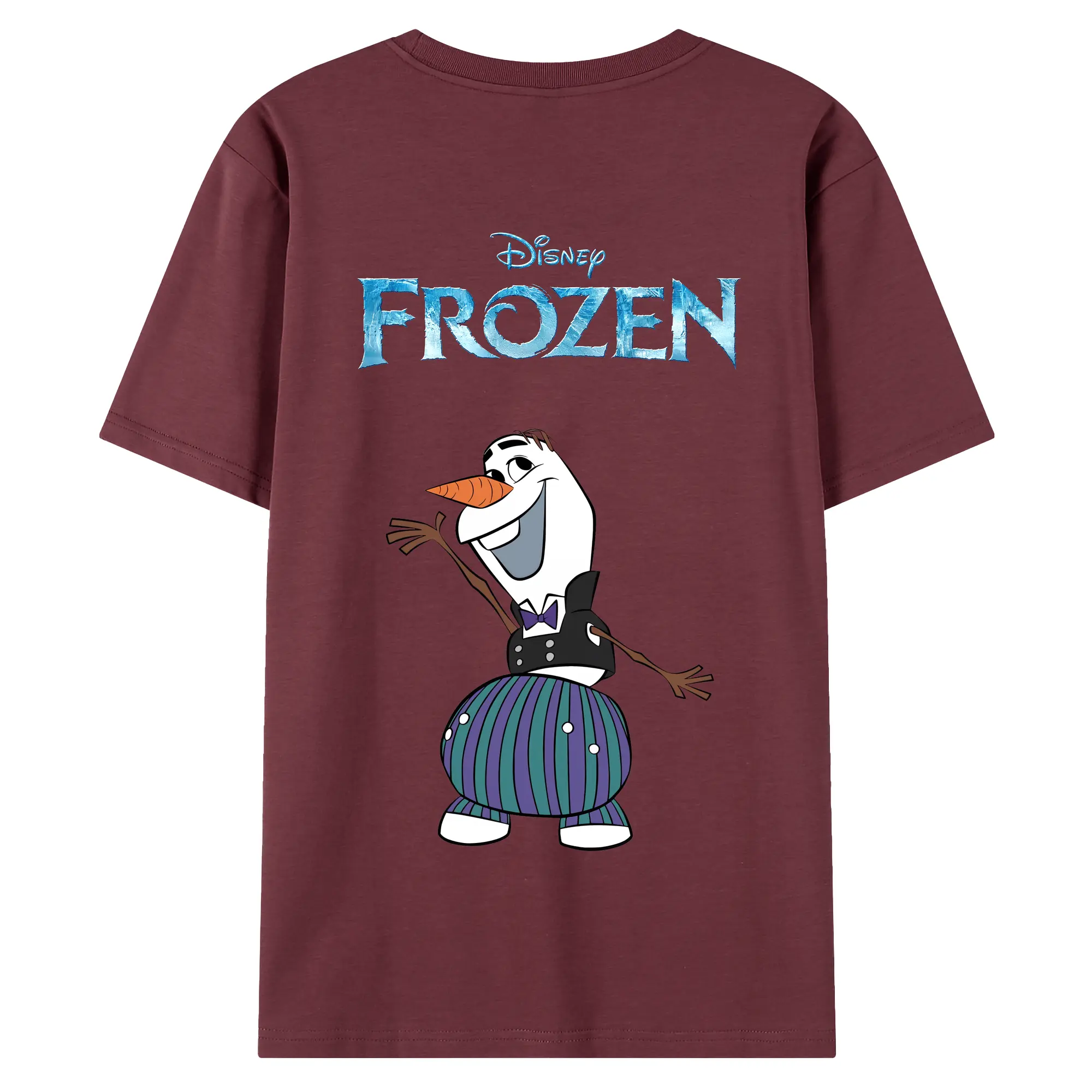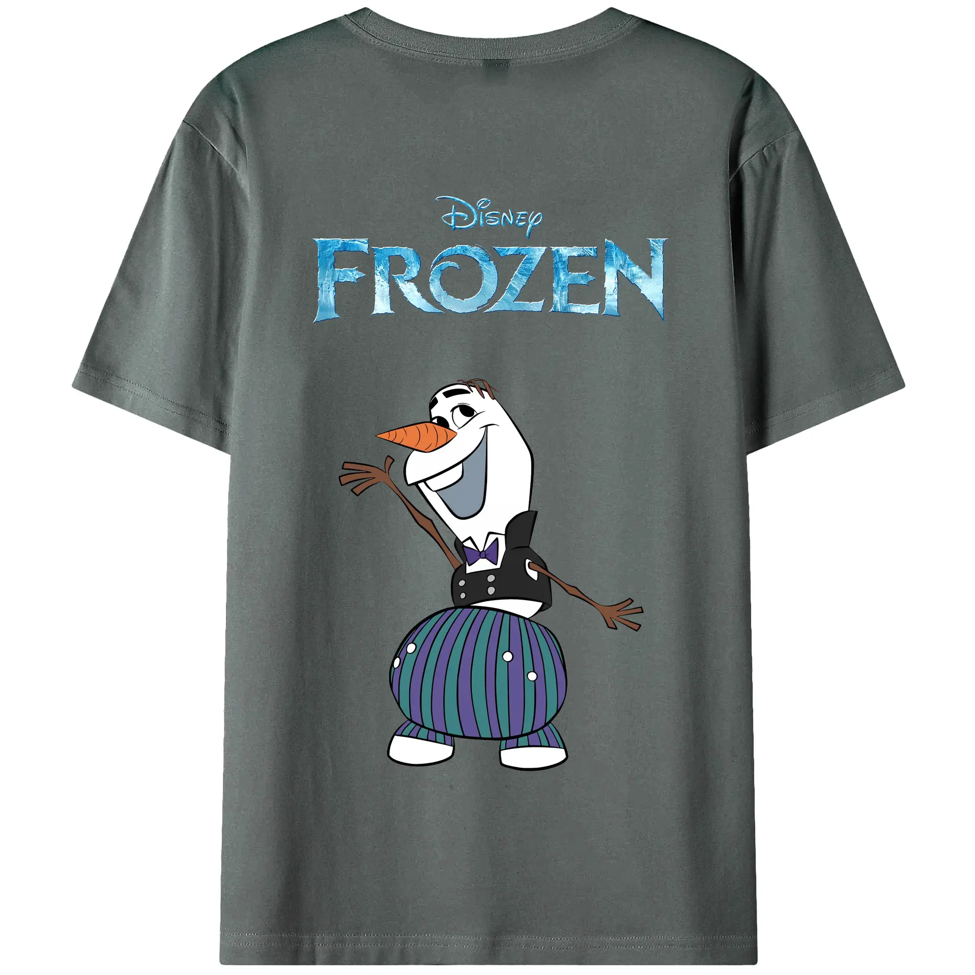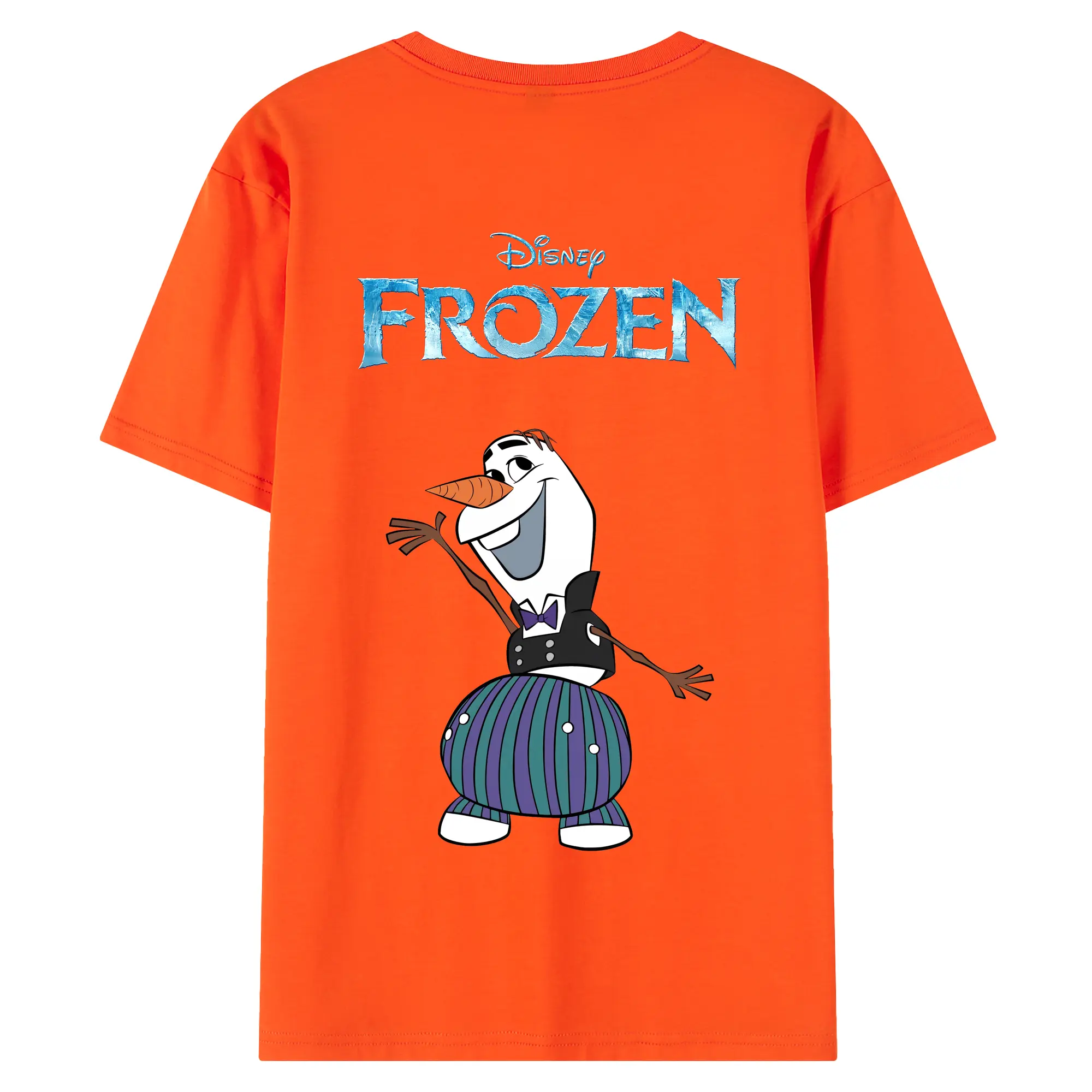 アナと雪の女王(Frozen) グッズ オラフ(Olaf) - 綿100% ヴィンテージ風 半袖Tシャツ ・ 背面プリント ・ 柔らか肌触り ・ 通気性 快適 ・ スポーツ カジュアル 外出用