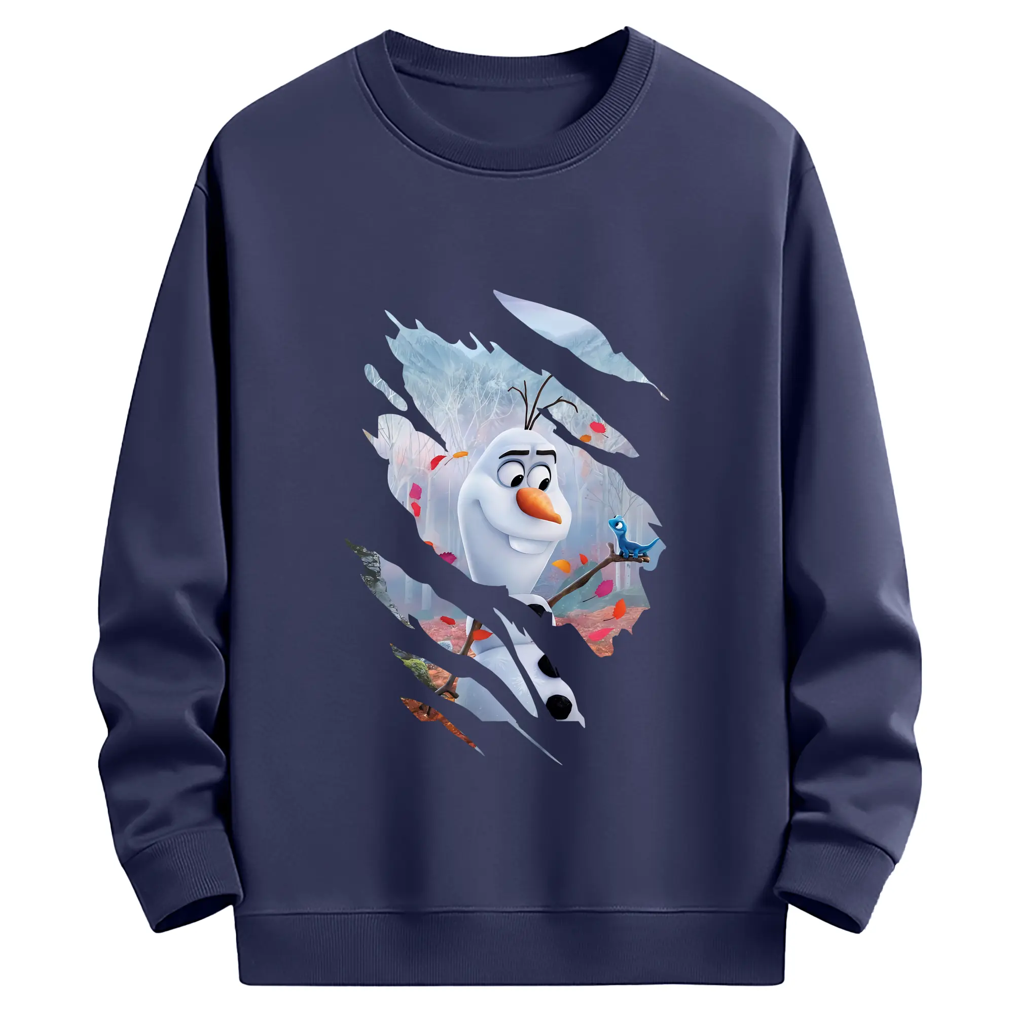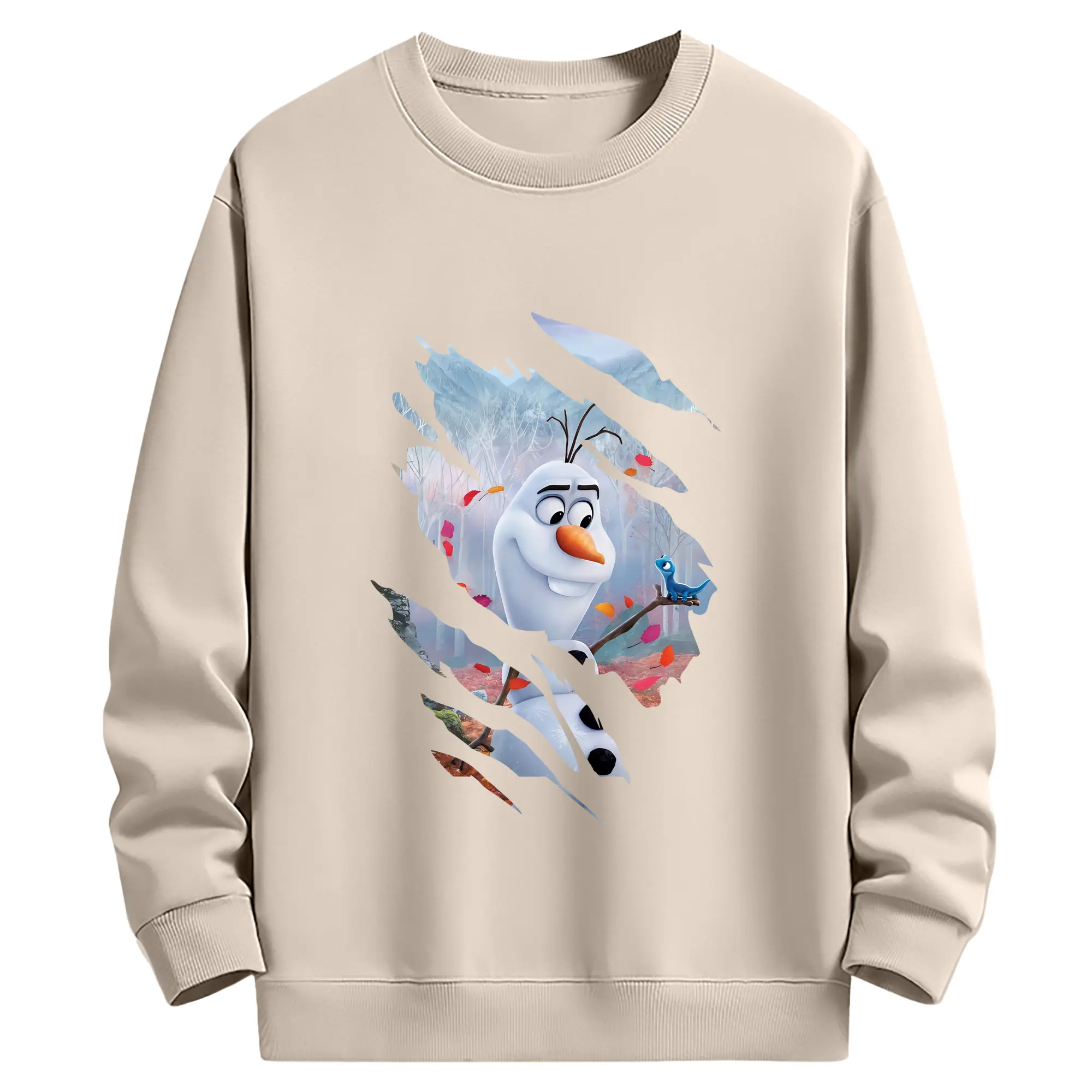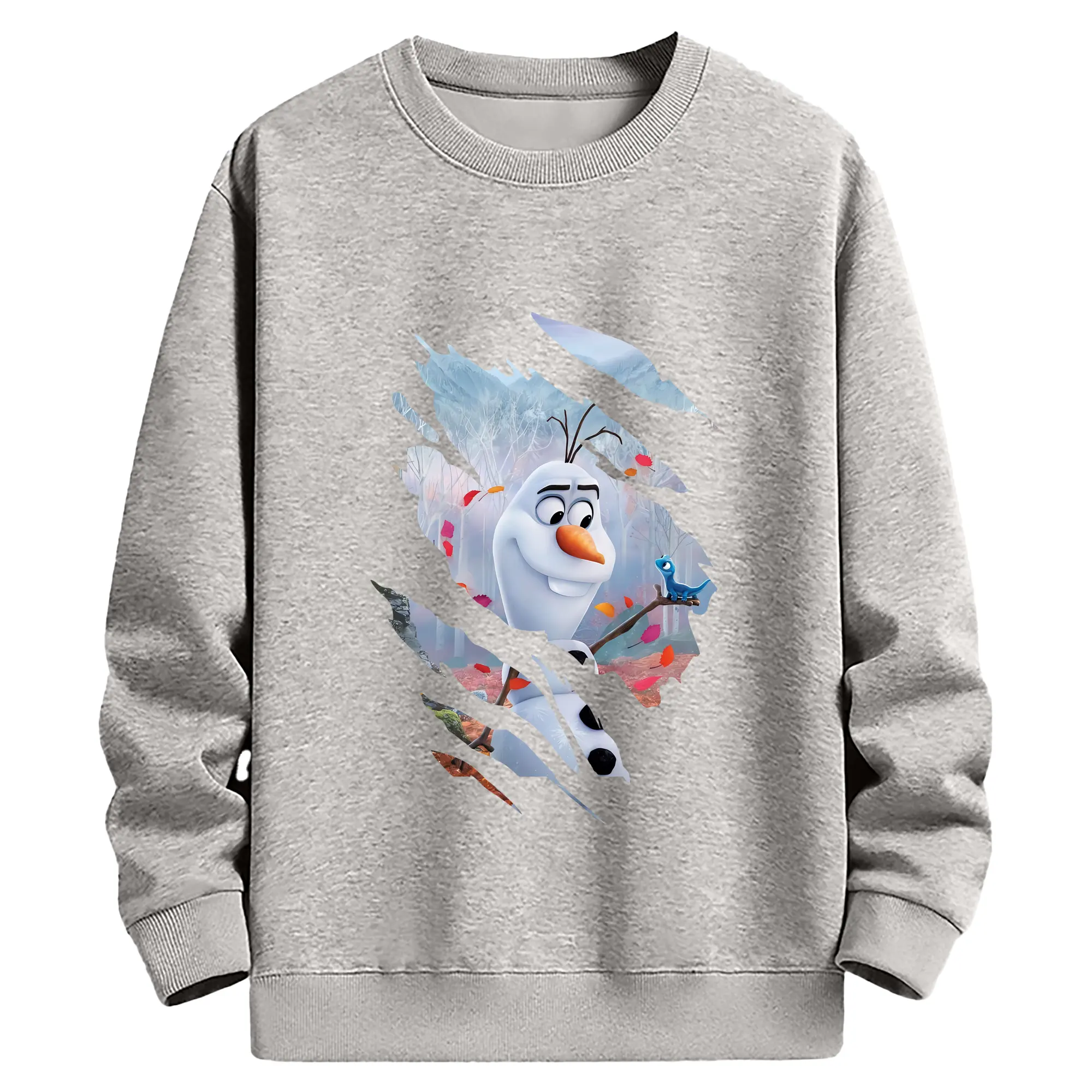 アナと雪の女王(Frozen) グッズ オラフ(Olaf) - 薄手 クルーネック スウェット 裏毛260g · ポリエステル 春秋向け カジュアル 男女兼用 · トレーナー デイリー スポーツ 散歩に最適