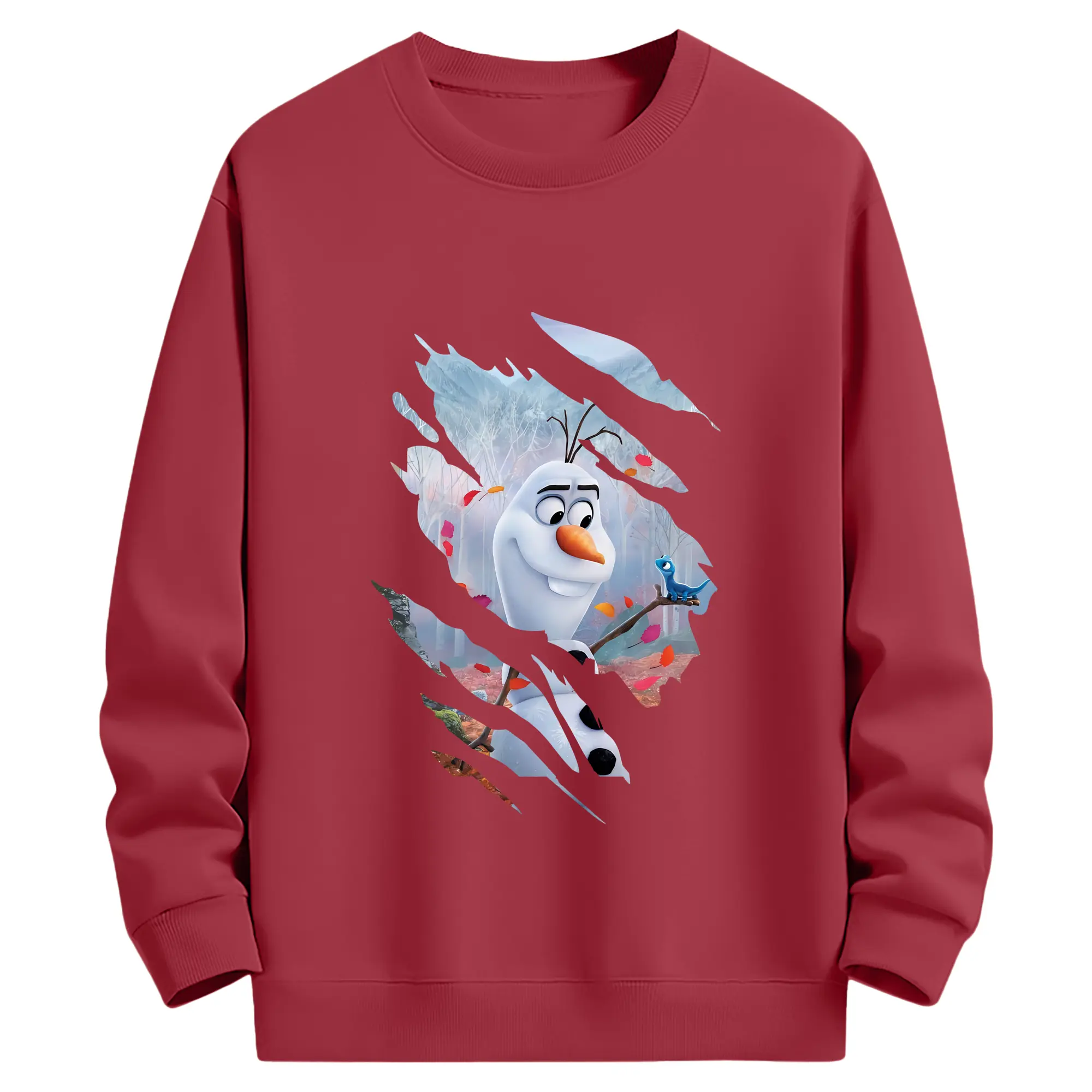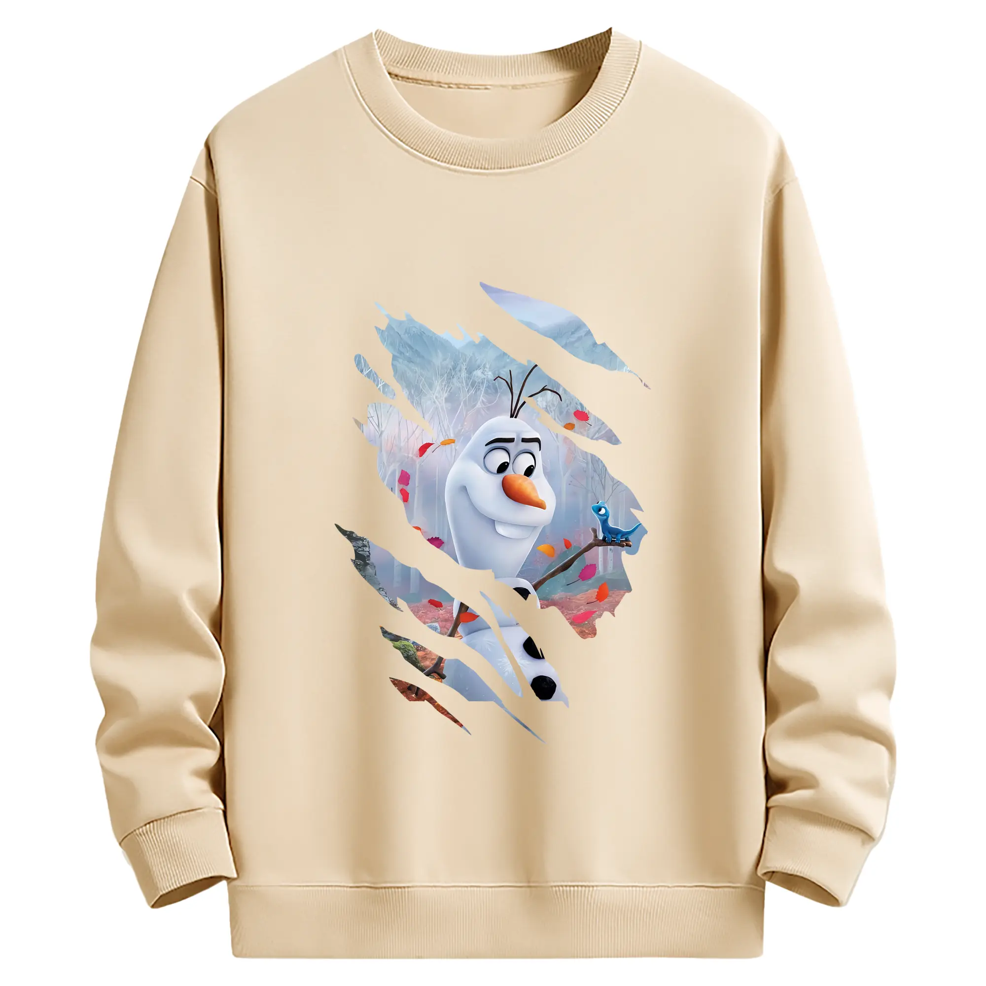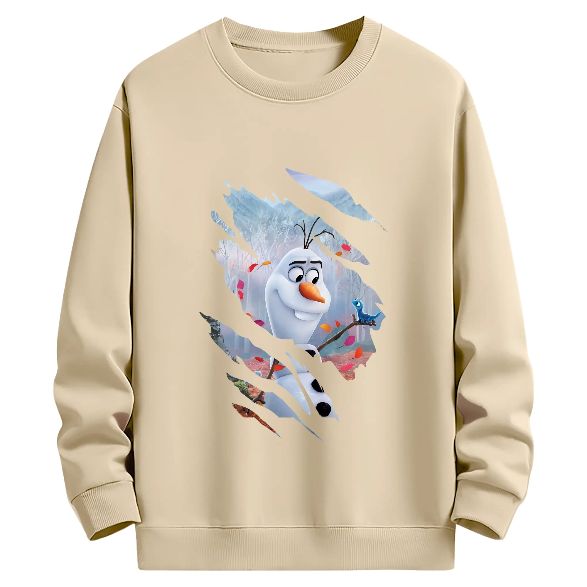 アナと雪の女王(Frozen) グッズ オラフ(Olaf) - 薄手 クルーネック スウェット 裏毛260g · ポリエステル 春秋向け カジュアル 男女兼用 · トレーナー デイリー スポーツ 散歩に最適
