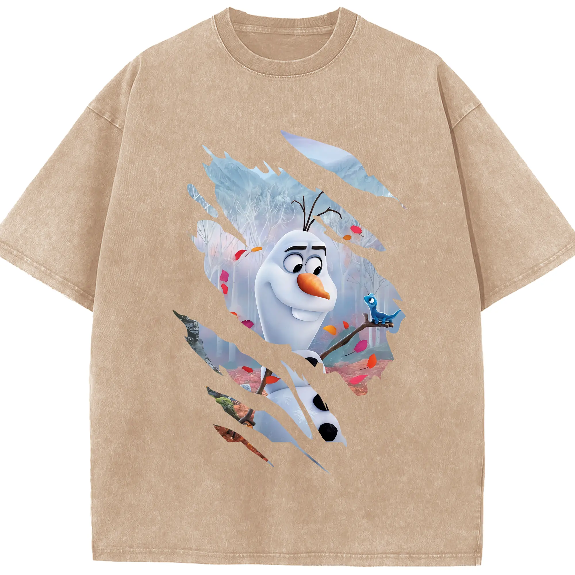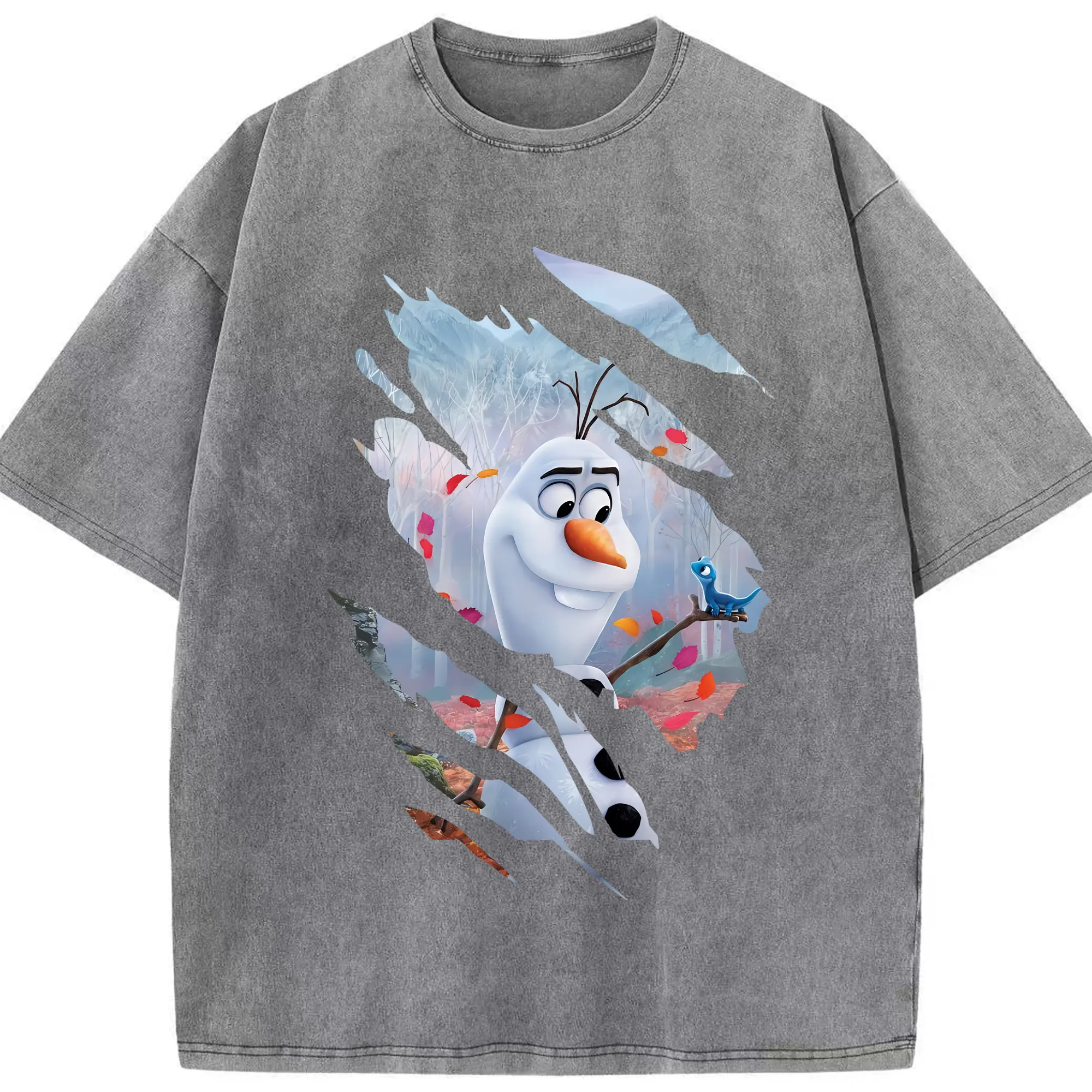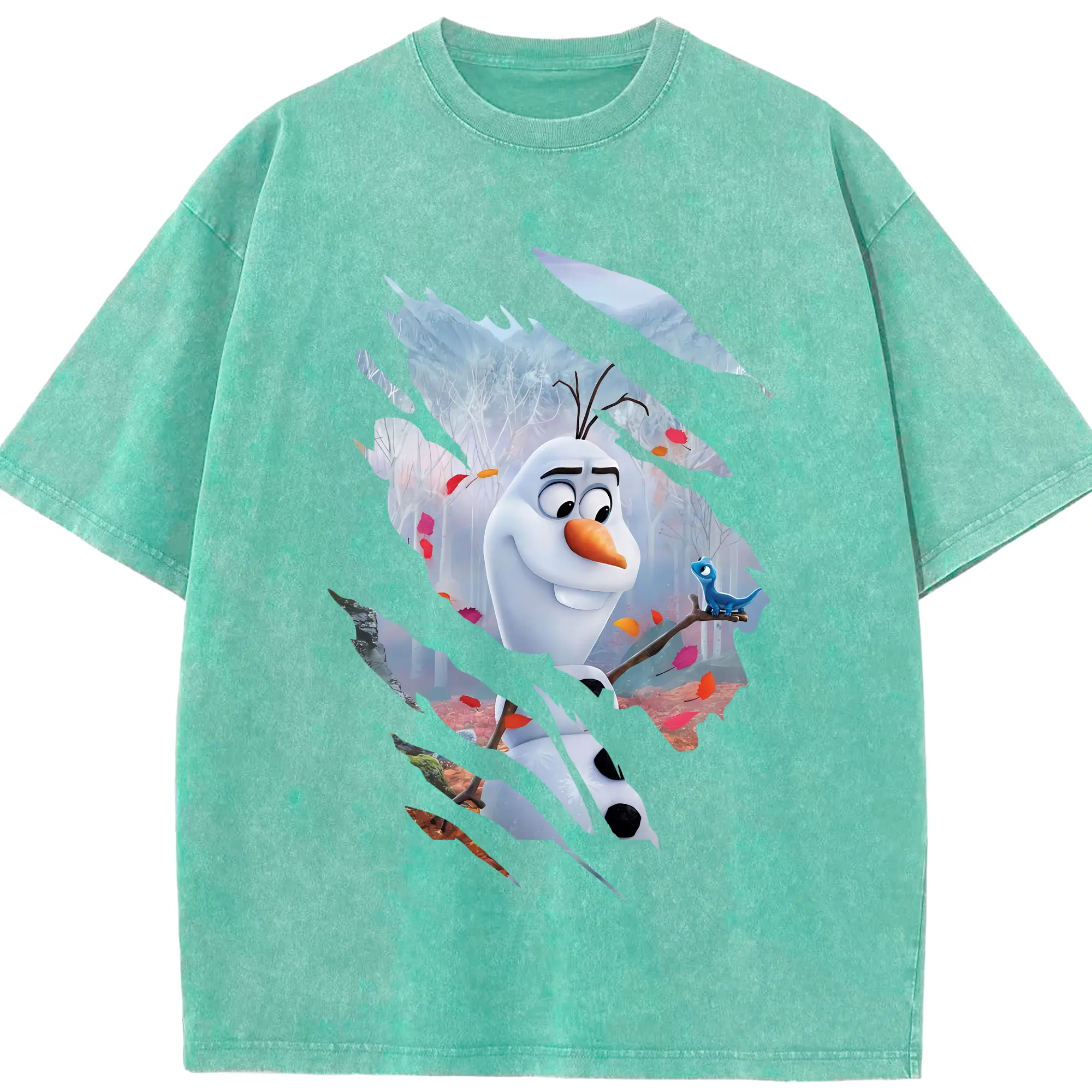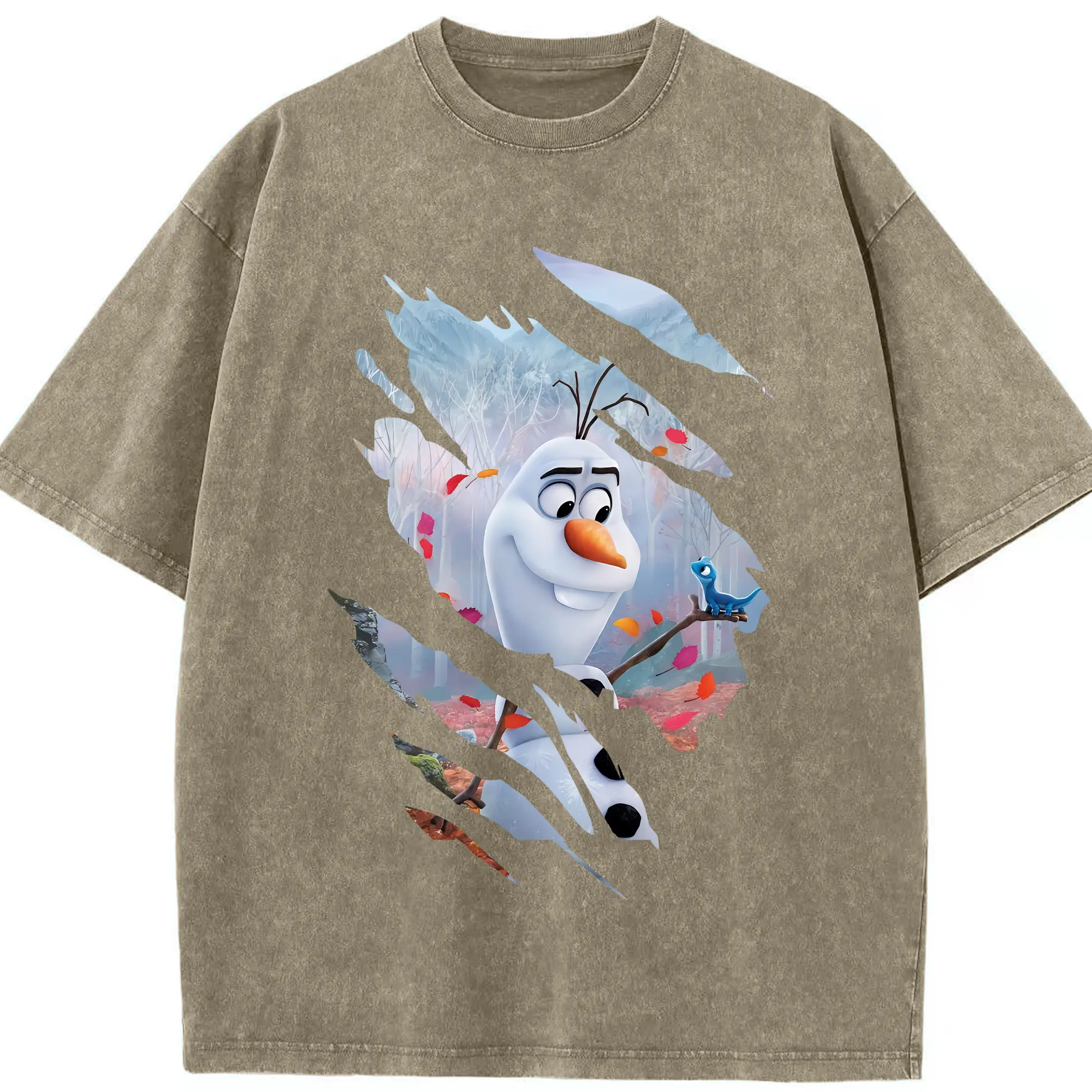 アナと雪の女王(Frozen) グッズ オラフ(Olaf) - 綿100% ヴィンテージ風 半袖Tシャツ ・ 背面プリント ・ 柔らか肌触り ・ 通気性 快適 ・ スポーツ カジュアル 外出用