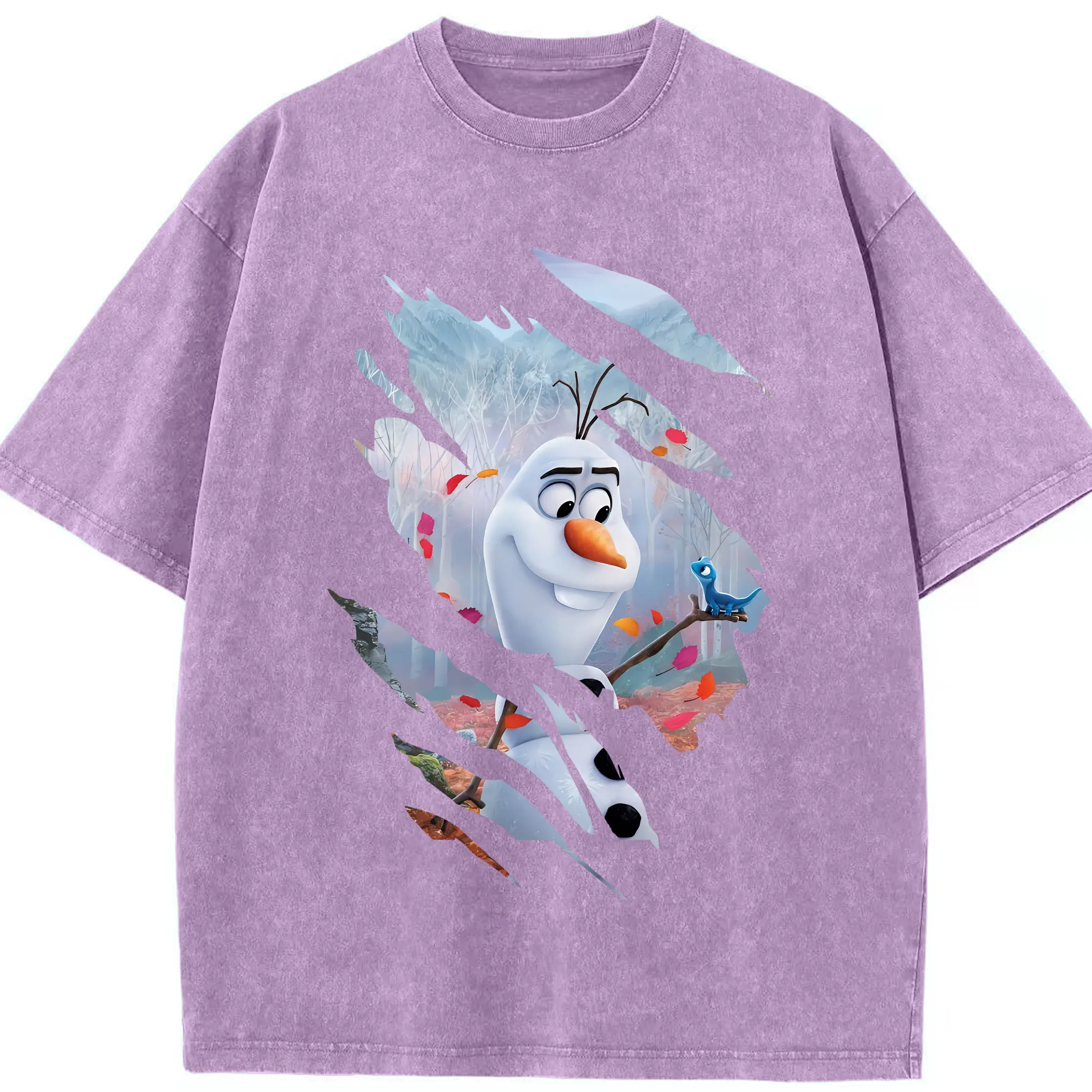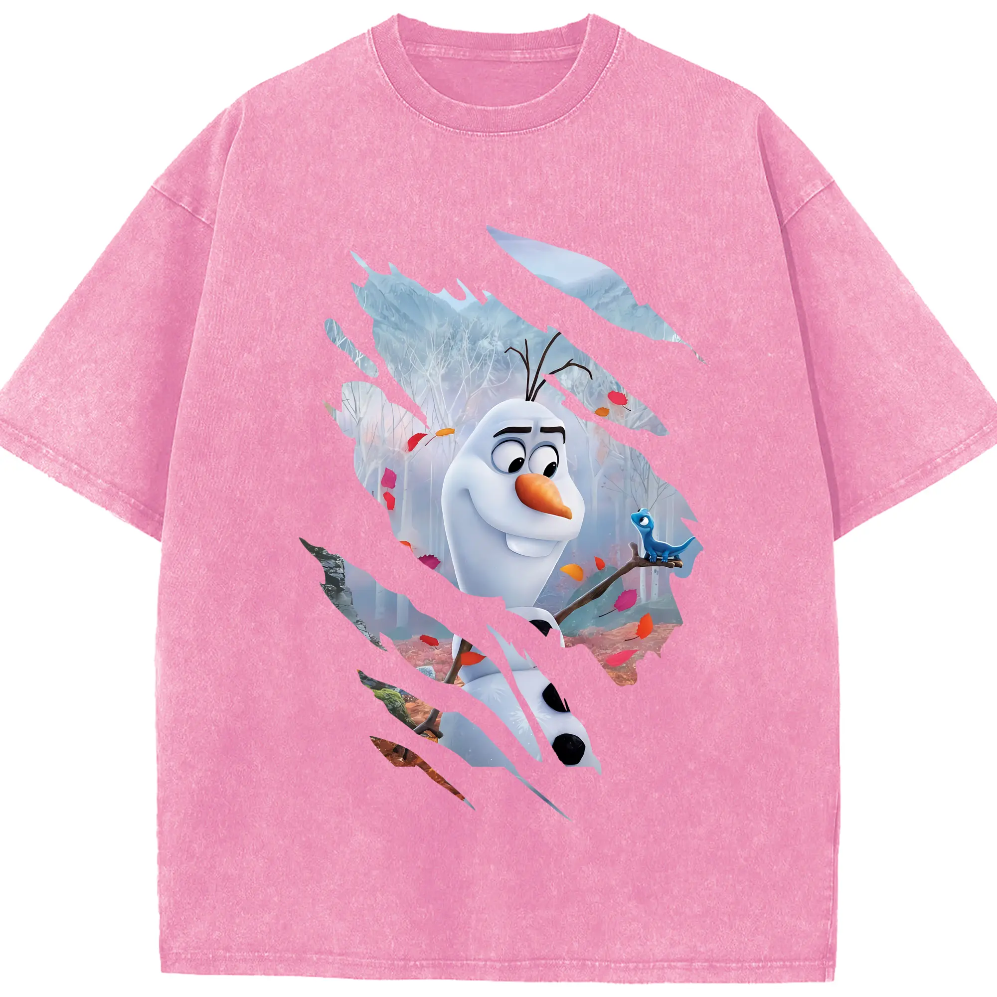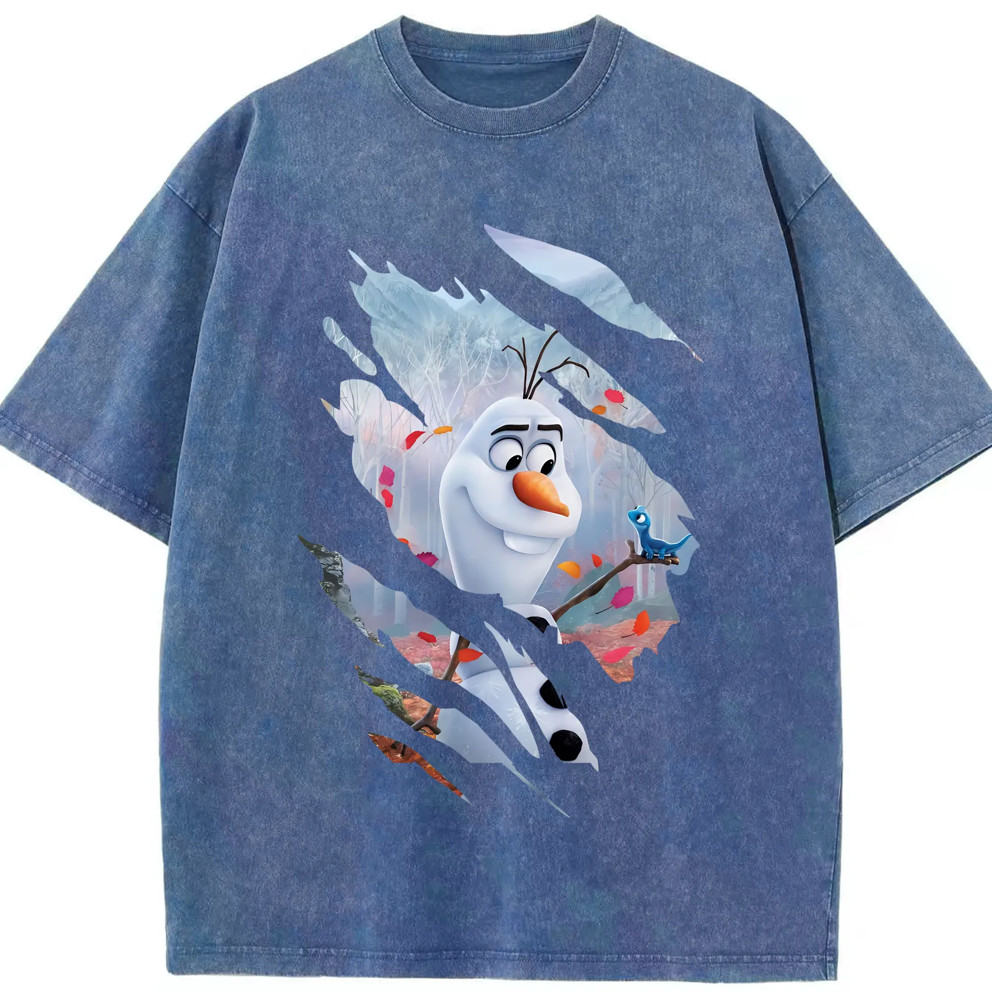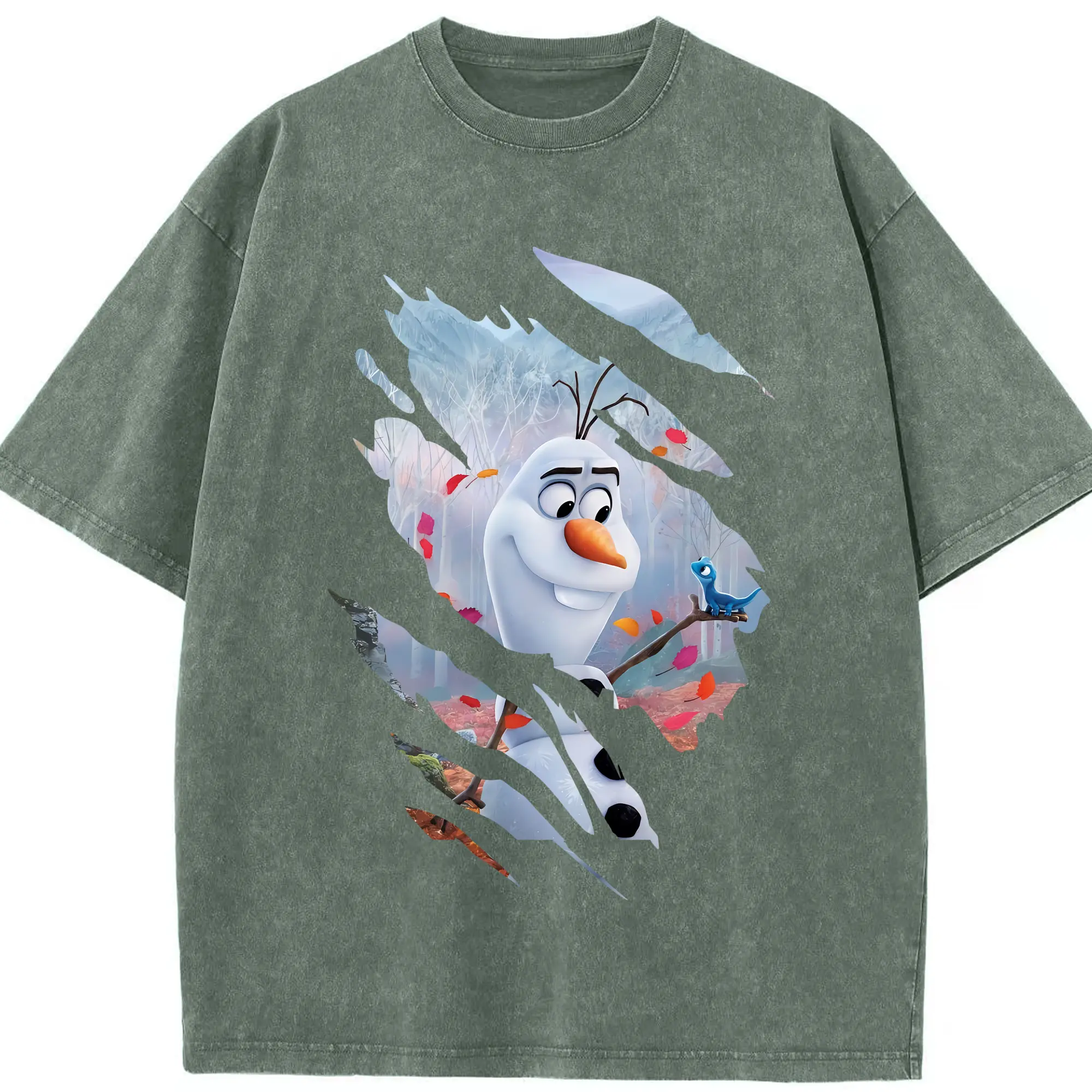 アナと雪の女王(Frozen) グッズ オラフ(Olaf) - 綿100% ヴィンテージ風 半袖Tシャツ ・ 背面プリント ・ 柔らか肌触り ・ 通気性 快適 ・ スポーツ カジュアル 外出用