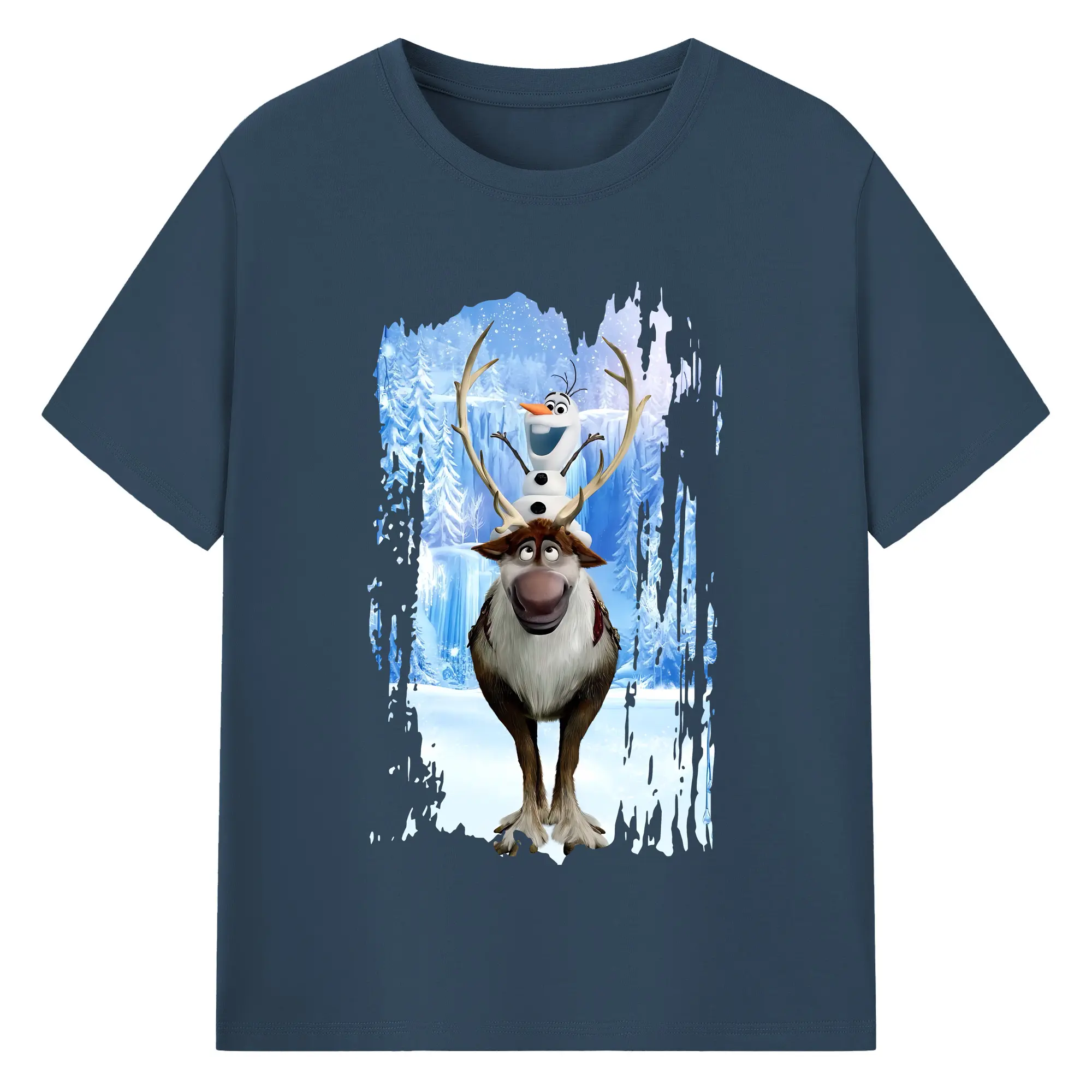 アナと雪の女王(Frozen) グッズ スヴェン(Sven) - 綿100% 半袖Tシャツ ・ バックプリント ・ 快適 通気性 ・ 日常使い 散歩 スポーツ用