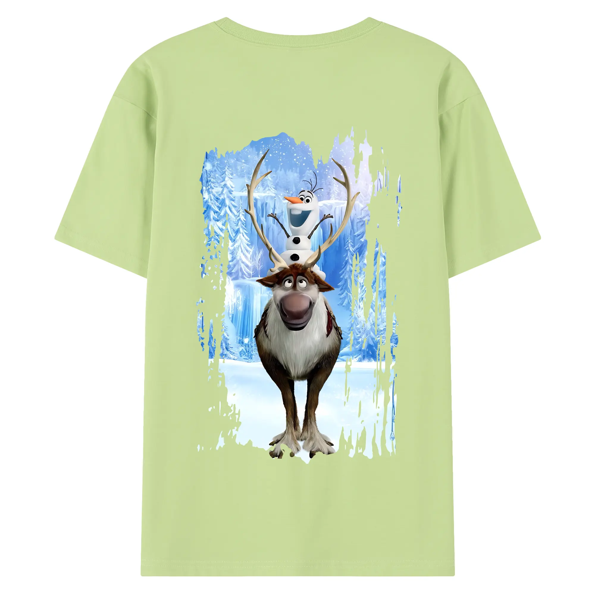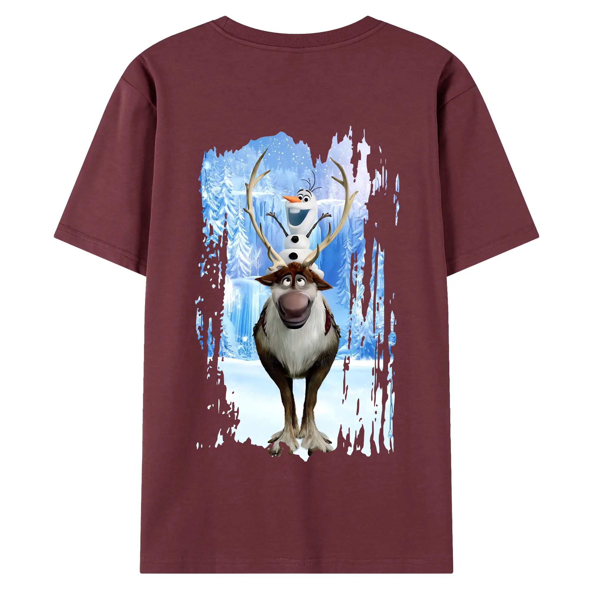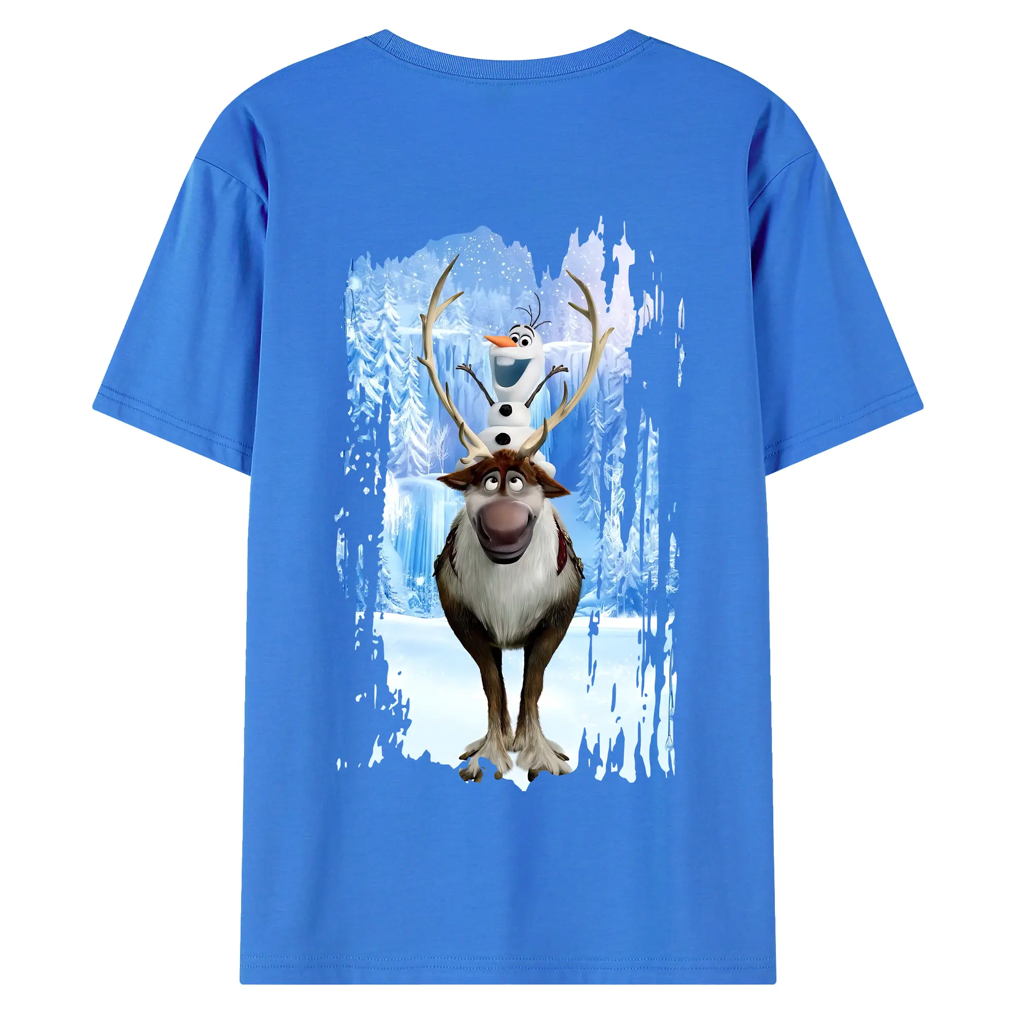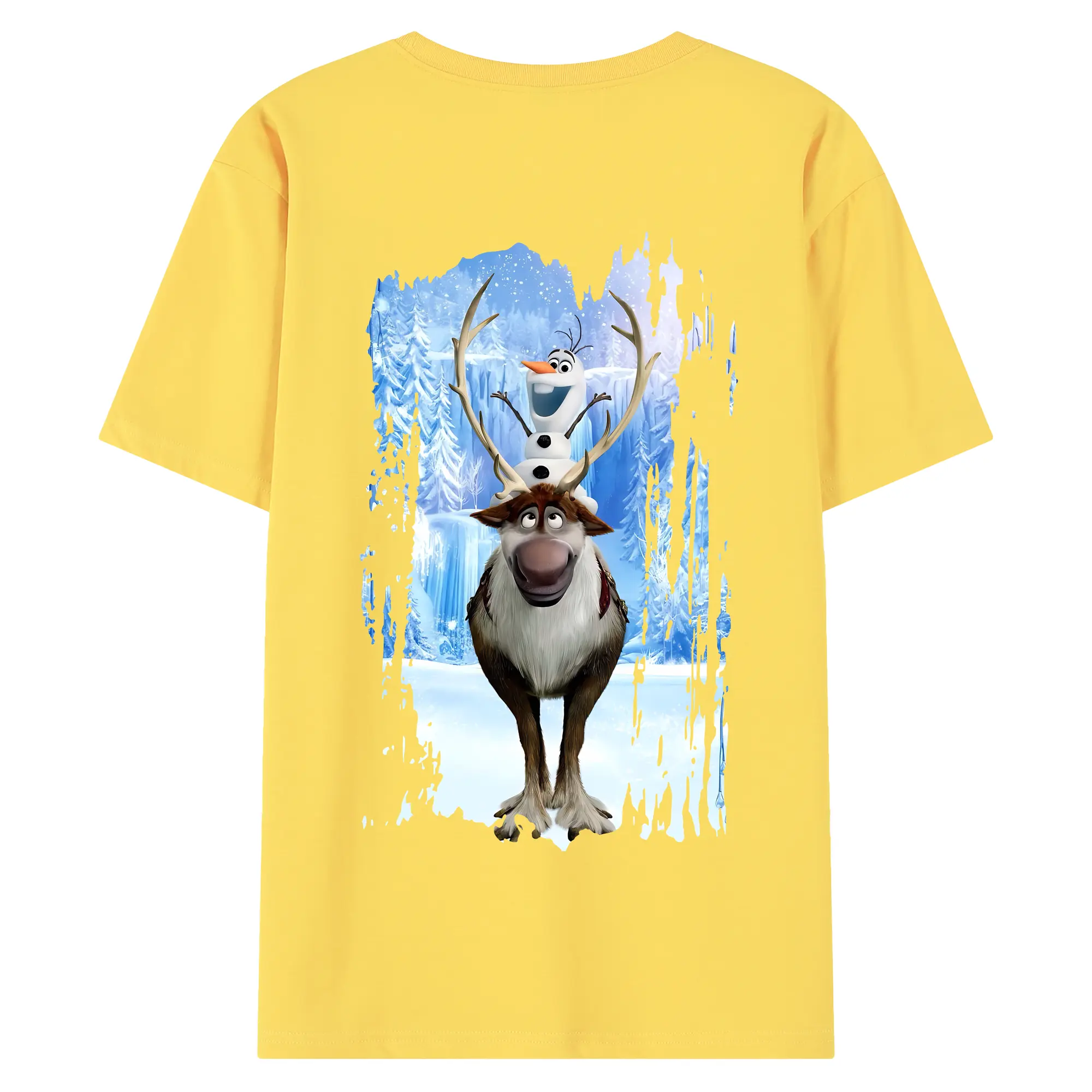 アナと雪の女王(Frozen) グッズ スヴェン(Sven) - 綿100% 半袖Tシャツ ・ フロントプリント ・ 快適 通気性 ・ 日常使い 散歩 スポーツ用