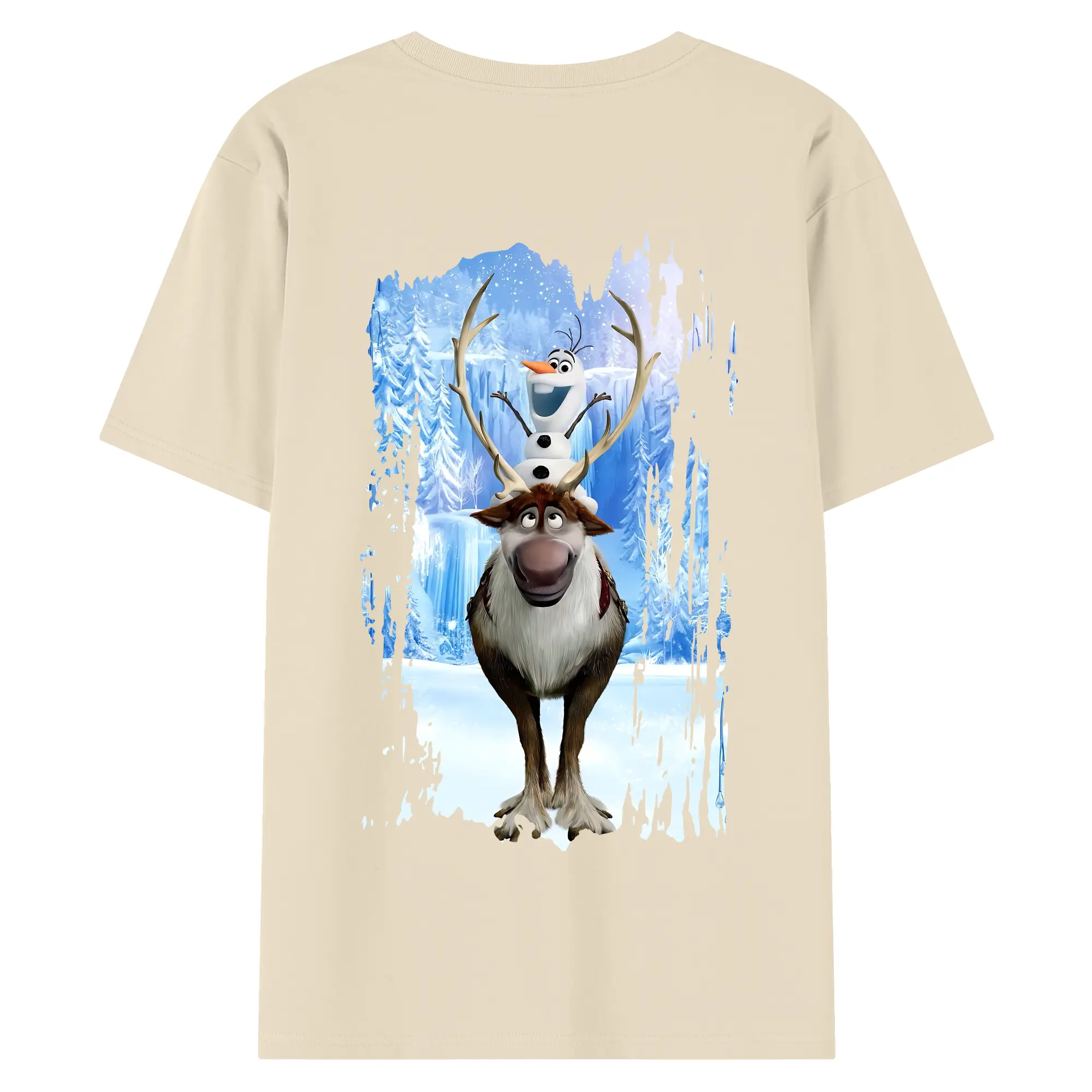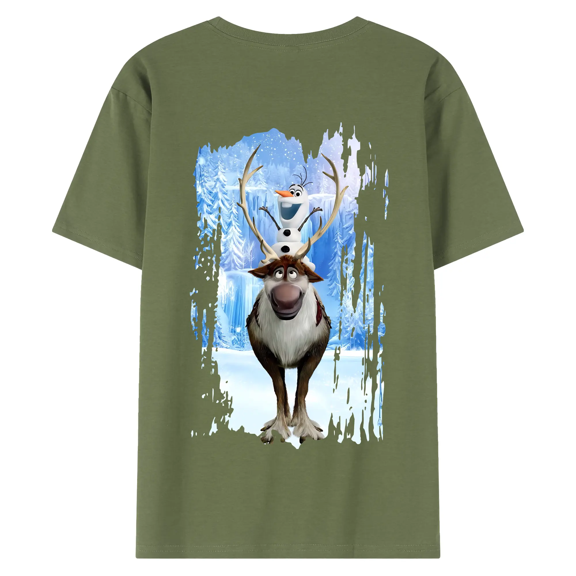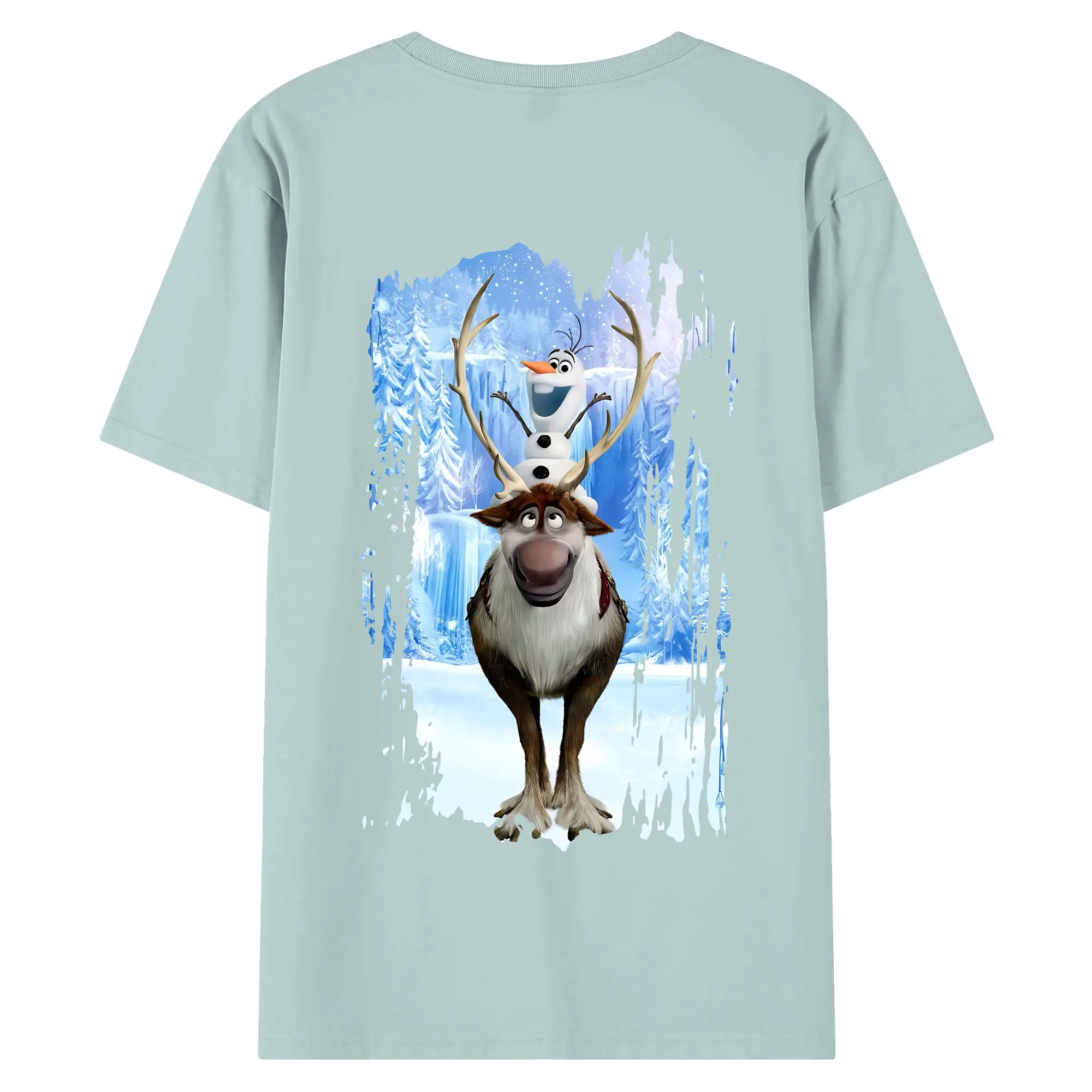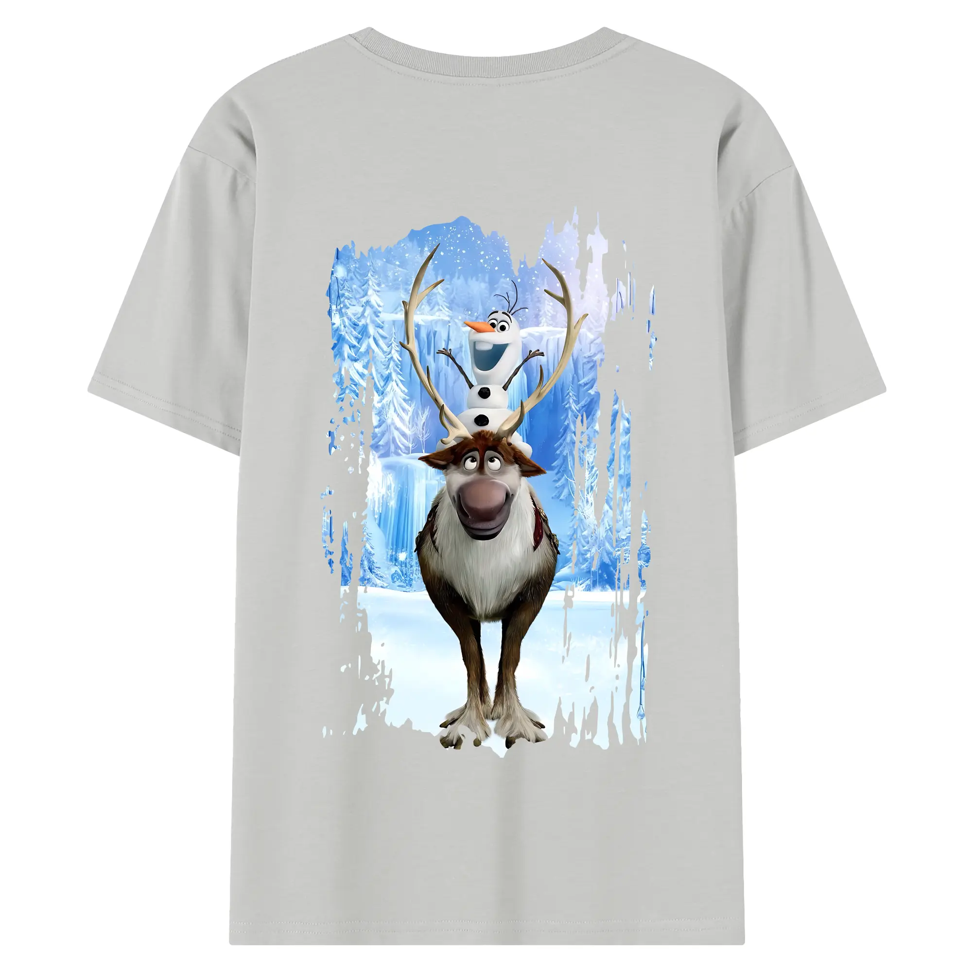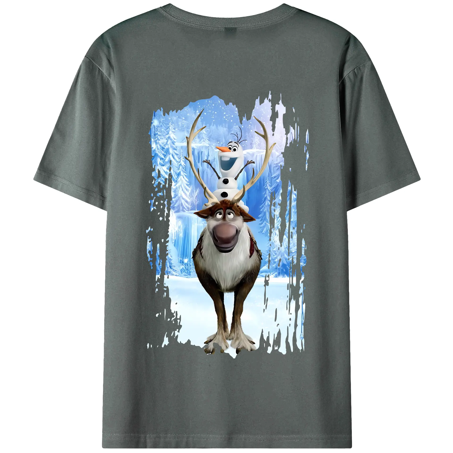 アナと雪の女王(Frozen) グッズ スヴェン(Sven) - 綿100% 半袖Tシャツ ・ フロントプリント ・ 快適 通気性 ・ 日常使い 散歩 スポーツ用