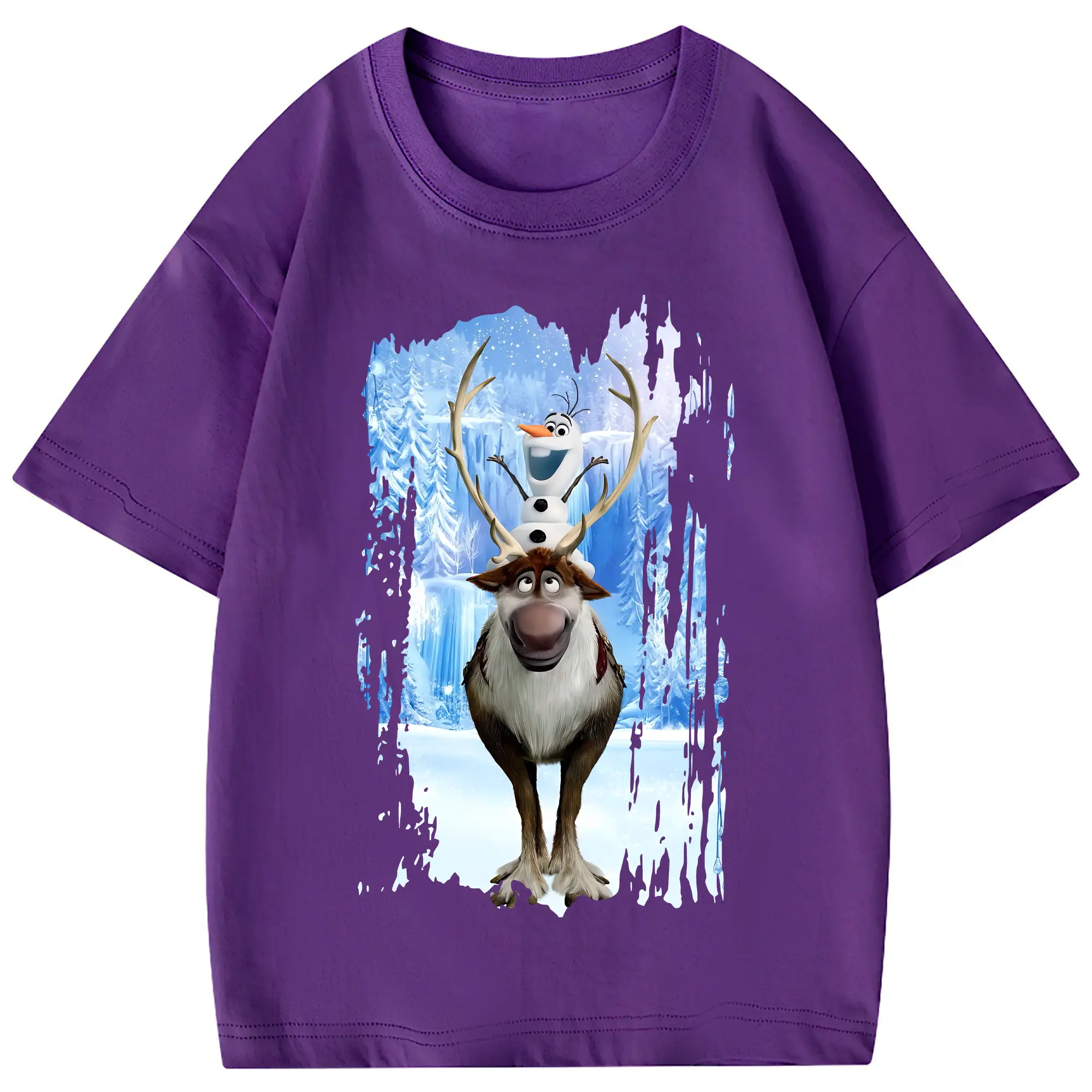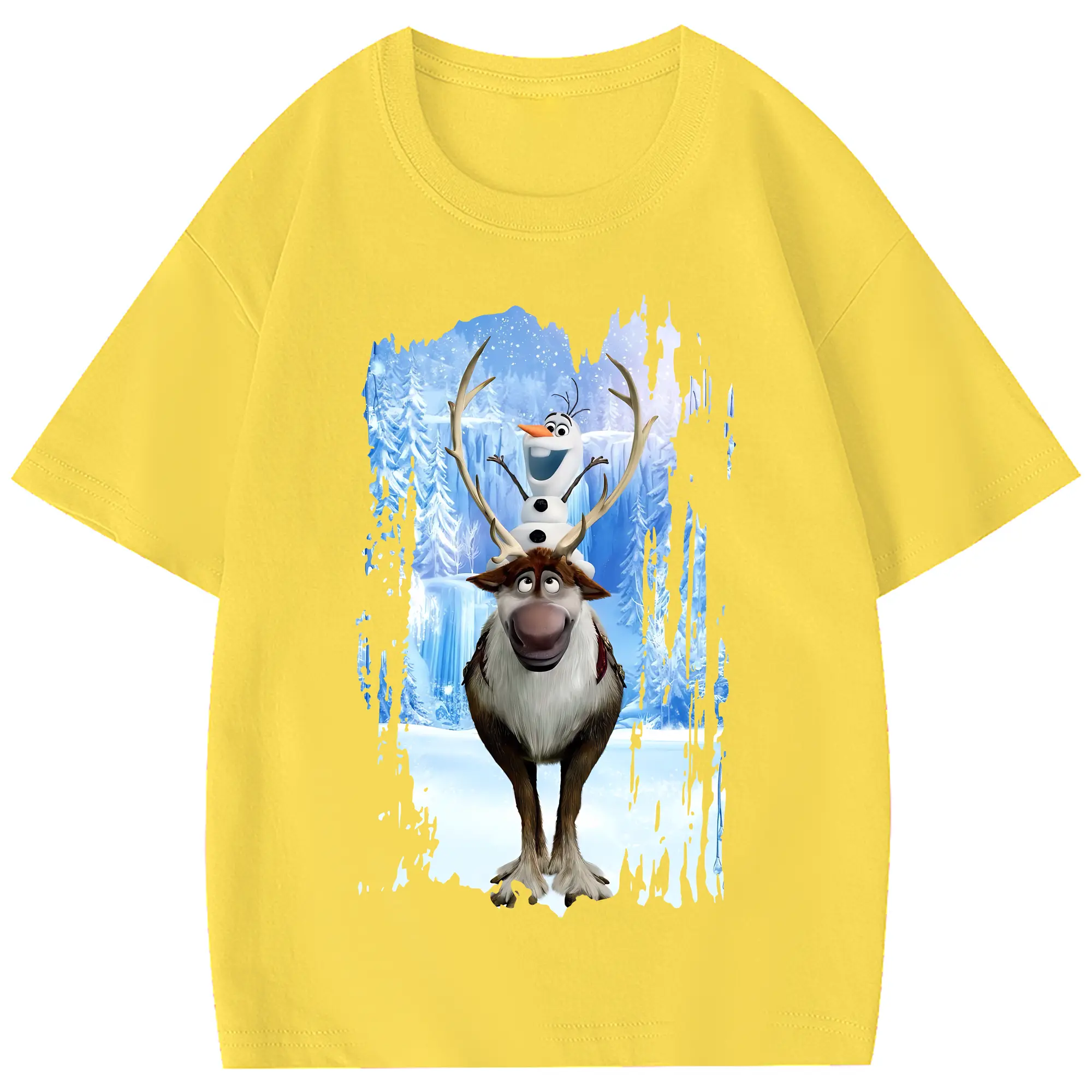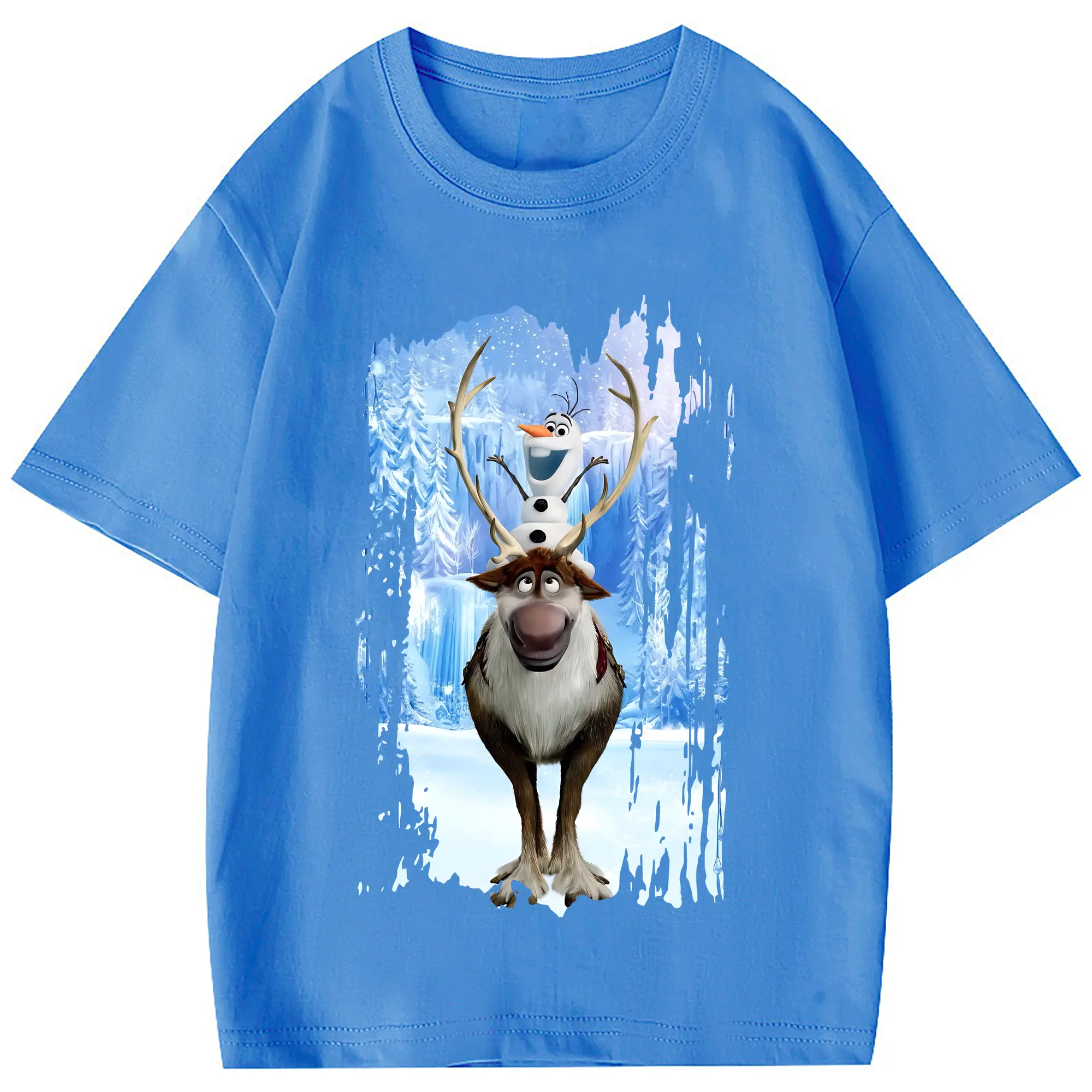 アナと雪の女王(Frozen) グッズ スヴェン(Sven) - 綿100% 半袖Tシャツ ・ フロントプリント ・ 快適 通気性 ・ 日常使い 散歩 スポーツ用