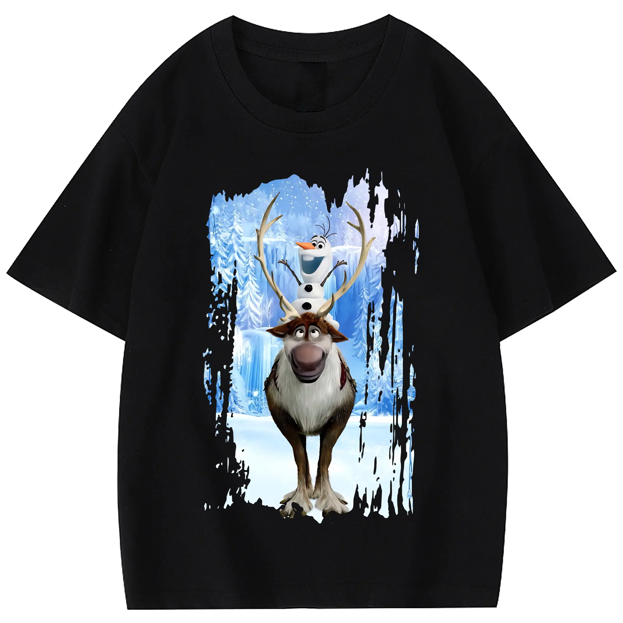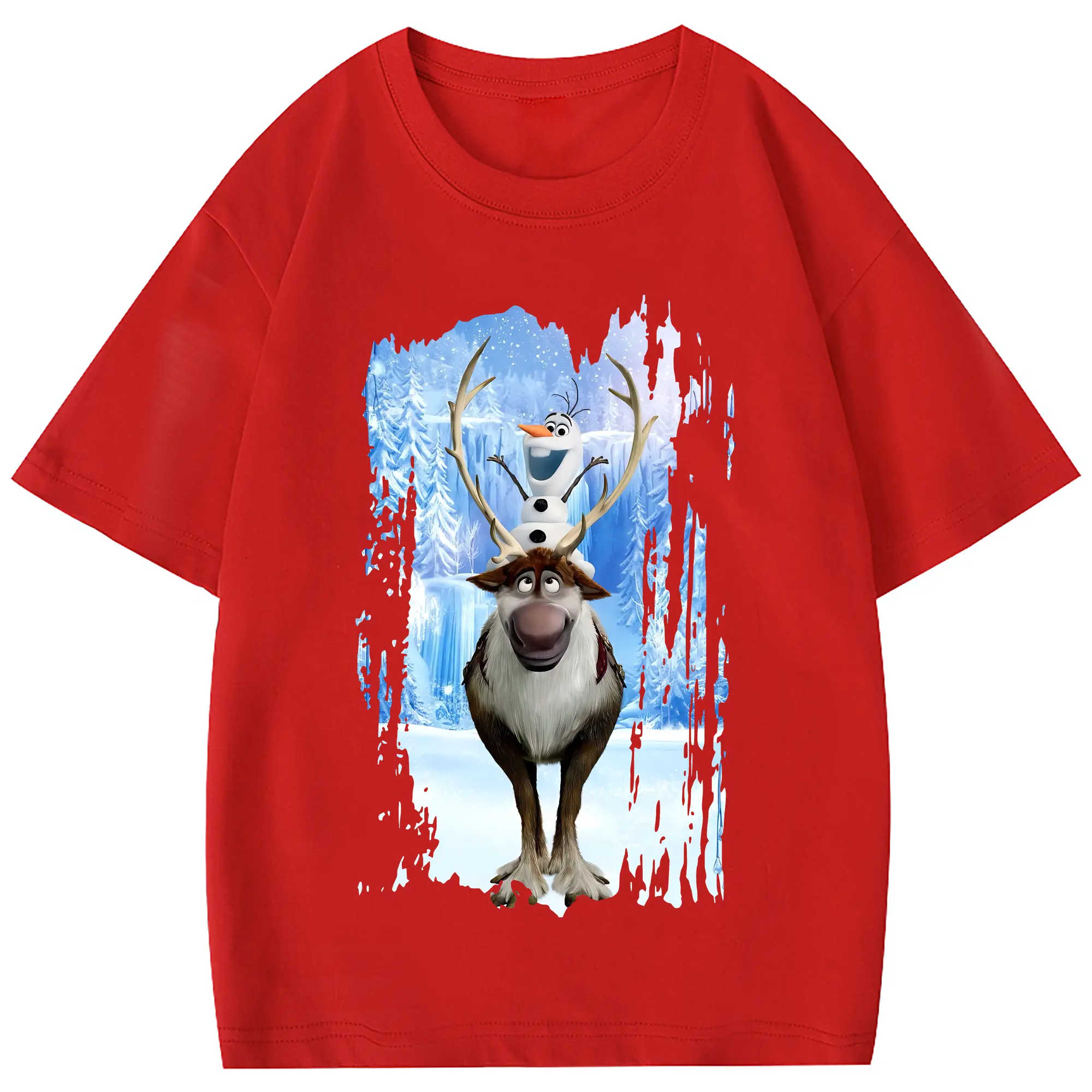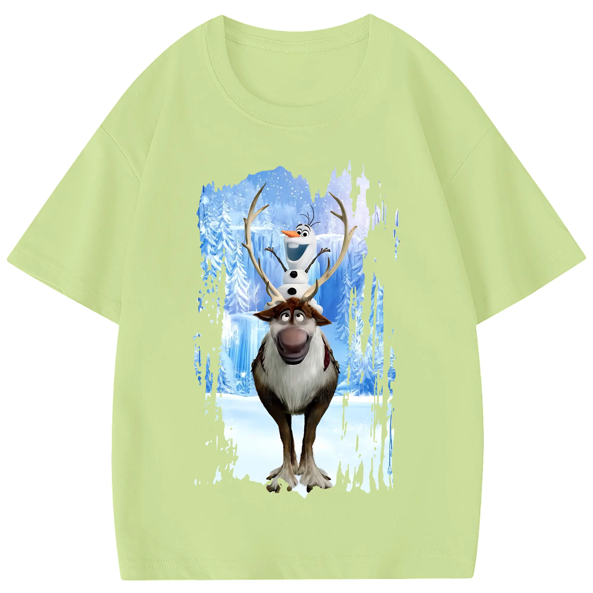 アナと雪の女王(Frozen) グッズ スヴェン(Sven) - 綿100% 半袖Tシャツ ・ フロントプリント ・ 快適 通気性 ・ 日常使い 散歩 スポーツ用