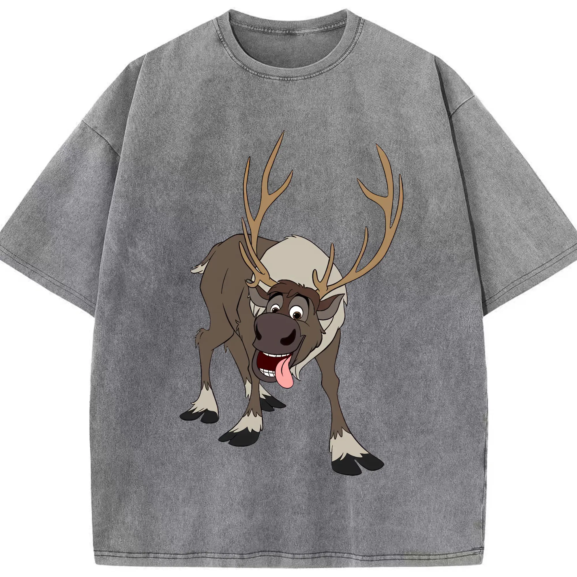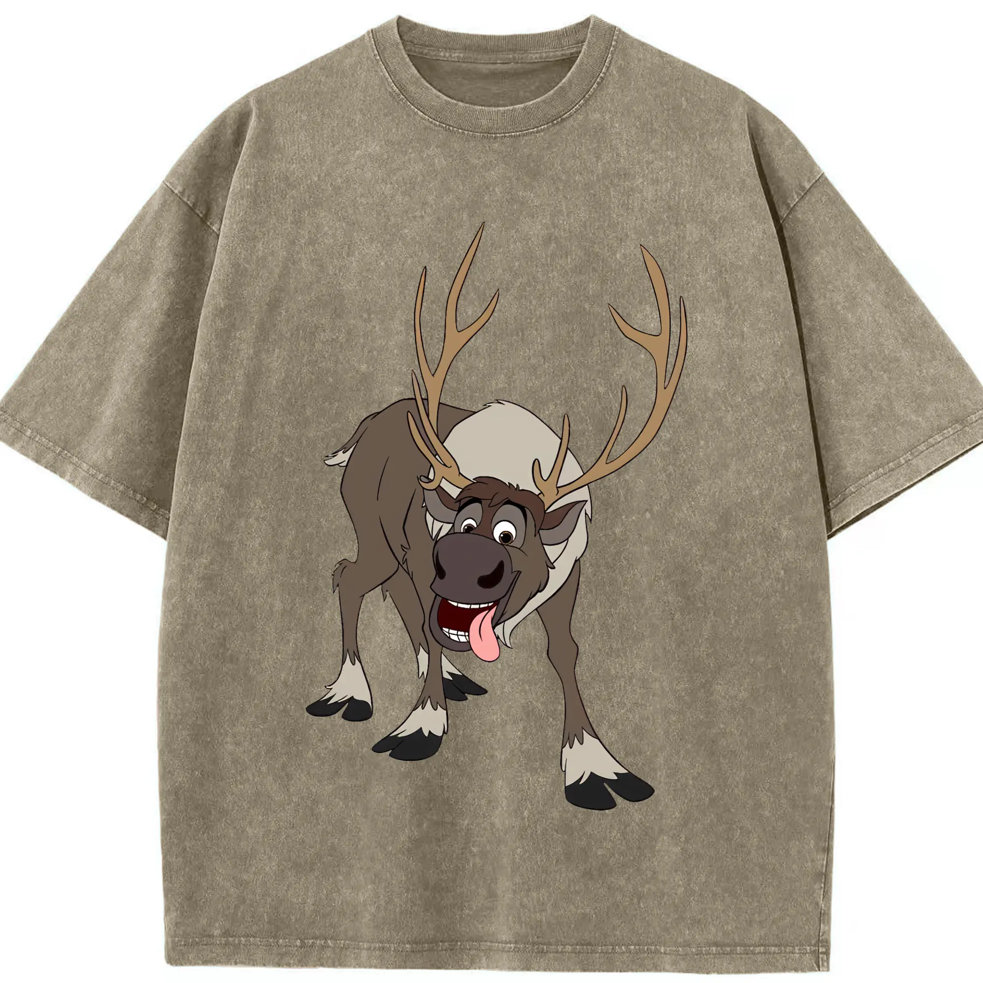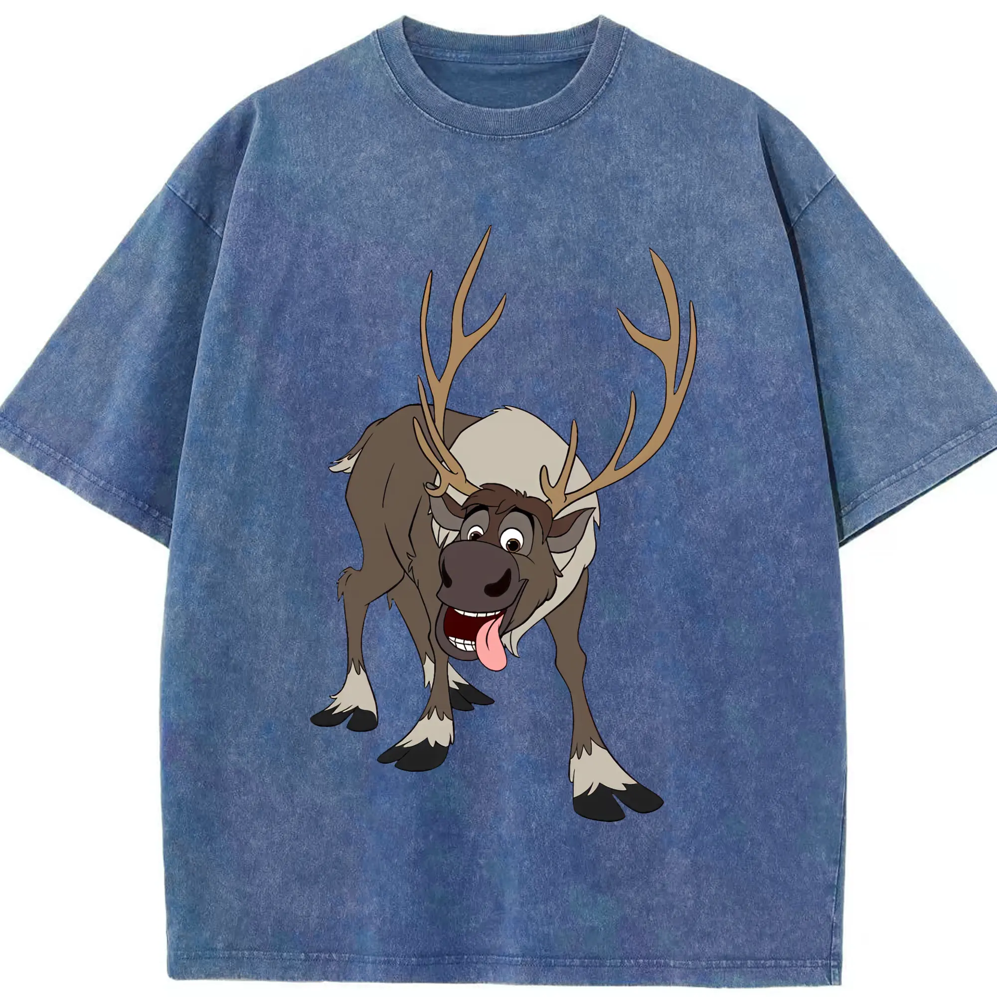 アナと雪の女王(Frozen) グッズ スヴェン(Sven) - 綿100% ヴィンテージ風 半袖Tシャツ ・ 背面プリント ・ 柔らか肌触り ・ 通気性 快適 ・ スポーツ カジュアル 外出用