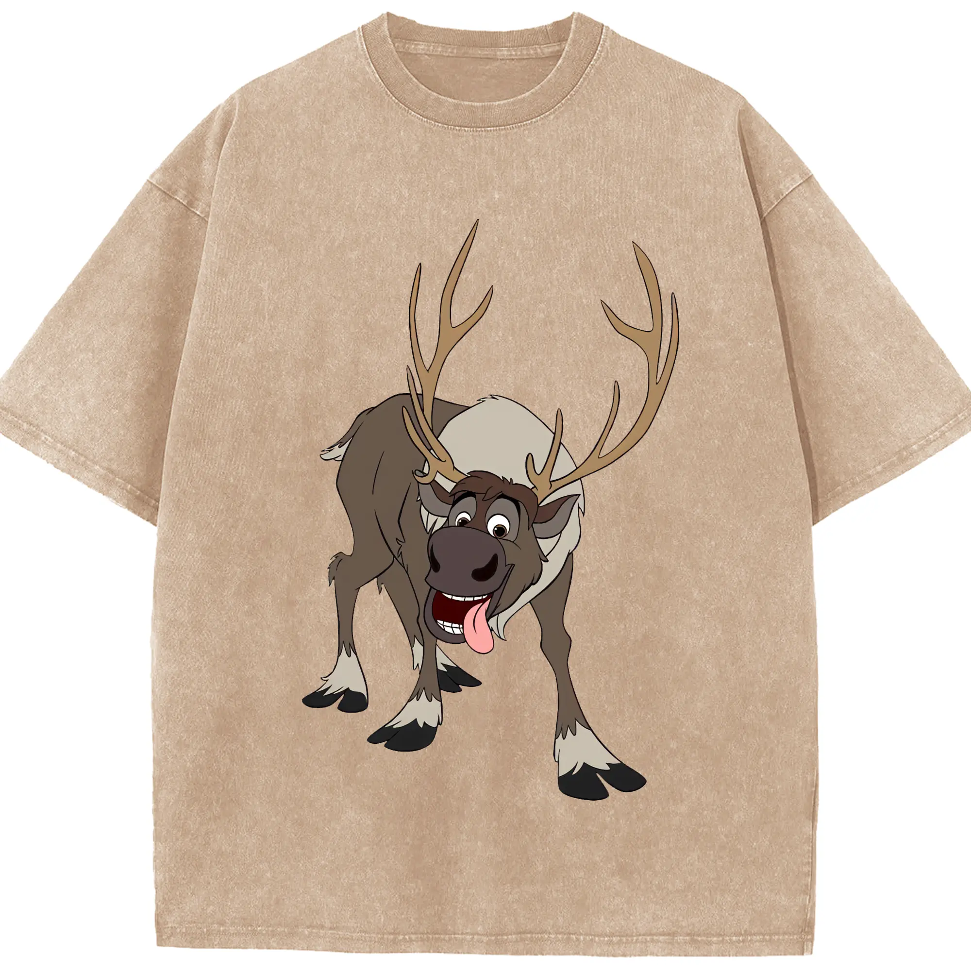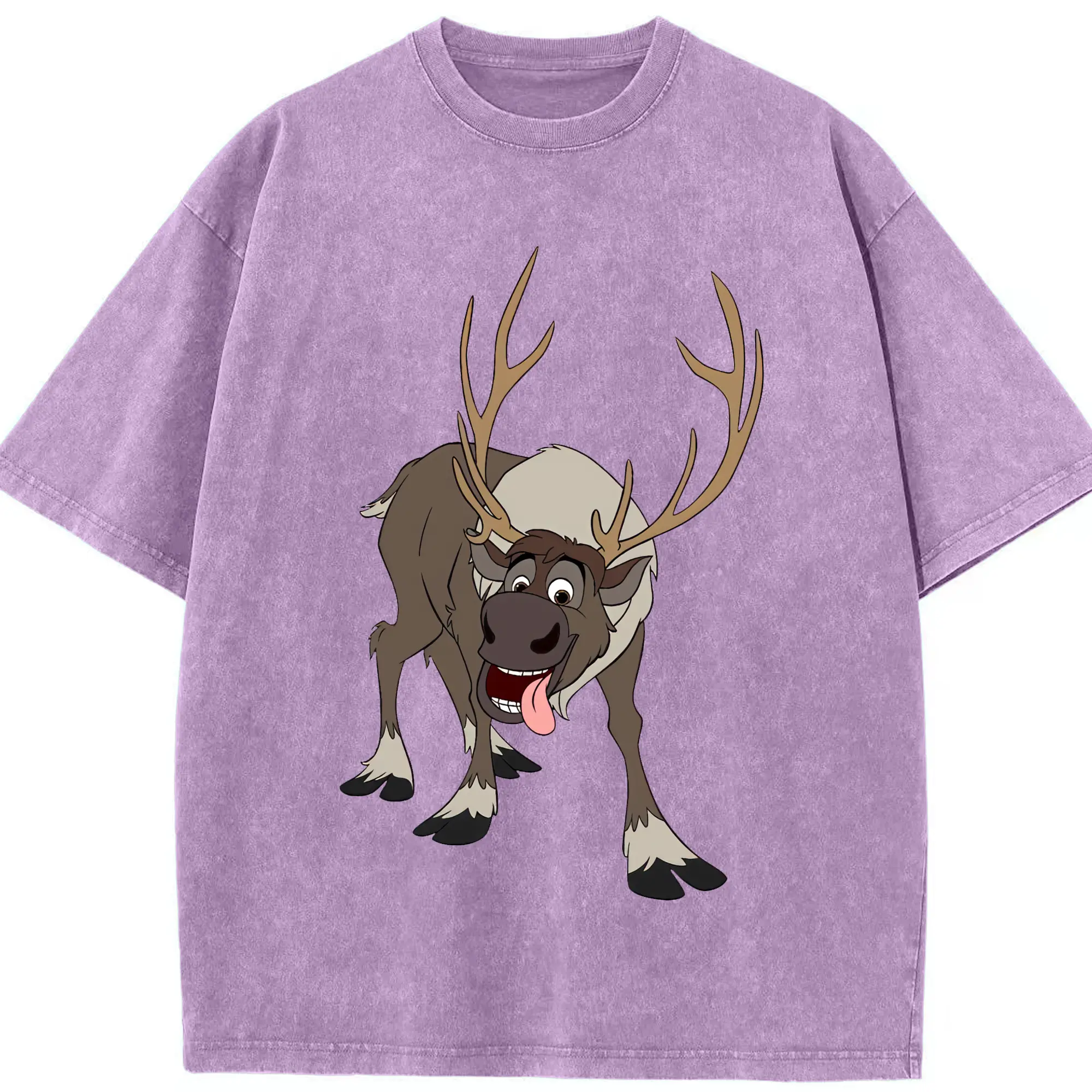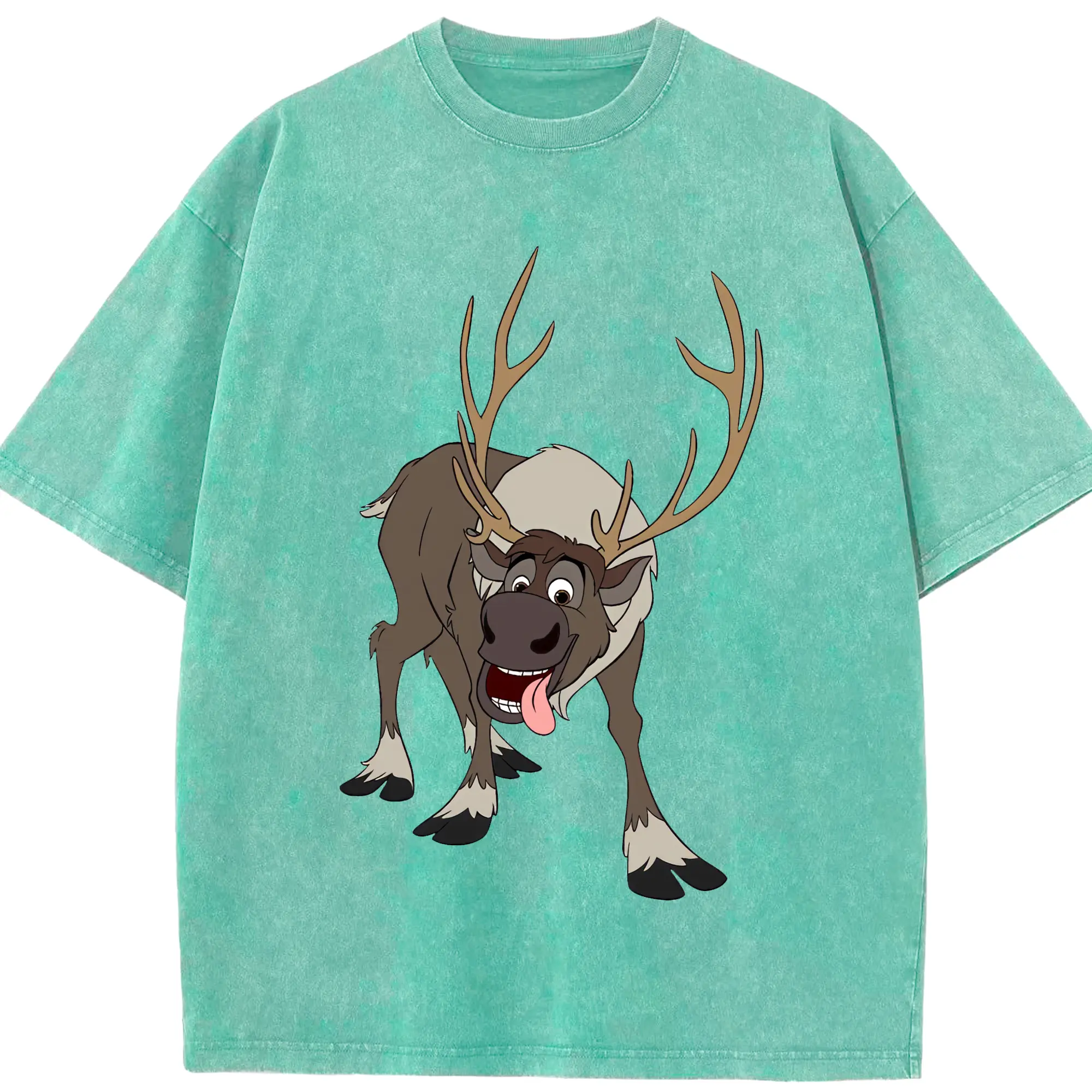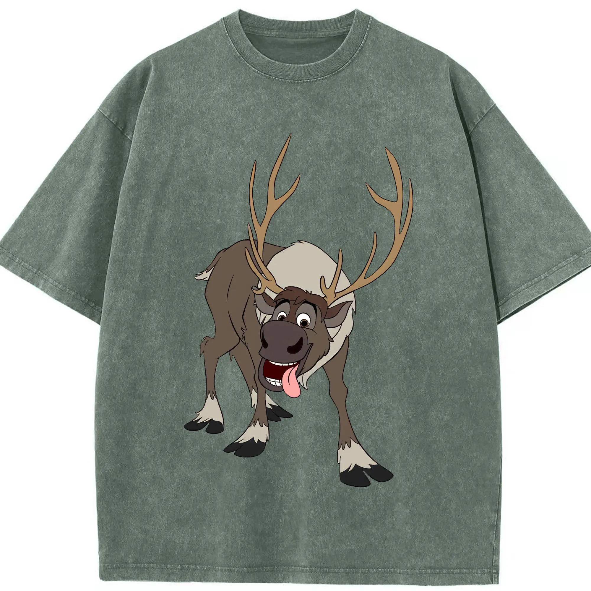 アナと雪の女王(Frozen) グッズ スヴェン(Sven) - 綿100% ヴィンテージ風 半袖Tシャツ ・ 背面プリント ・ 柔らか肌触り ・ 通気性 快適 ・ スポーツ カジュアル 外出用