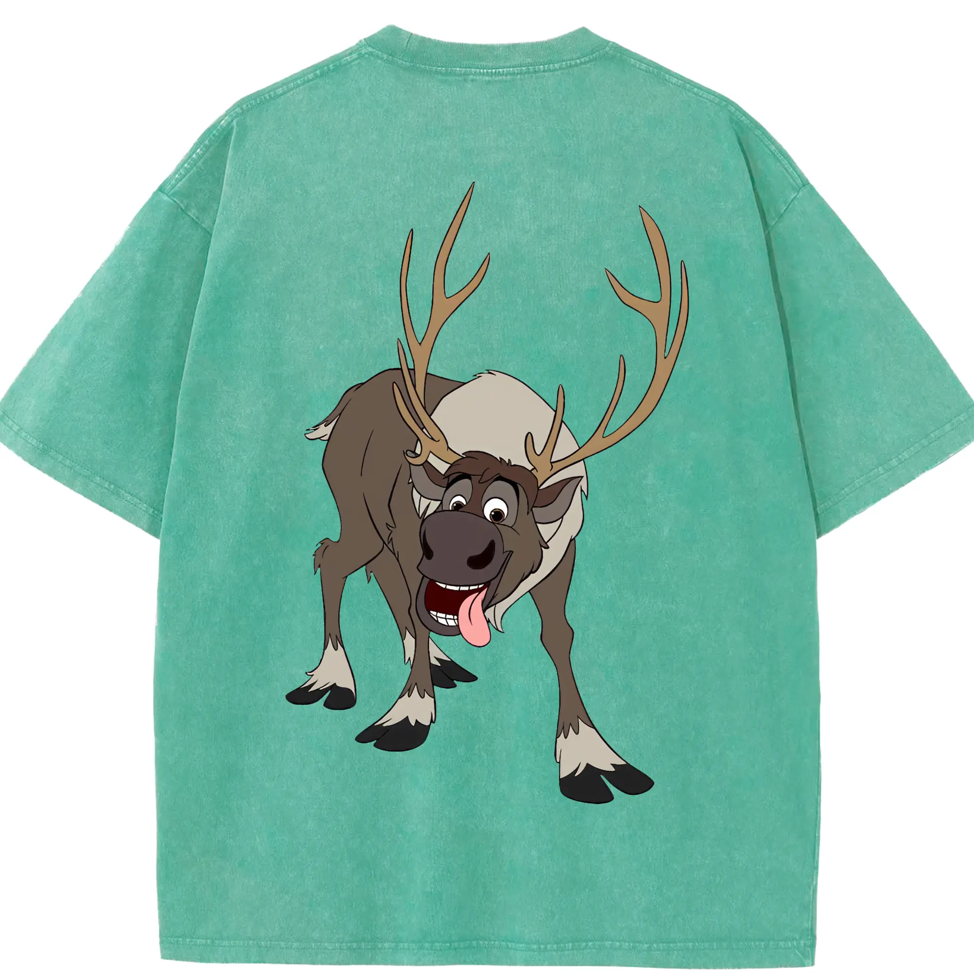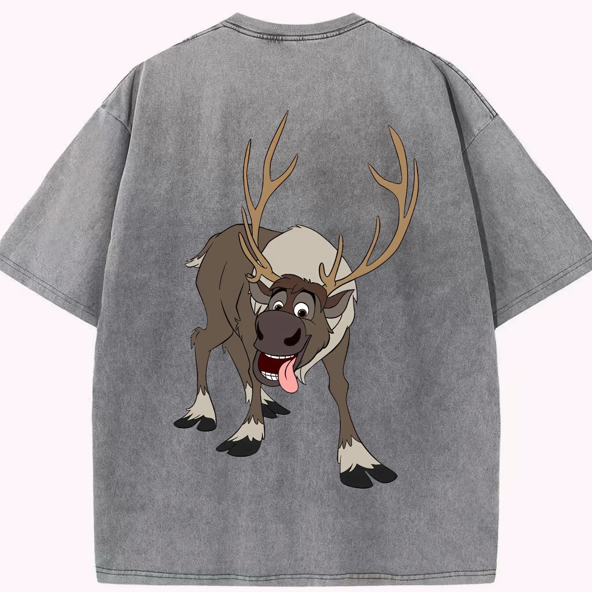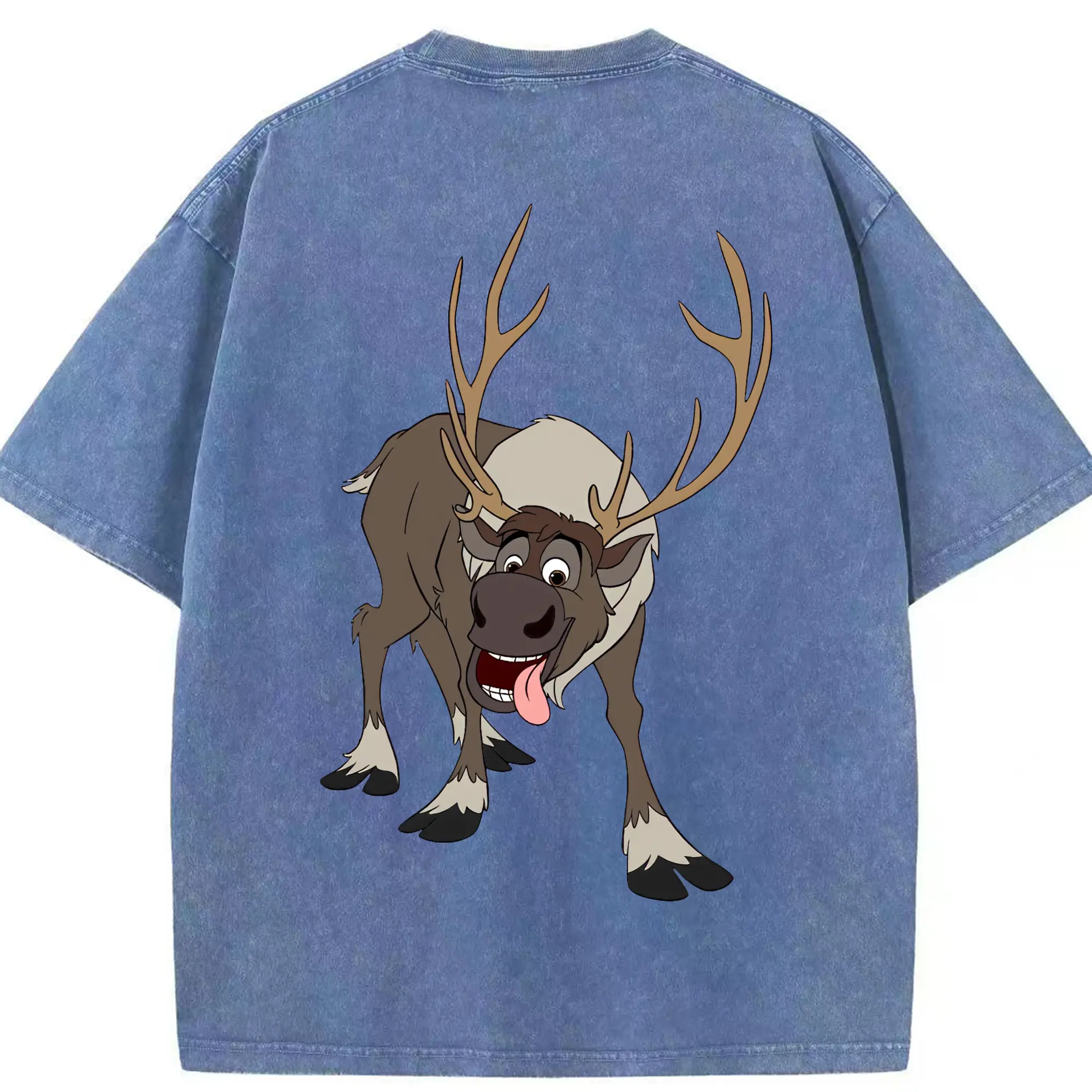 アナと雪の女王(Frozen) グッズ スヴェン(Sven) - 綿100% ヴィンテージ風 半袖Tシャツ ・ フロントプリント ・ 柔らか肌触り ・ 通気性 快適 ・ スポーツ カジュアル 外出用
