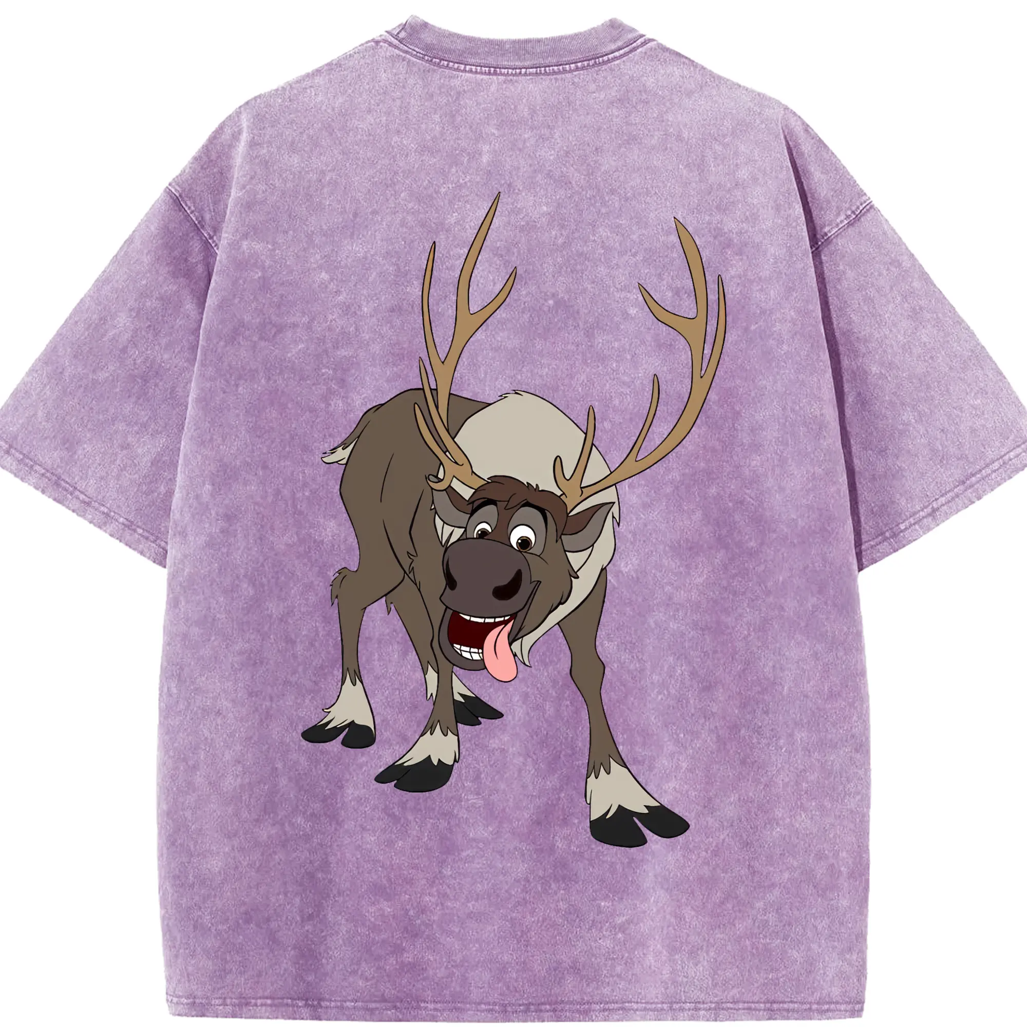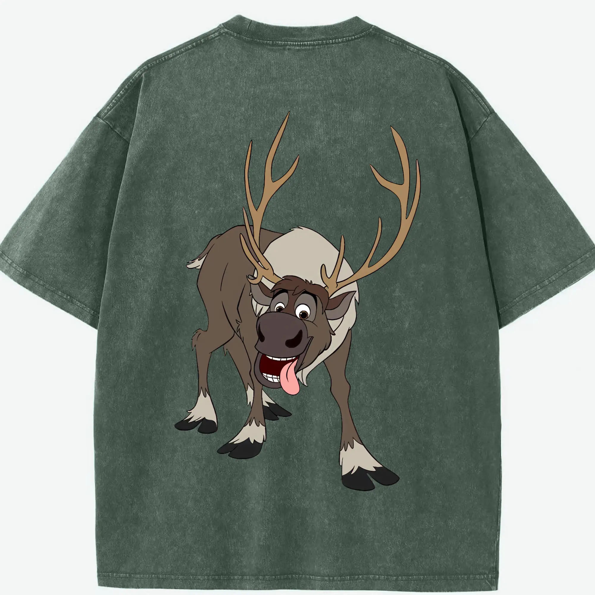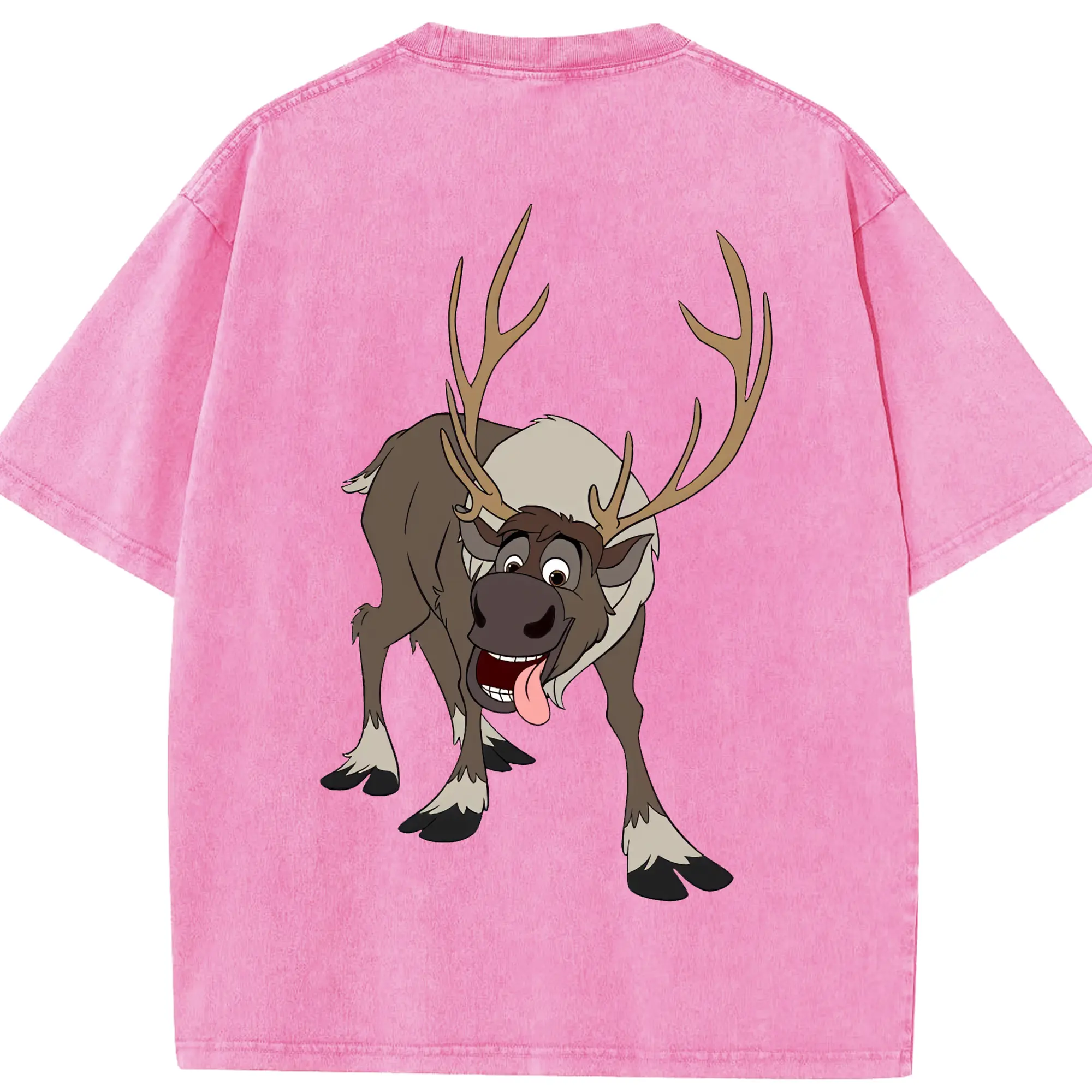 アナと雪の女王(Frozen) グッズ スヴェン(Sven) - 綿100% ヴィンテージ風 半袖Tシャツ ・ フロントプリント ・ 柔らか肌触り ・ 通気性 快適 ・ スポーツ カジュアル 外出用