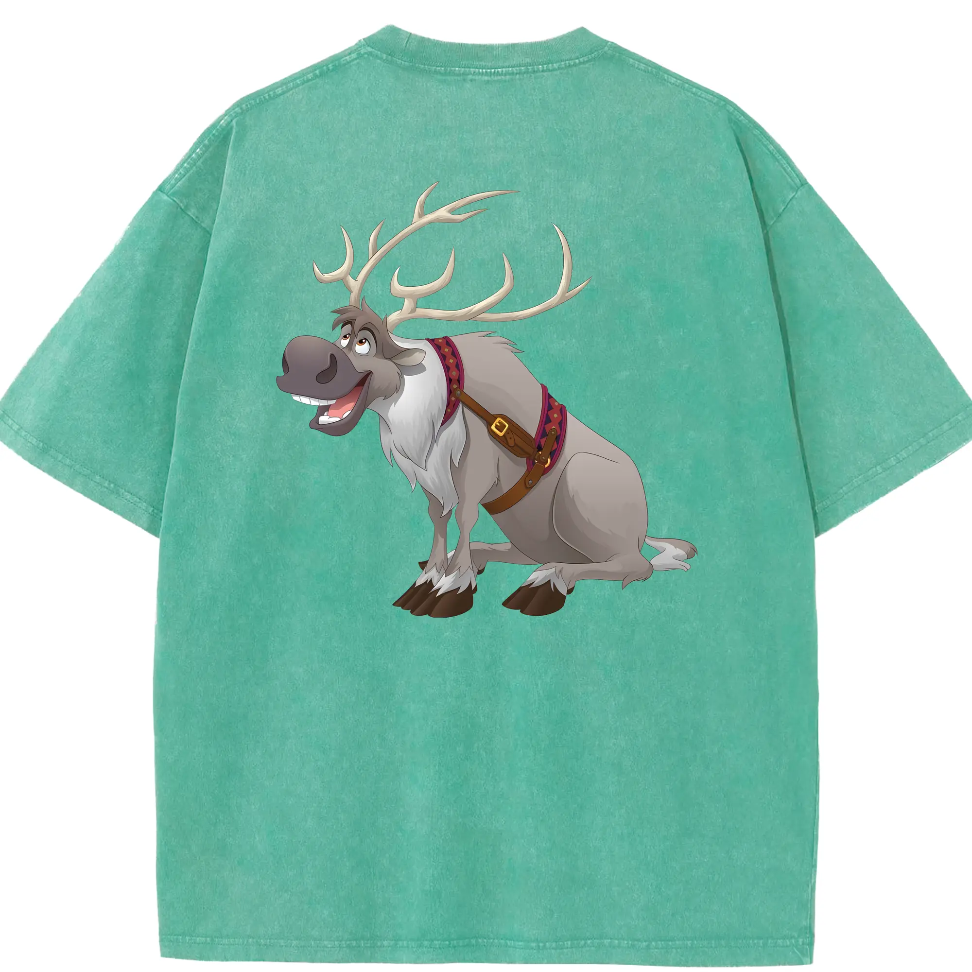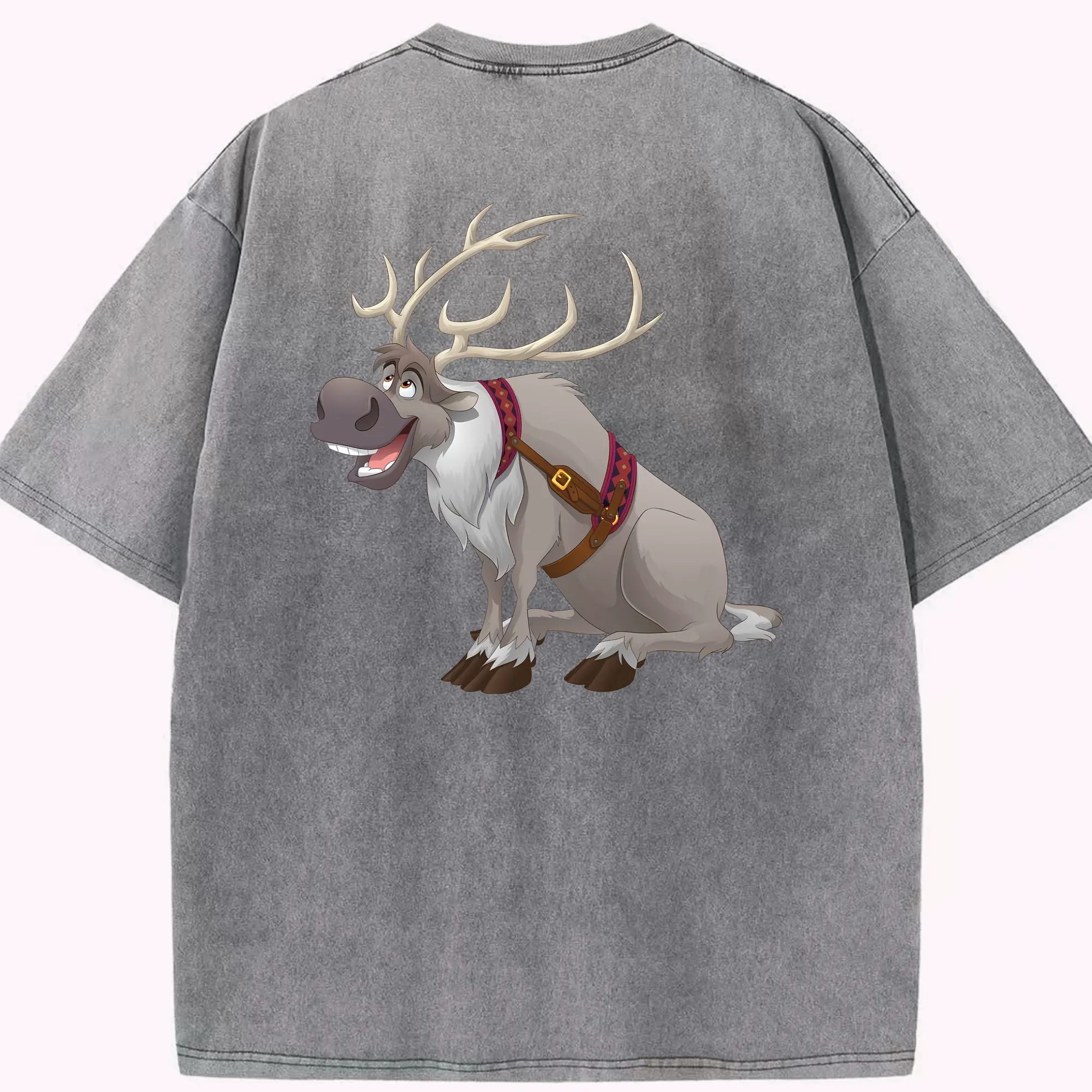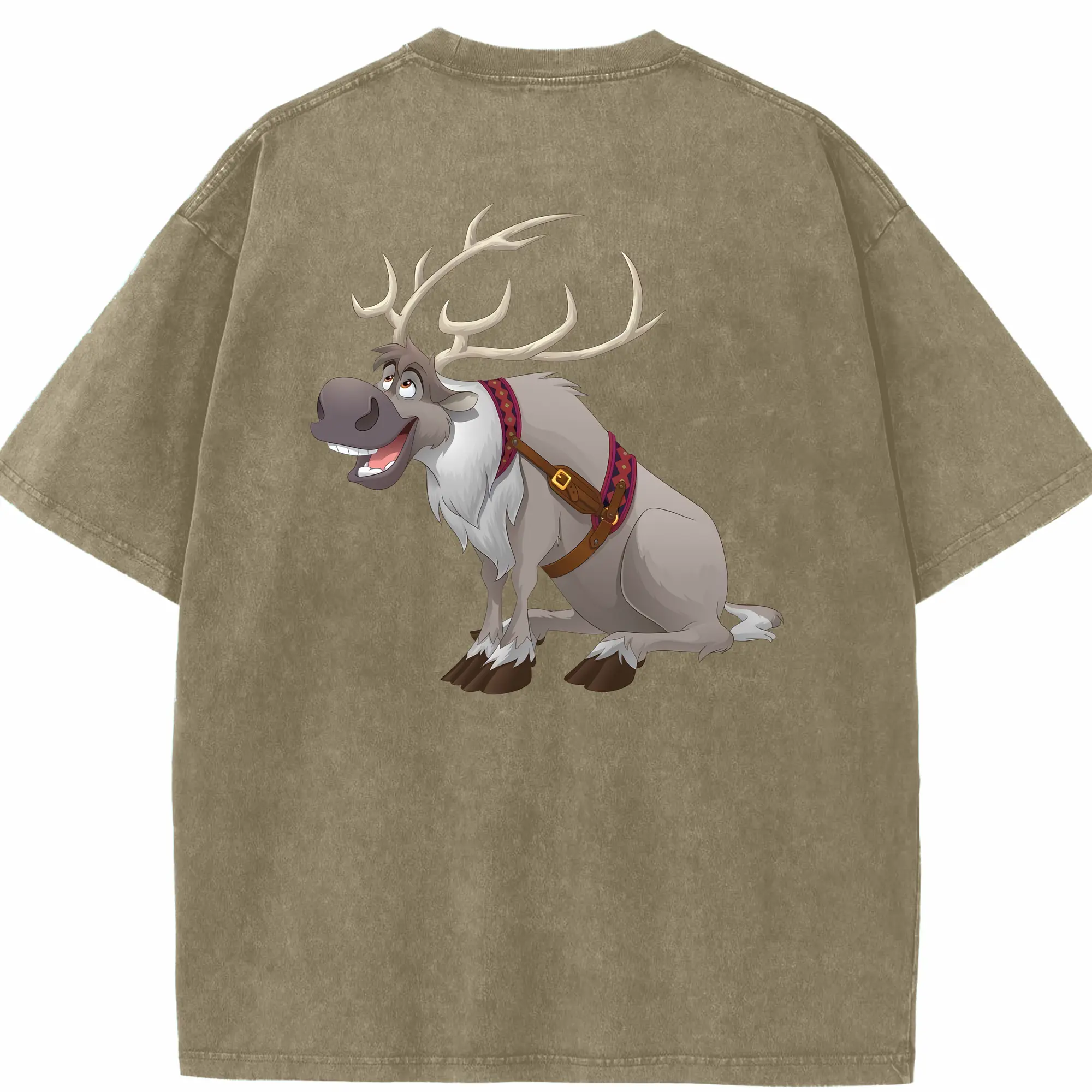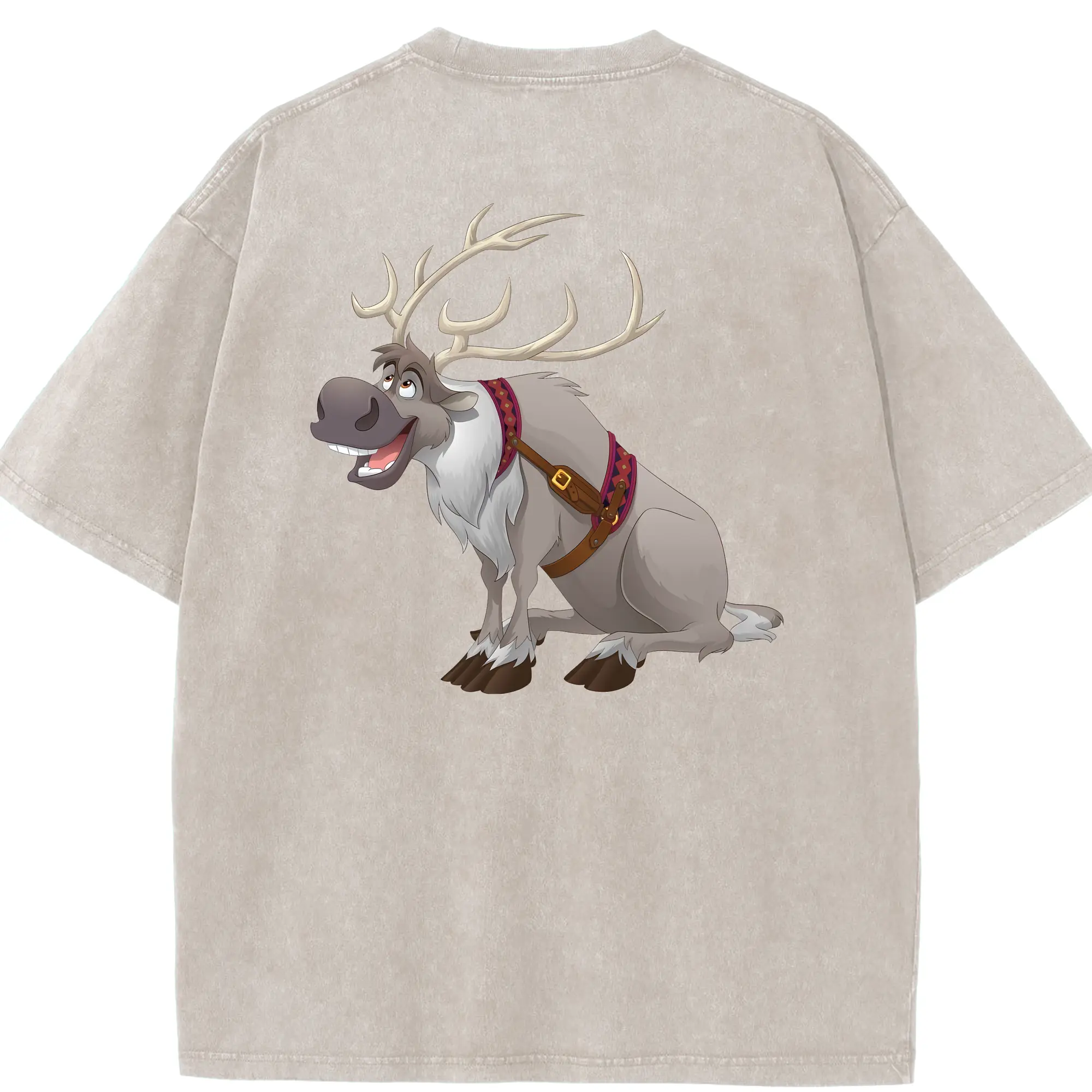 アナと雪の女王(Frozen) グッズ スヴェン(Sven) - 綿100% ヴィンテージ風 半袖Tシャツ ・ フロントプリント ・ 柔らか肌触り ・ 通気性 快適 ・ スポーツ カジュアル 外出用