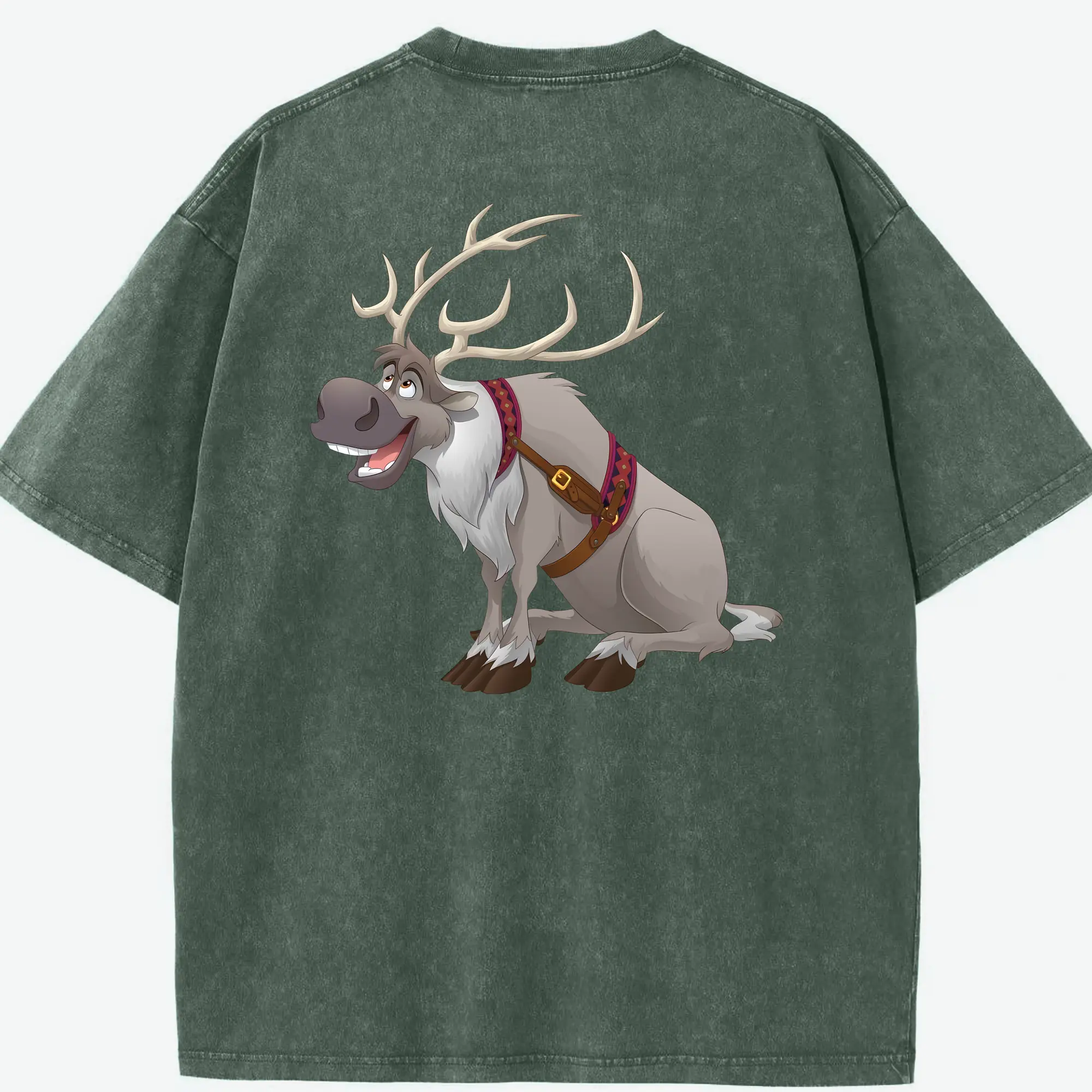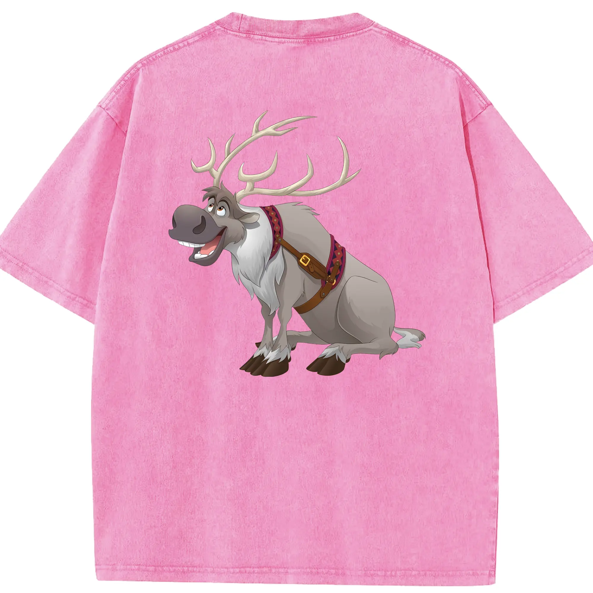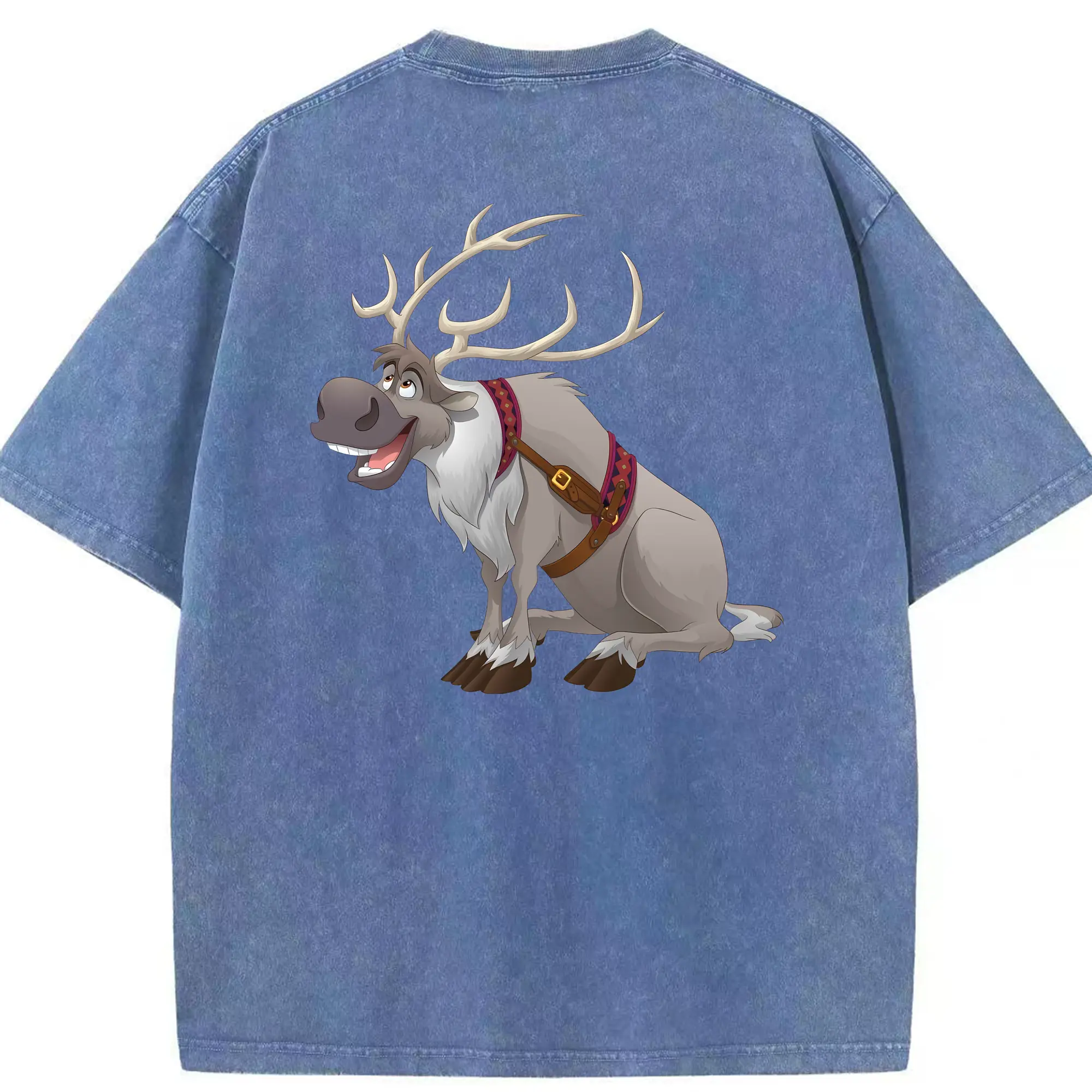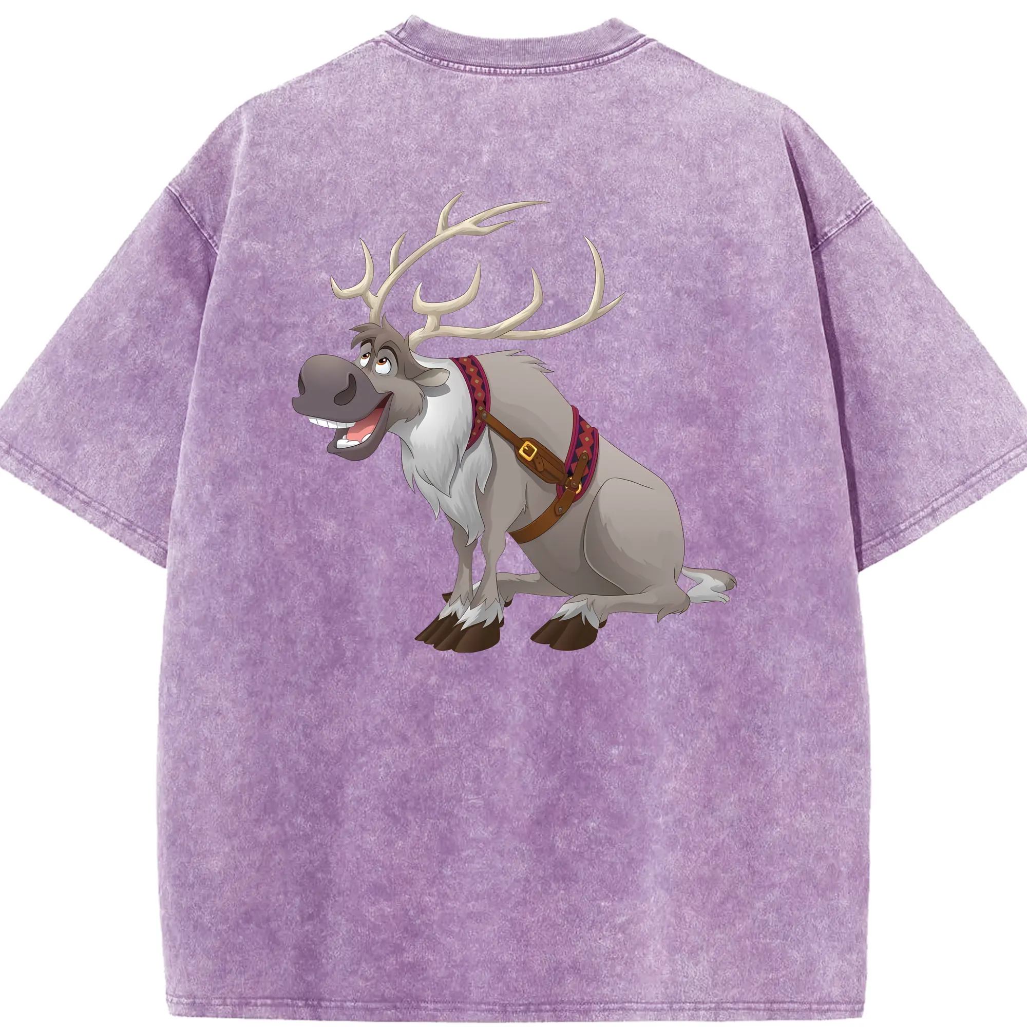 アナと雪の女王(Frozen) グッズ スヴェン(Sven) - 綿100% ヴィンテージ風 半袖Tシャツ ・ フロントプリント ・ 柔らか肌触り ・ 通気性 快適 ・ スポーツ カジュアル 外出用