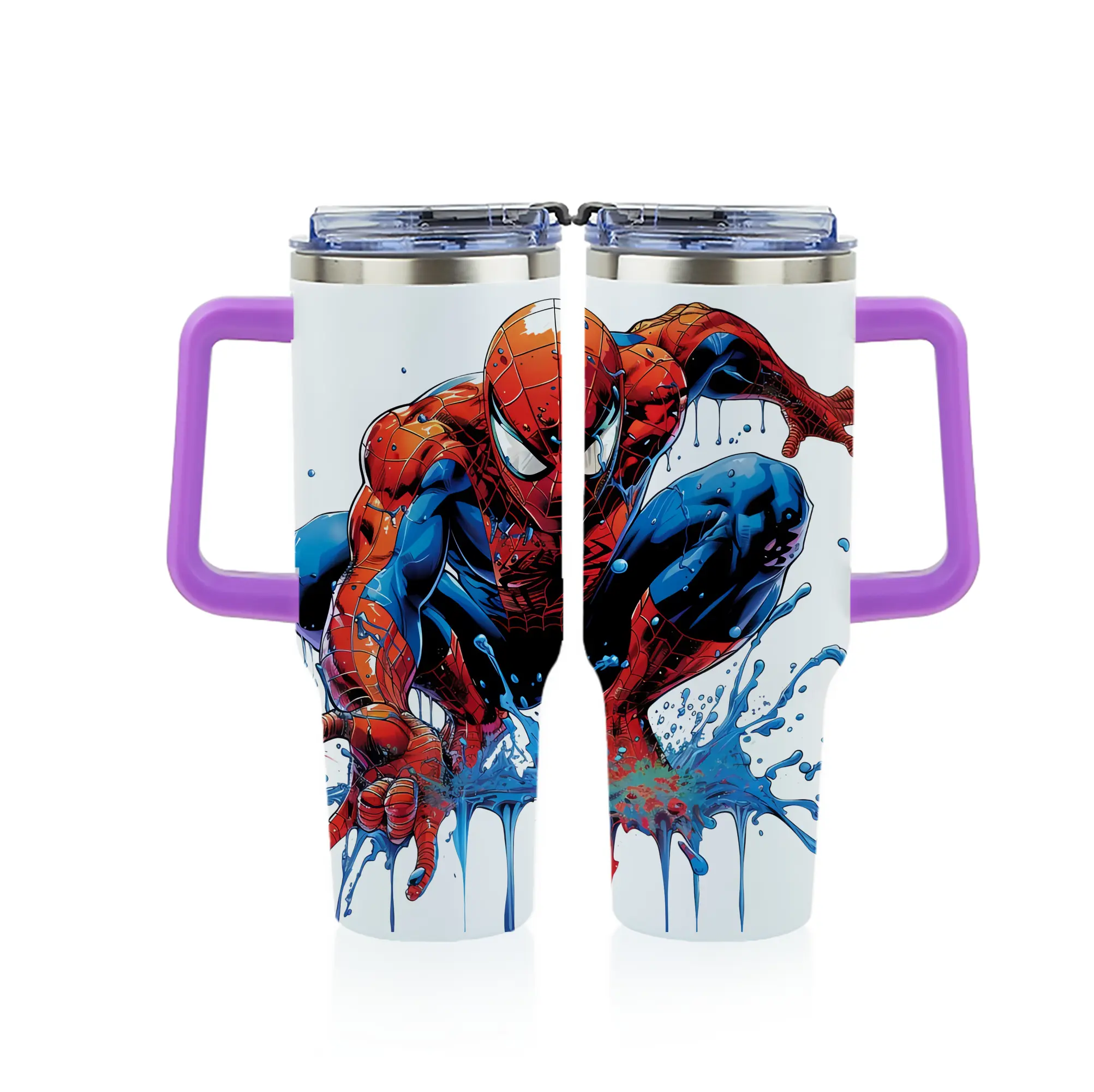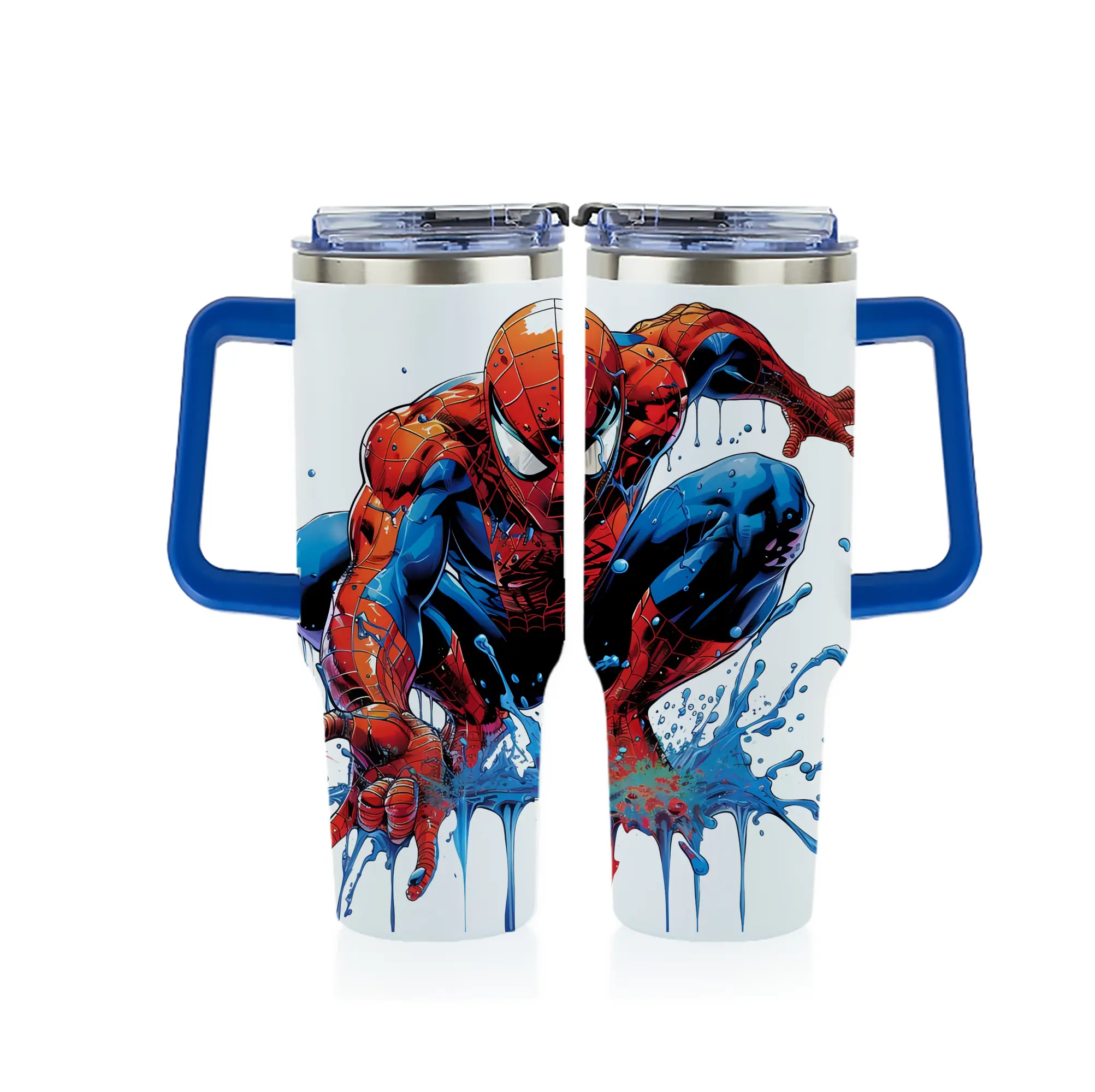 アベンジャーズ (Avenjāzu) グッズ スパイダーマン(Spider-Man) - 1200mL フルプリント車用タンブラー ・ 304ステンレス 内側 ・ 201ステンレス 外側 ・ 保温 保冷 ・ 通勤 ドライブ アウトドア用