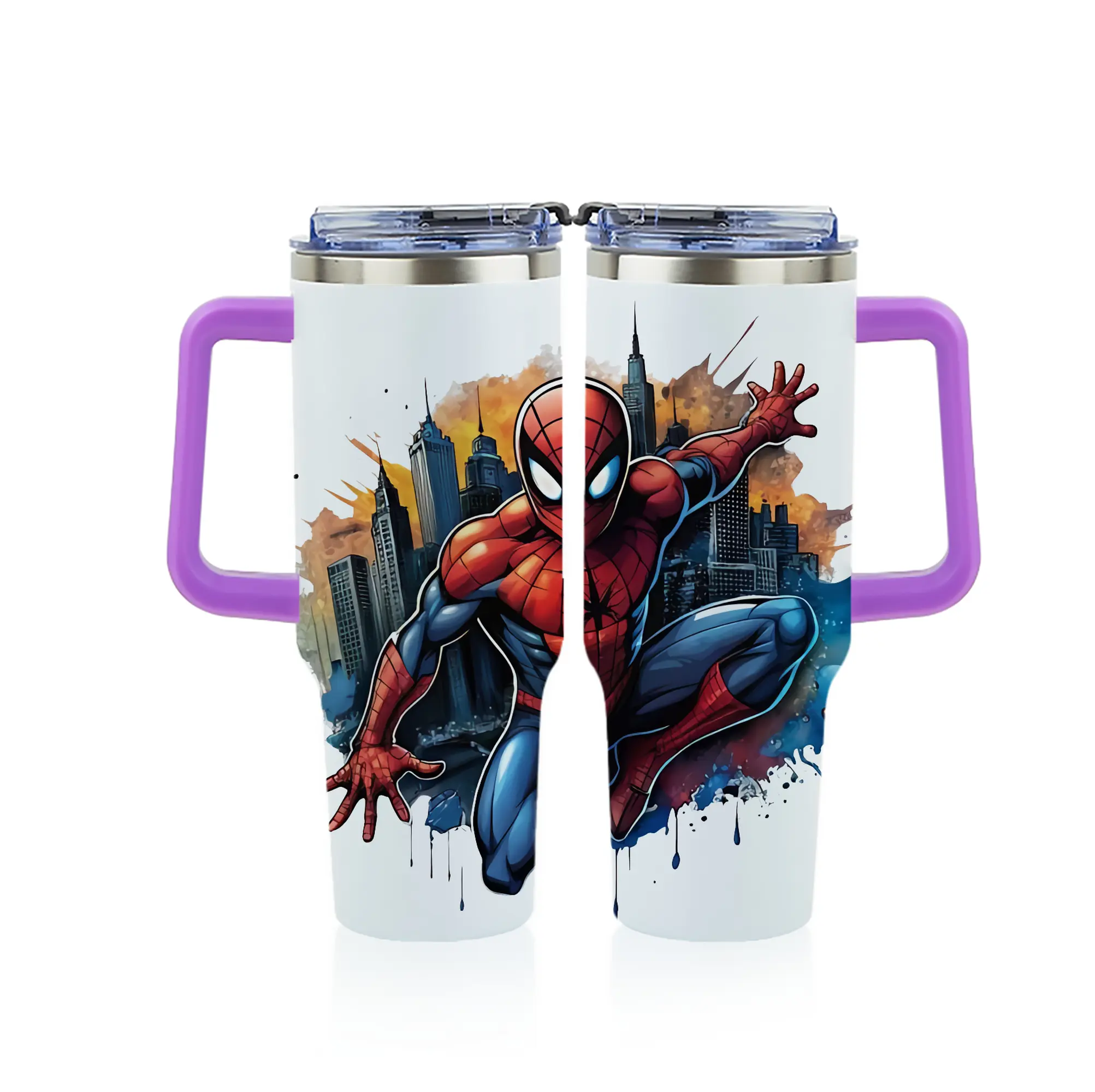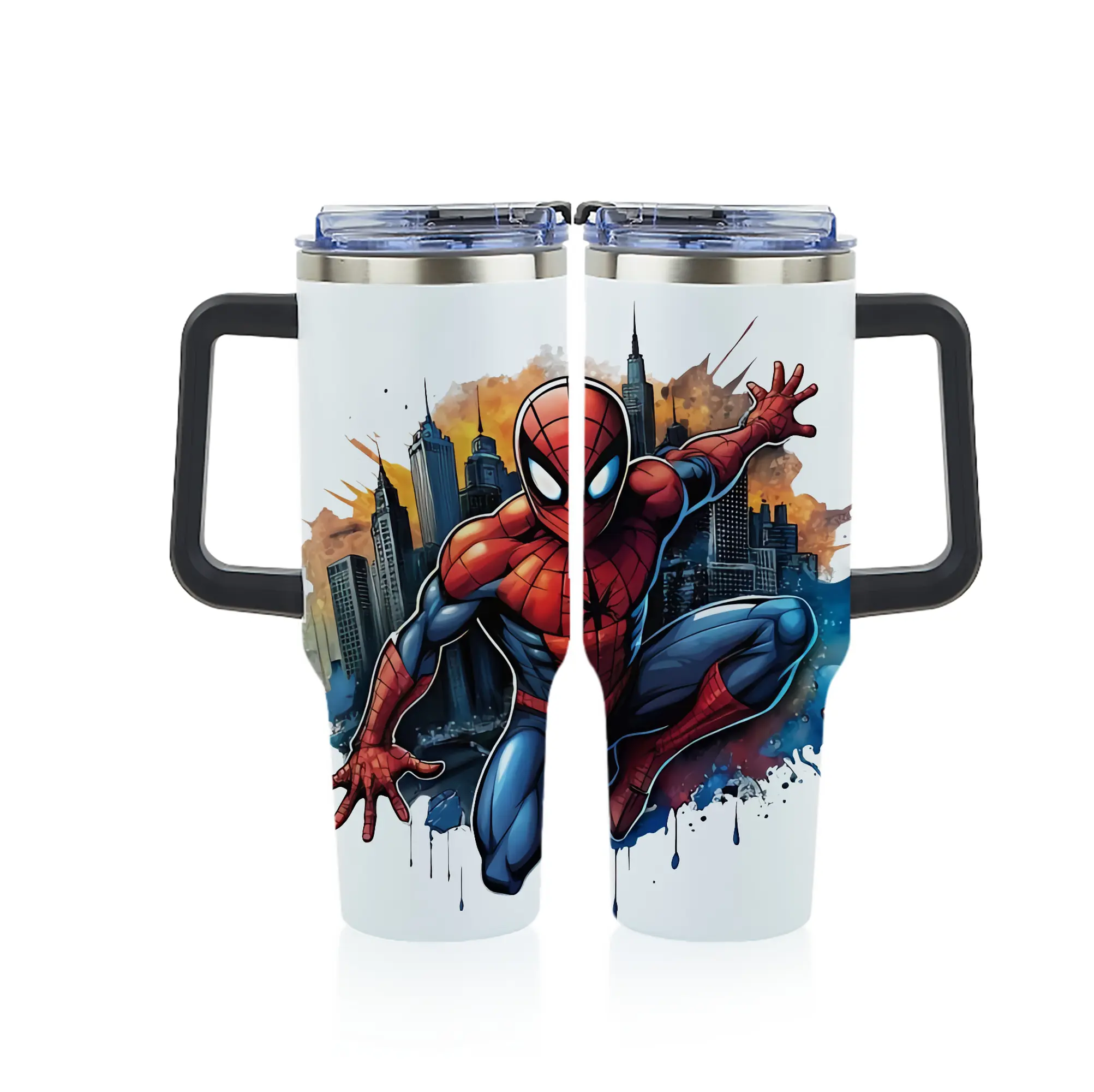 アベンジャーズ (Avenjāzu) グッズ スパイダーマン(Spider-Man) - 1200mL フルプリント車用タンブラー ・ 304ステンレス 内側 ・ 201ステンレス 外側 ・ 保温 保冷 ・ 通勤 ドライブ アウトドア用