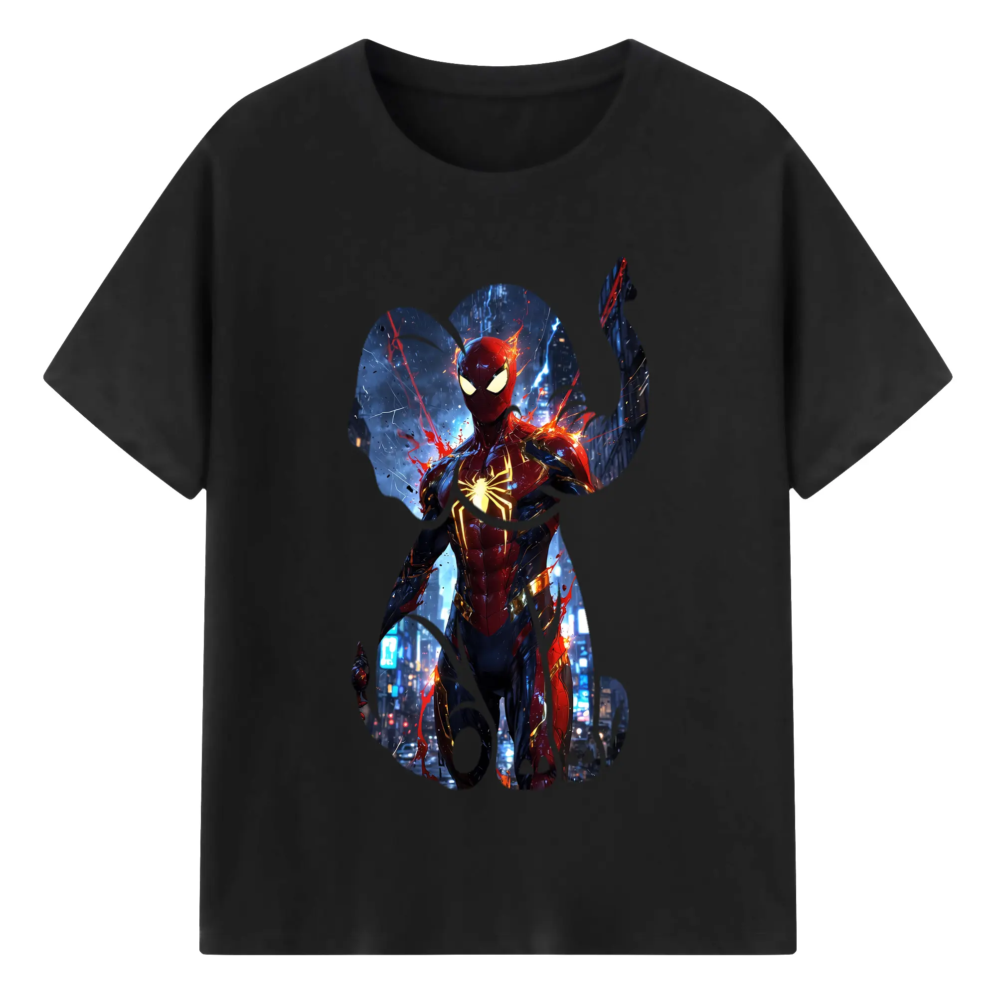 アベンジャーズ (Avenjāzu) グッズ スパイダーマン(Spider-Man) - 綿100% 半袖Tシャツ ・ フロントプリント ・ 快適 通気性 ・ 日常使い 散歩 スポーツ用