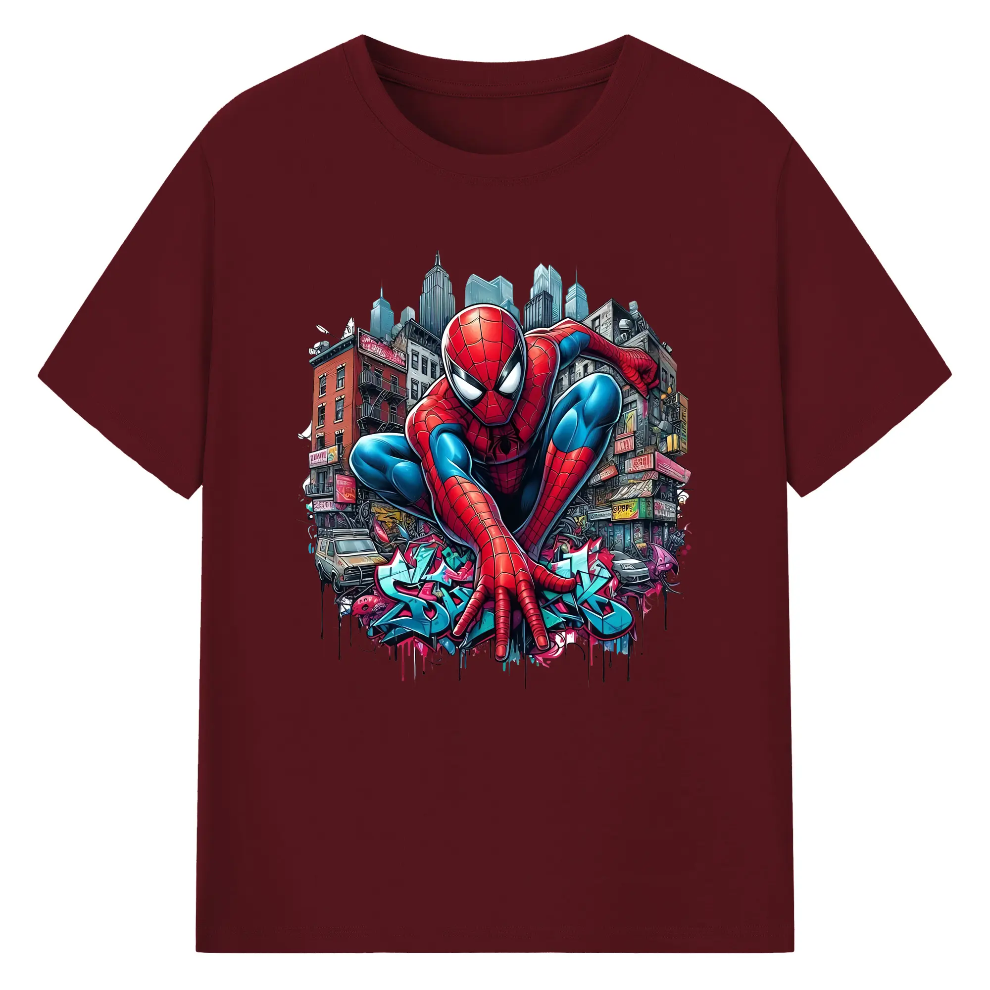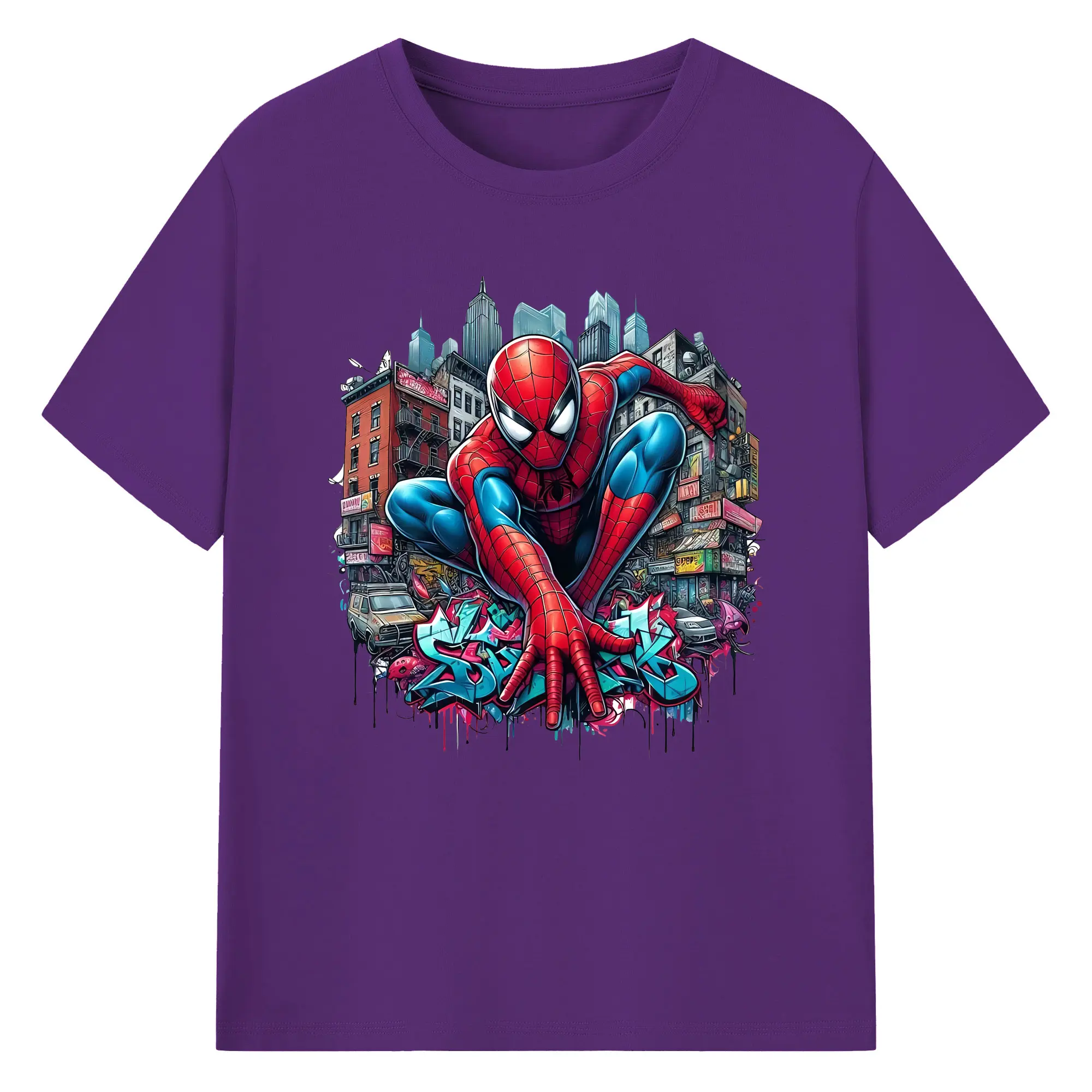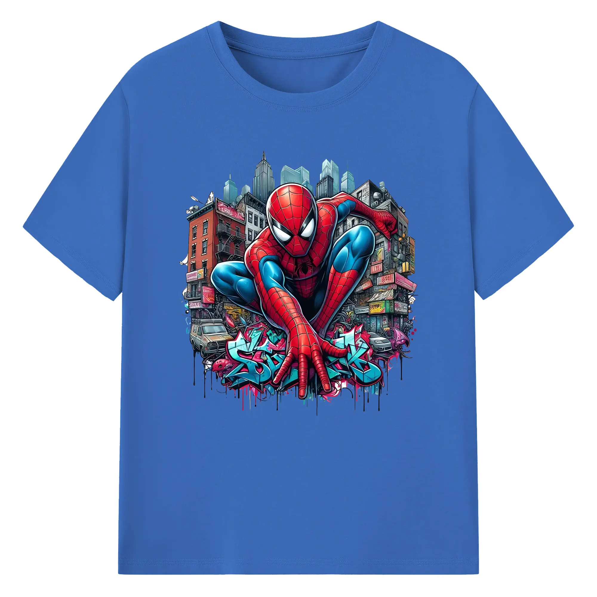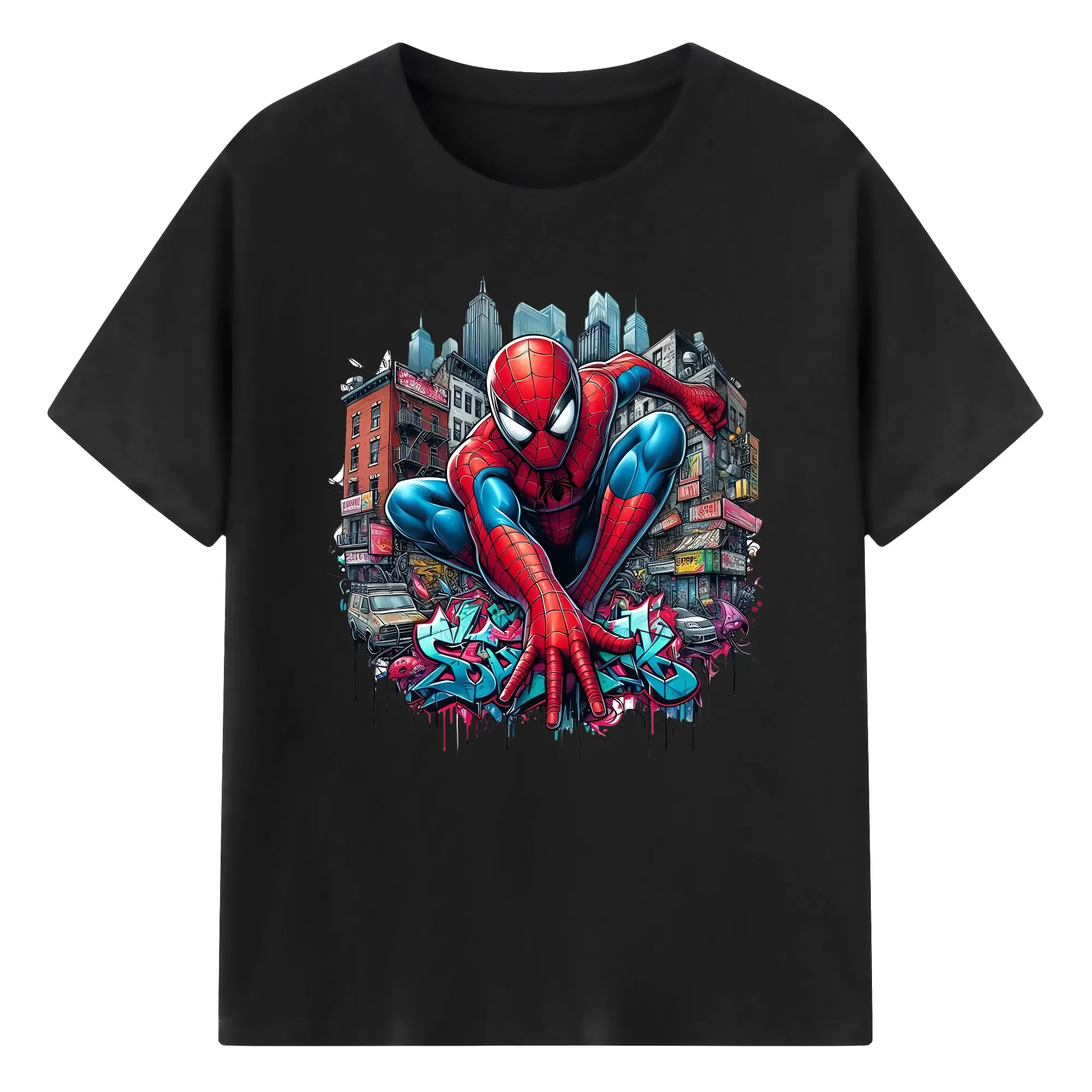 アベンジャーズ (Avenjāzu) グッズ スパイダーマン(Spider-Man) - 綿100% 半袖Tシャツ ・ バックプリント ・ 快適 通気性 ・ 日常使い 散歩 スポーツ用