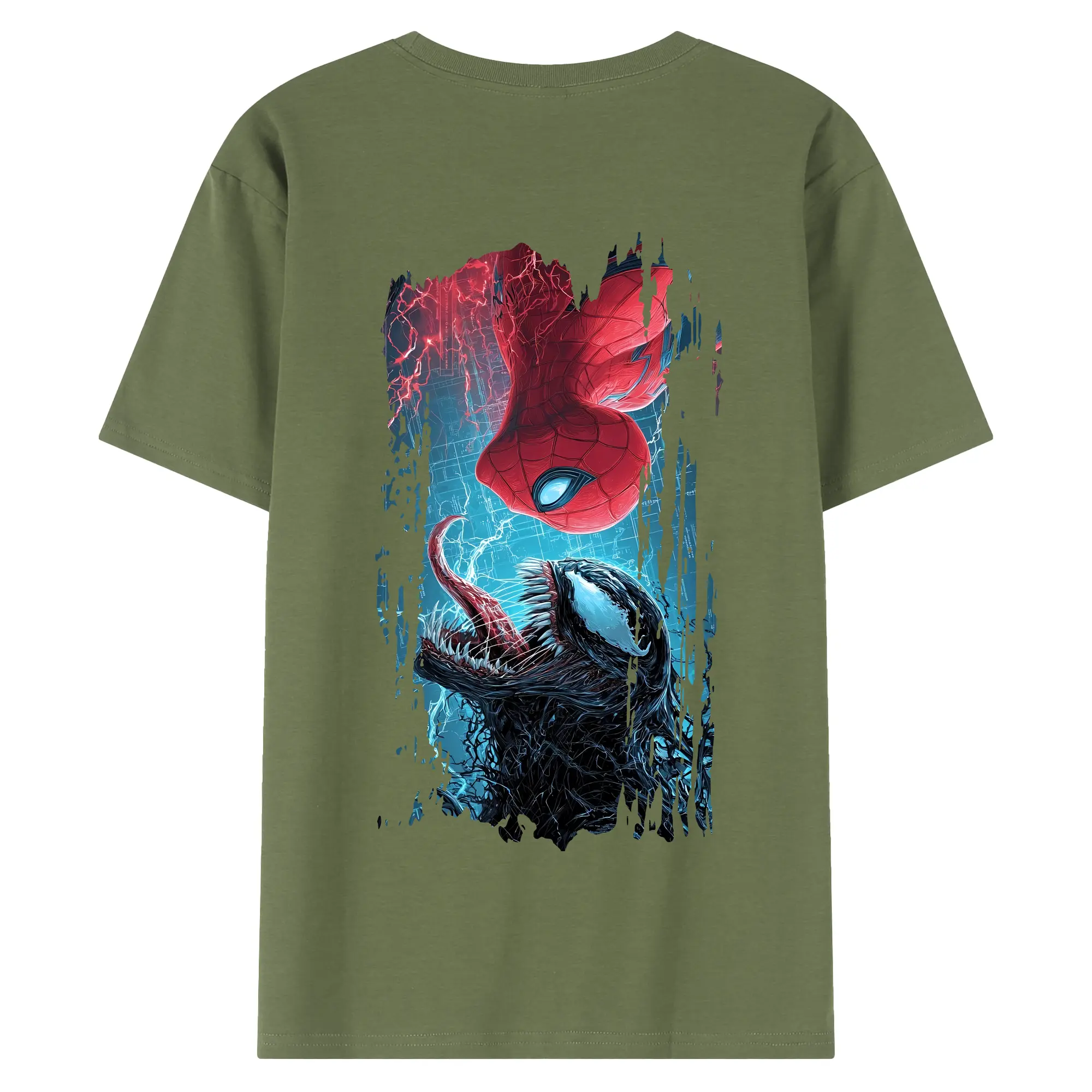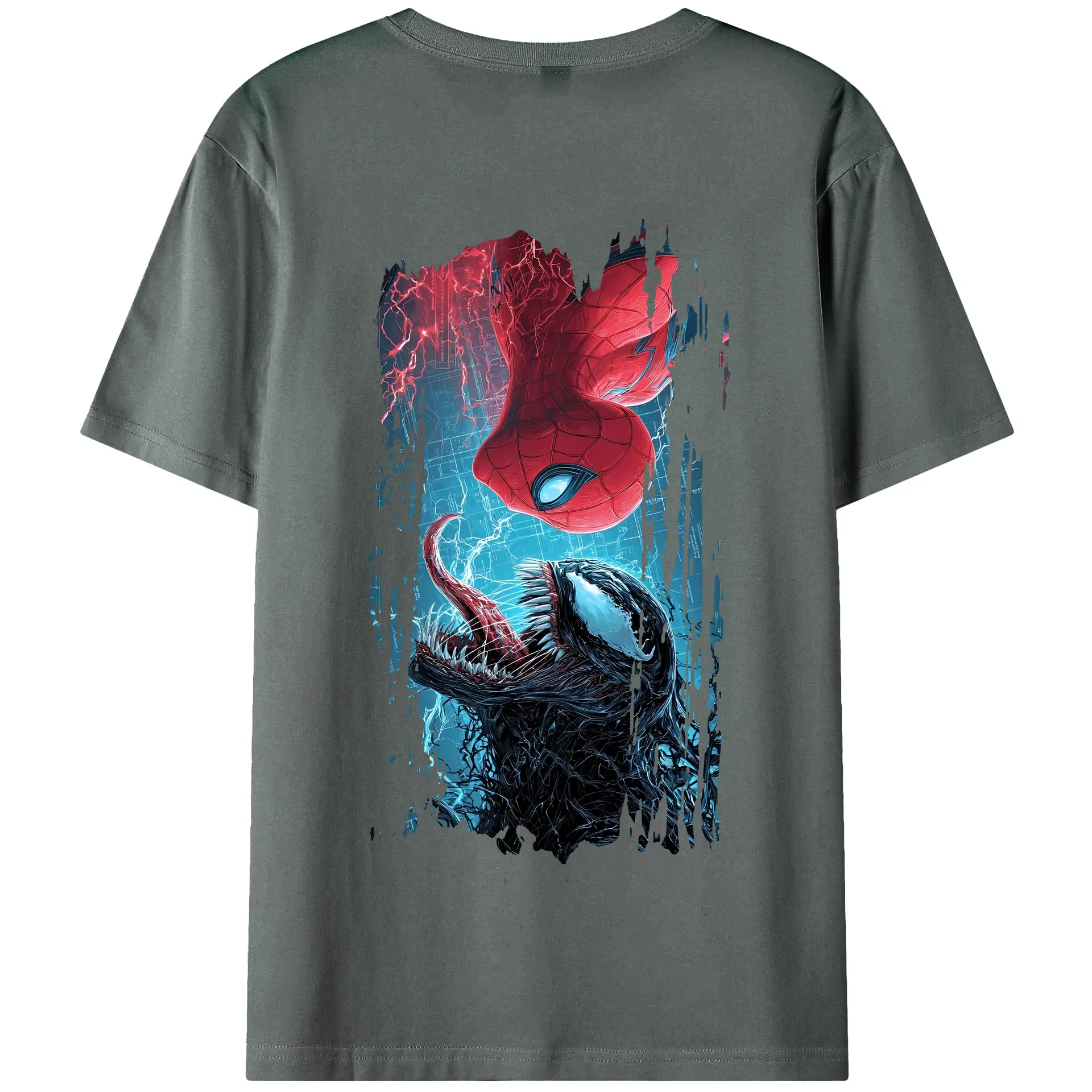 アベンジャーズ (Avenjāzu) グッズ スパイダーマン(Spider-Man) - 綿100% 半袖Tシャツ ・ バックプリント ・ 快適 通気性 ・ 日常使い 散歩 スポーツ用