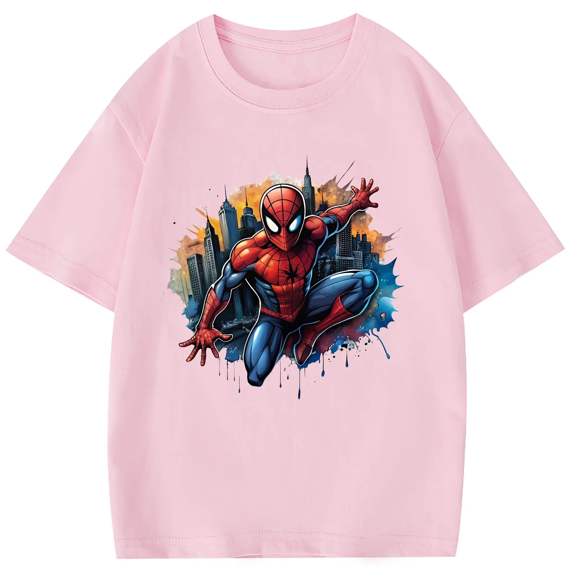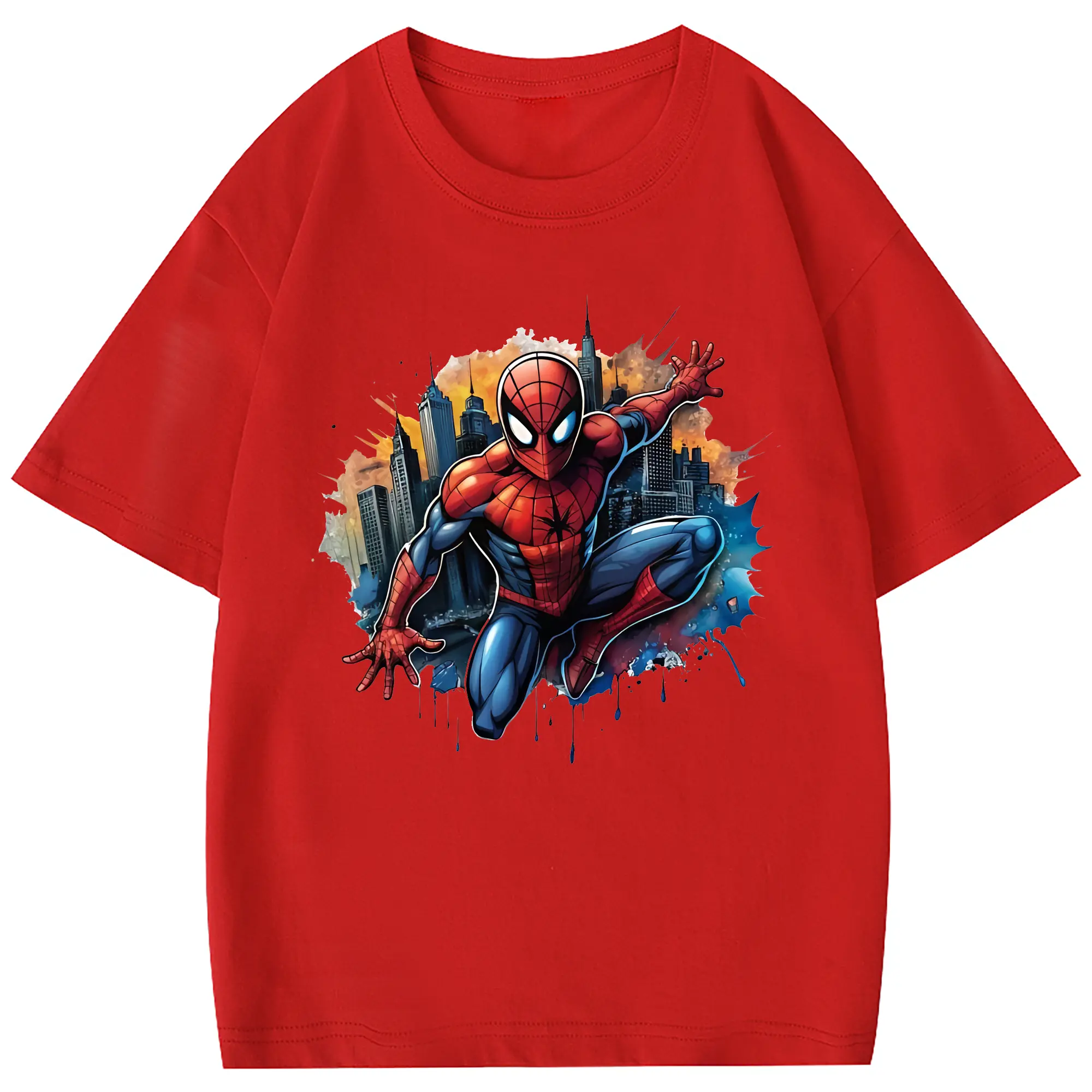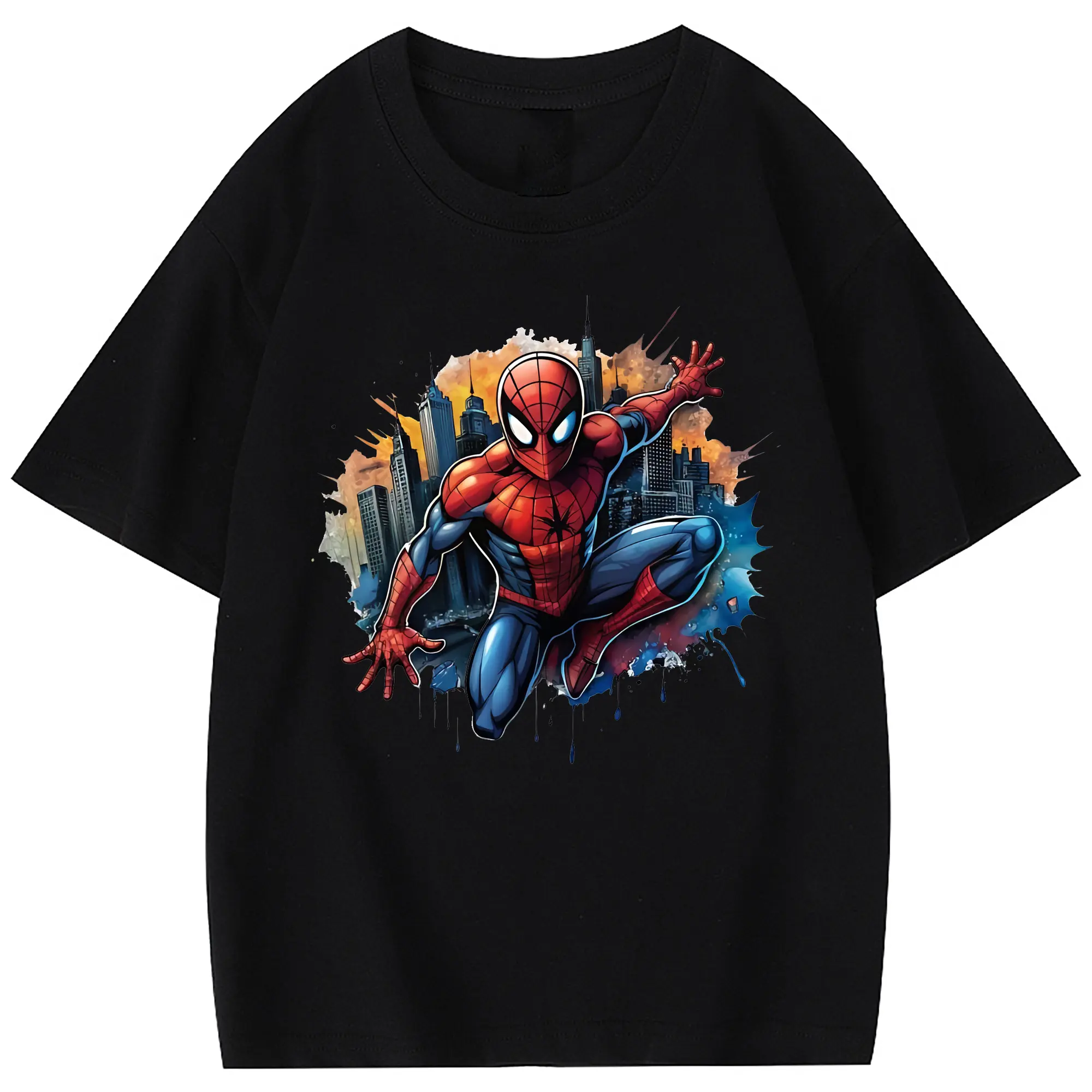 アベンジャーズ (Avenjāzu) グッズ スパイダーマン(Spider-Man) - 綿100% 半袖Tシャツ ・ フロントプリント ・ 快適 通気性 ・ 日常使い 散歩 スポーツ用