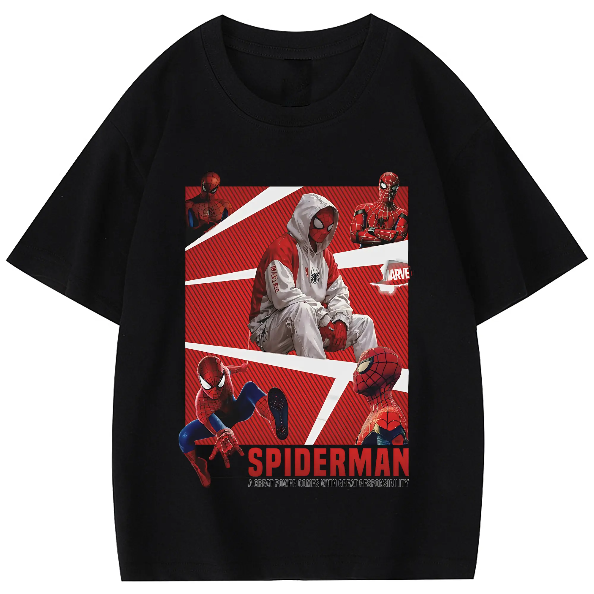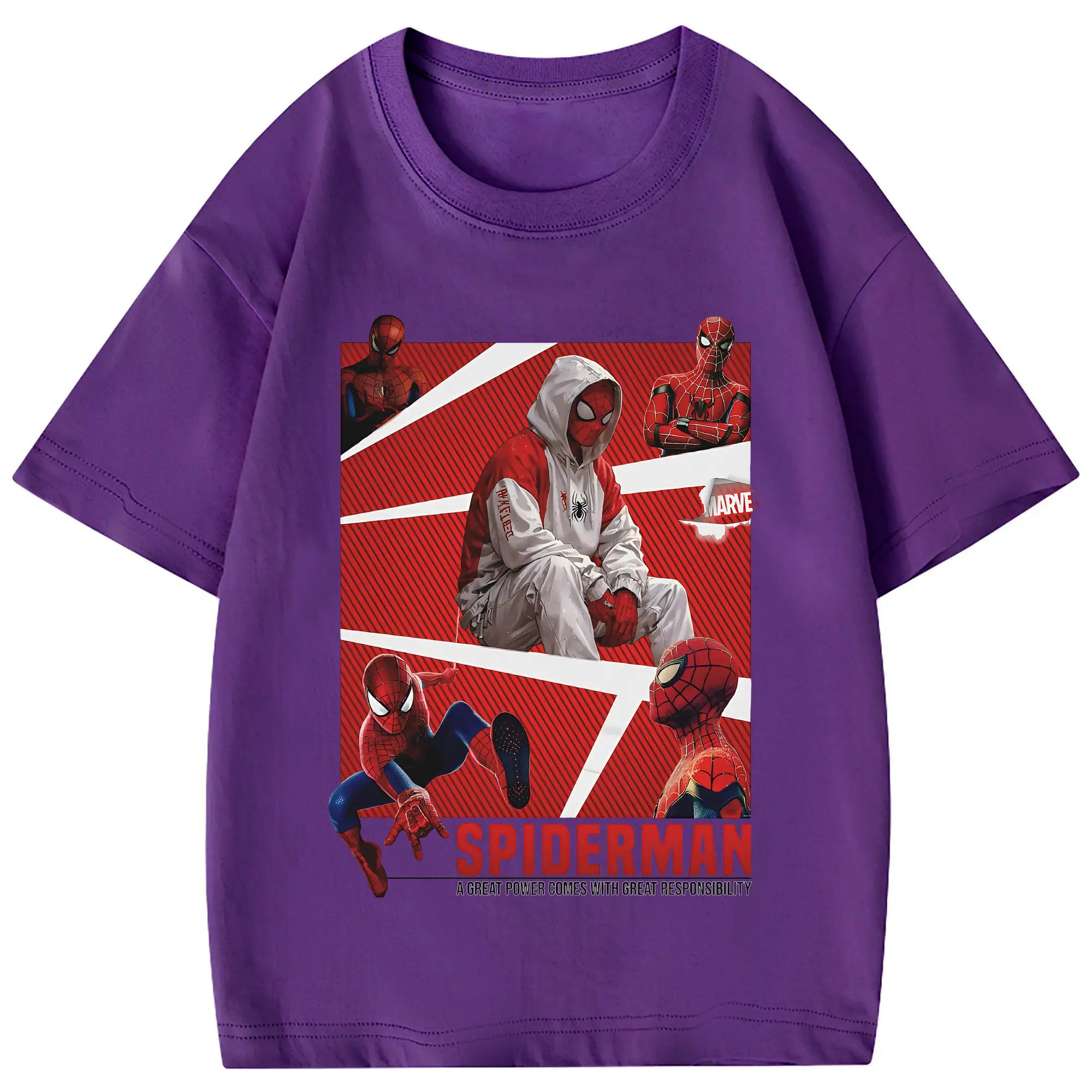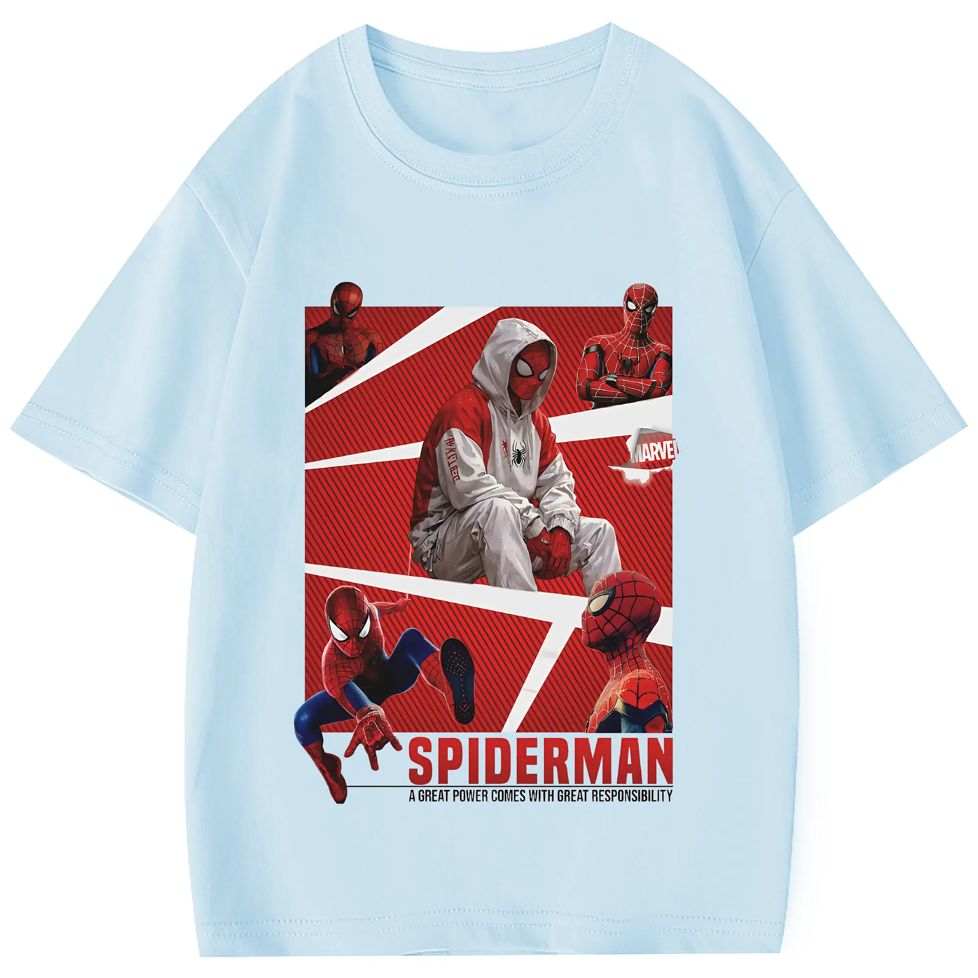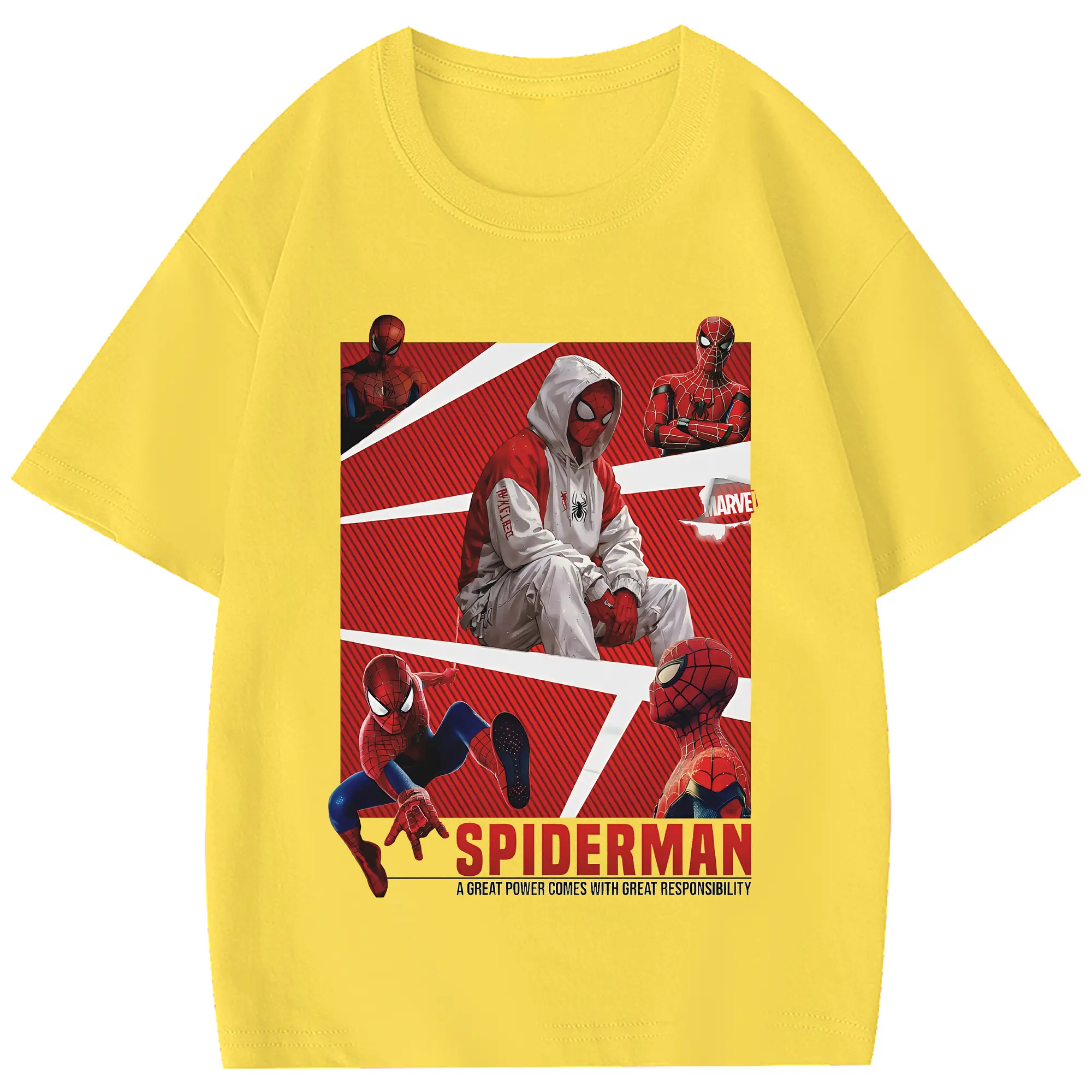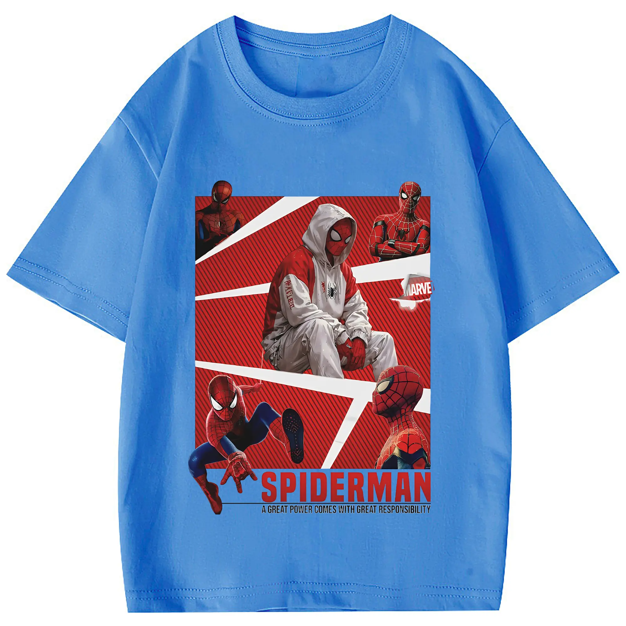 アベンジャーズ (Avenjāzu) グッズ スパイダーマン(Spider-Man) - 綿100% 半袖Tシャツ ・ フロントプリント ・ 快適 通気性 ・ 日常使い 散歩 スポーツ用