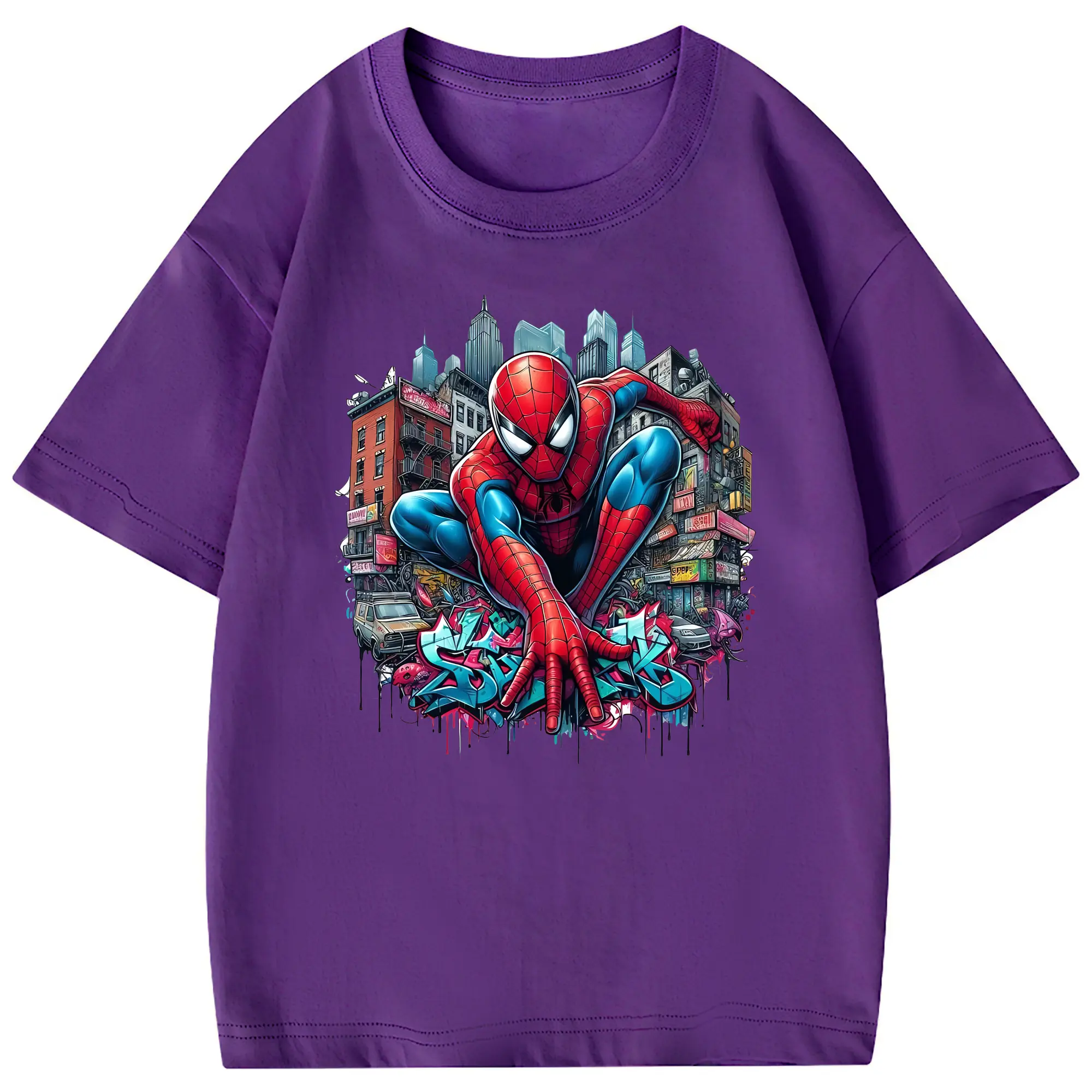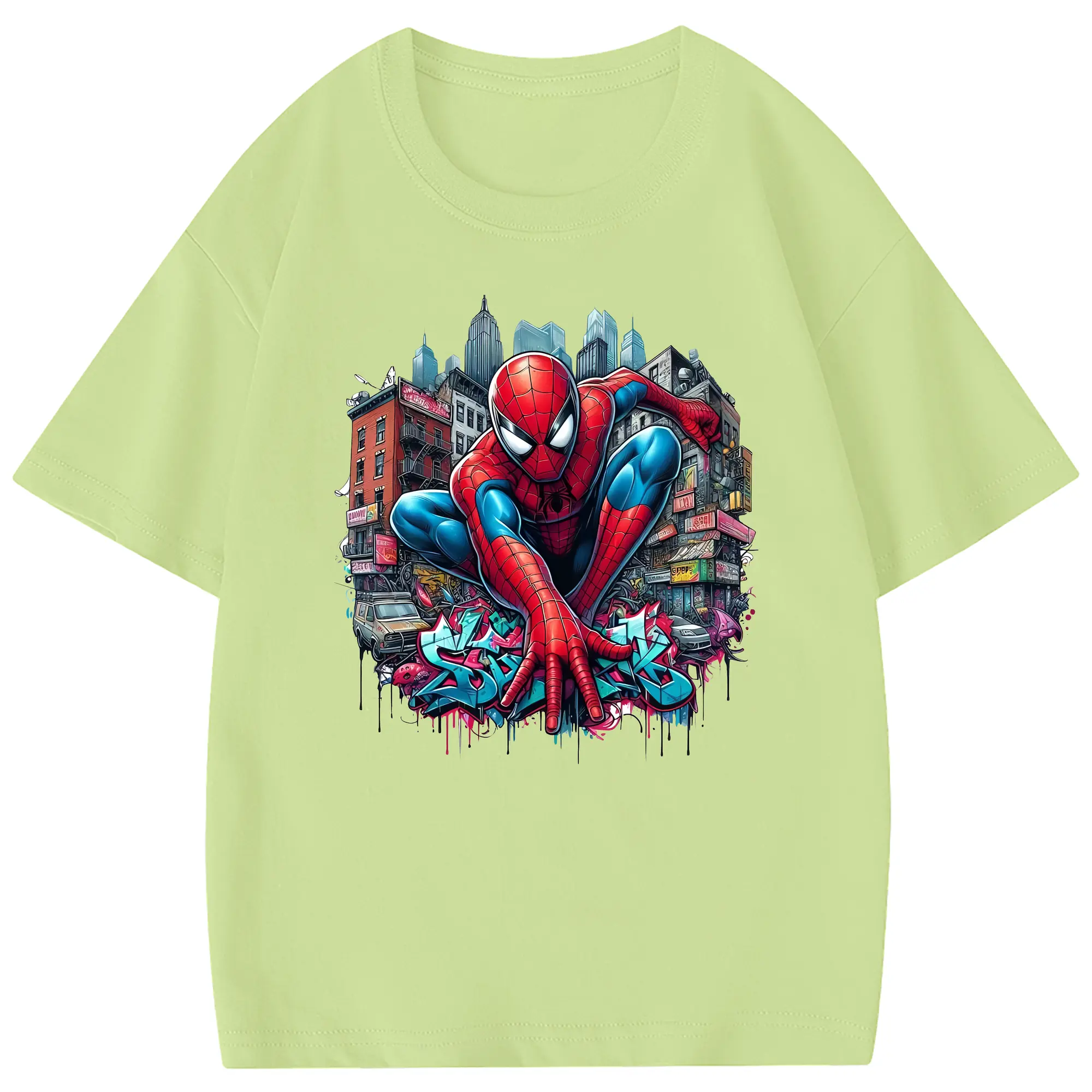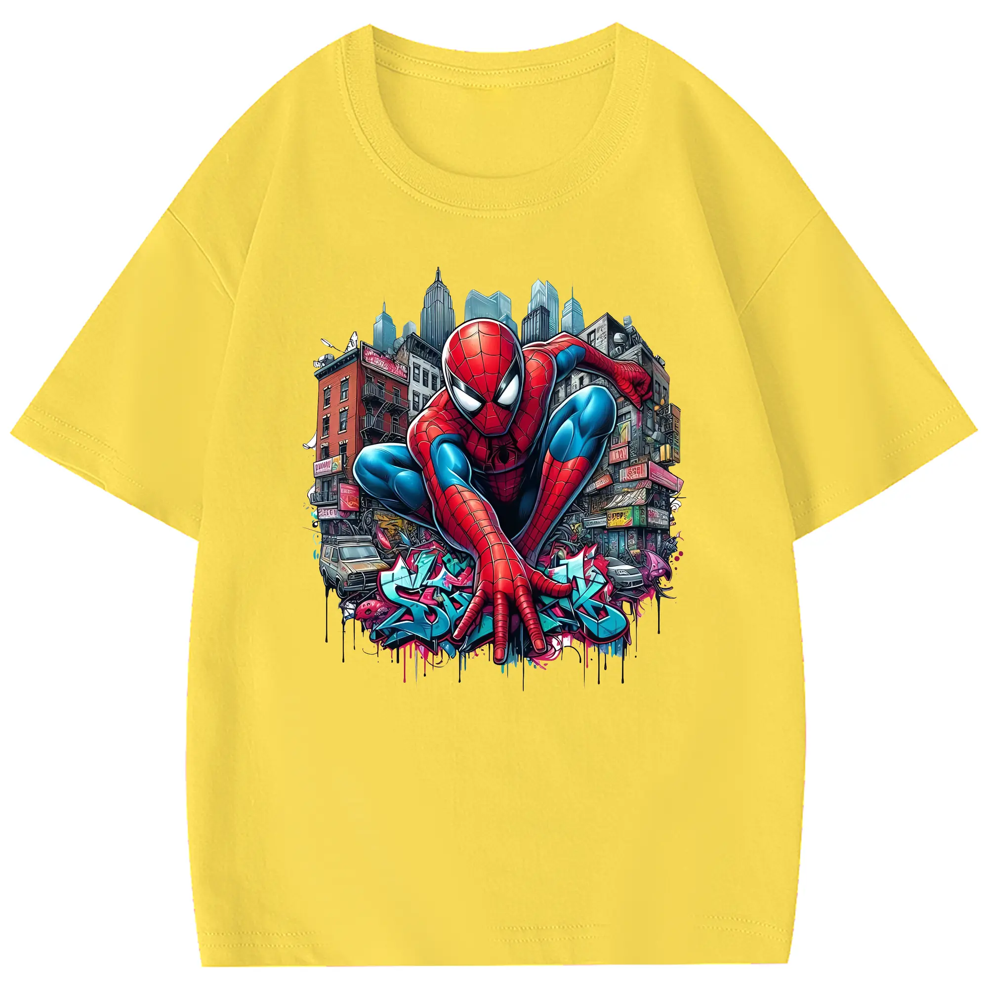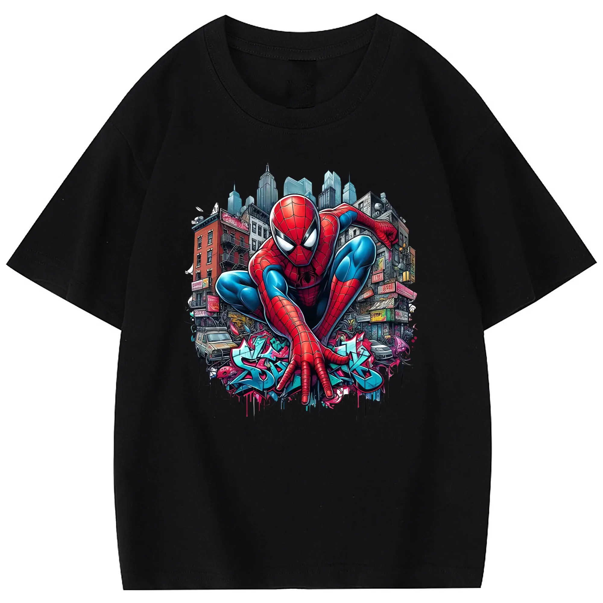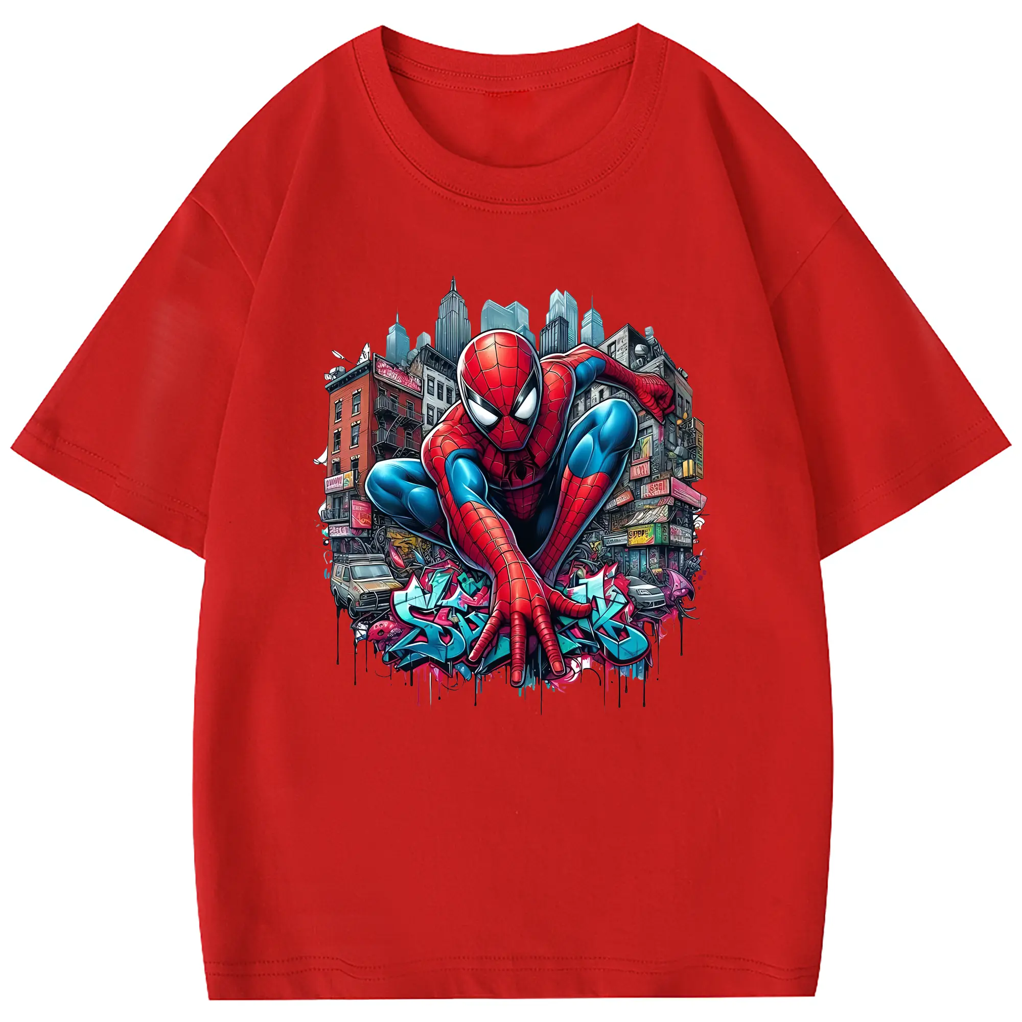 アベンジャーズ (Avenjāzu) グッズ スパイダーマン(Spider-Man) - 綿100% 半袖Tシャツ ・ フロントプリント ・ 快適 通気性 ・ 日常使い 散歩 スポーツ用