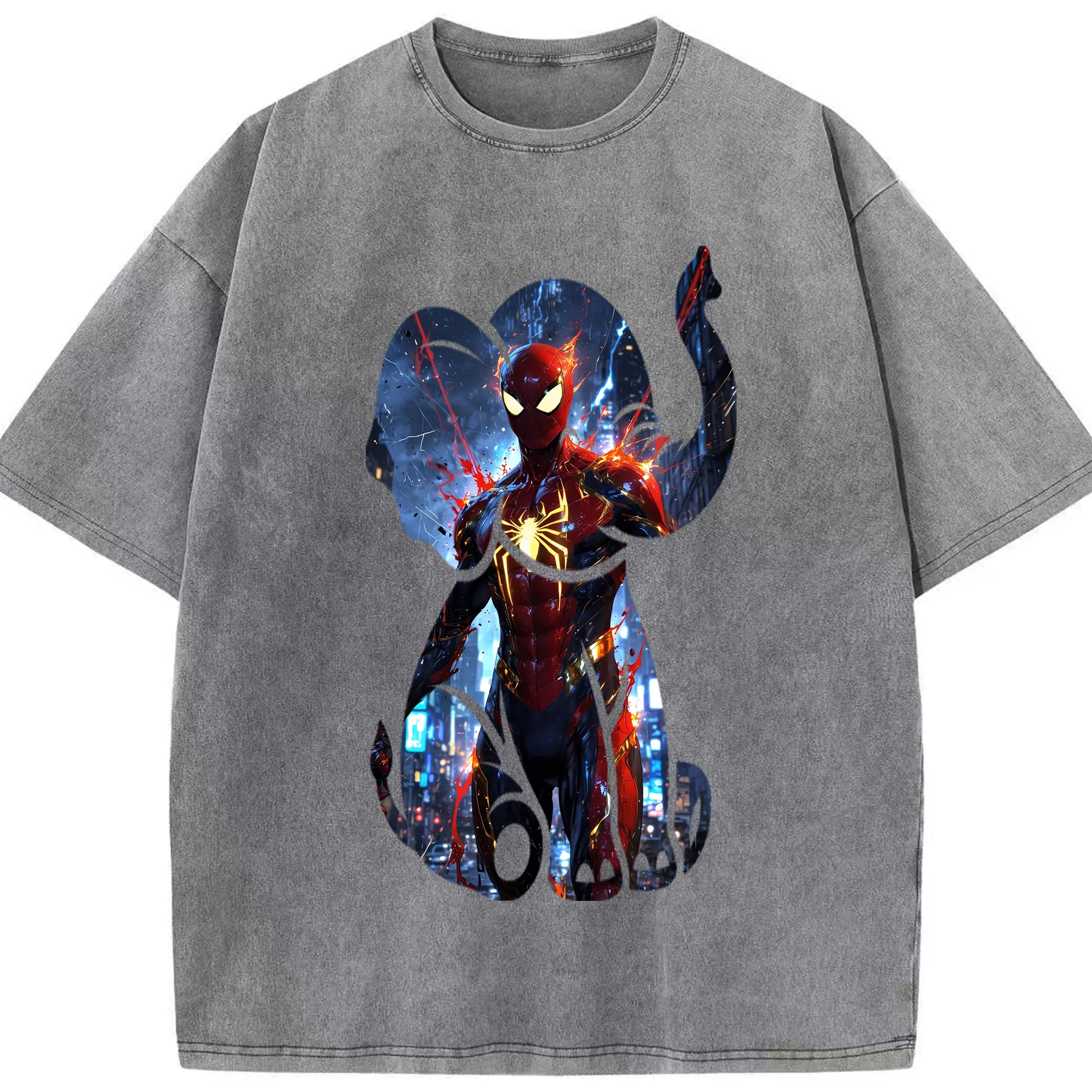 アベンジャーズ (Avenjāzu) グッズ スパイダーマン(Spider-Man) - 綿100% 半袖Tシャツ ・ バックプリント ・ 快適 通気性 ・ 日常使い 散歩 スポーツ用