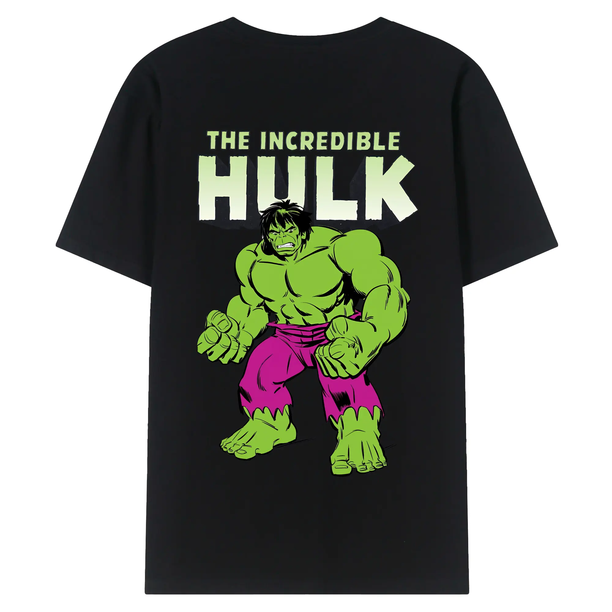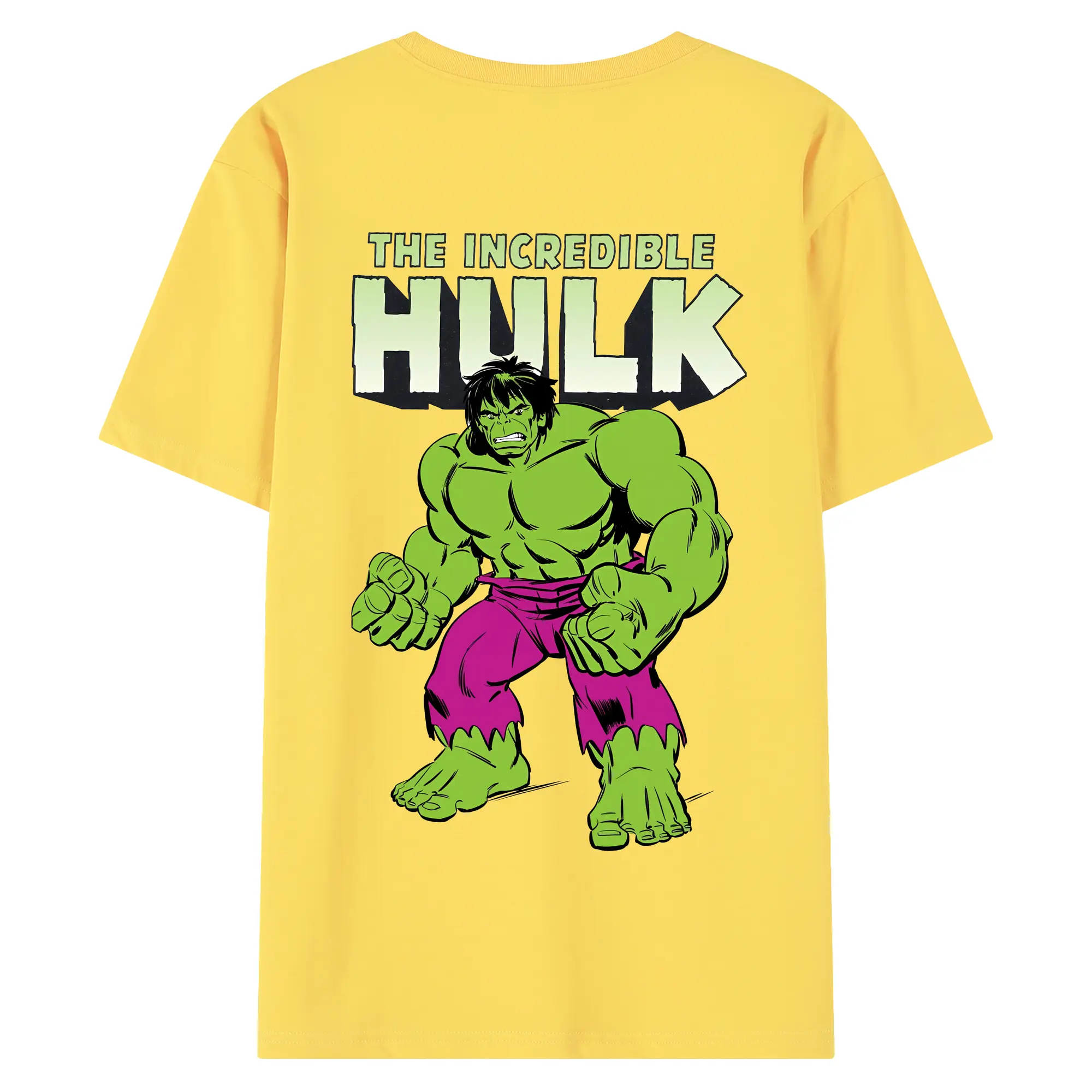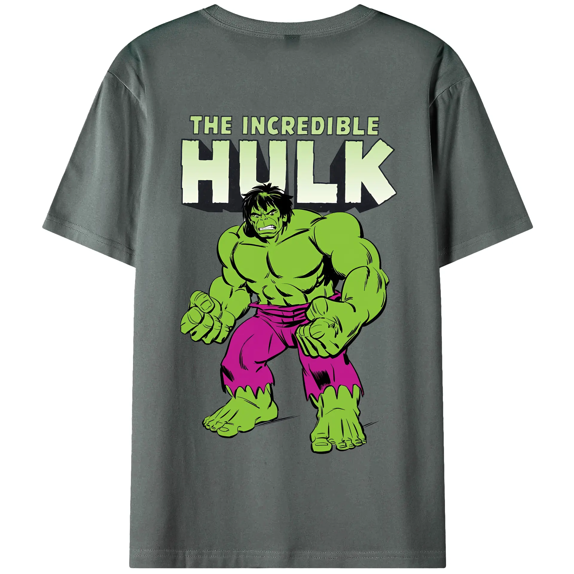 アベンジャーズ (Avenjāzu) グッズ ハルク(Hulk) - 綿100% ヴィンテージ風 半袖Tシャツ ・ 背面プリント ・ 柔らか肌触り ・ 通気性 快適 ・ スポーツ カジュアル 外出用
