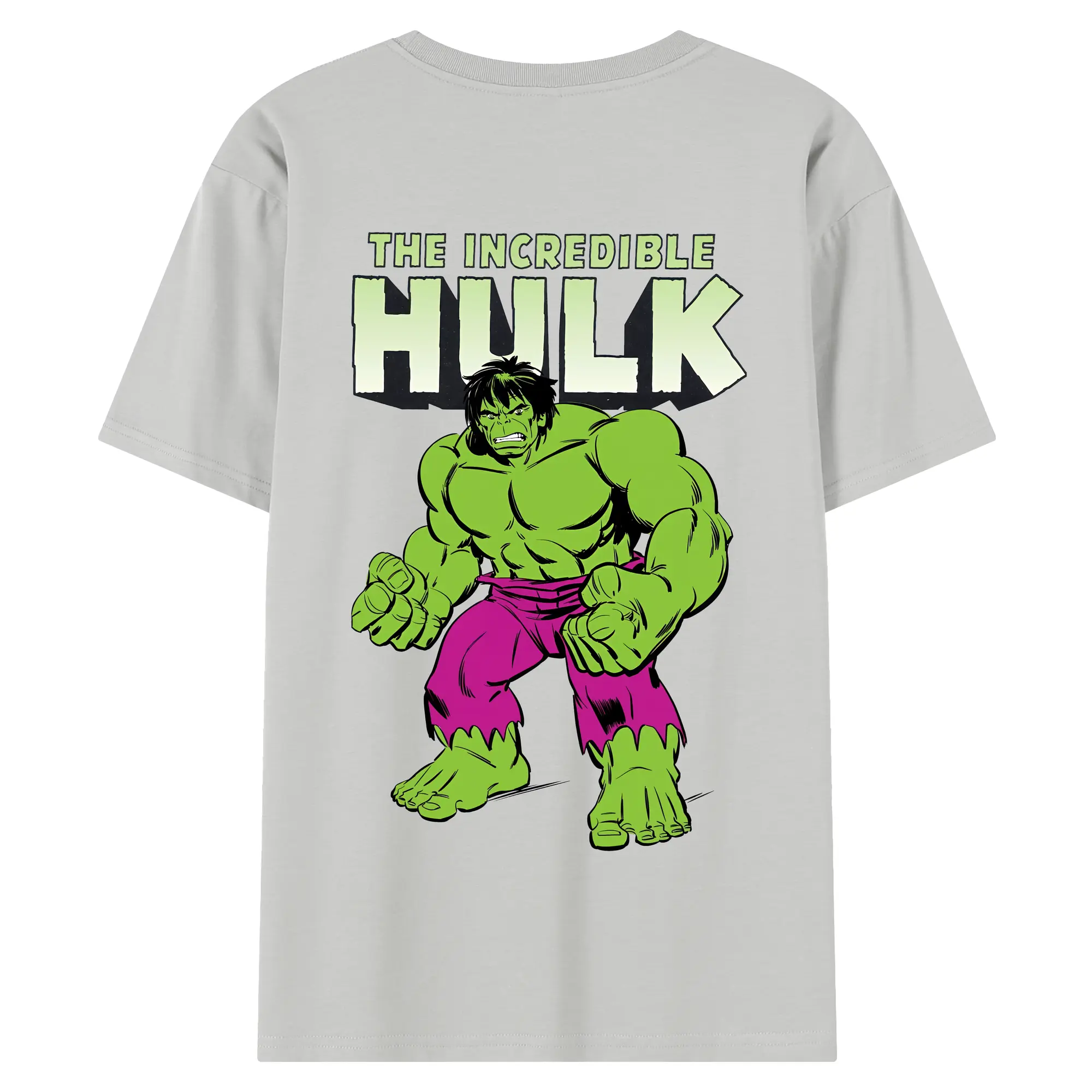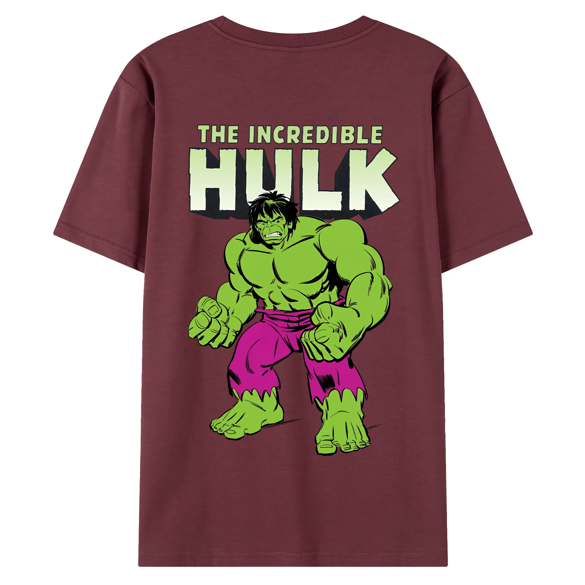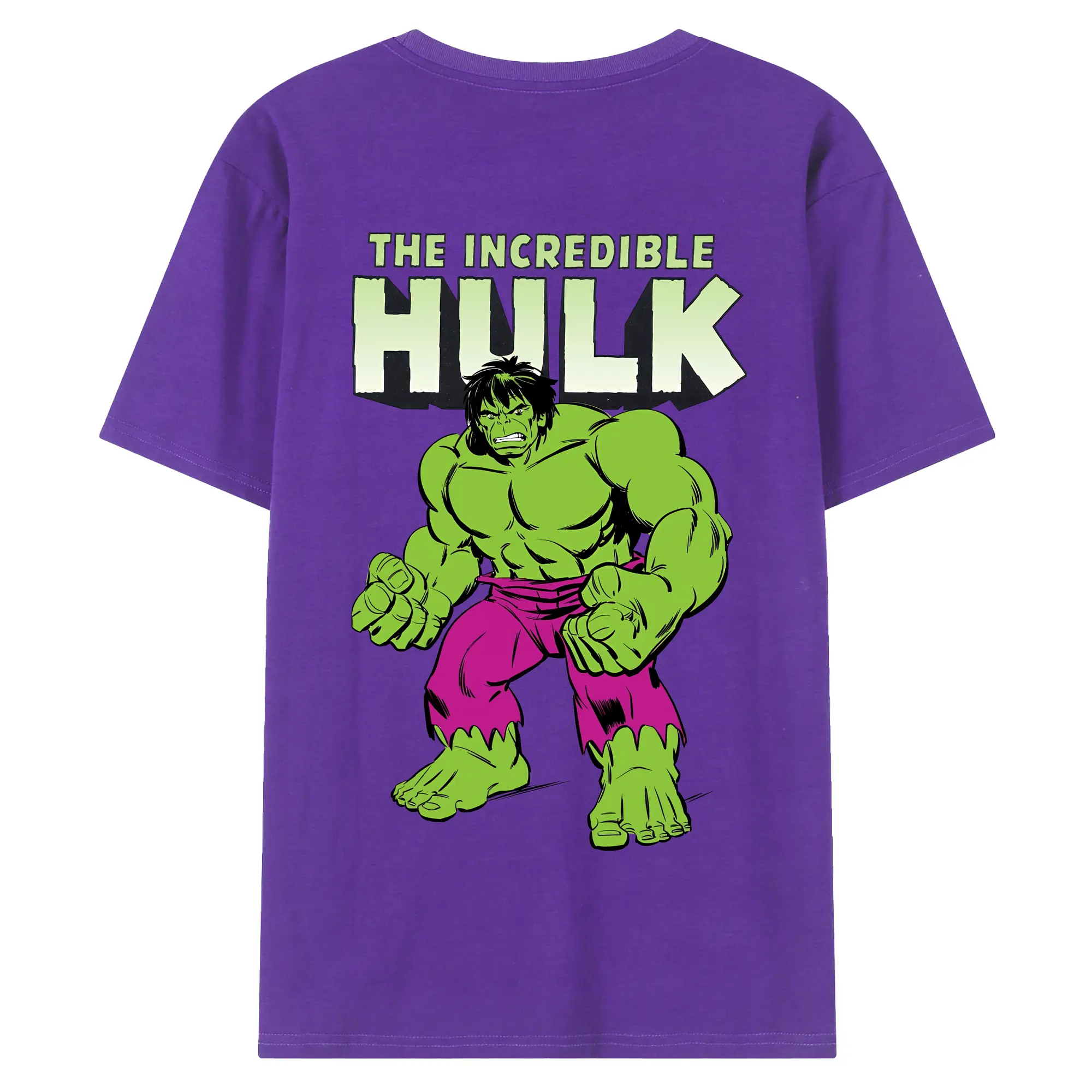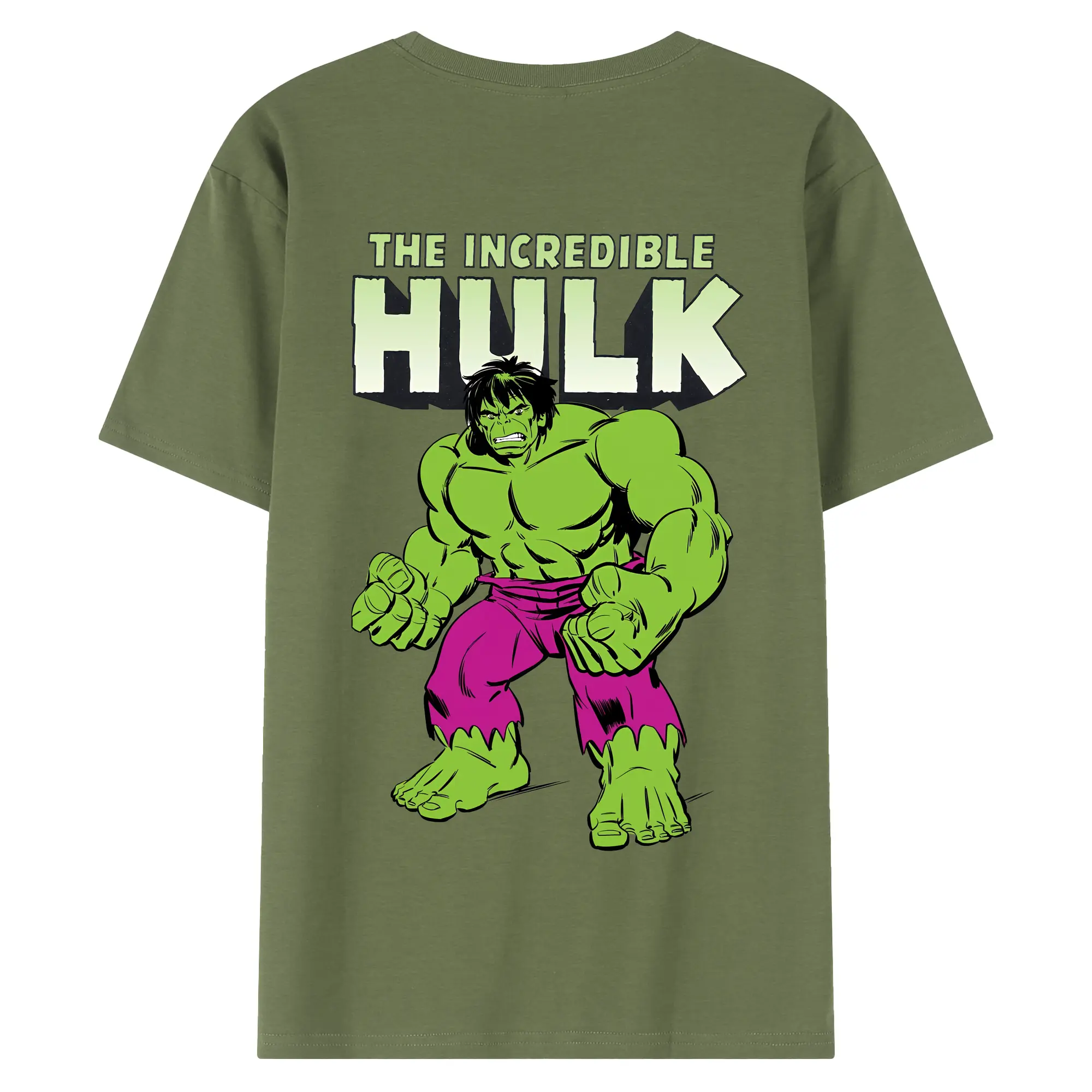 アベンジャーズ (Avenjāzu) グッズ ハルク(Hulk) - 綿100% ヴィンテージ風 半袖Tシャツ ・ 背面プリント ・ 柔らか肌触り ・ 通気性 快適 ・ スポーツ カジュアル 外出用