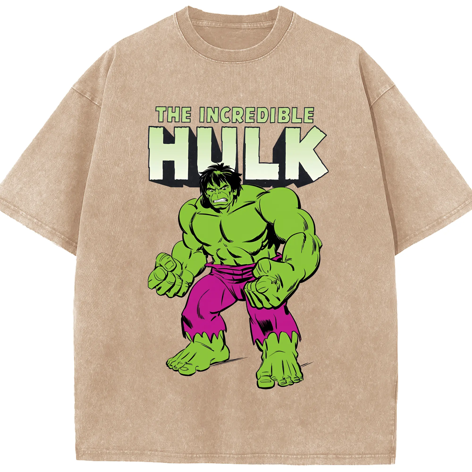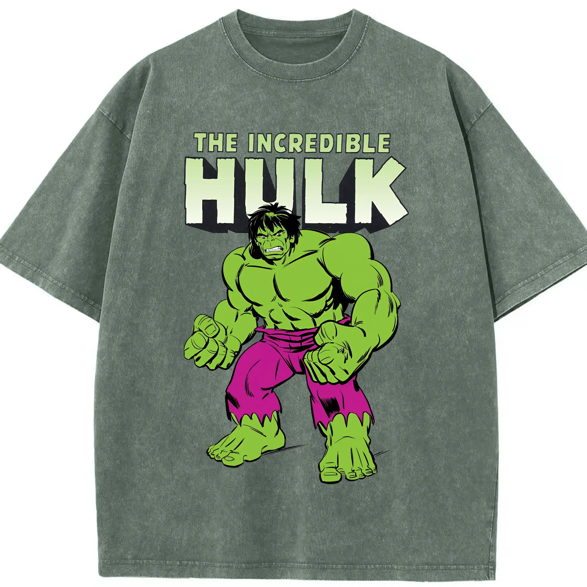 アベンジャーズ (Avenjāzu) グッズ ハルク(Hulk) - 綿100% ヴィンテージ風 半袖Tシャツ ・ 背面プリント ・ 柔らか肌触り ・ 通気性 快適 ・ スポーツ カジュアル 外出用