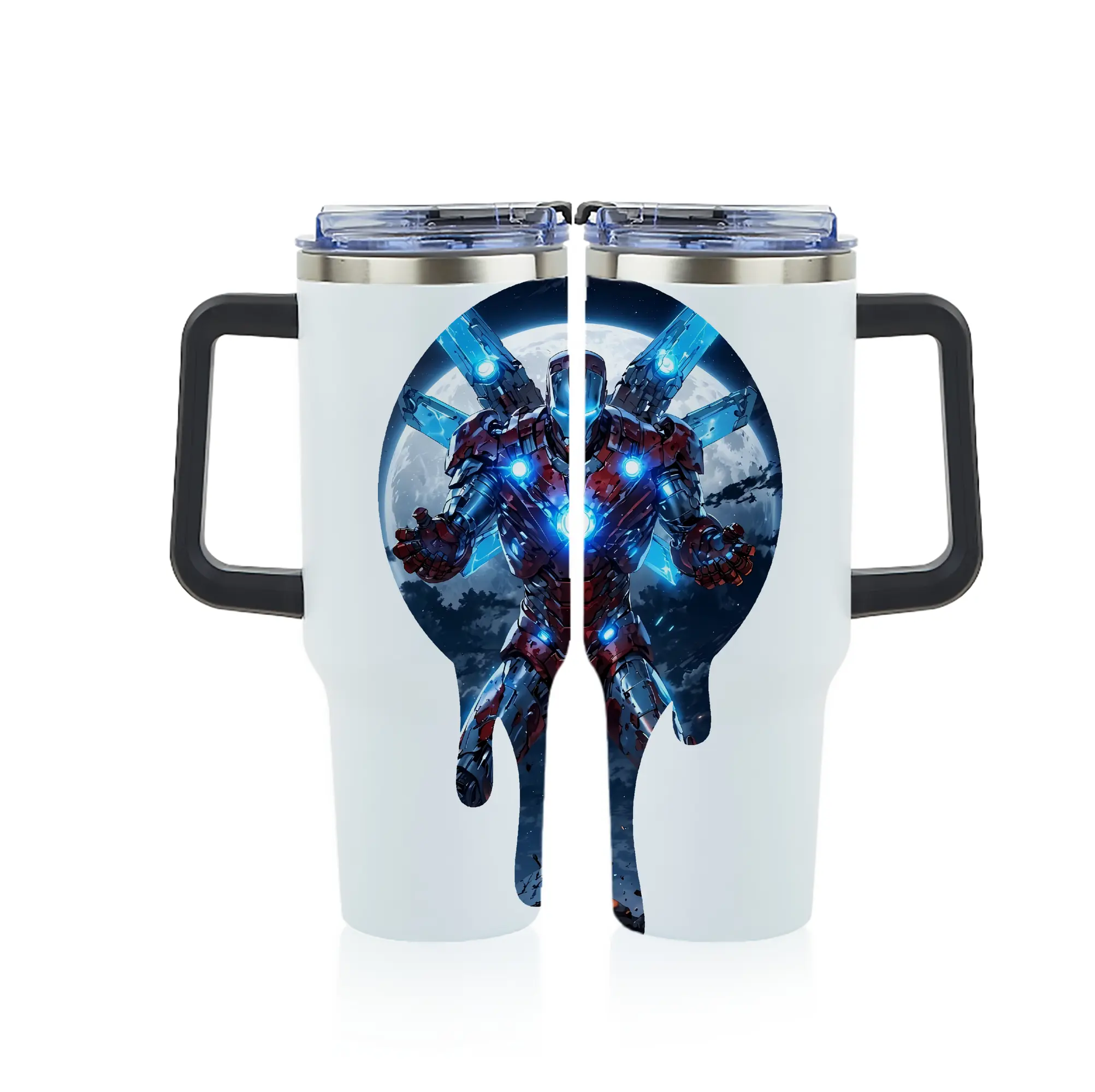 アベンジャーズ (Avenjāzu) グッズ アイアンマン(Iron Man) - 1200mL フルプリント車用タンブラー ・ 304ステンレス 内側 ・ 201ステンレス 外側 ・ 保温 保冷 ・ 通勤 ドライブ アウトドア用