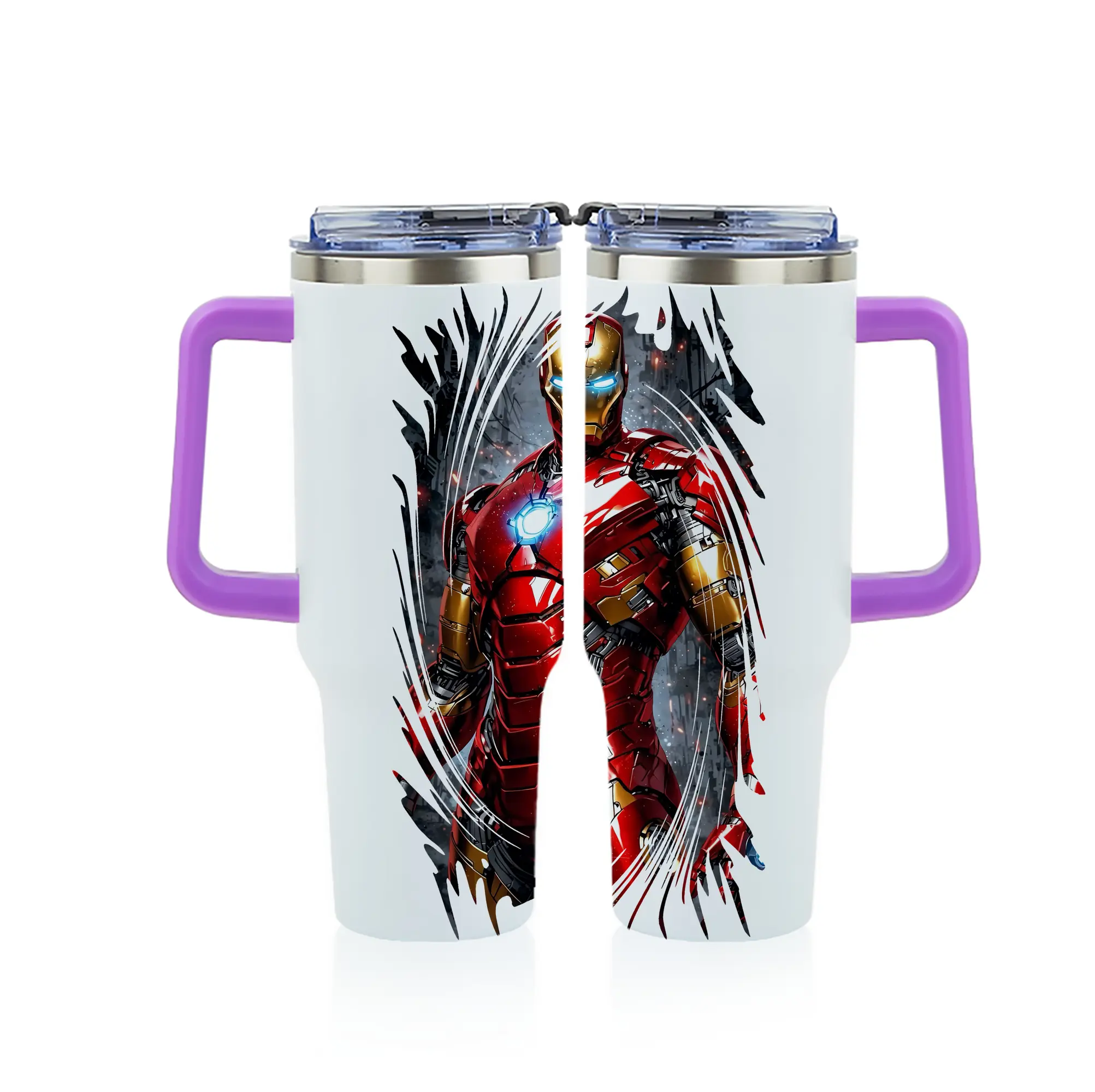 アベンジャーズ (Avenjāzu) グッズ アイアンマン(Iron Man) - 1200mL フルプリント車用タンブラー ・ 304ステンレス 内側 ・ 201ステンレス 外側 ・ 保温 保冷 ・ 通勤 ドライブ アウトドア用