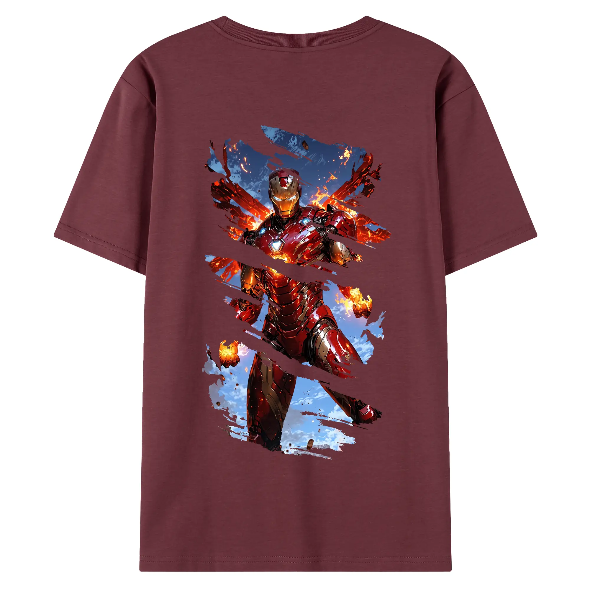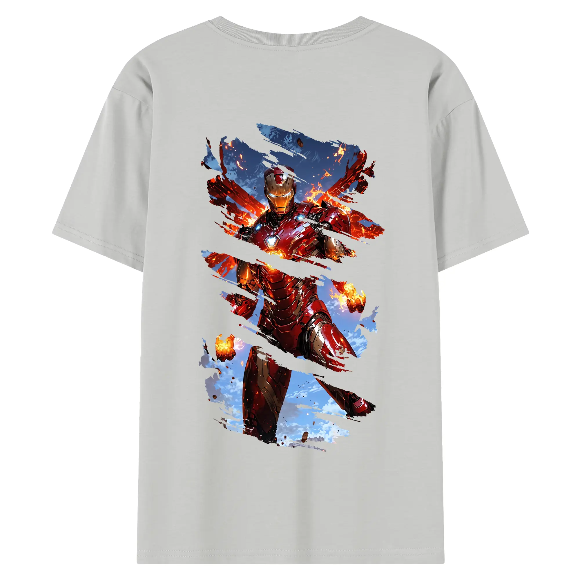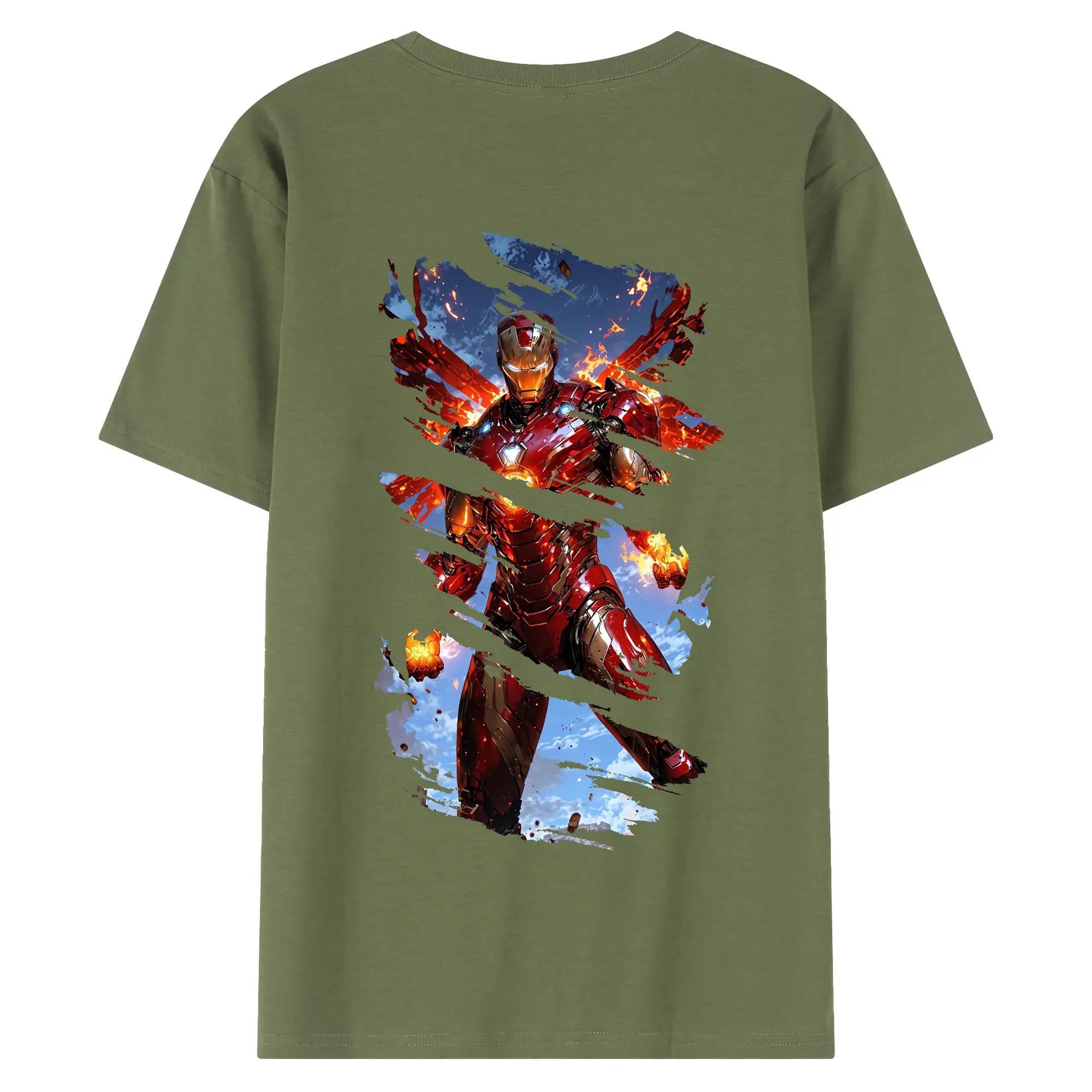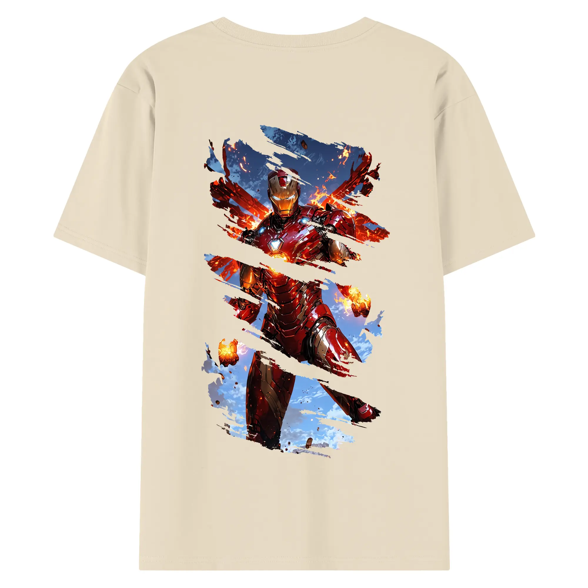 アベンジャーズ (Avenjāzu) グッズ アイアンマン(Iron Man) - 綿100% ヴィンテージ風 半袖Tシャツ ・ 背面プリント ・ 柔らか肌触り ・ 通気性 快適 ・ スポーツ カジュアル 外出用